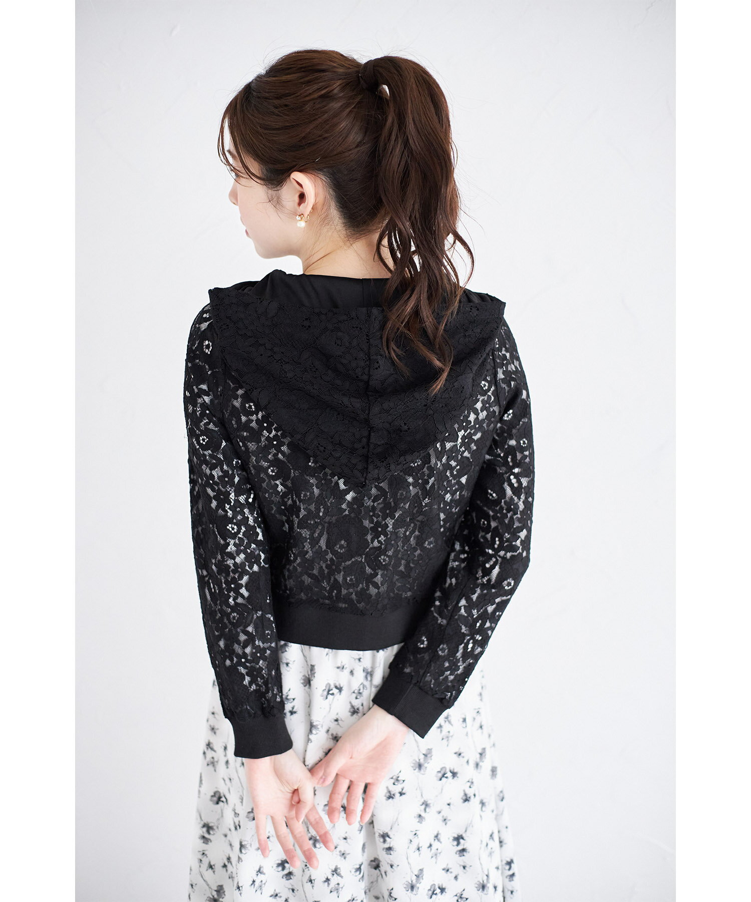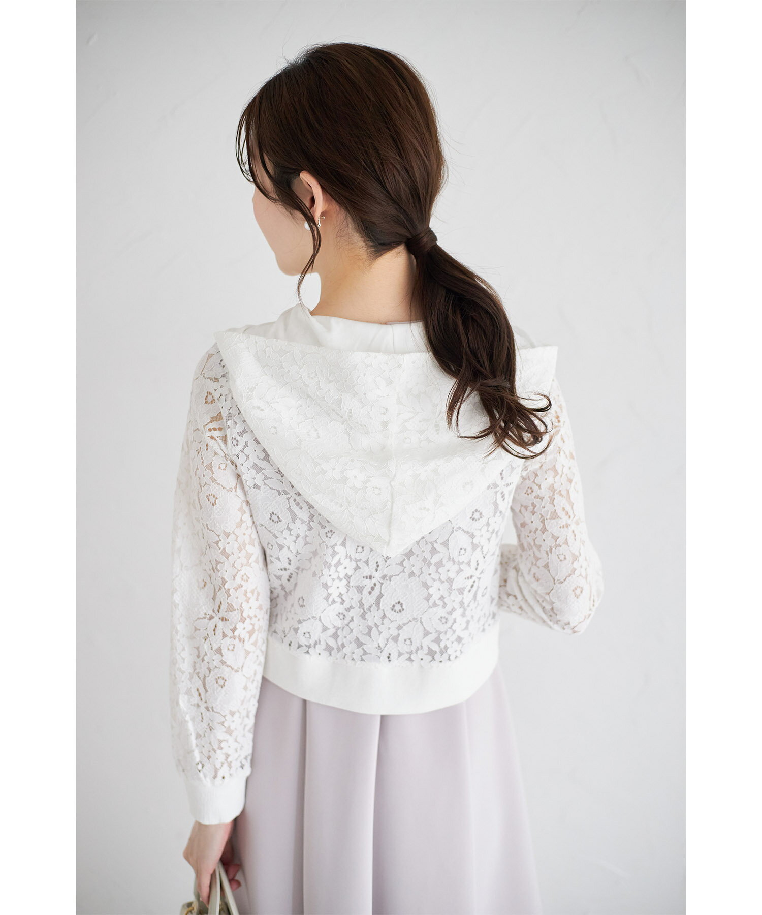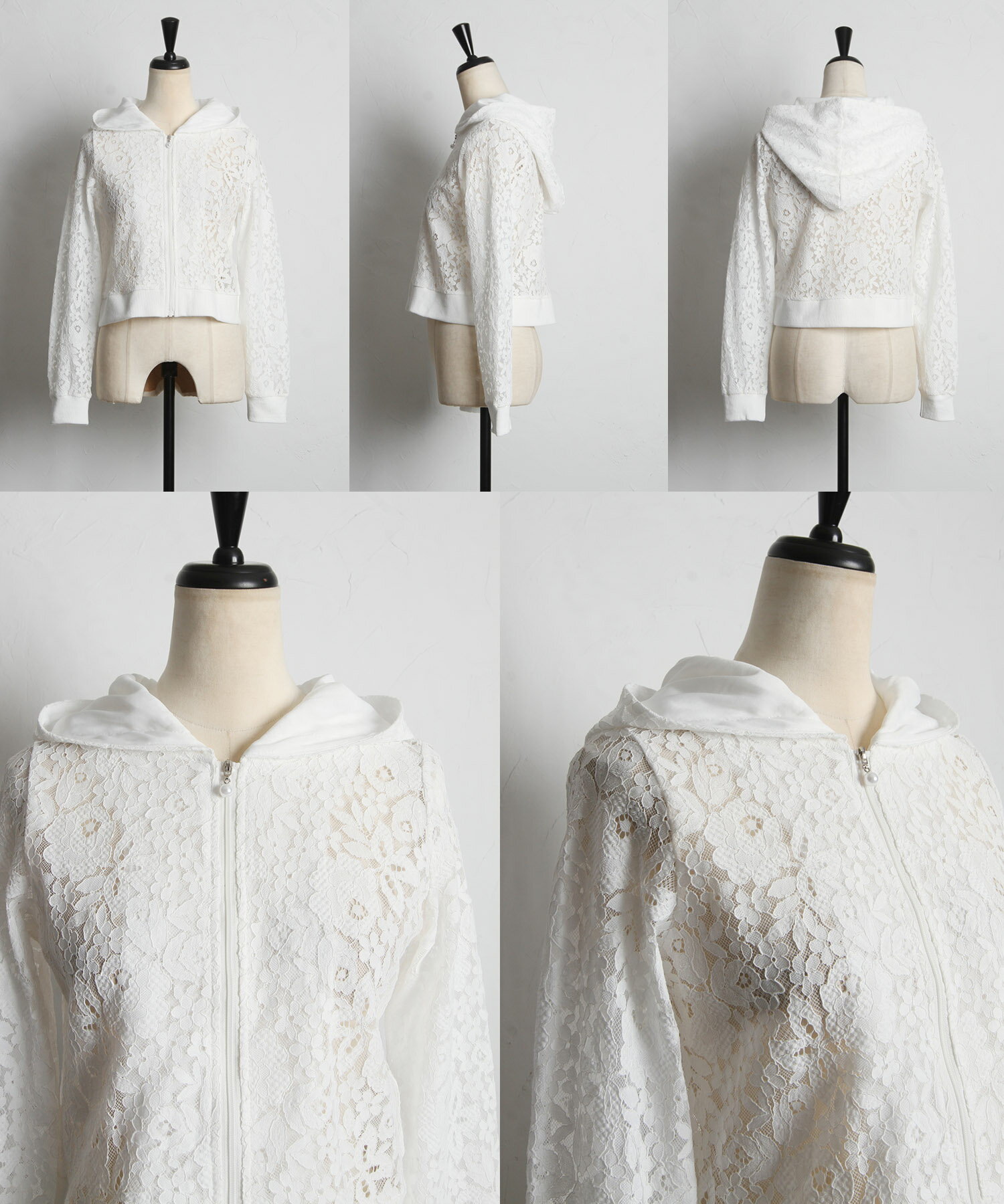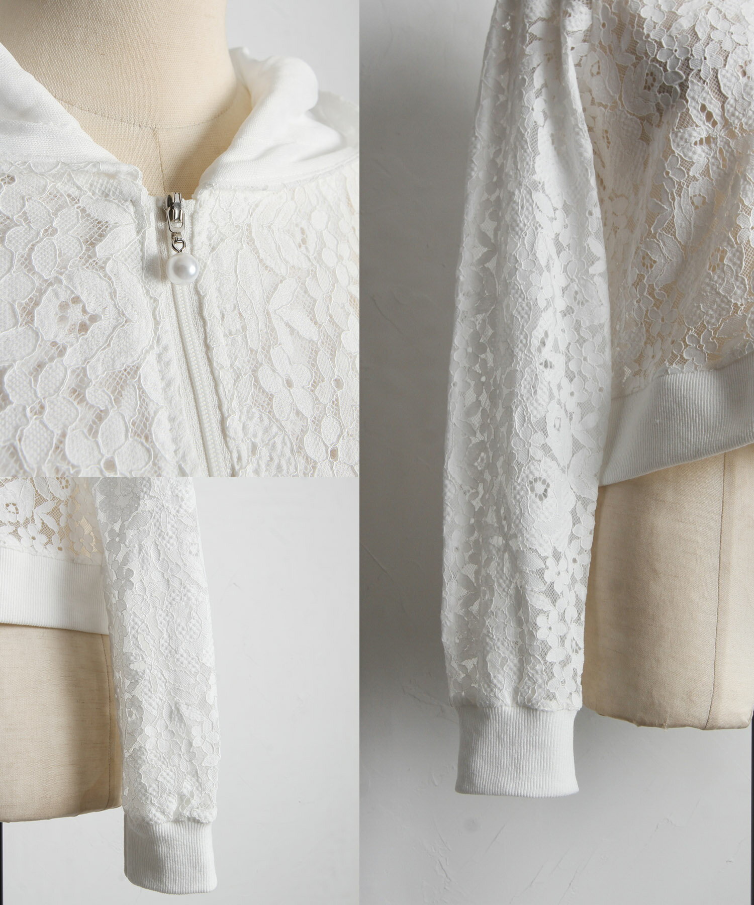 パールファスナーチャーム付きシアーフラワーレースパーカー【mephly メフィー】tocco closet(トッコクローゼット) オフホワイト ブラック 186-183628