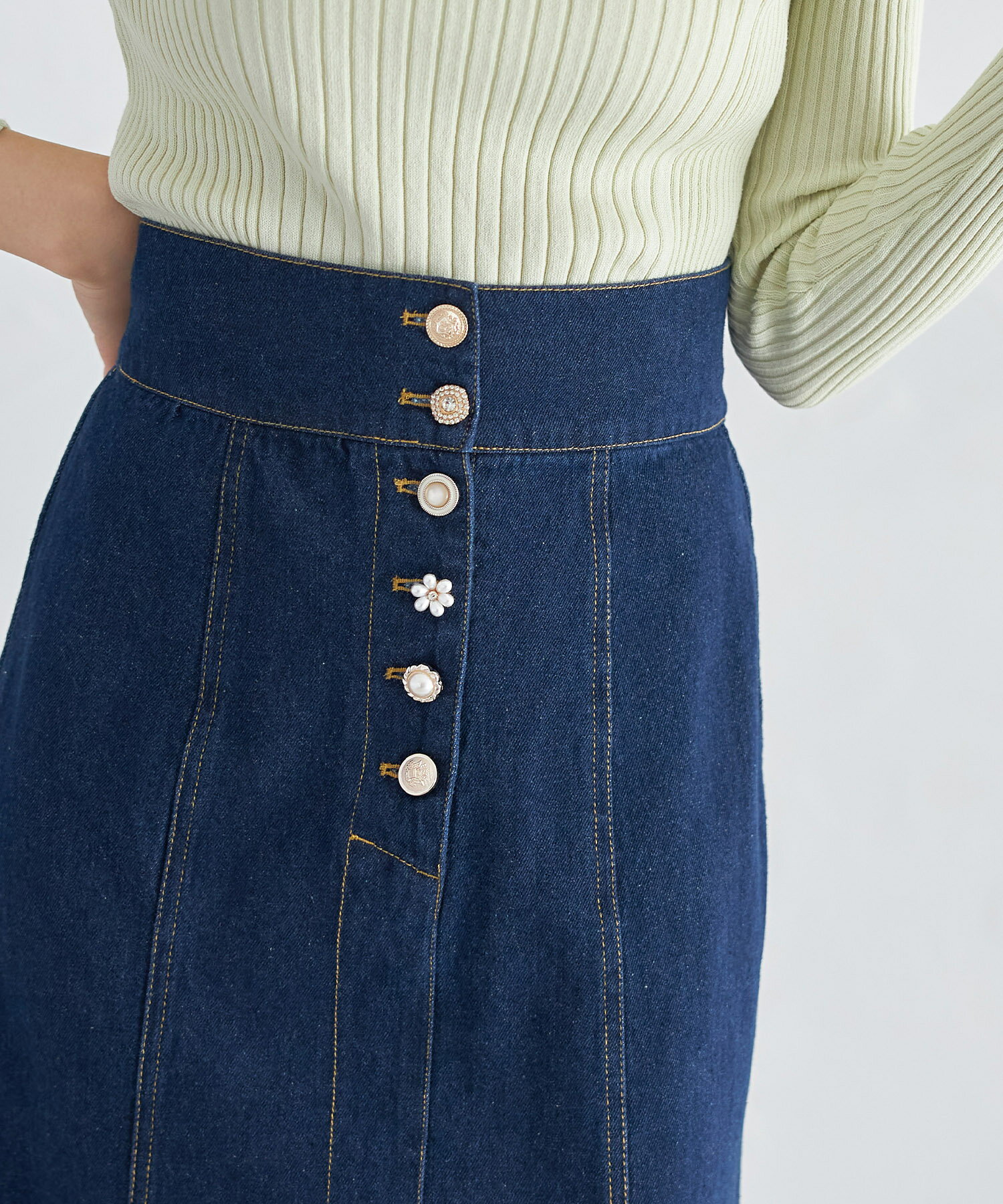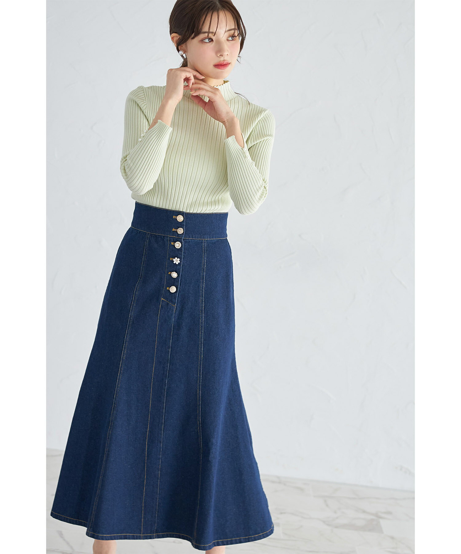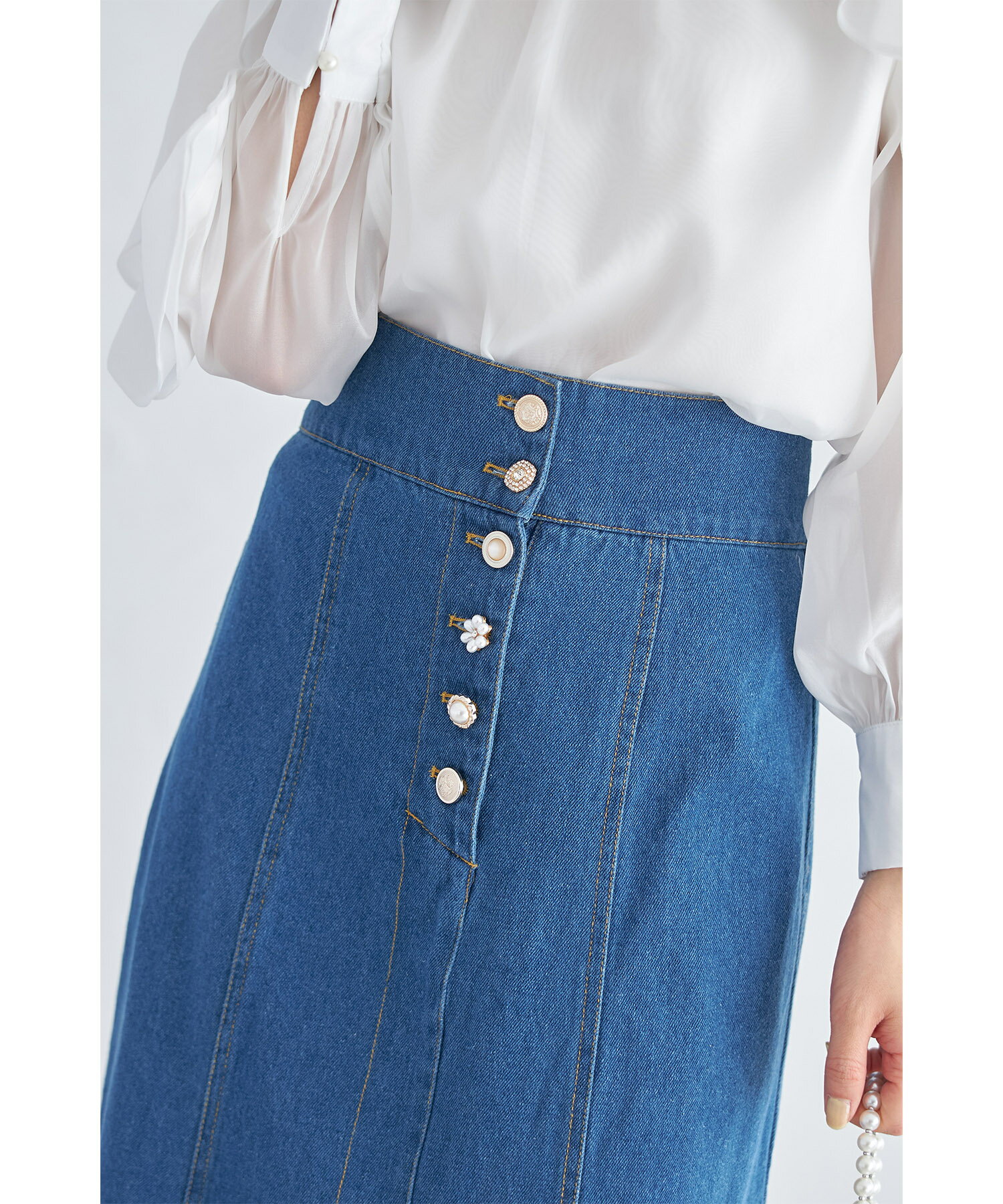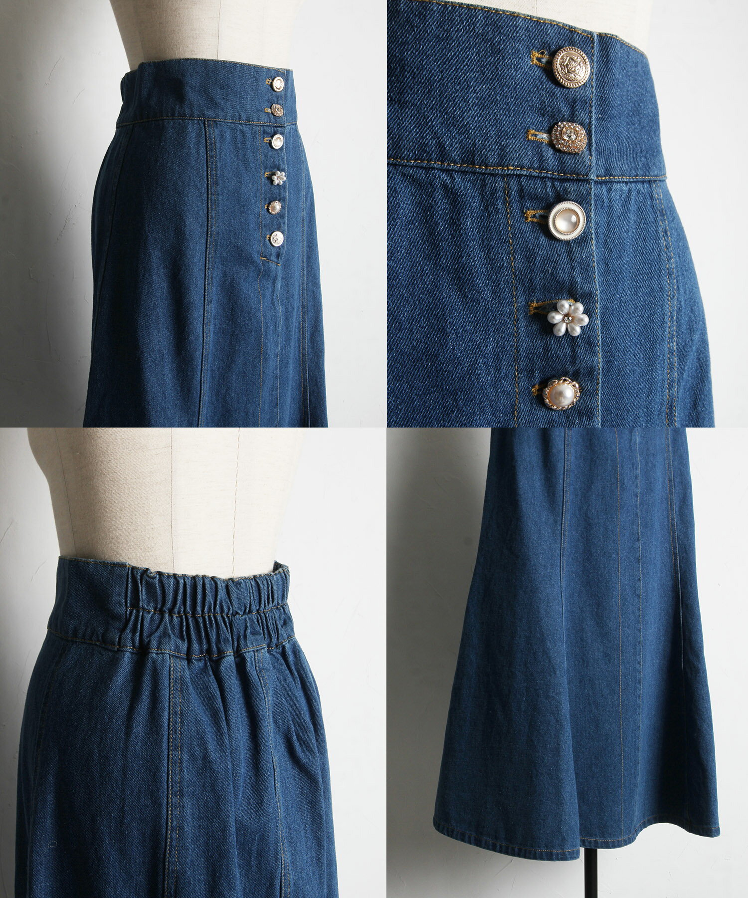 多種パールビジュー釦ステッチ入りデニムマーメイドスカート【ristle リストル】tocco closet(トッコクローゼット) ブルー インディゴ 商品番号:186-182831