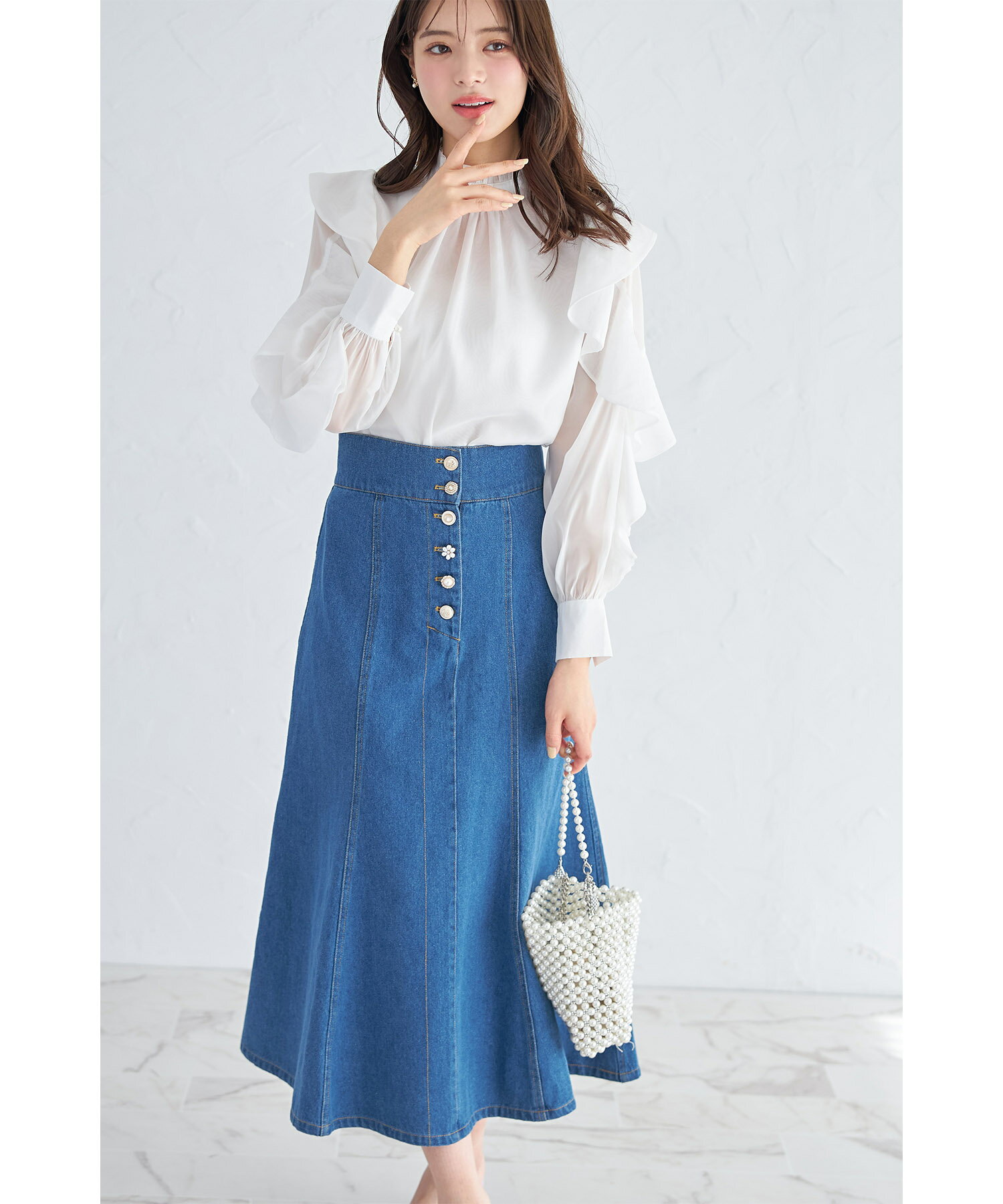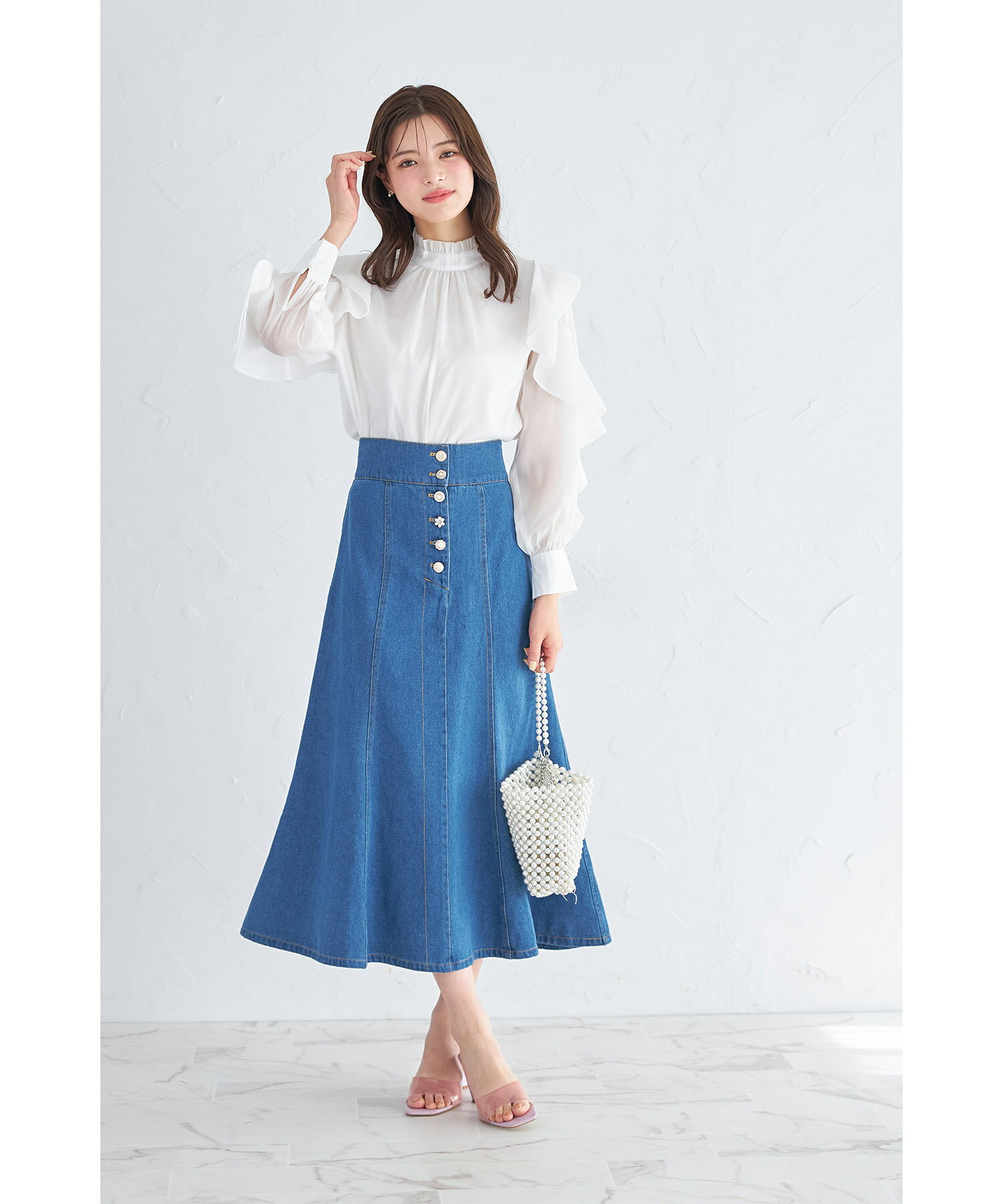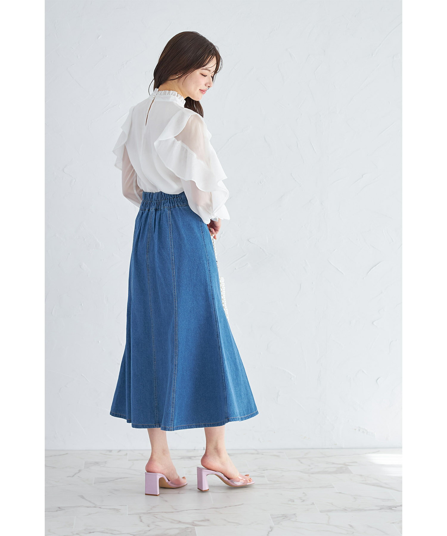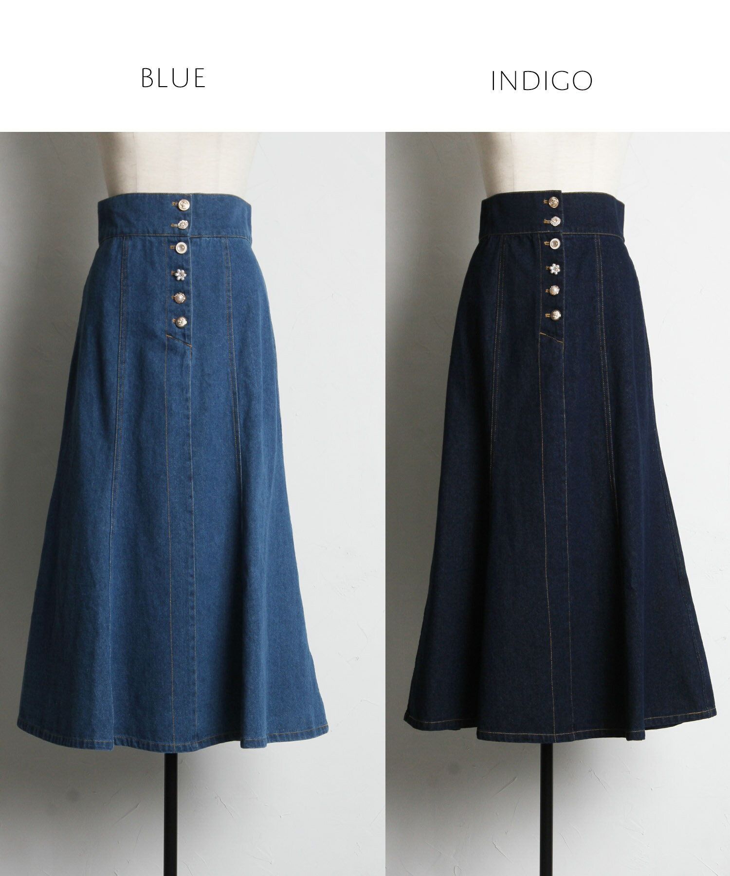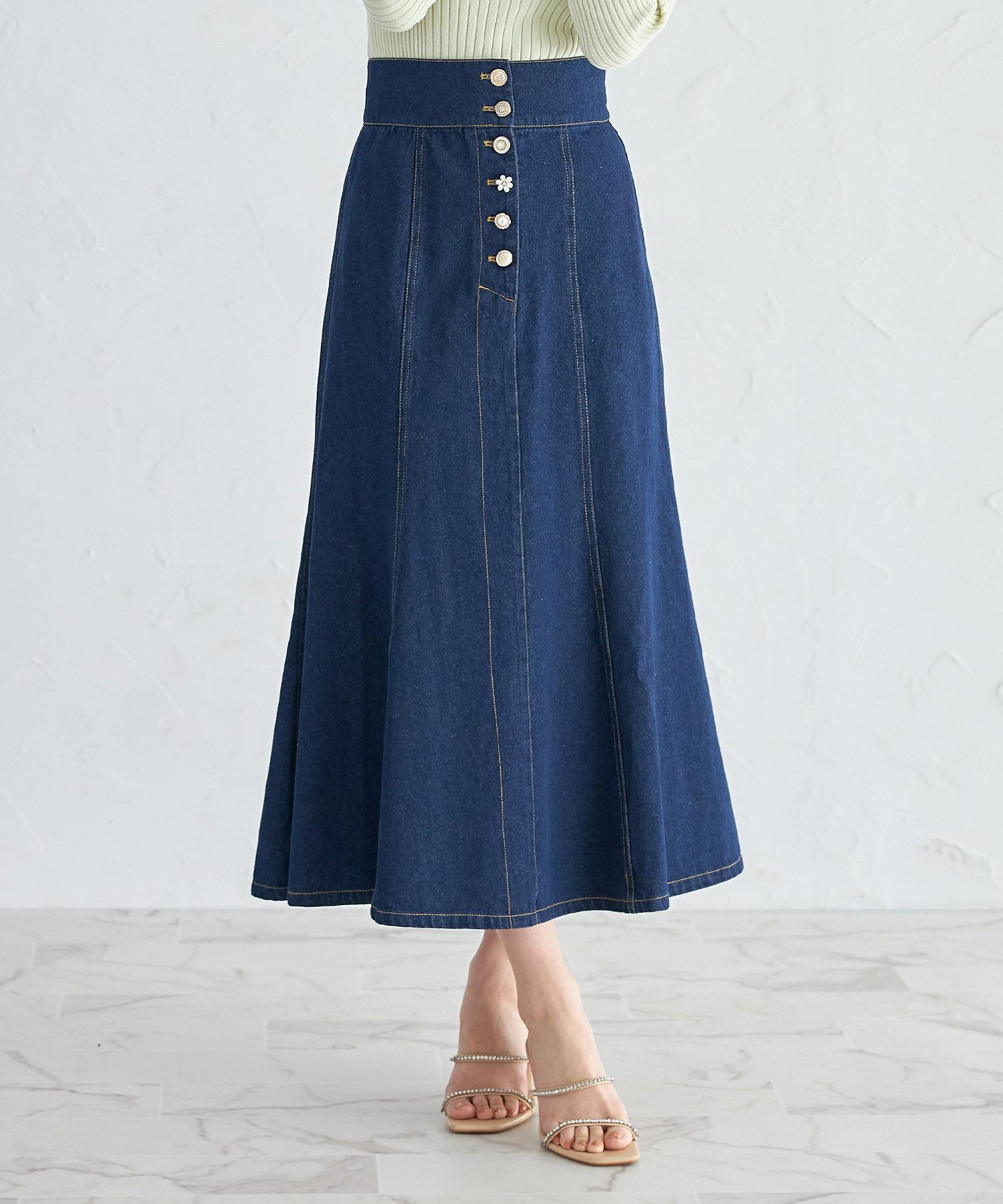 多種パールビジュー釦ステッチ入りデニムマーメイドスカート【ristle リストル】tocco closet(トッコクローゼット) ブルー インディゴ 商品番号:186-182831