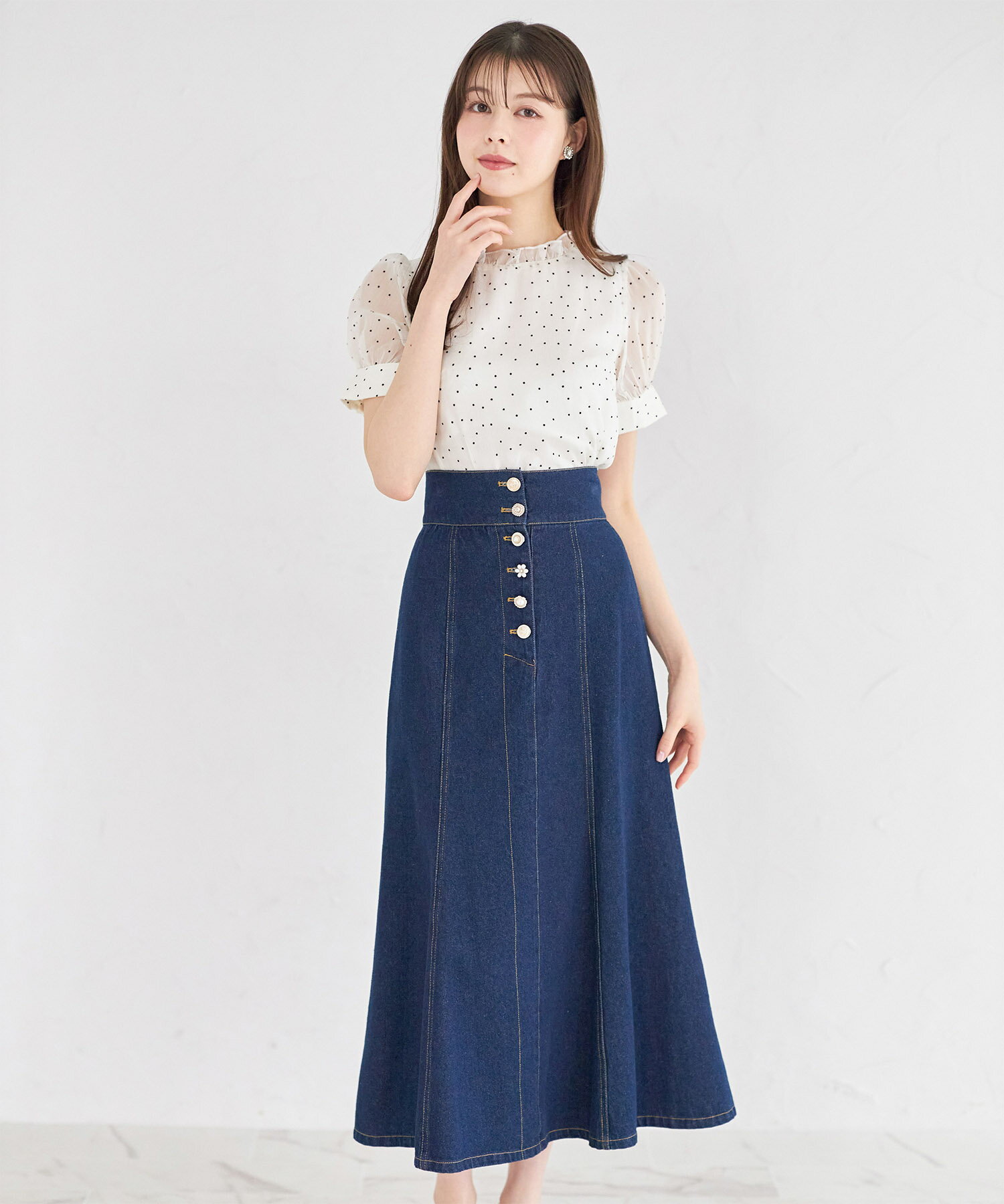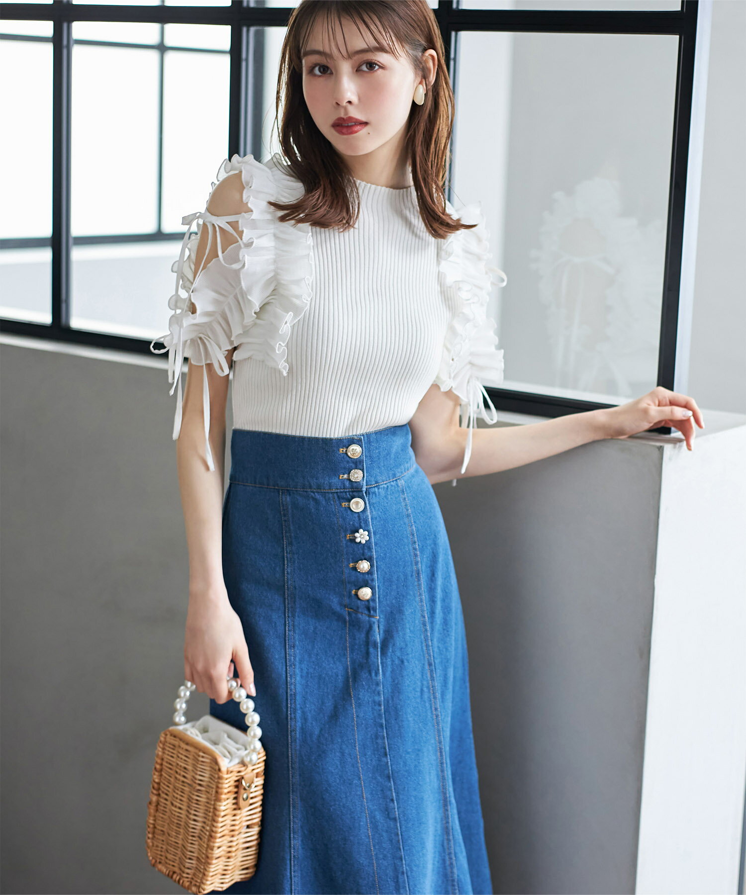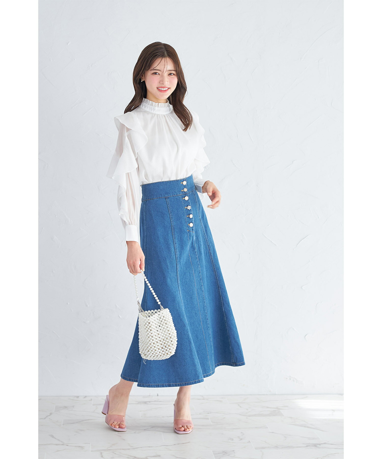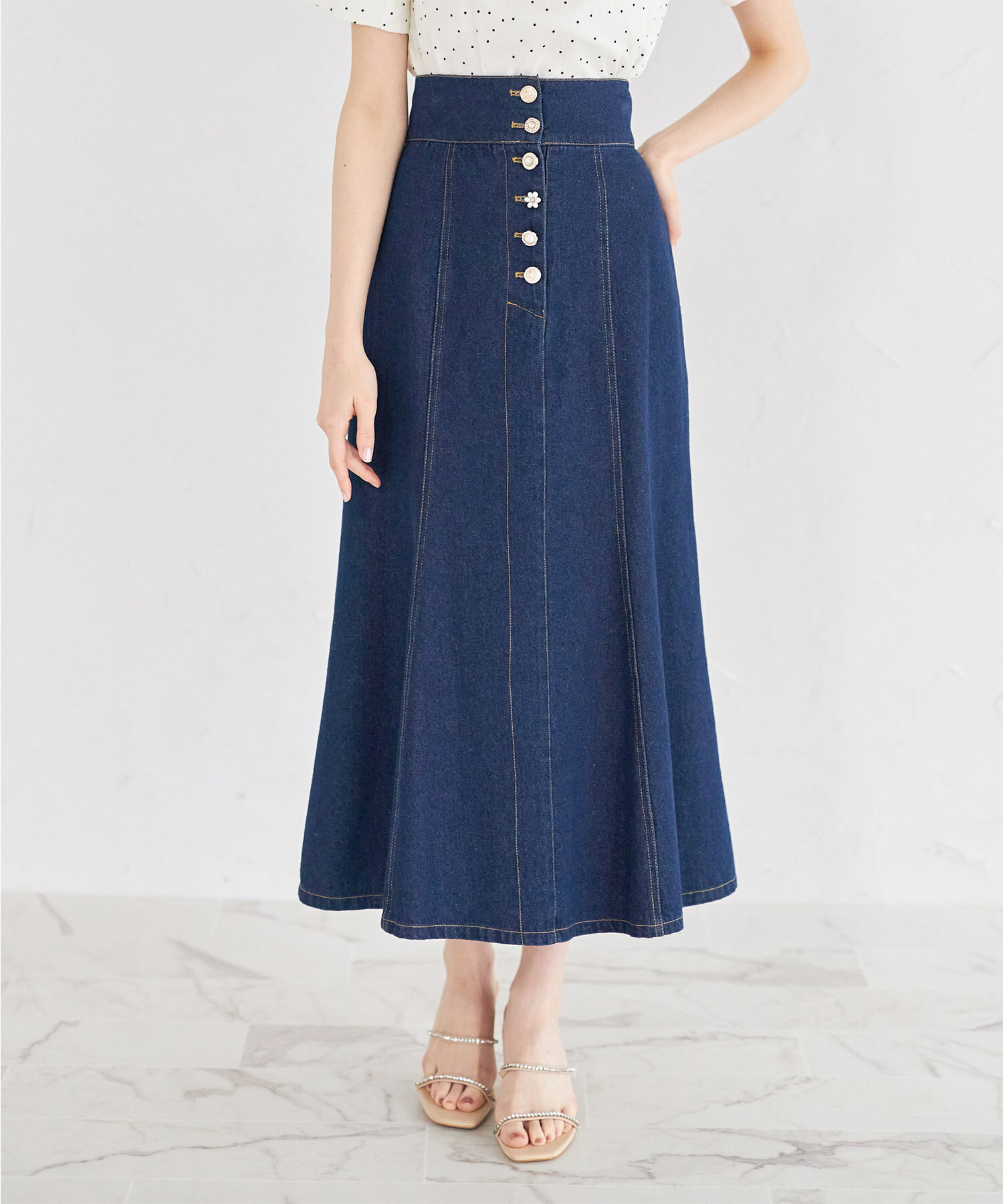 多種パールビジュー釦ステッチ入りデニムマーメイドスカート【ristle リストル】tocco closet(トッコクローゼット) ブルー インディゴ 商品番号:186-182831