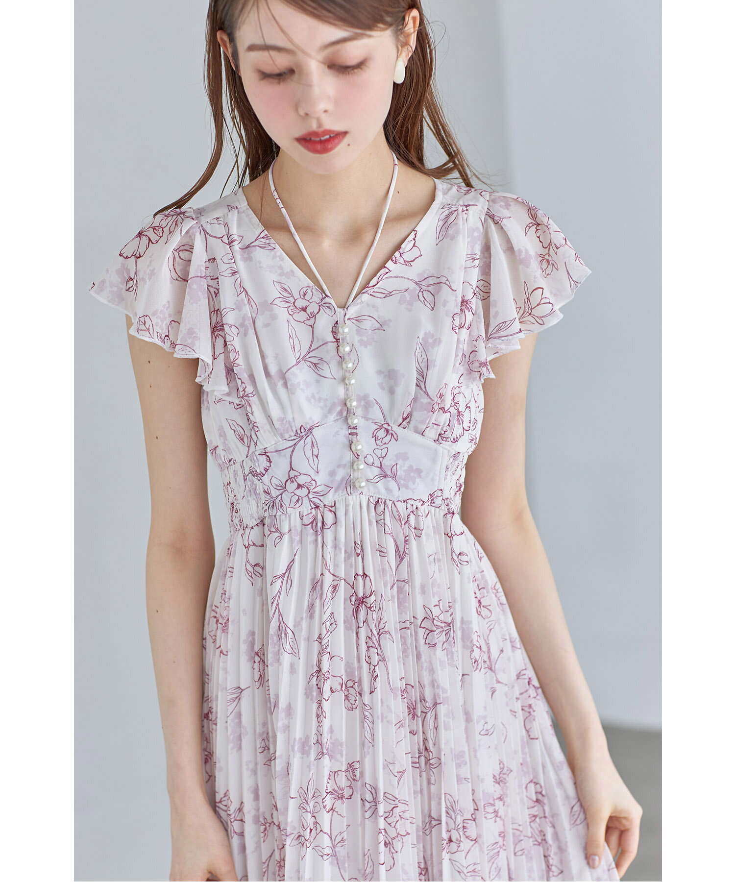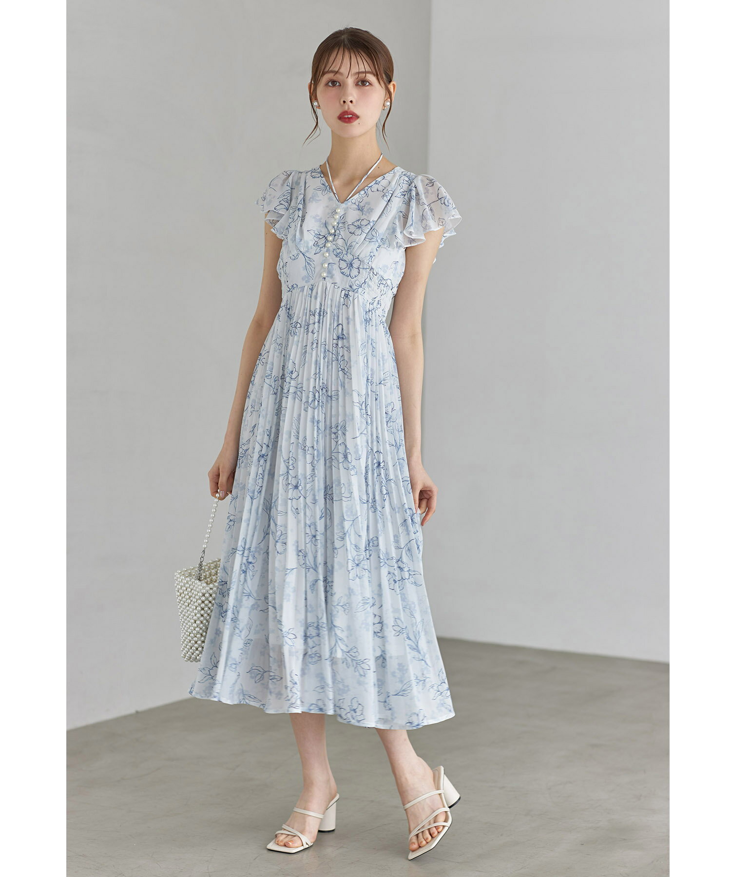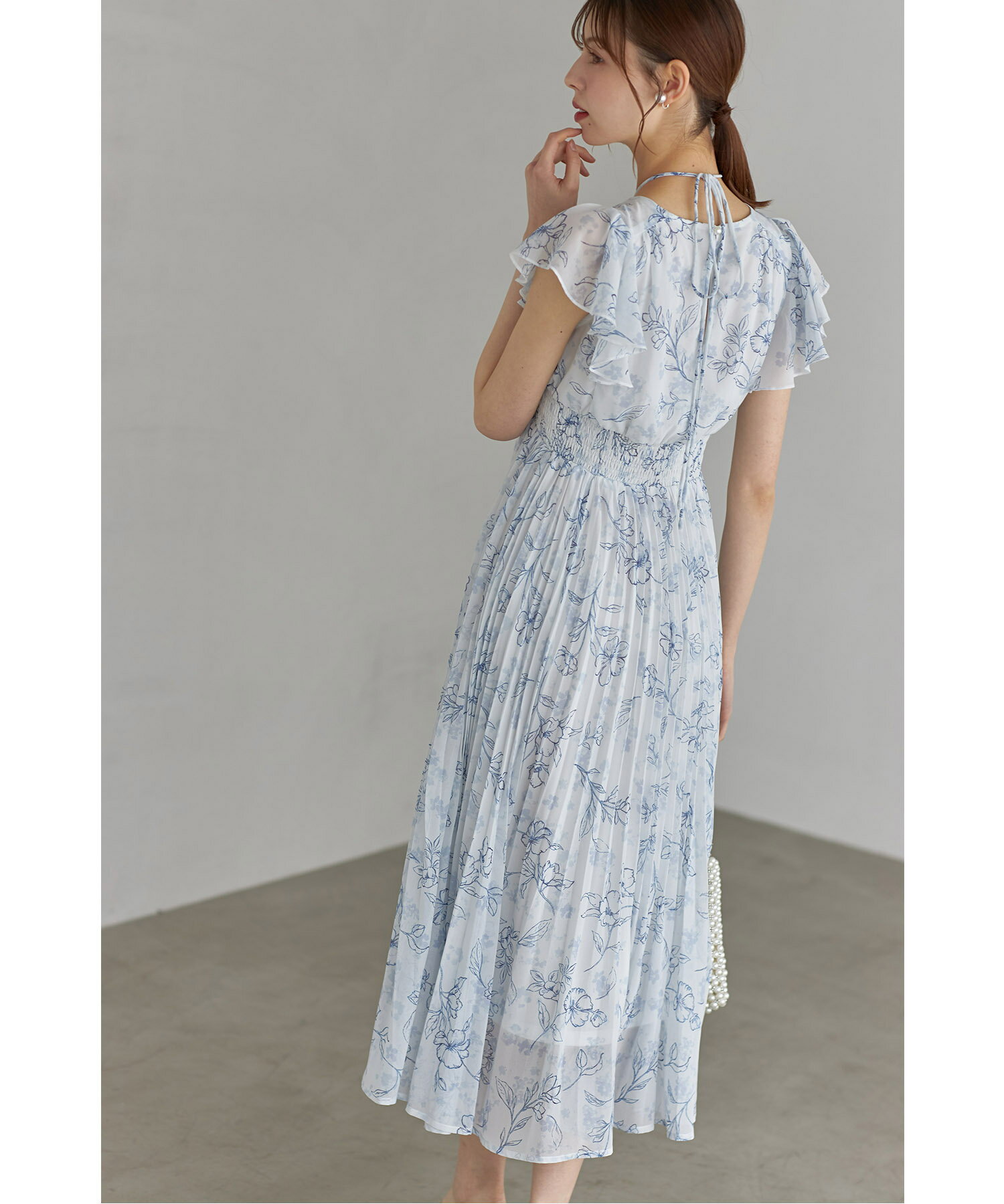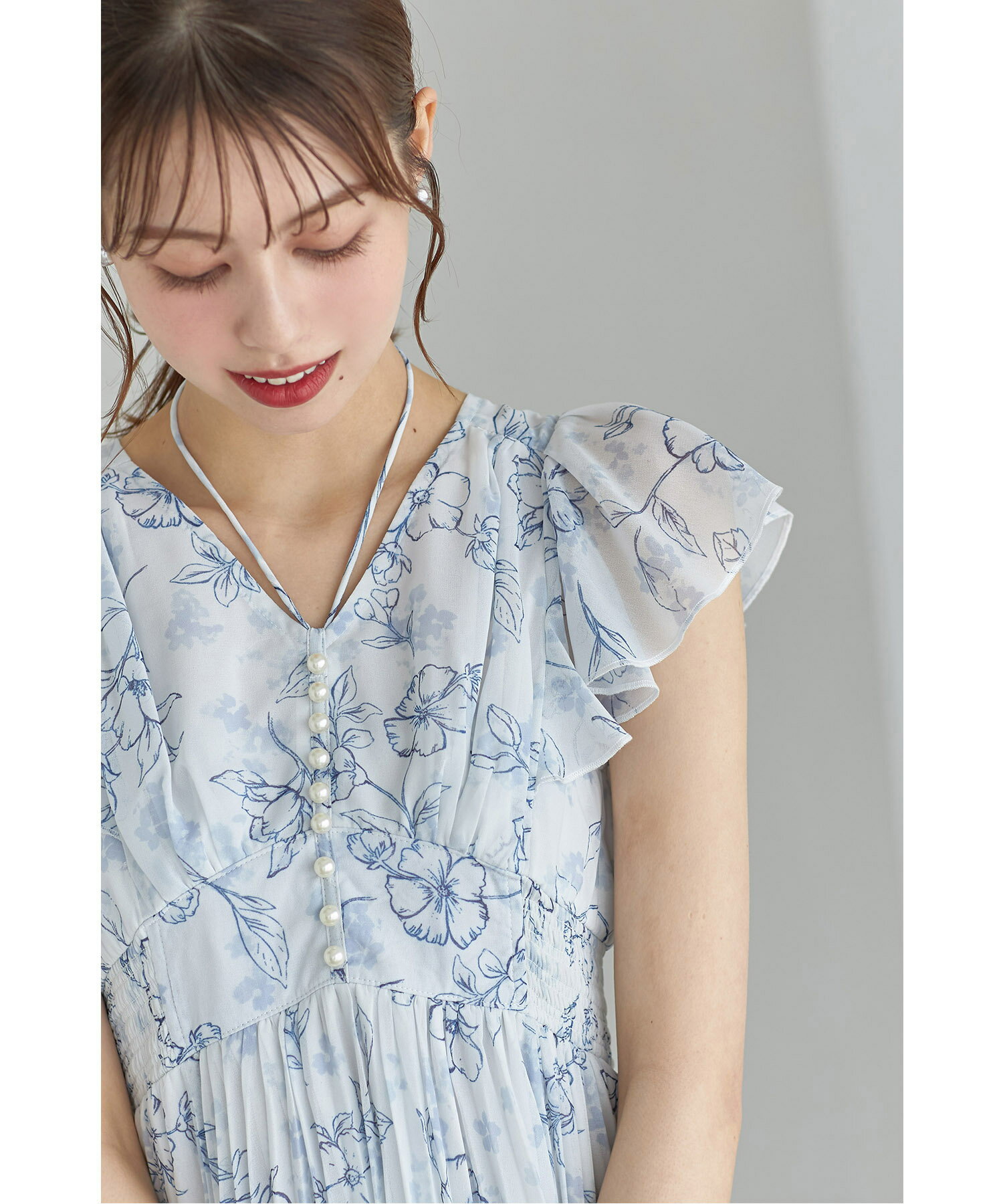パール付きネックリボン水彩ラインフラワープリーツワンピース【bethle ベスリー】tocco closet(トッコクローゼット) ※森香澄さんはピンク着用 ピンク ブルー ブラック 商品番号:186-183975