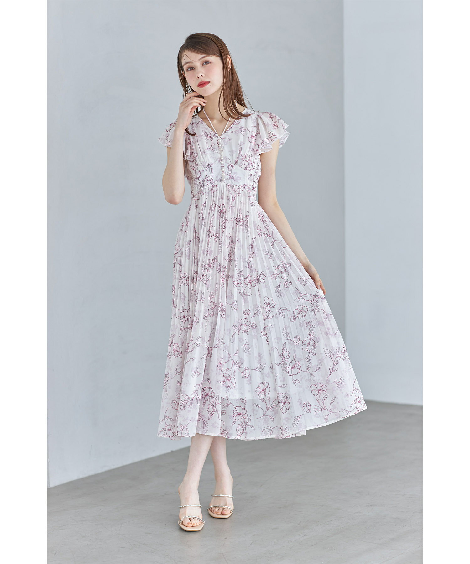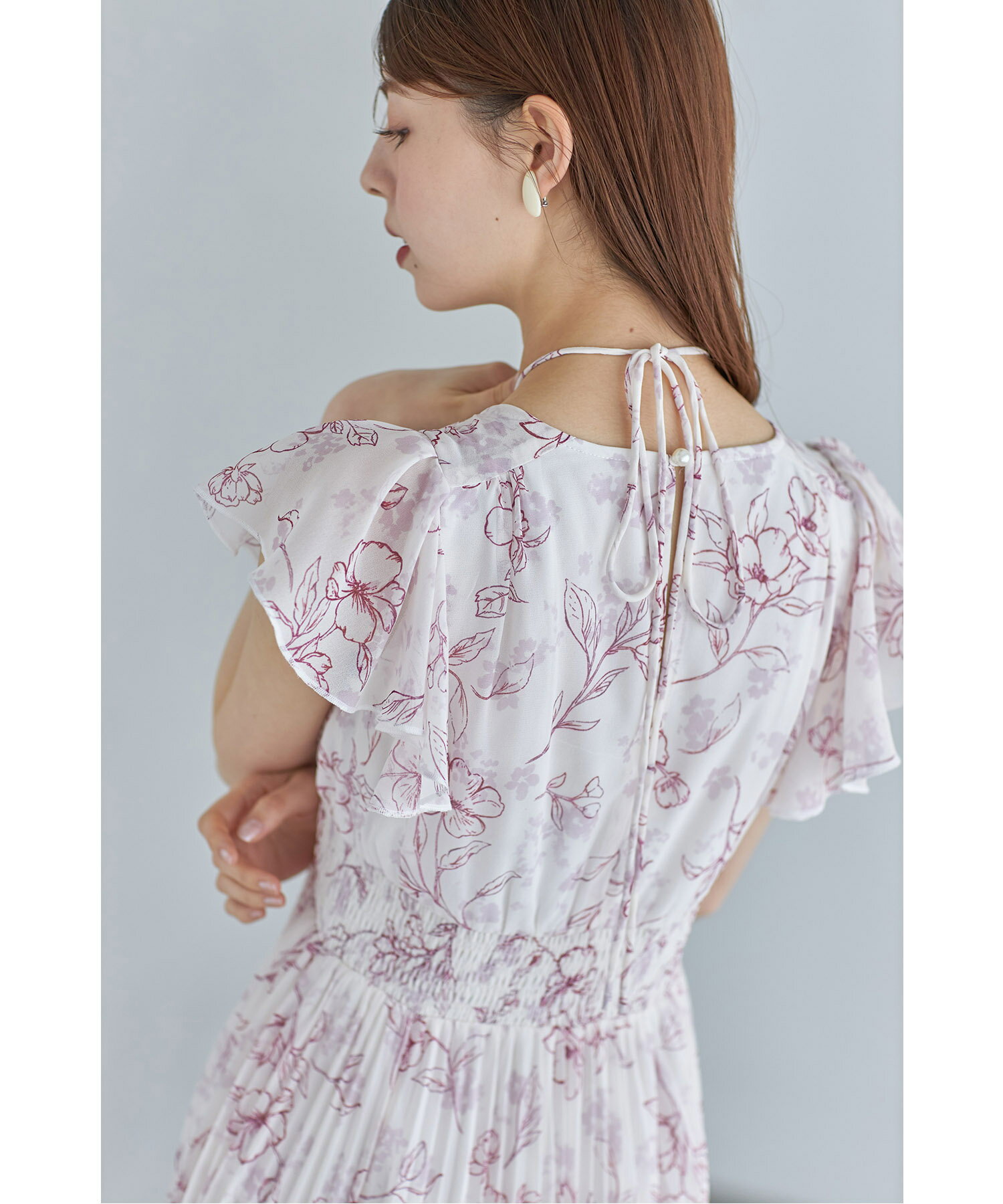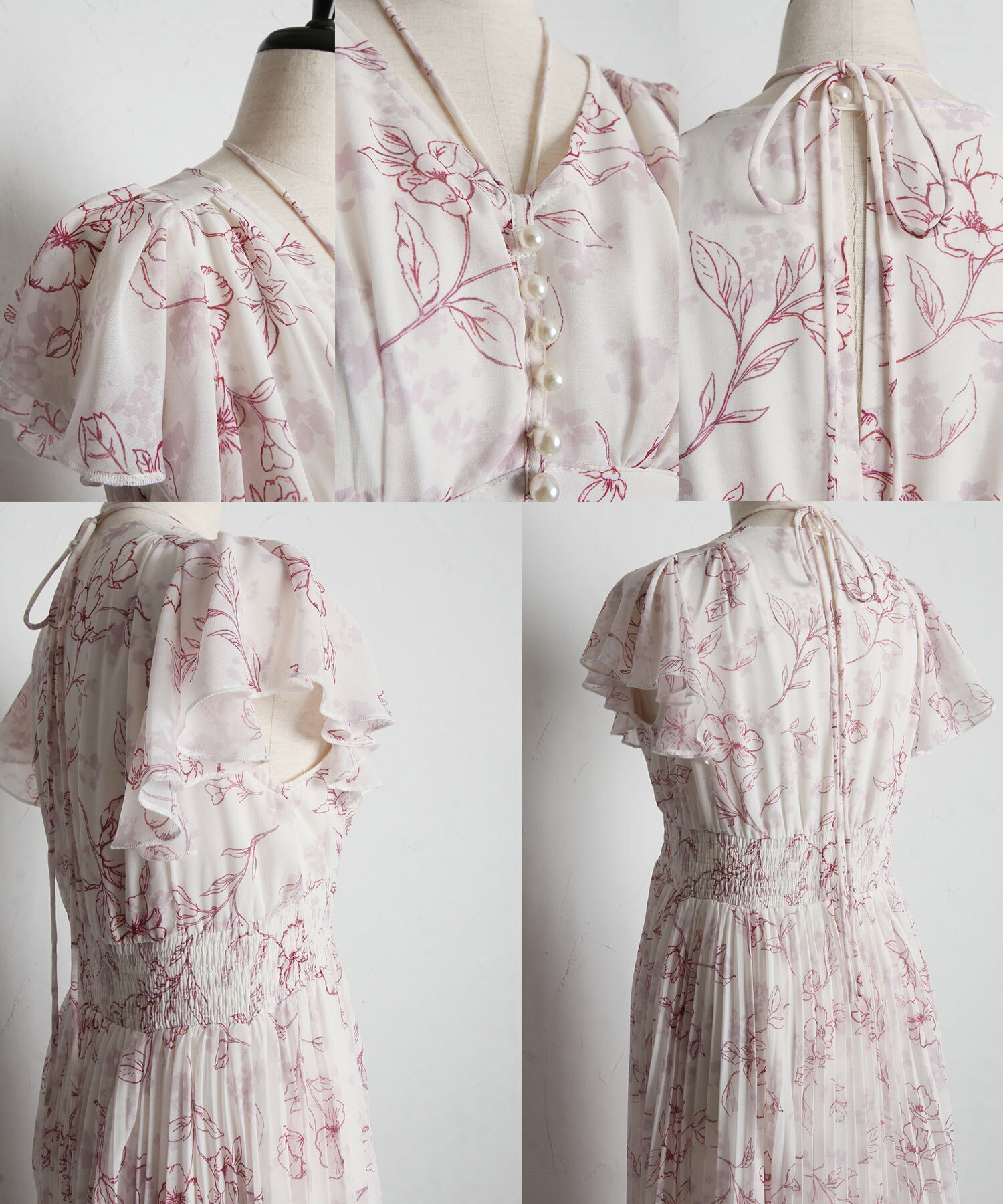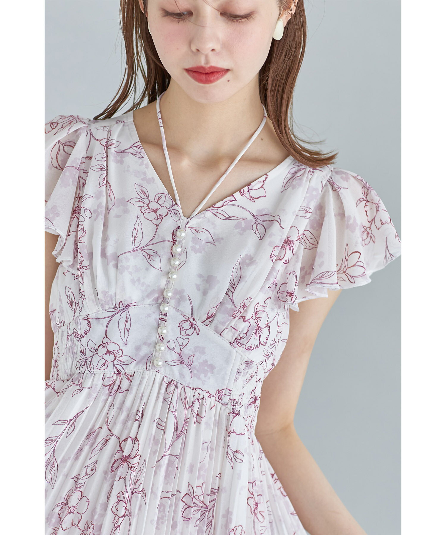 パール付きネックリボン水彩ラインフラワープリーツワンピース【bethle ベスリー】tocco closet(トッコクローゼット) ※森香澄さんはピンク着用 ピンク ブルー ブラック 商品番号:186-183975