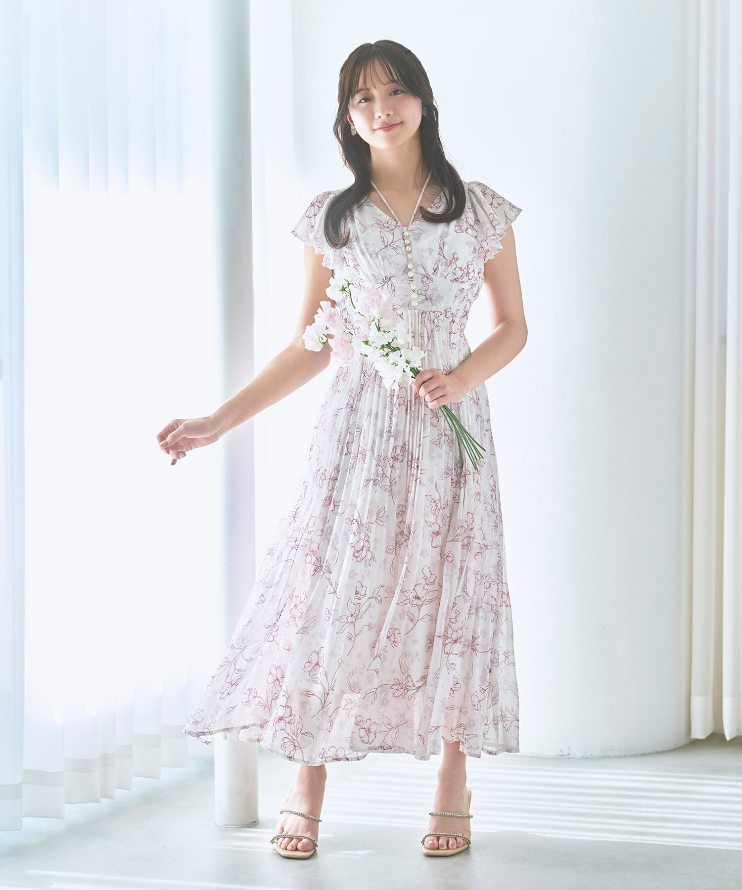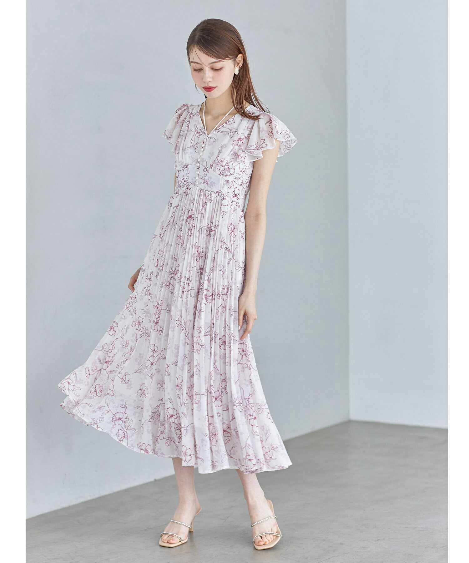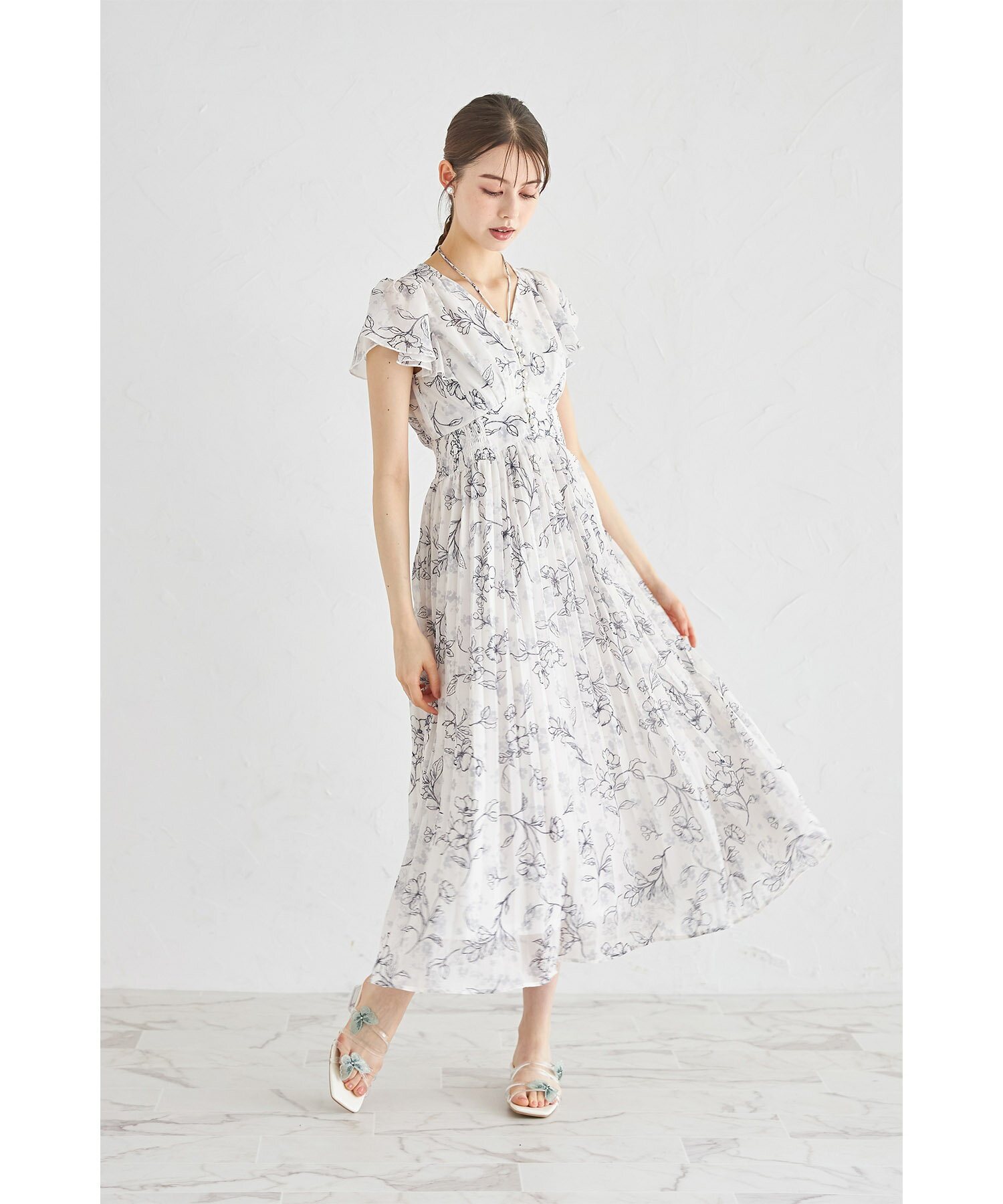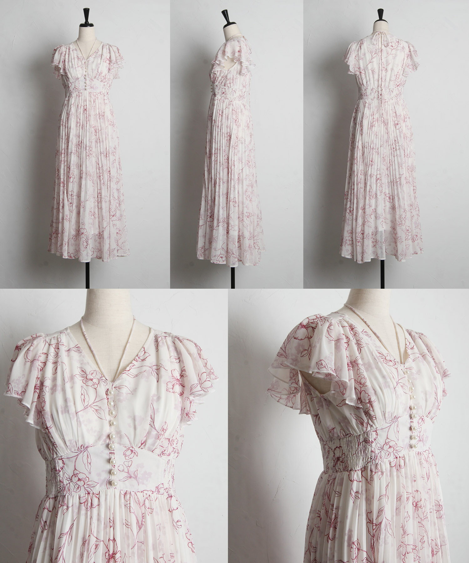 パール付きネックリボン水彩ラインフラワープリーツワンピース【bethle ベスリー】tocco closet(トッコクローゼット) ※森香澄さんはピンク着用 ピンク ブルー ブラック 商品番号:186-183975