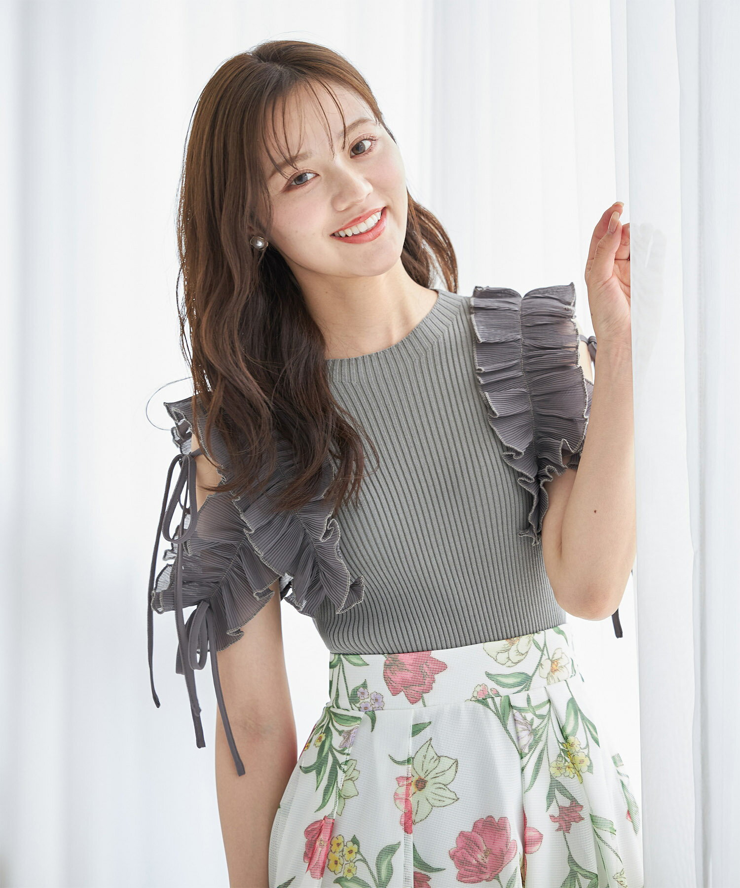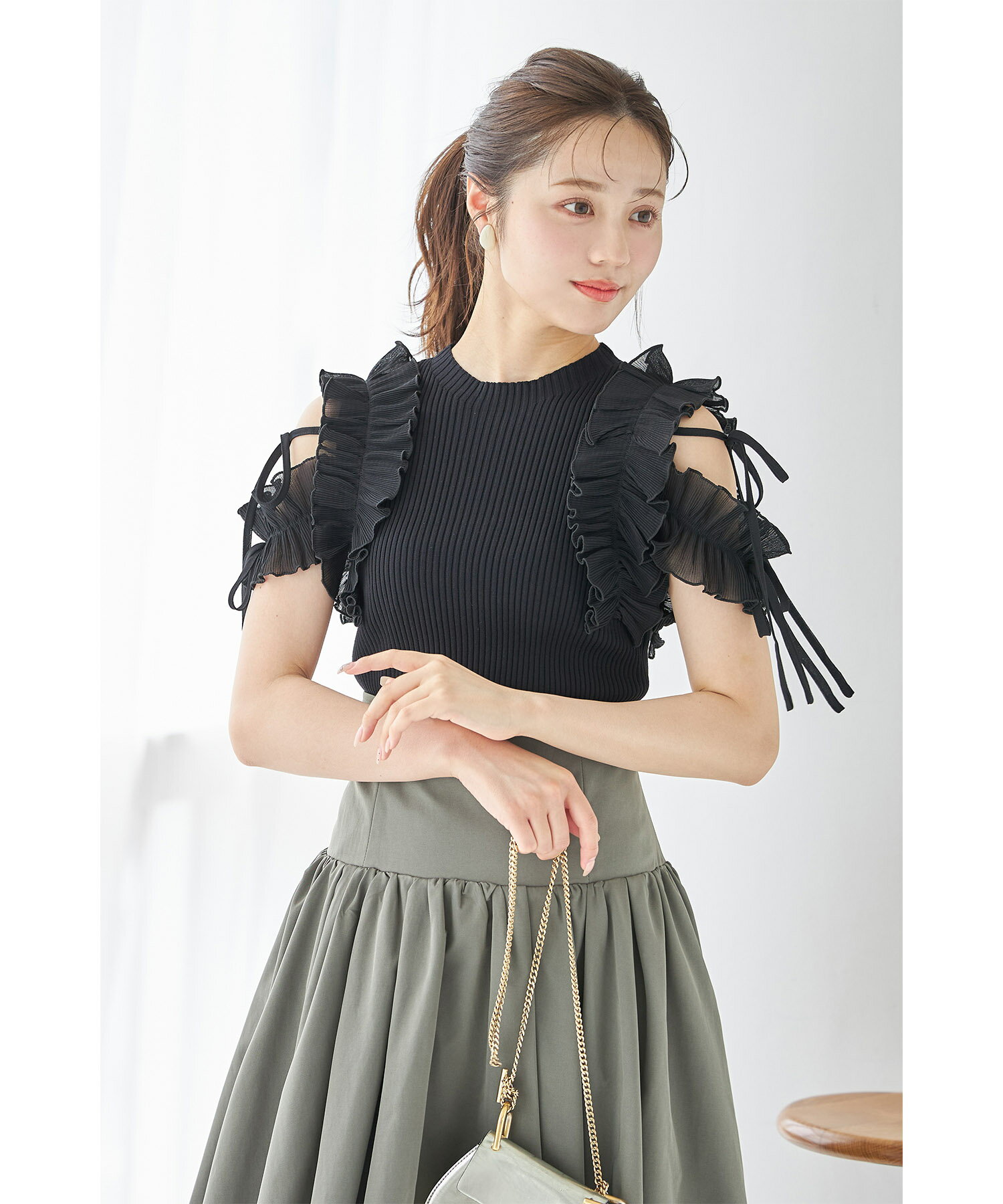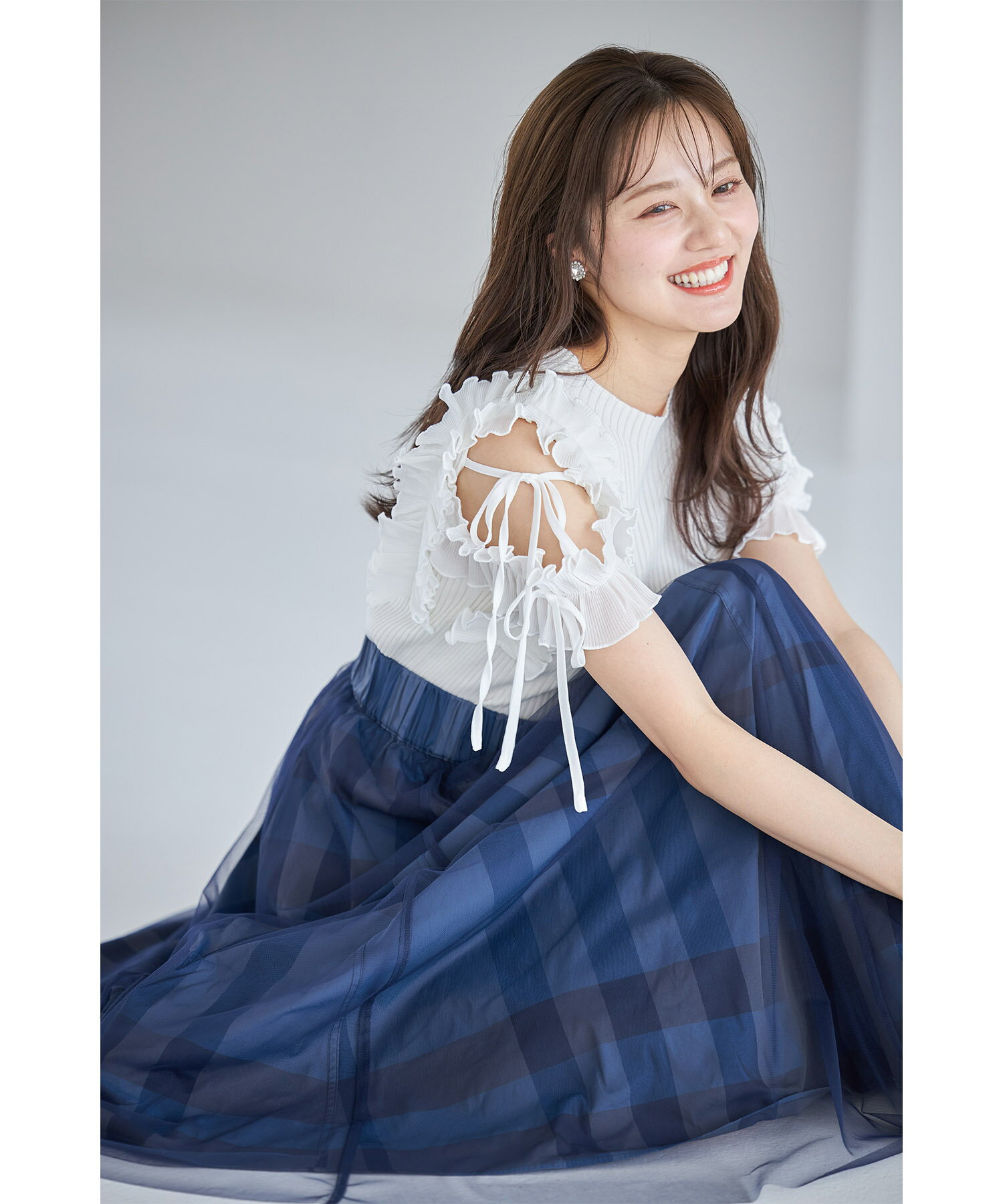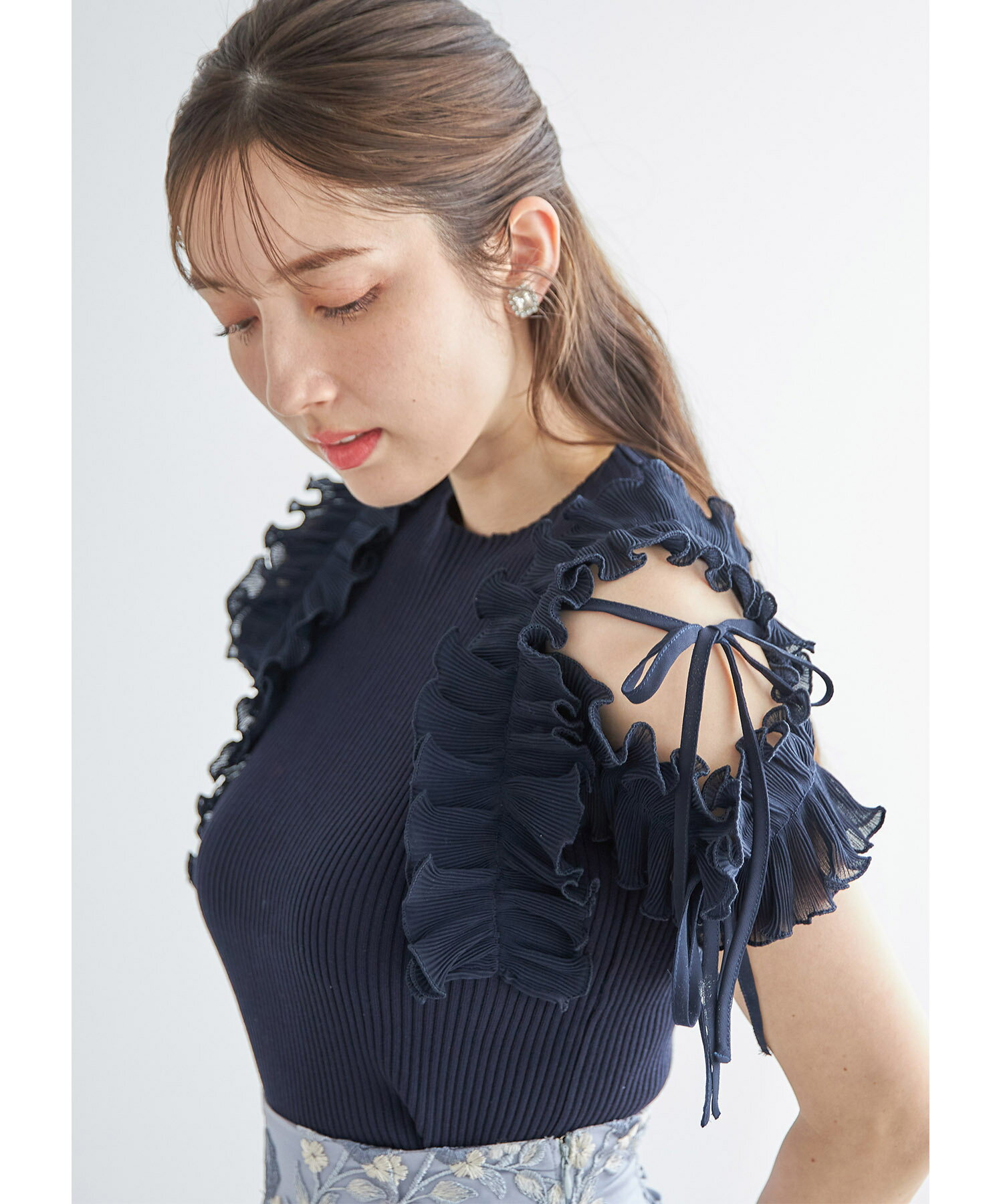 りぼん付きプリーツシフォンフリル切り替えリブニットプルオーバー【ralensis ラレンシス】tocco closet(トッコクローゼット) ※森香澄さん、道重さゆみさんはオフホワイト着用 オフホワイト ラベンダー ネイビー 商品番号:186-182887
