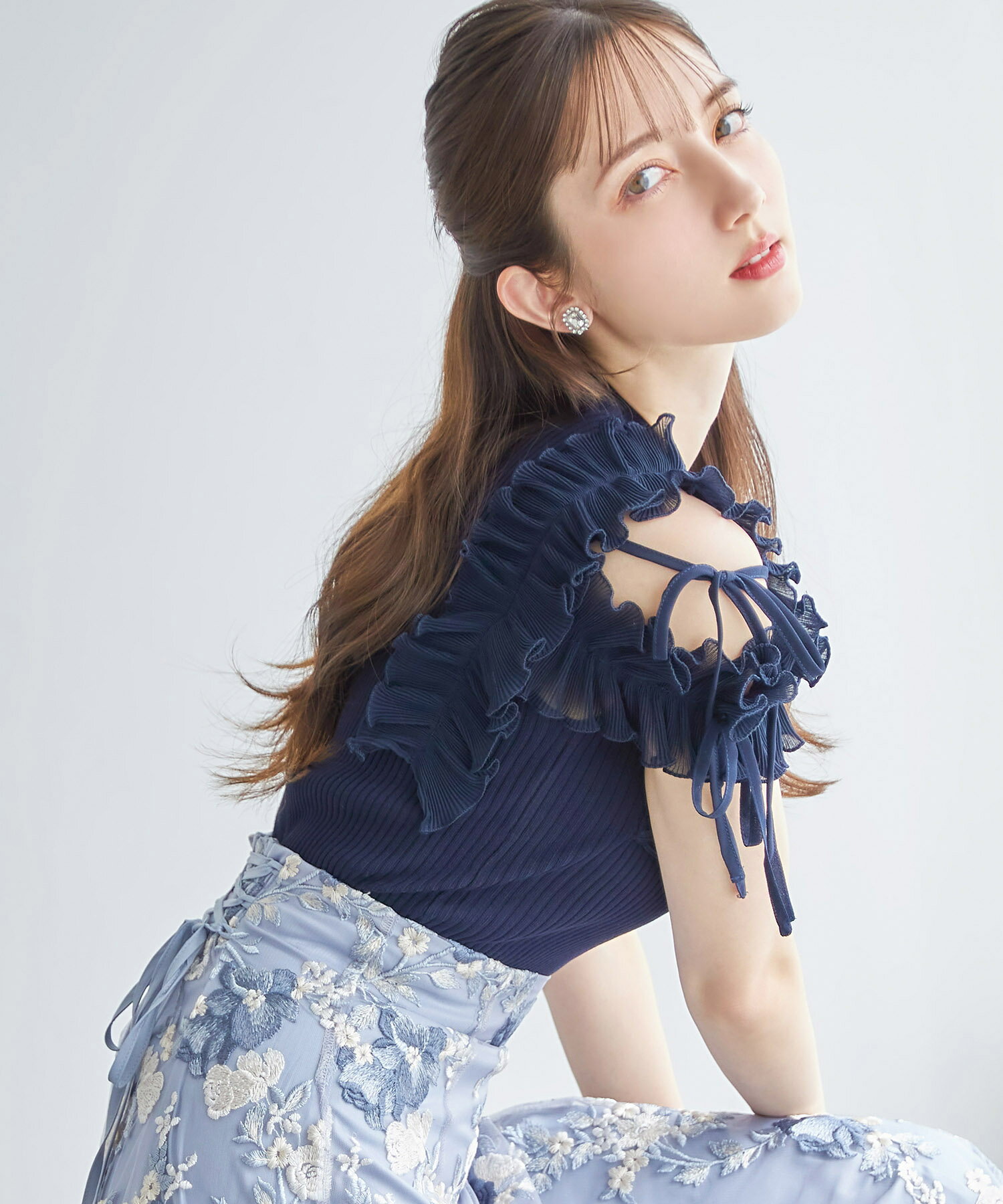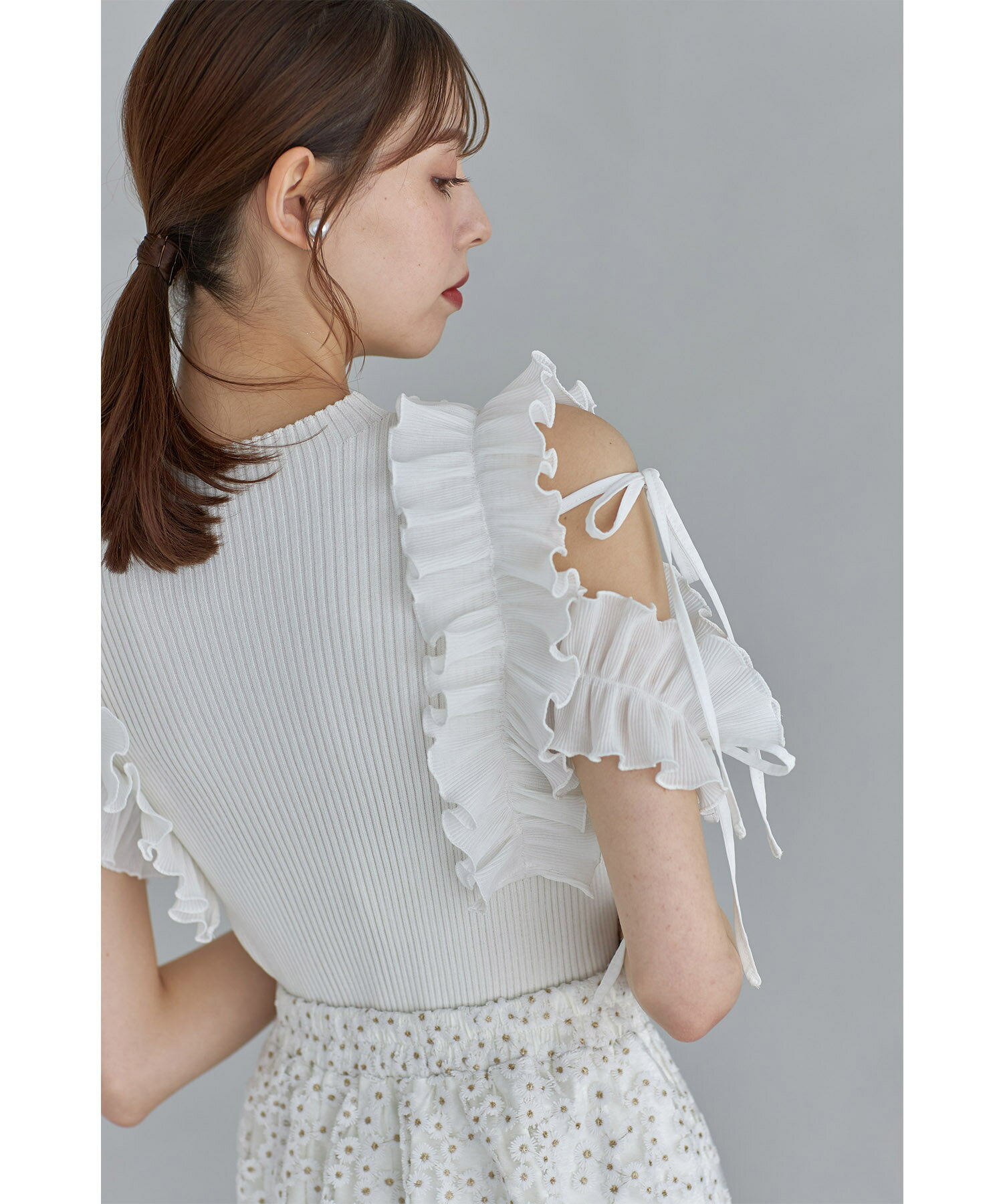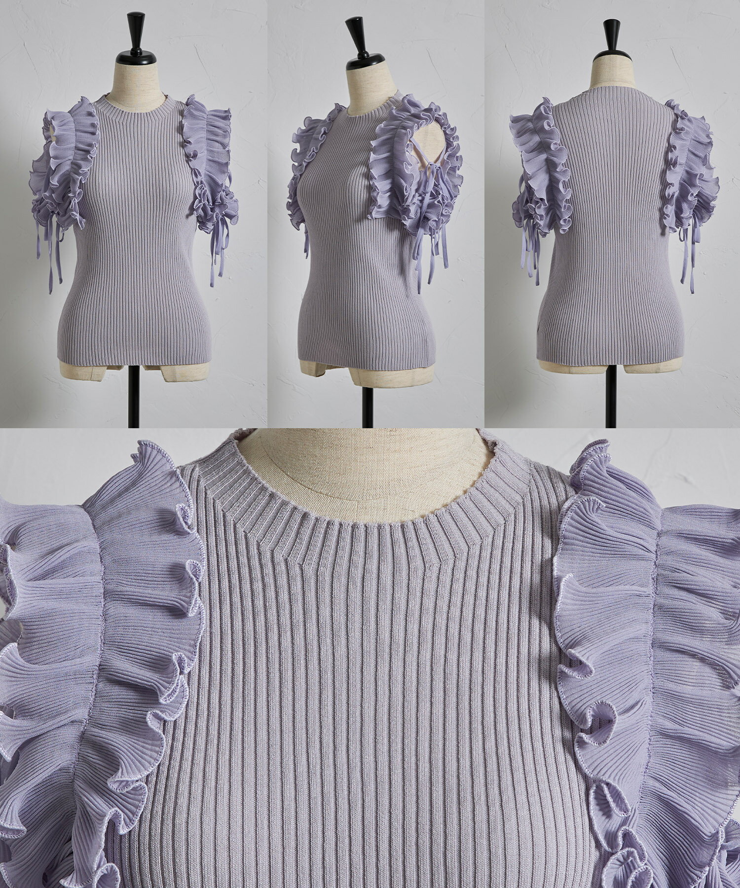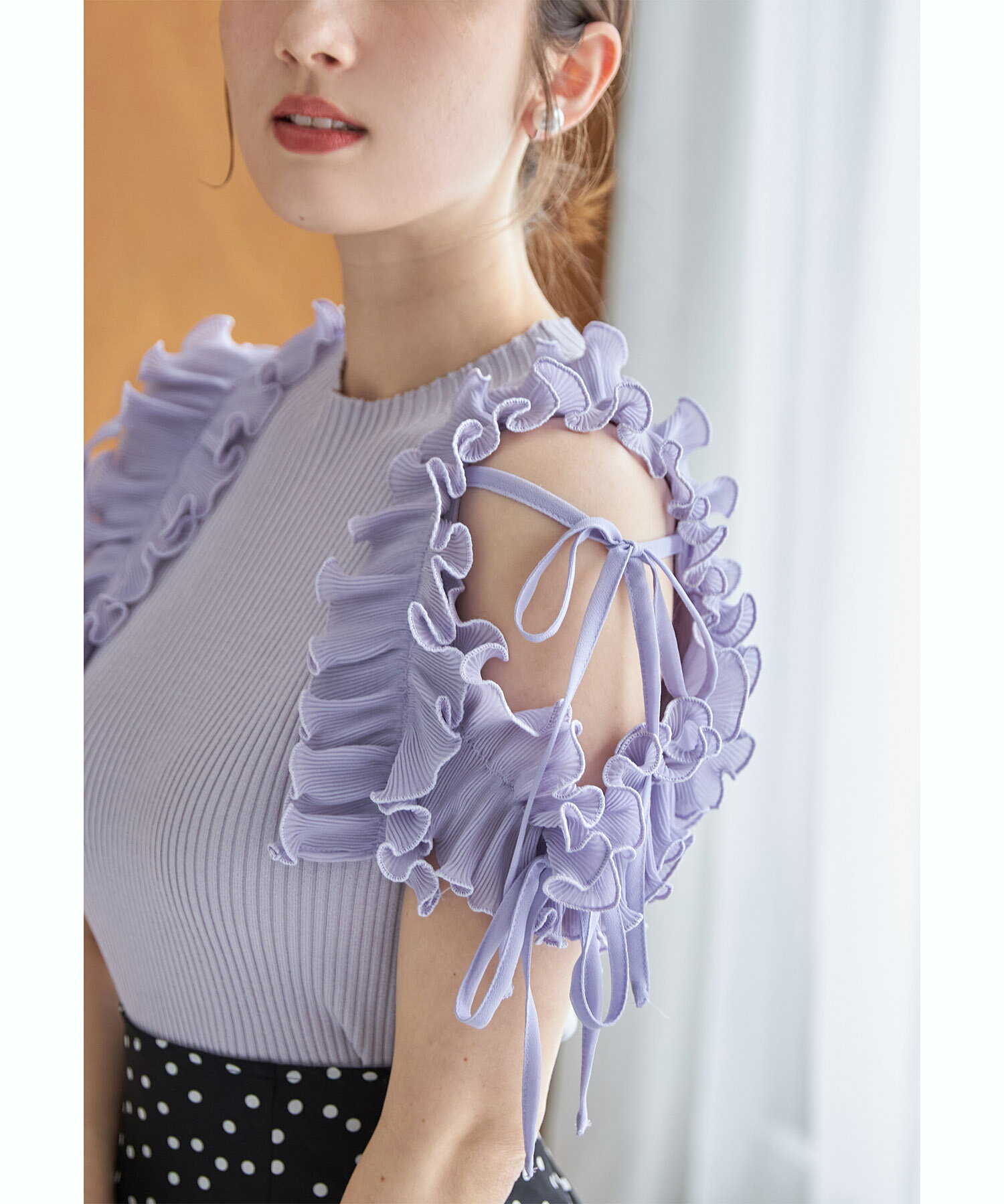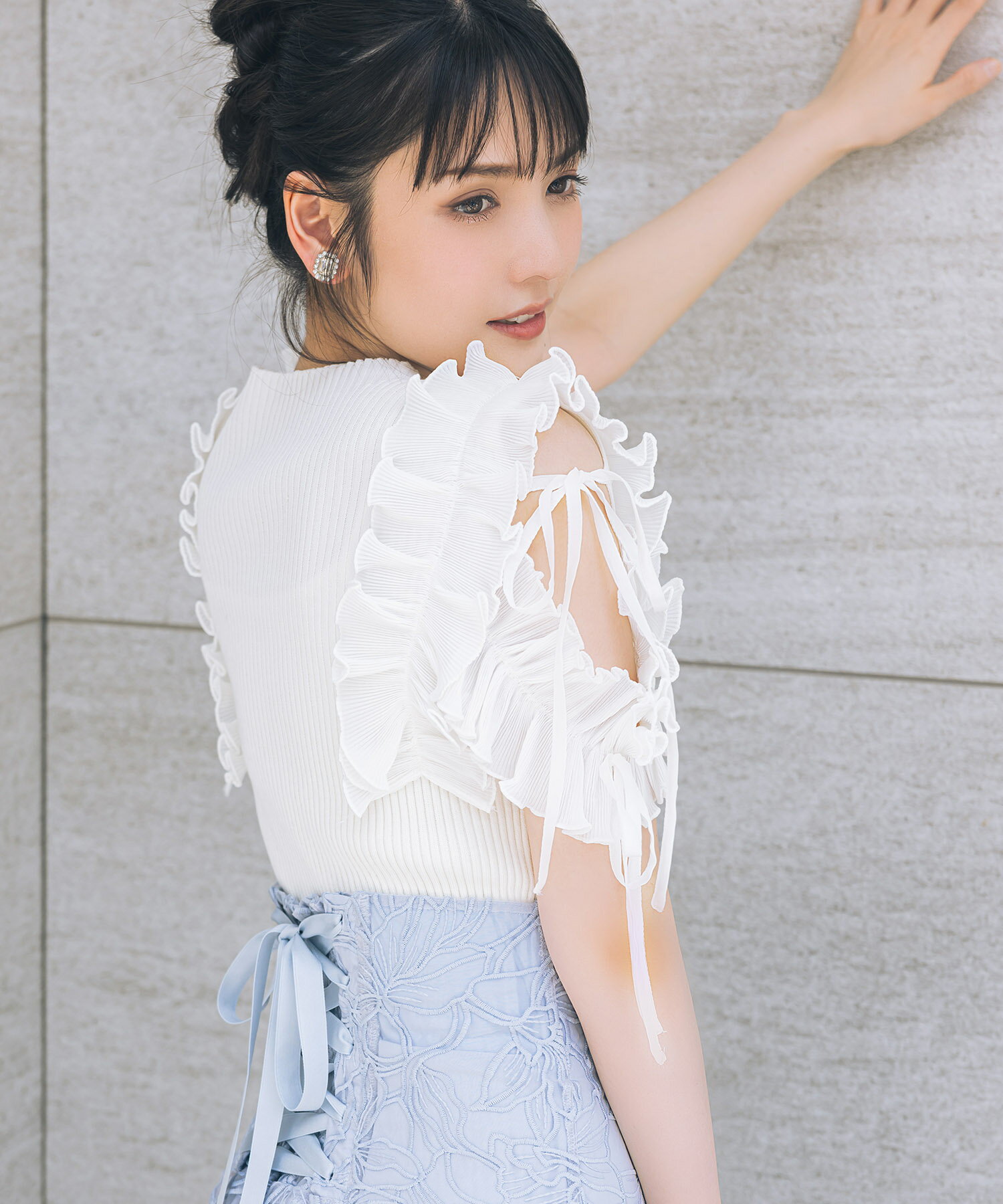 りぼん付きプリーツシフォンフリル切り替えリブニットプルオーバー【ralensis ラレンシス】tocco closet(トッコクローゼット) ※森香澄さん、道重さゆみさんはオフホワイト着用 オフホワイト ラベンダー ネイビー 商品番号:186-182887