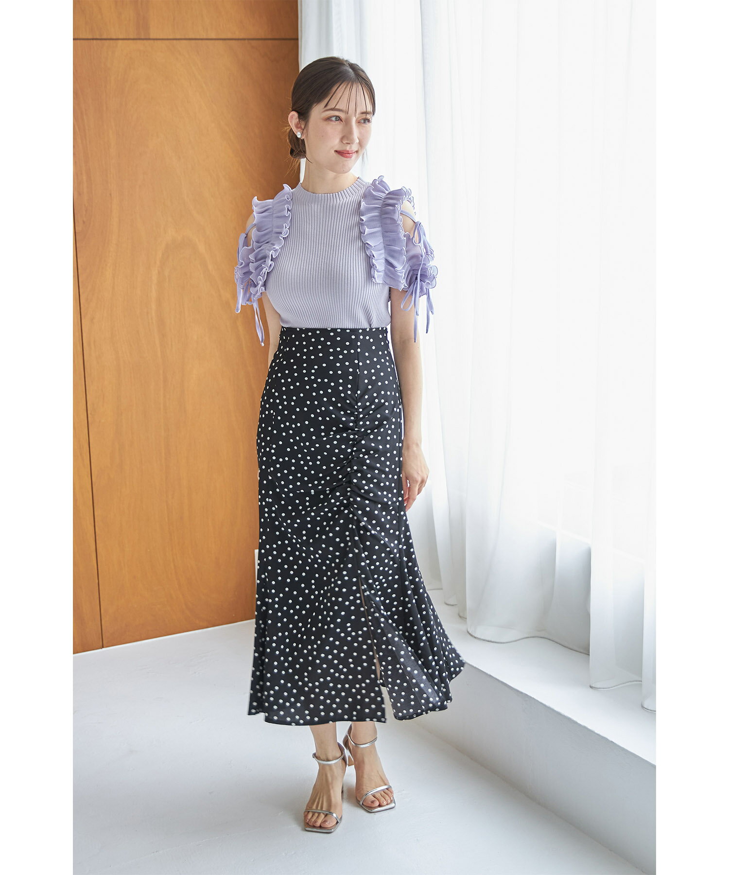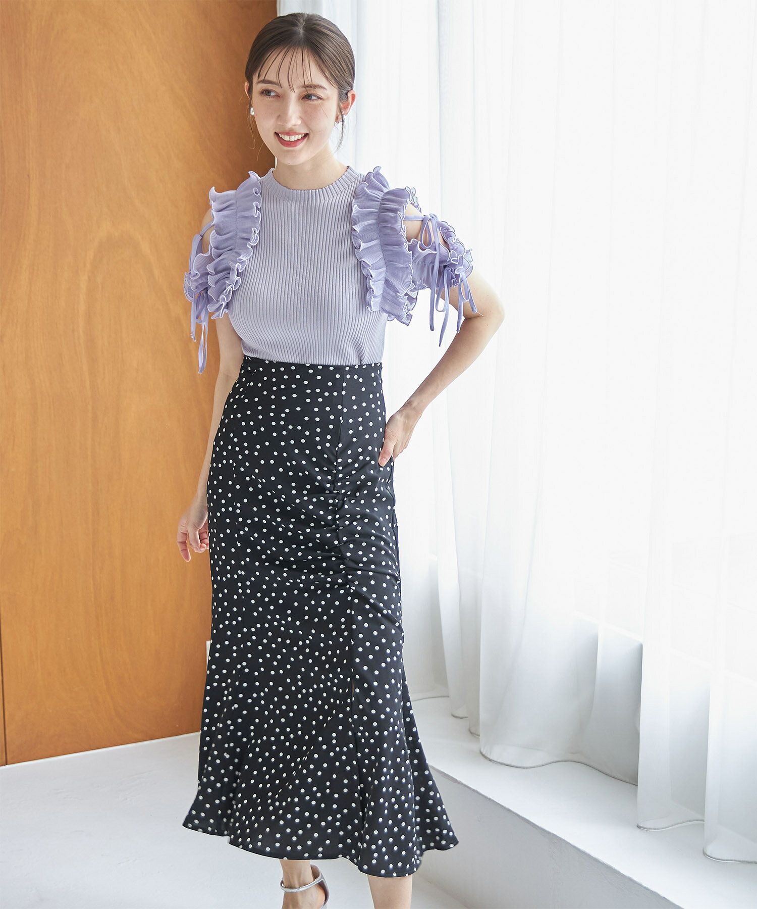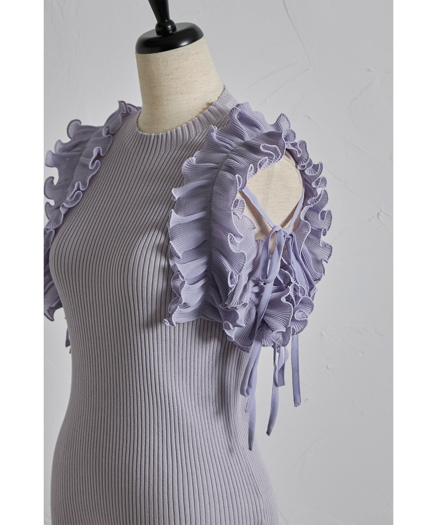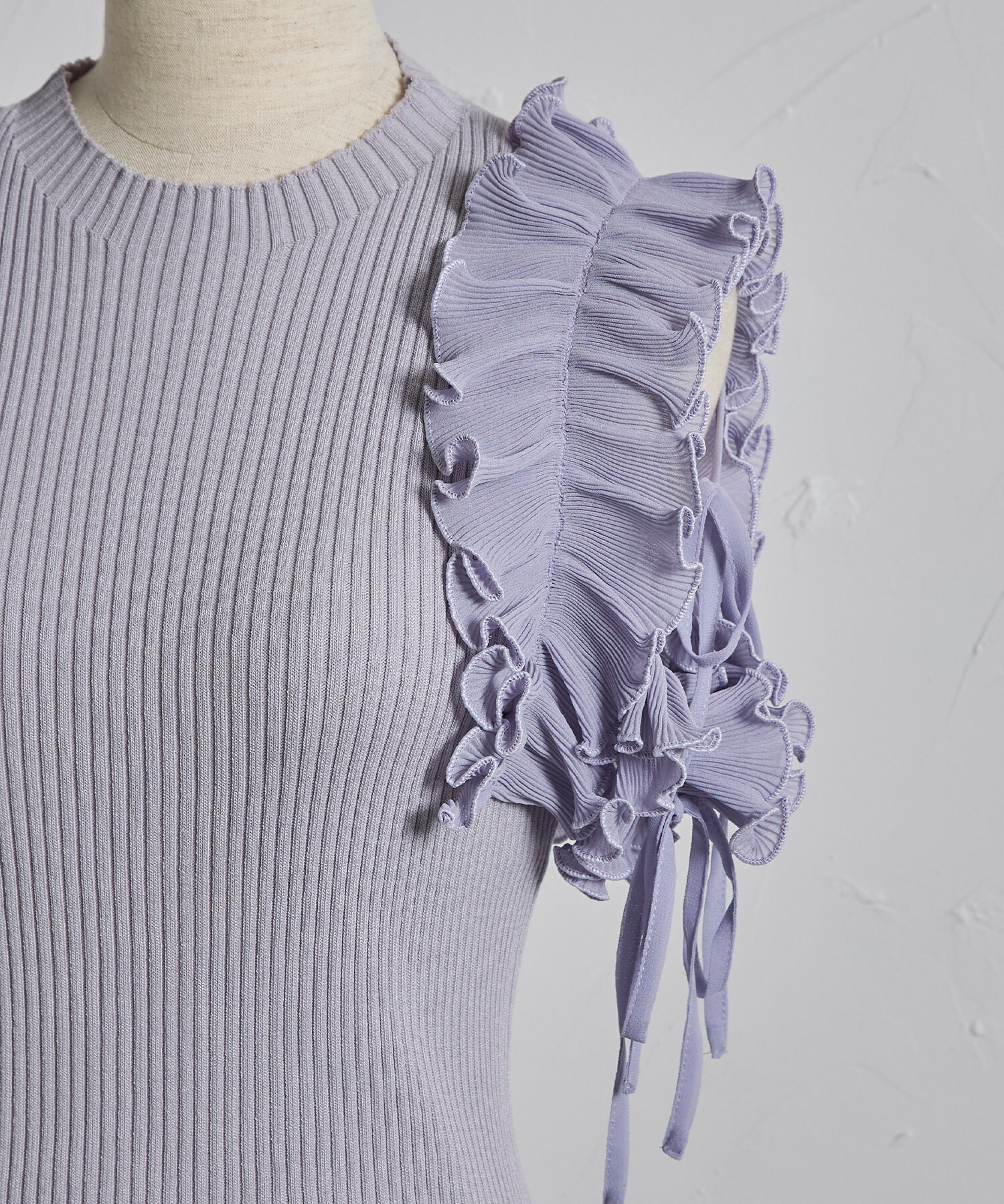 りぼん付きプリーツシフォンフリル切り替えリブニットプルオーバー【ralensis ラレンシス】tocco closet(トッコクローゼット) ※森香澄さん、道重さゆみさんはオフホワイト着用 オフホワイト ラベンダー ネイビー 商品番号:186-182887