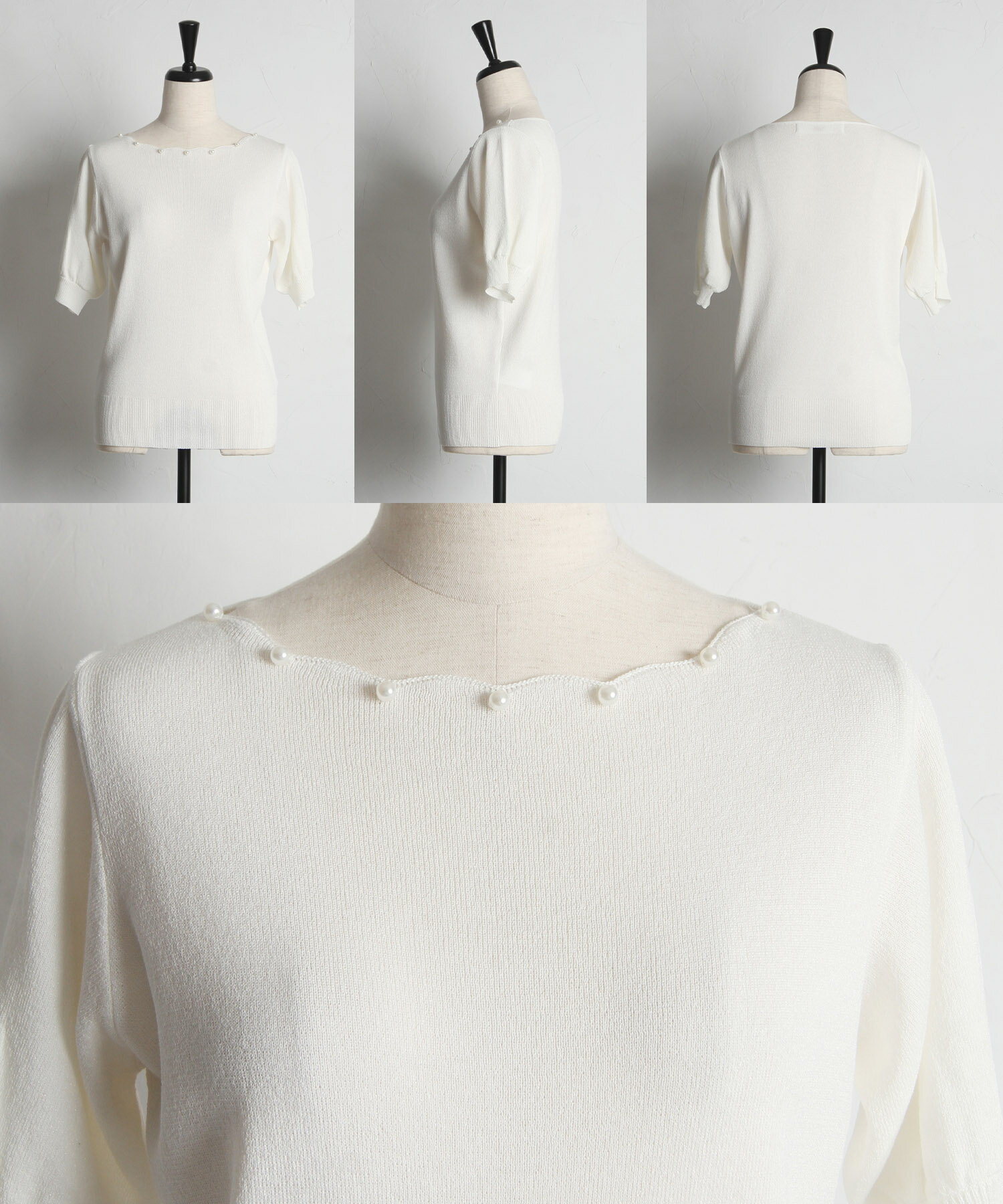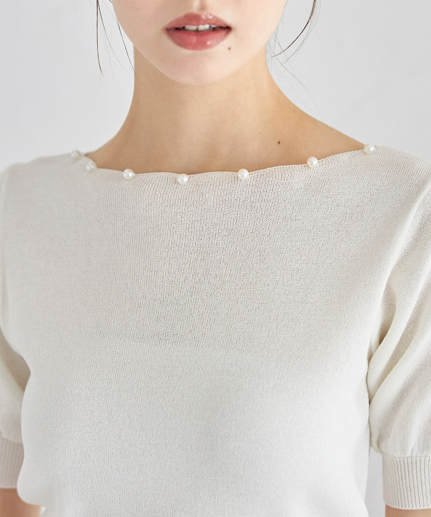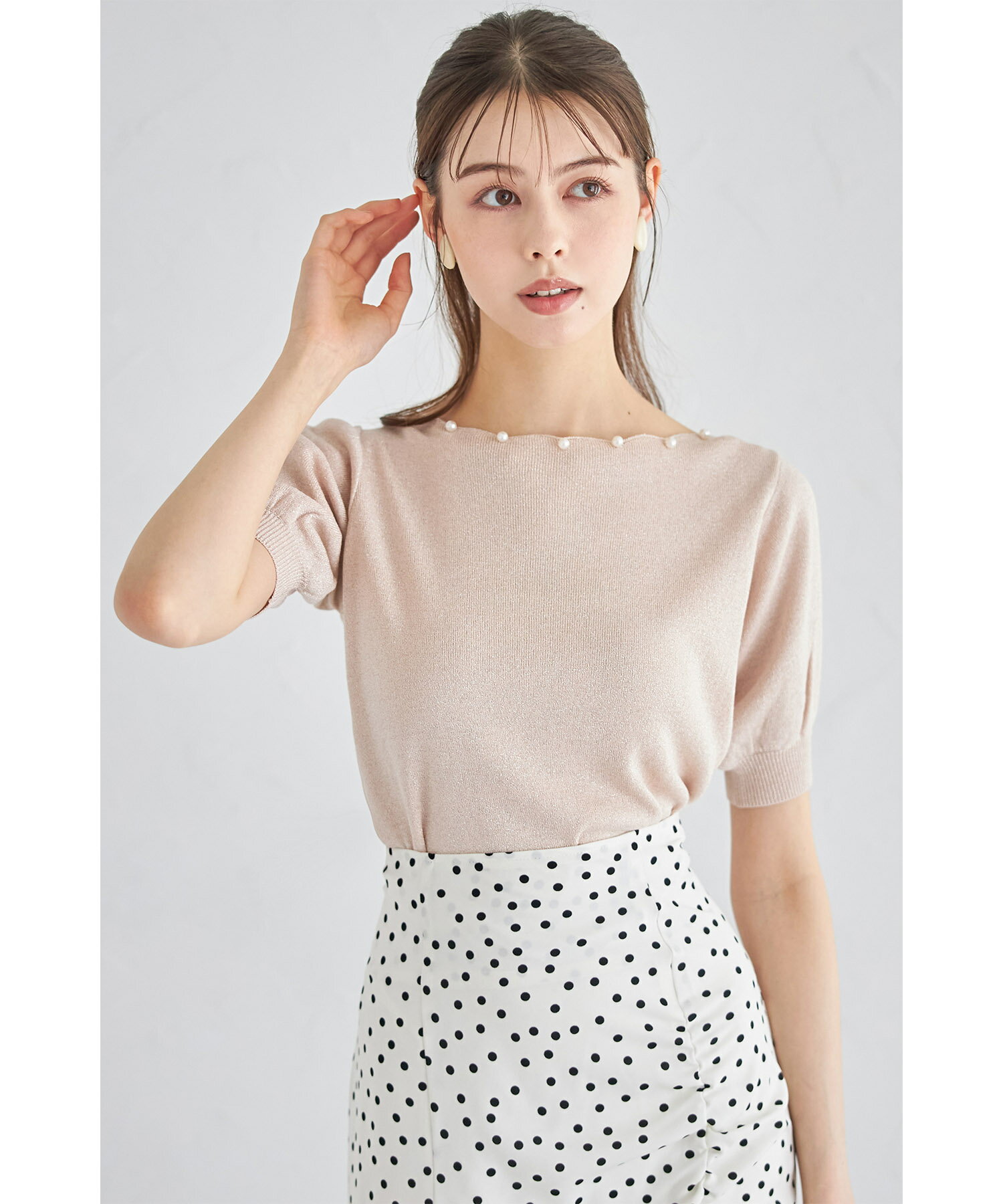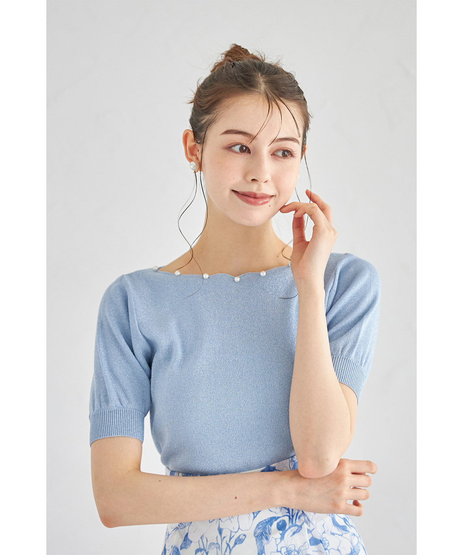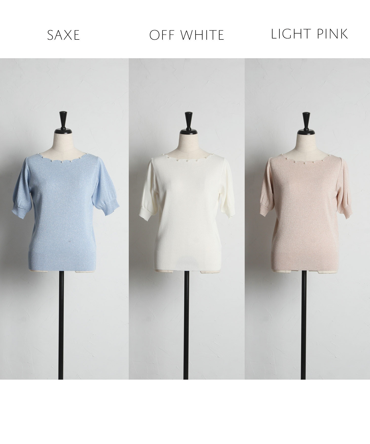 パール付きスカラネックラメニットプルオーバー【camoile カモレ】tocco closet(トッコクローゼット) サックス オフホワイト ライトピンク 商品番号:186-184722