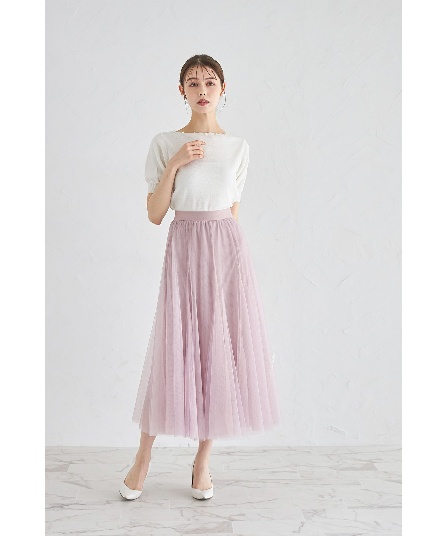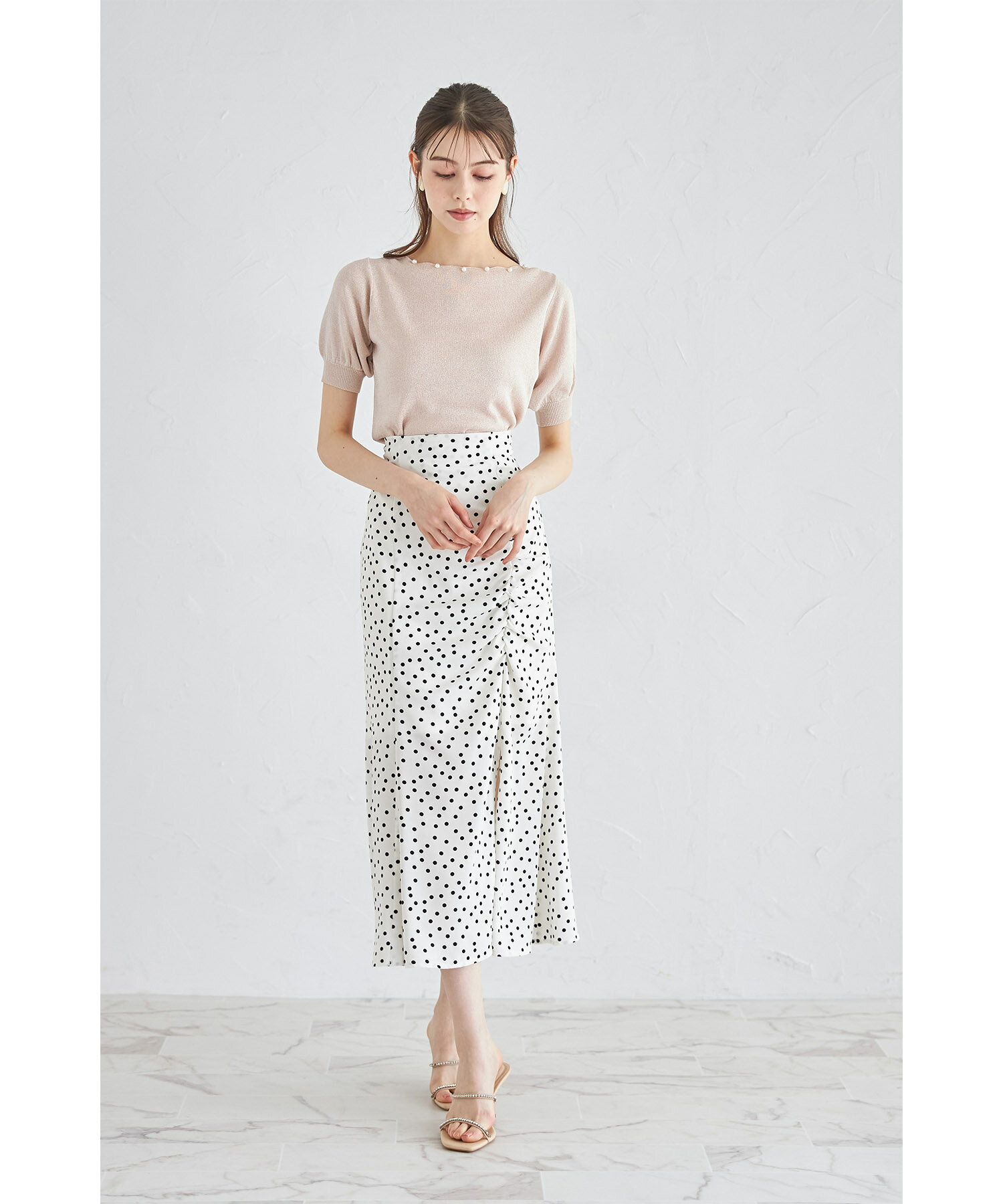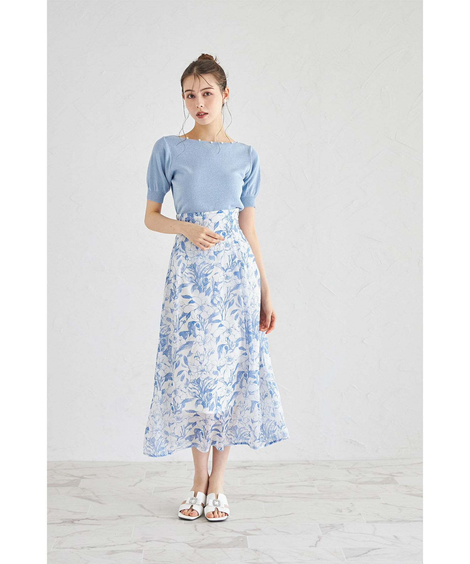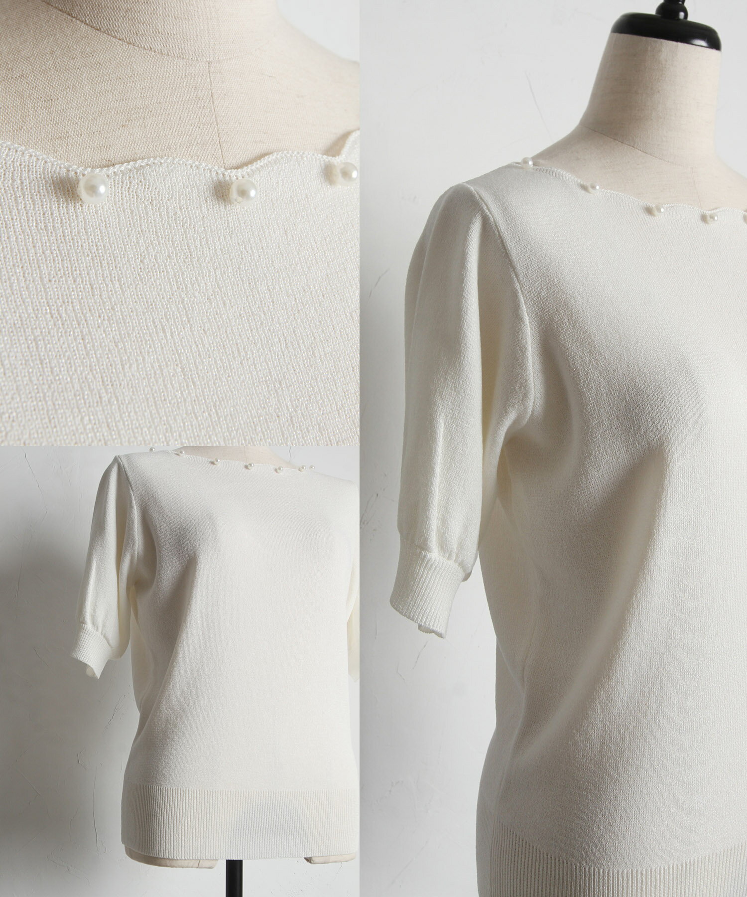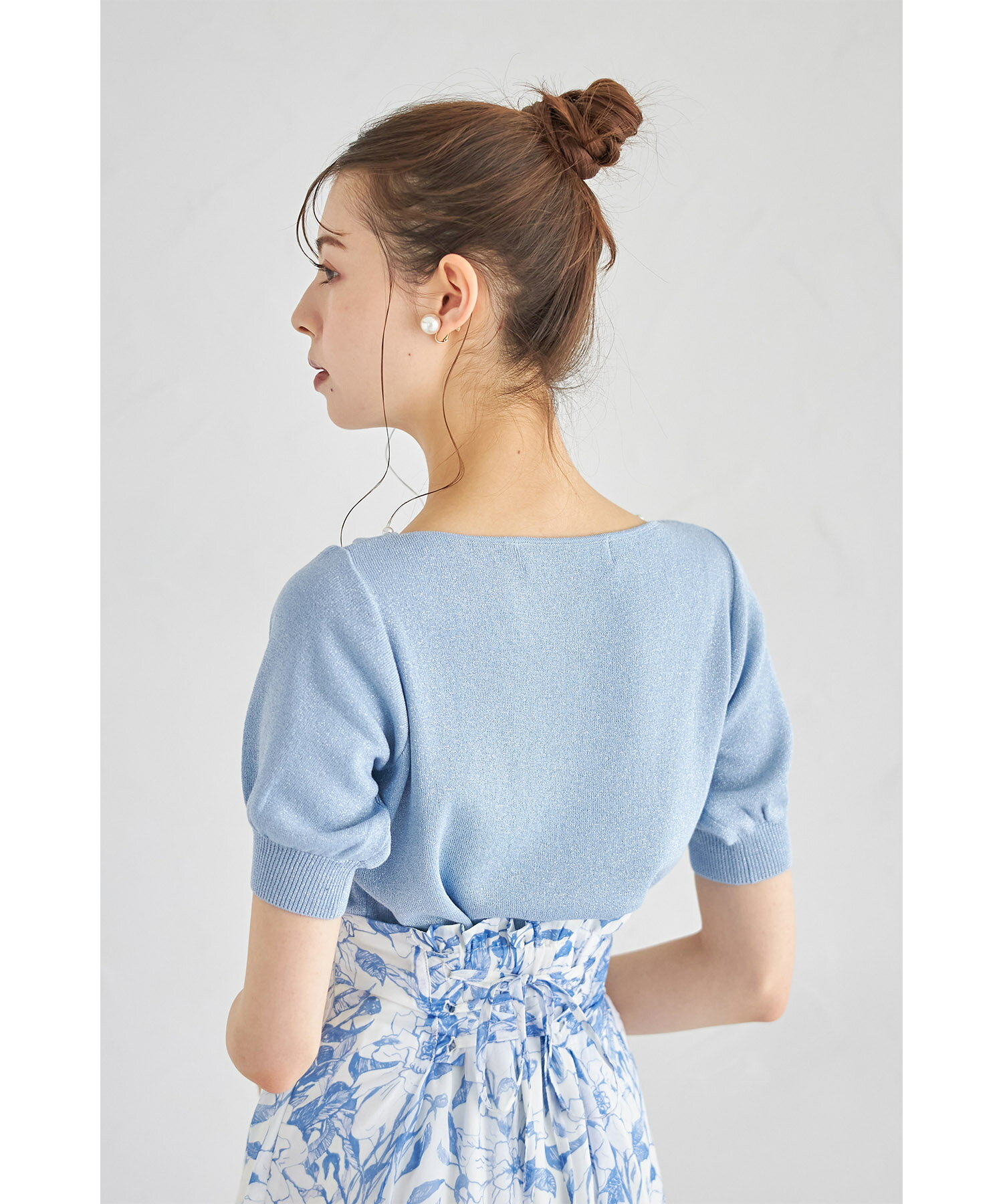 パール付きスカラネックラメニットプルオーバー【camoile カモレ】tocco closet(トッコクローゼット) サックス オフホワイト ライトピンク 商品番号:186-184722
