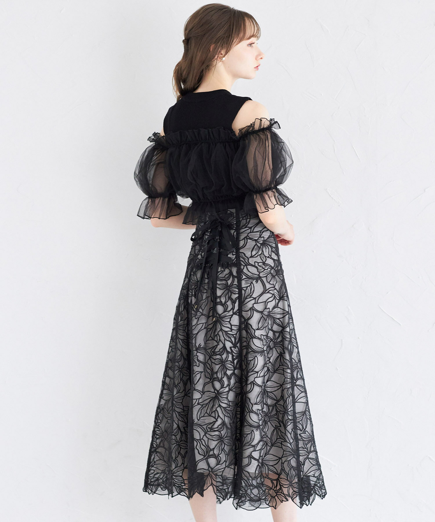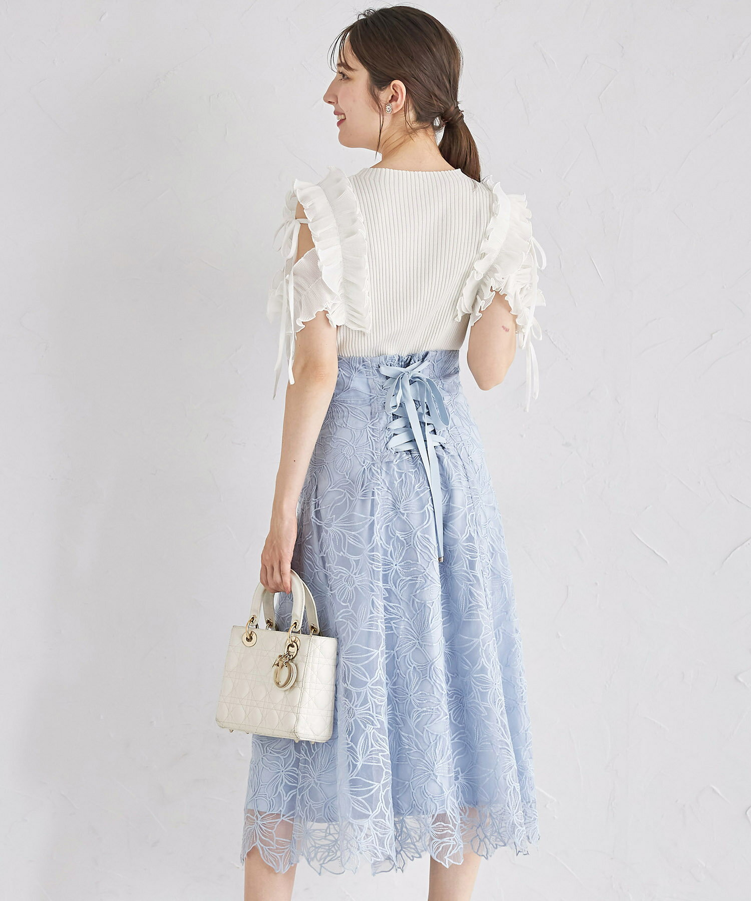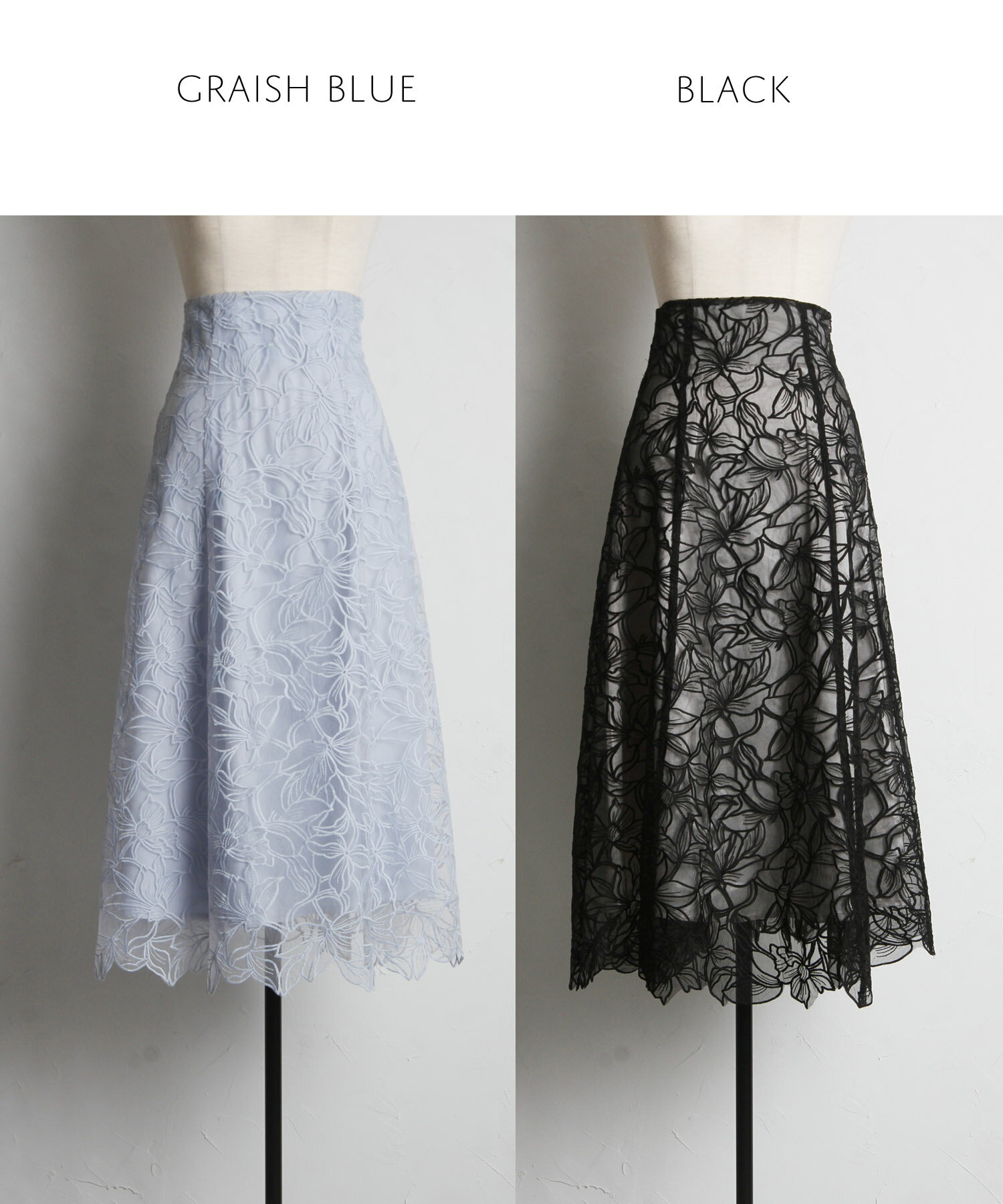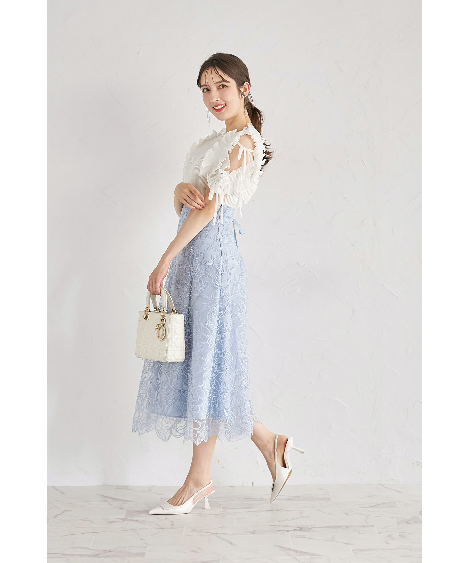 フラワーレース刺繍バックレースアップマーメイドスカート【binelus ビネラス】tocco closet(トッコクローゼット)※道重さゆみさんはグレイッシュブルー着用 グレイッシュブルー ブラック 商品番号:186-184445