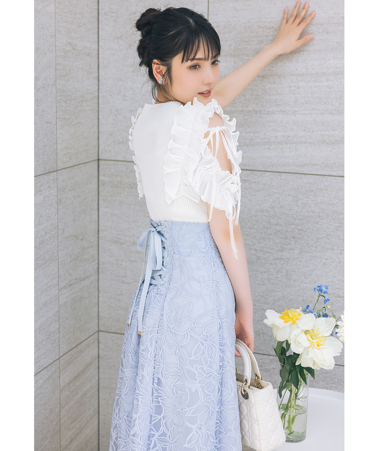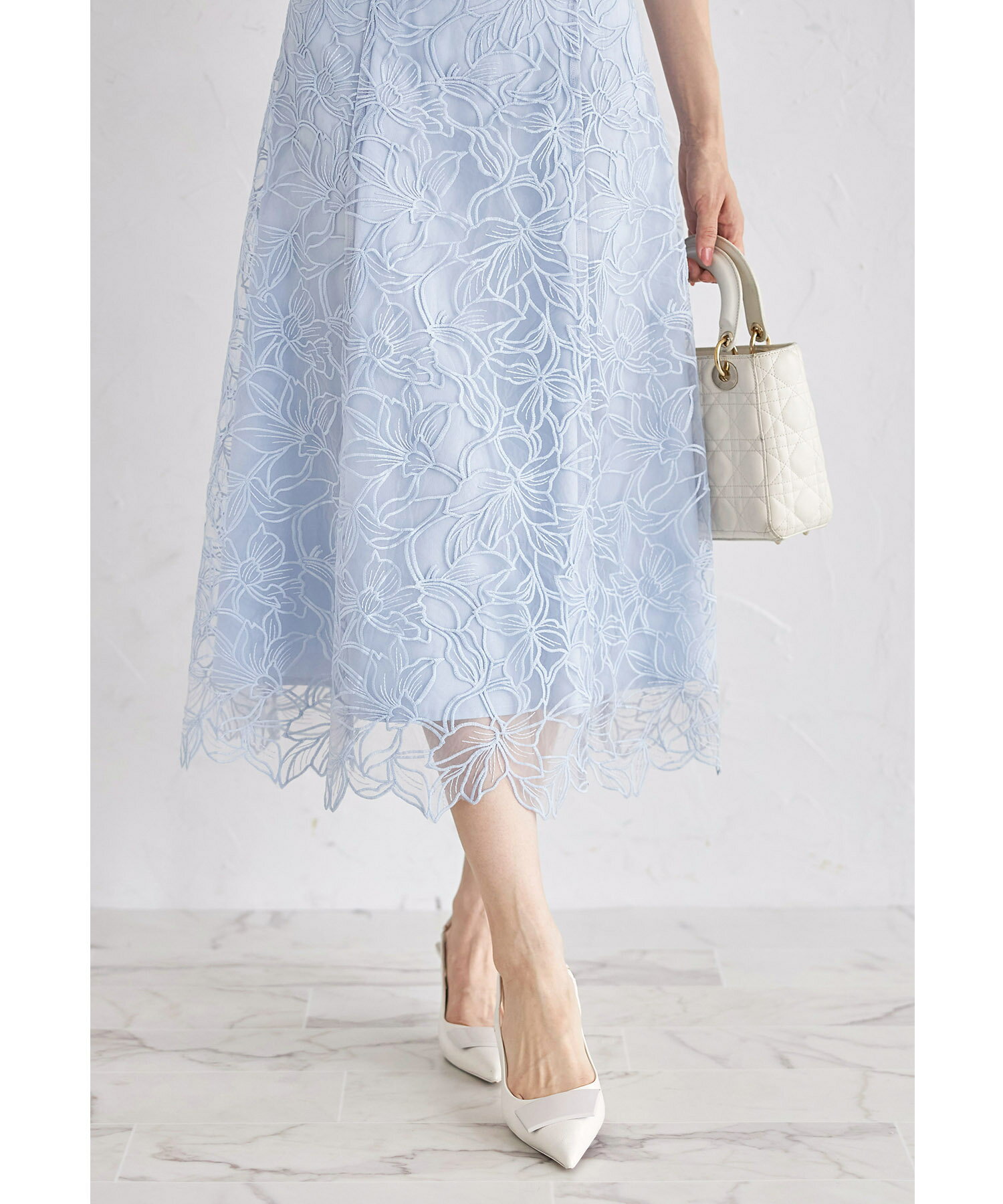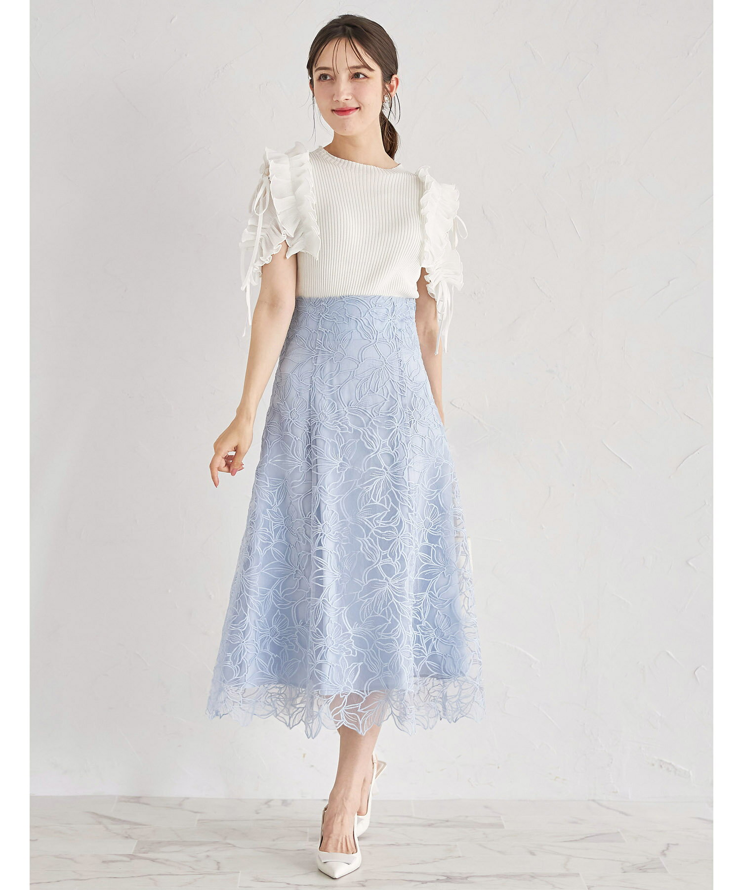 フラワーレース刺繍バックレースアップマーメイドスカート【binelus ビネラス】tocco closet(トッコクローゼット)※道重さゆみさんはグレイッシュブルー着用 グレイッシュブルー ブラック 商品番号:186-184445