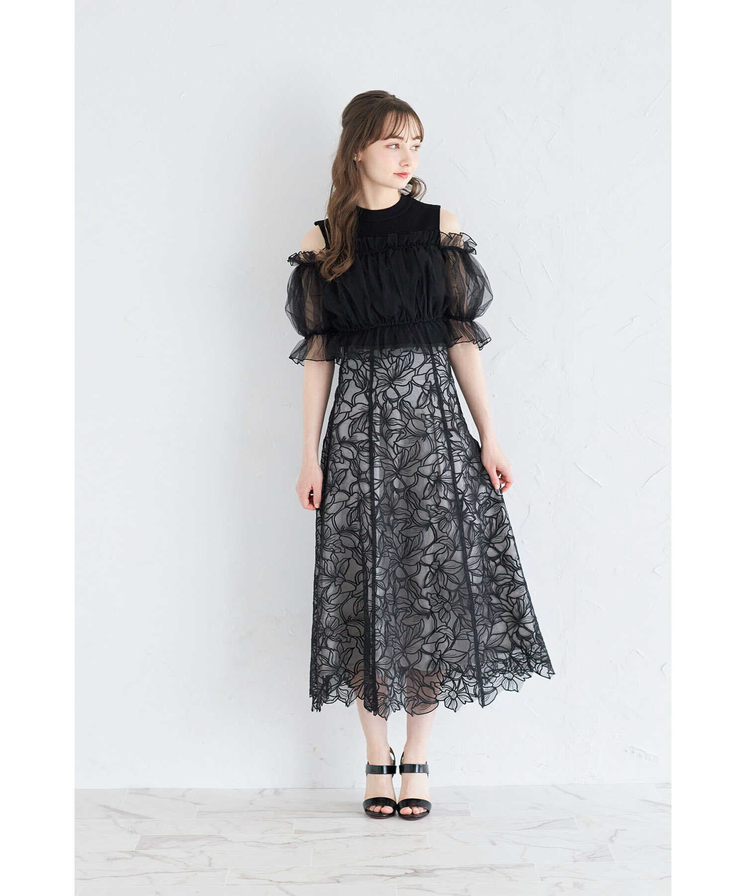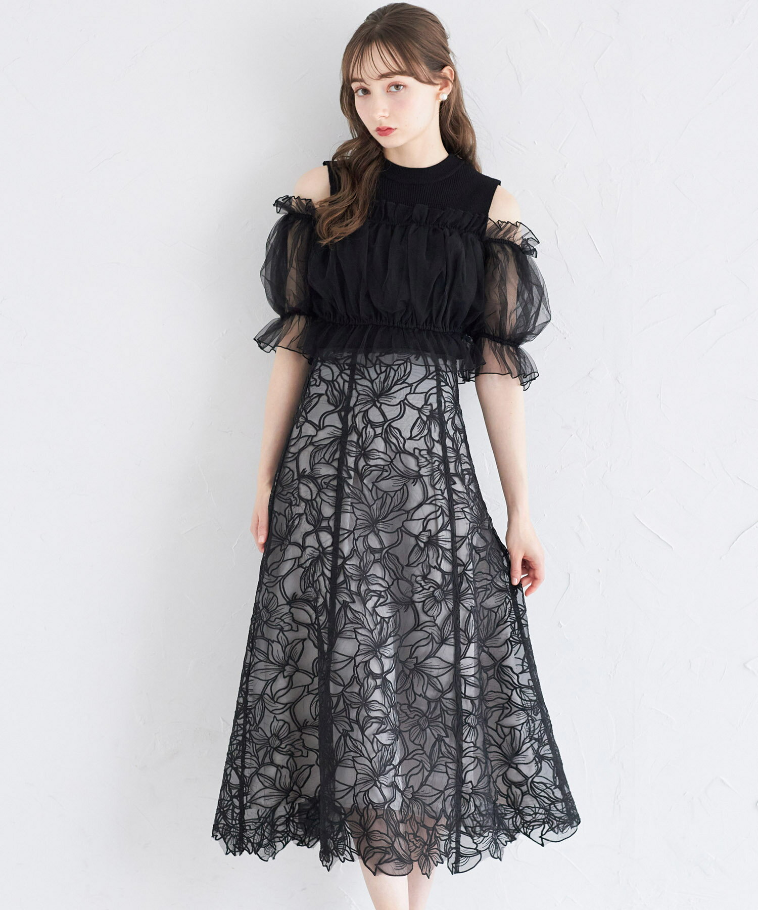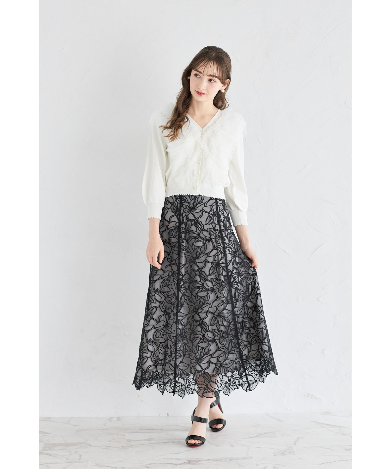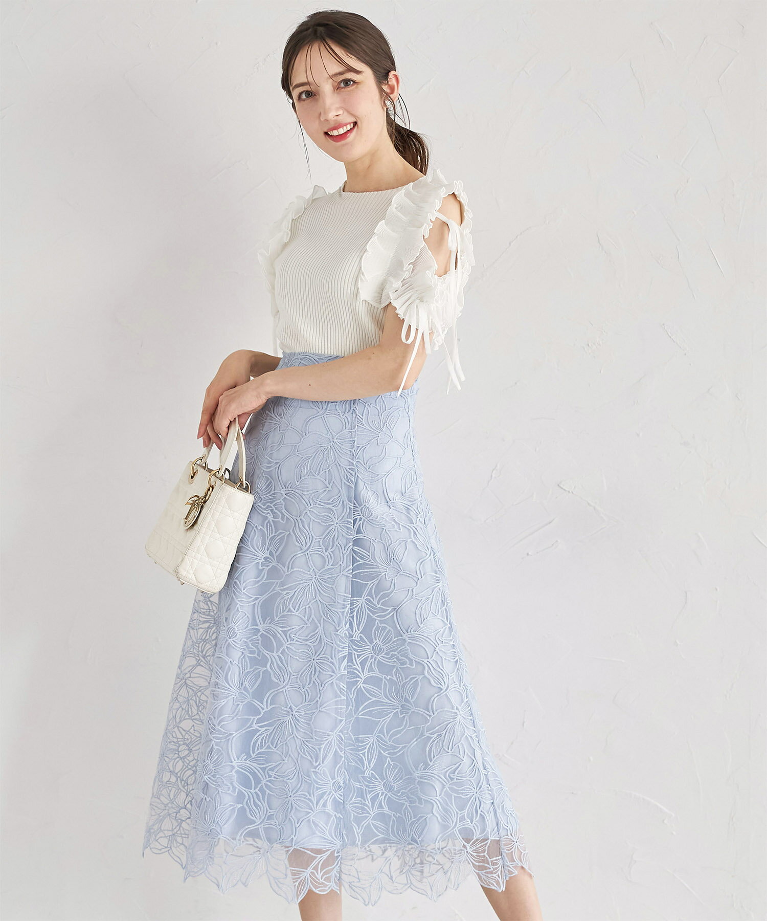 フラワーレース刺繍バックレースアップマーメイドスカート【binelus ビネラス】tocco closet(トッコクローゼット)※道重さゆみさんはグレイッシュブルー着用 グレイッシュブルー ブラック 商品番号:186-184445