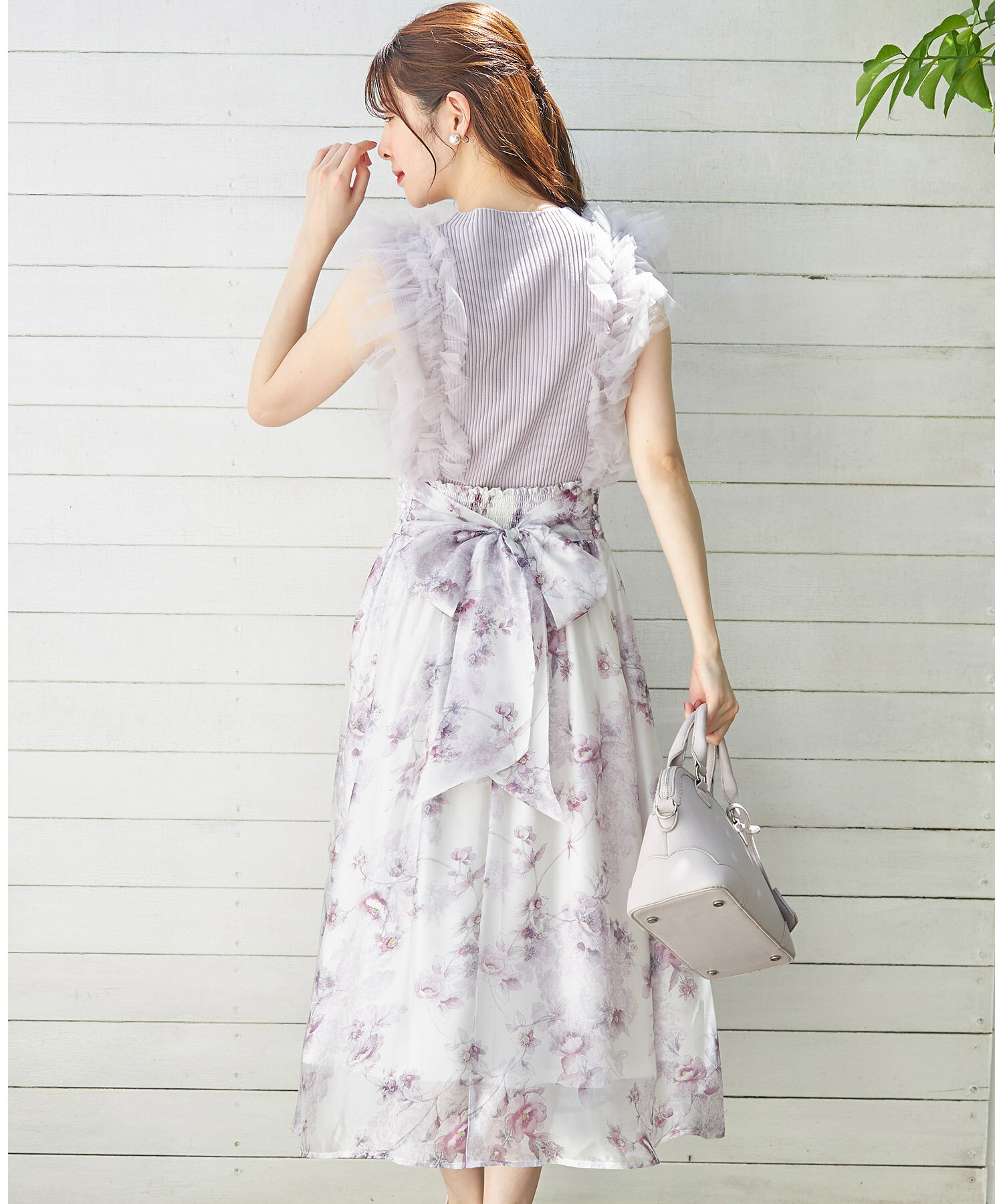 取り外し可能な3WAYビックリボン付きシアーフラワープリントスカート【natioa ナティオア】tocco closet(トッコクローゼット) グレイッシュピンク グレイッシュブルー 商品番号:186-186775