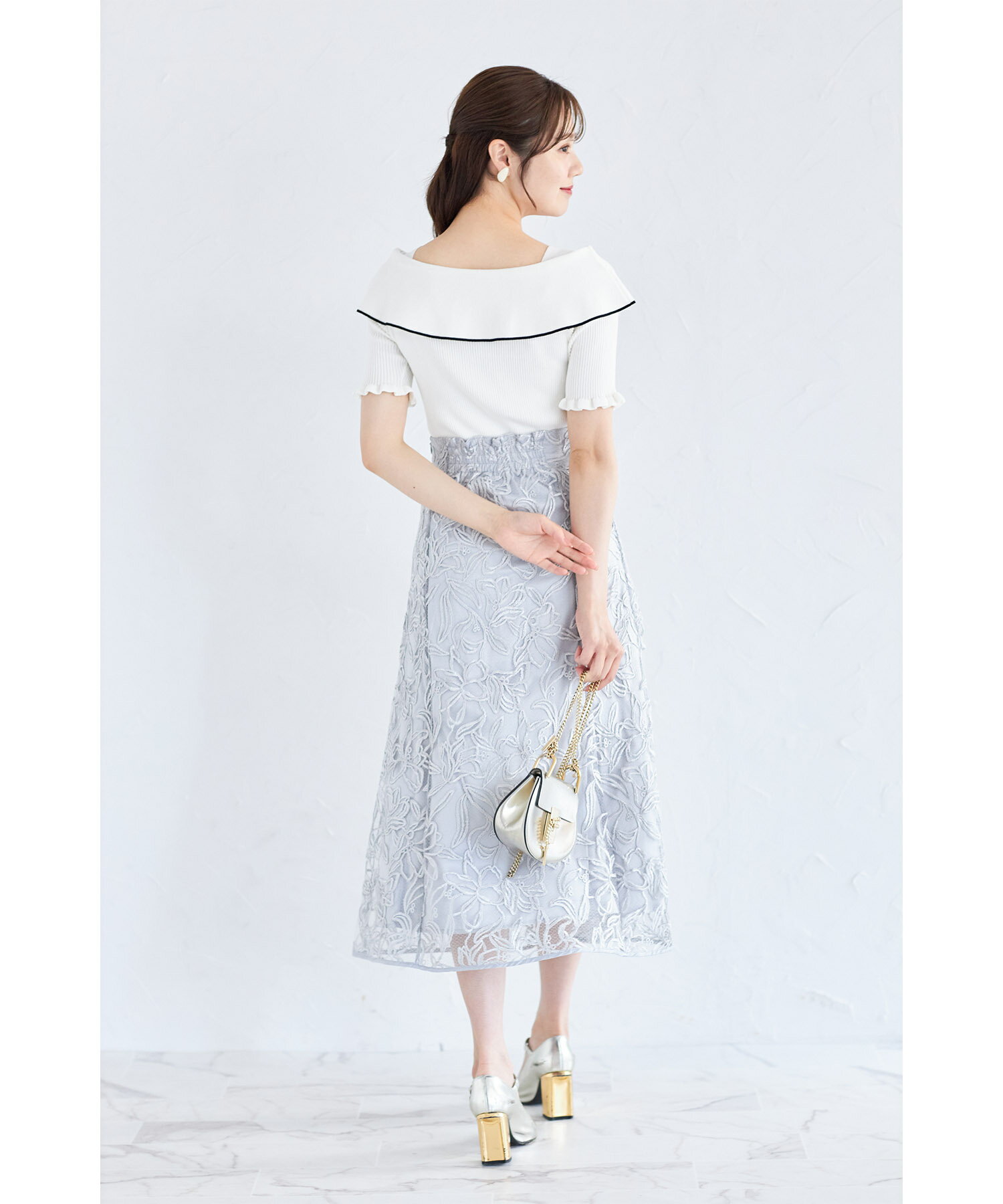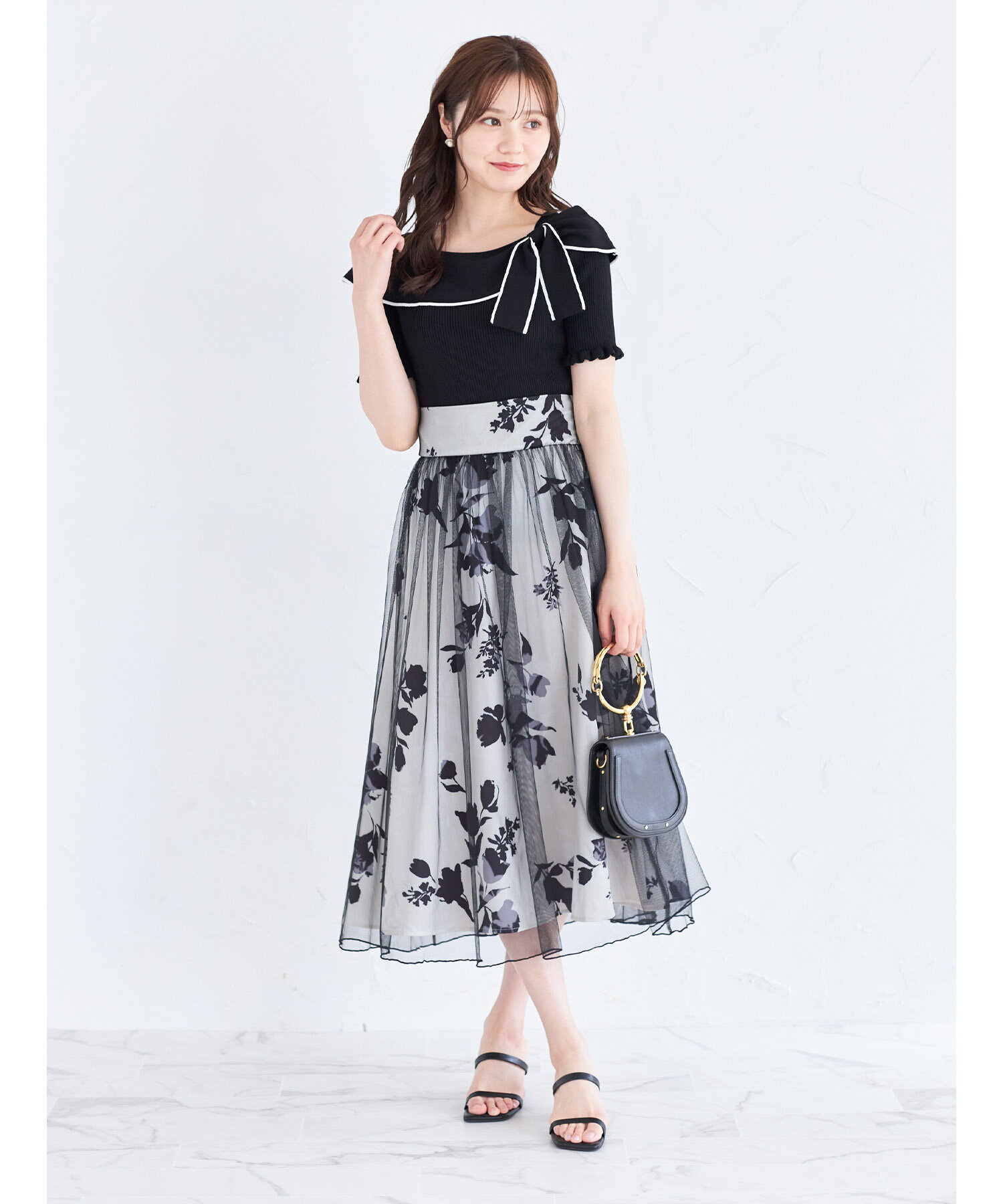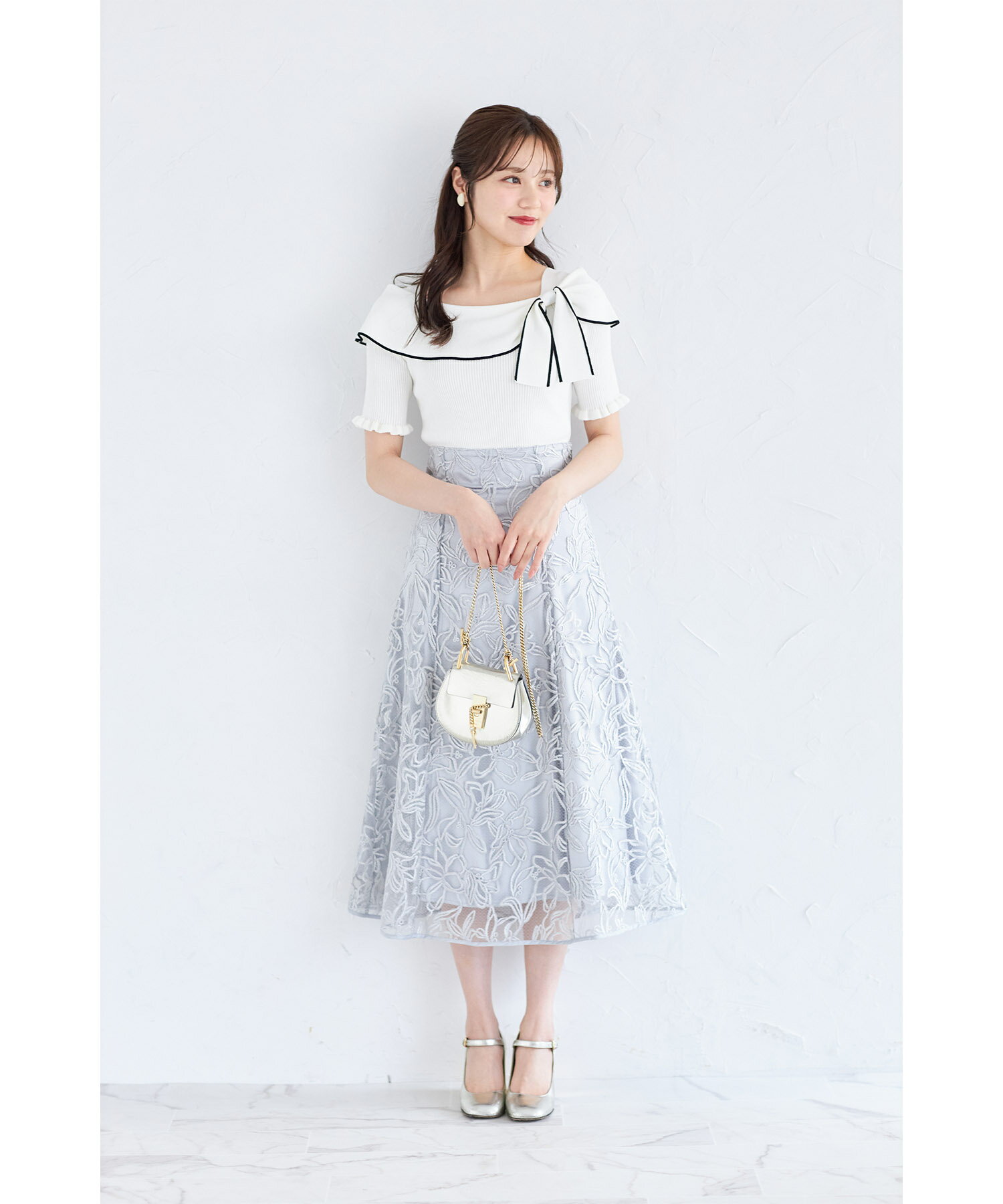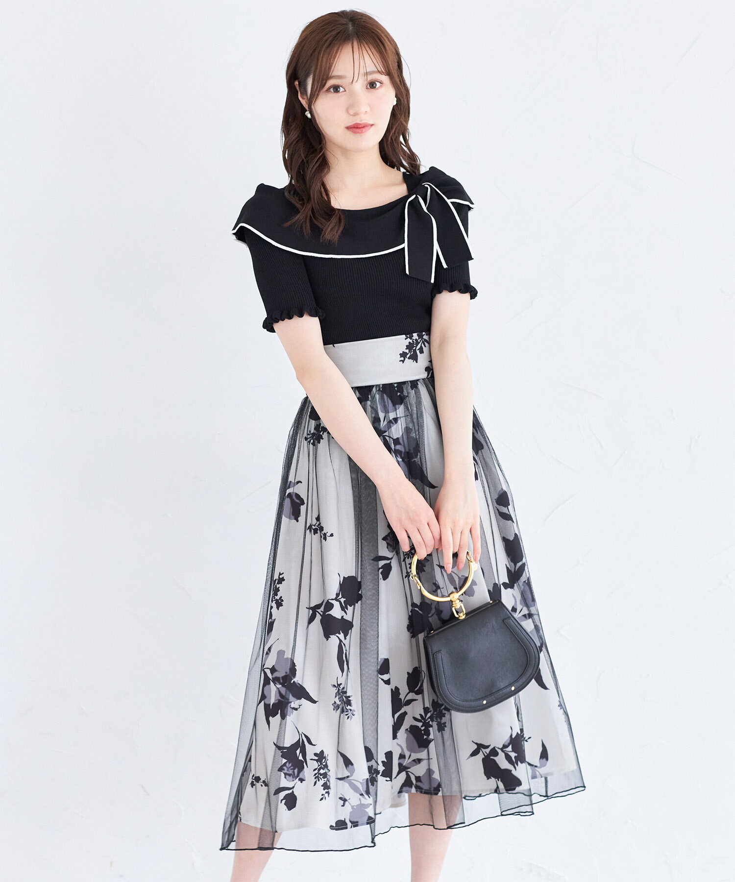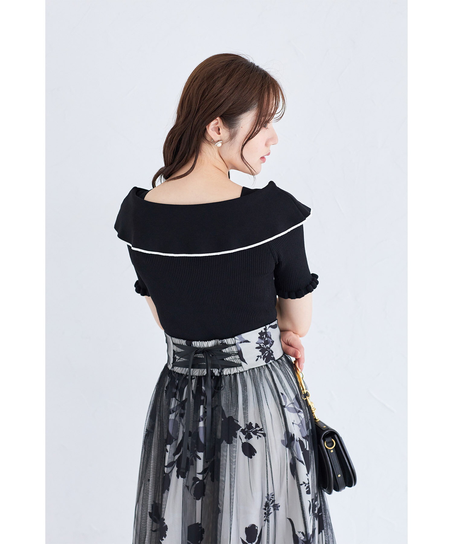 リボン付き配色ライン入りオフショルリブニットプルオーバー【joresy ジョレシー】tocco closet(トッコクローゼット) オフホワイト ブラック アイスグレー 商品番号:186-185180