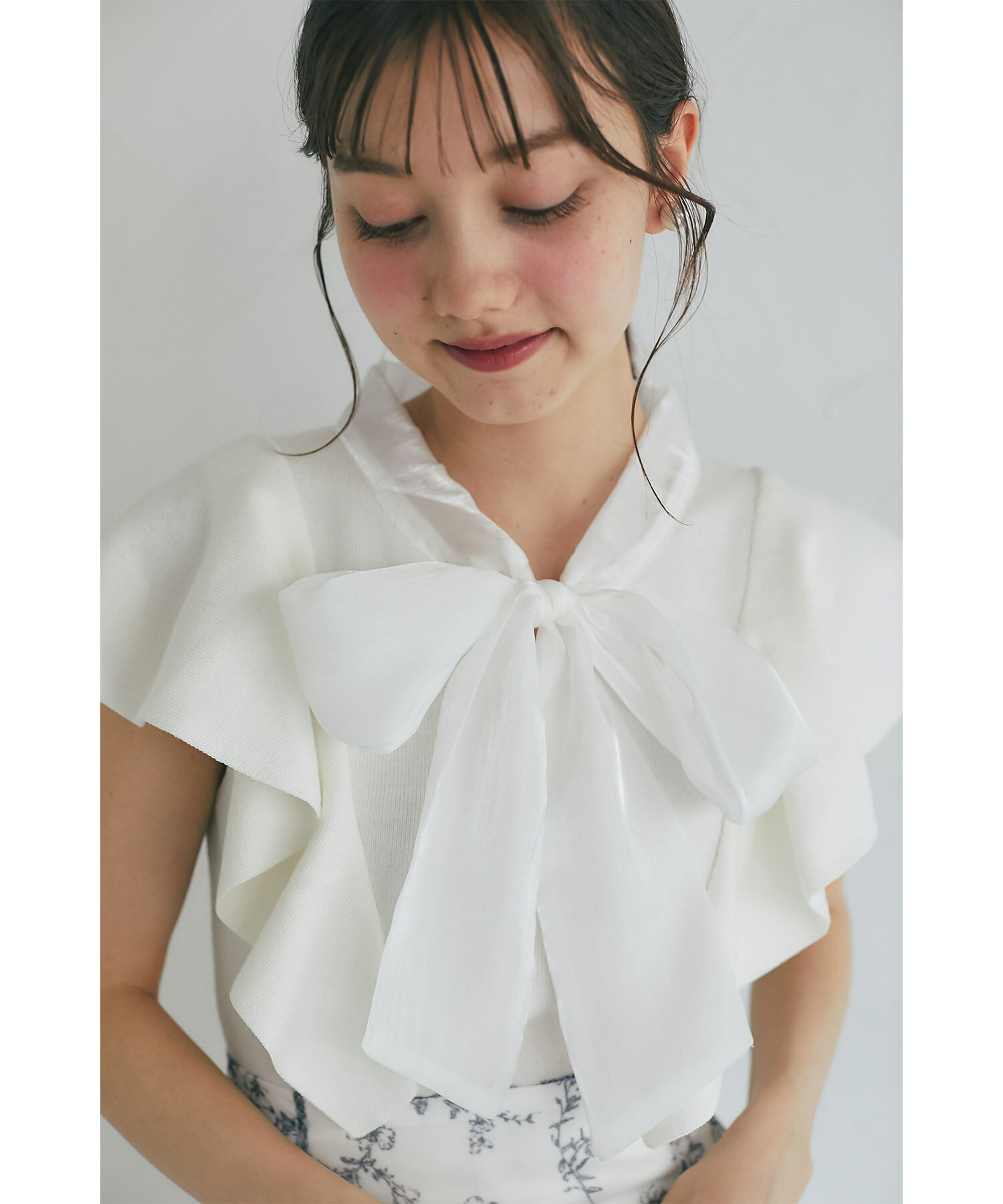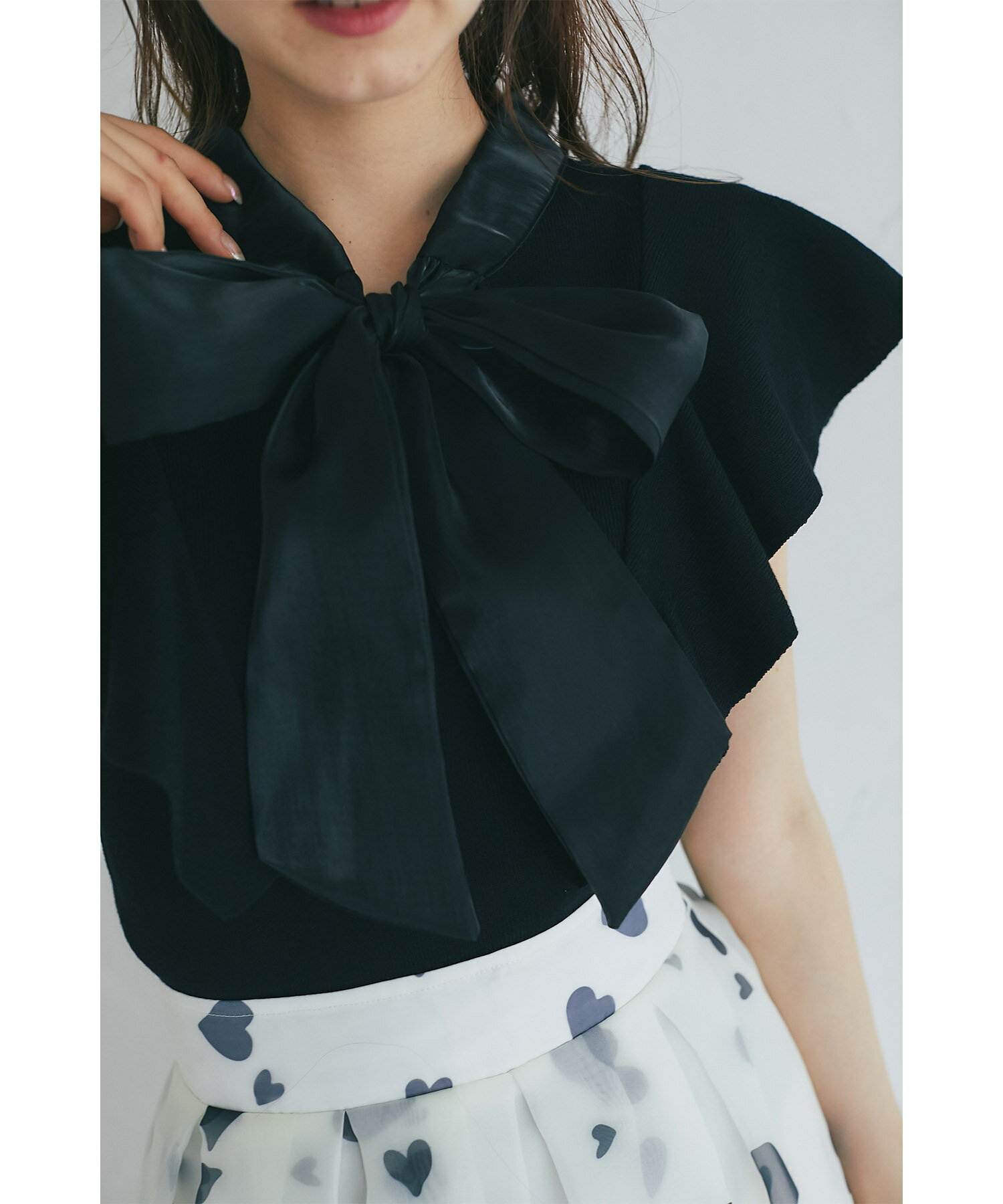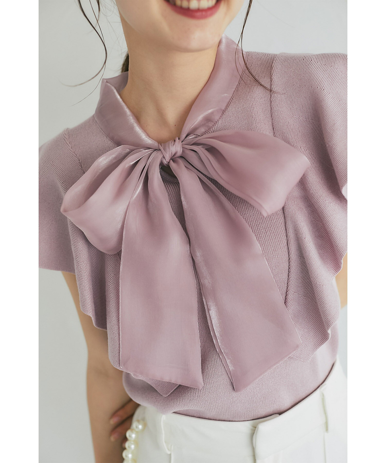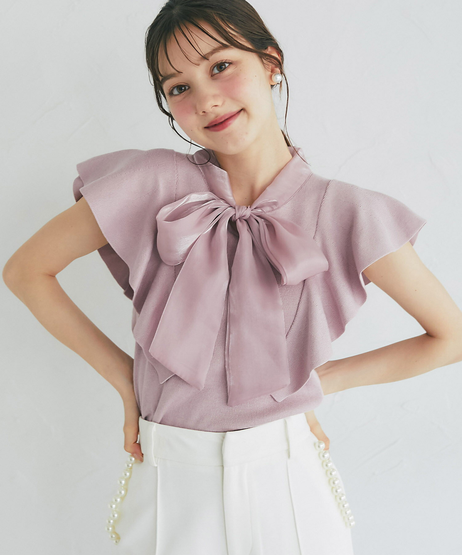 シアーボウタイリボン付き切り替えニットプルオーバー【awberry アウベリー】tocco closet(トッコクローゼット) ※松川星さんはブラック着用 ブラック オフホワイト ピンク 商品番号:186-185307