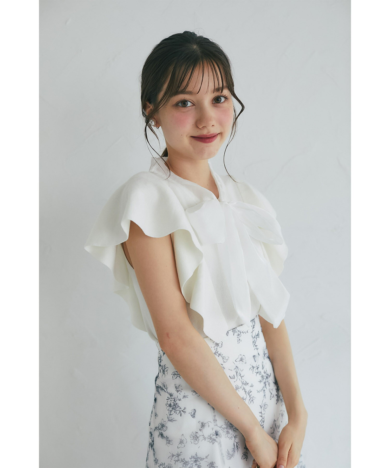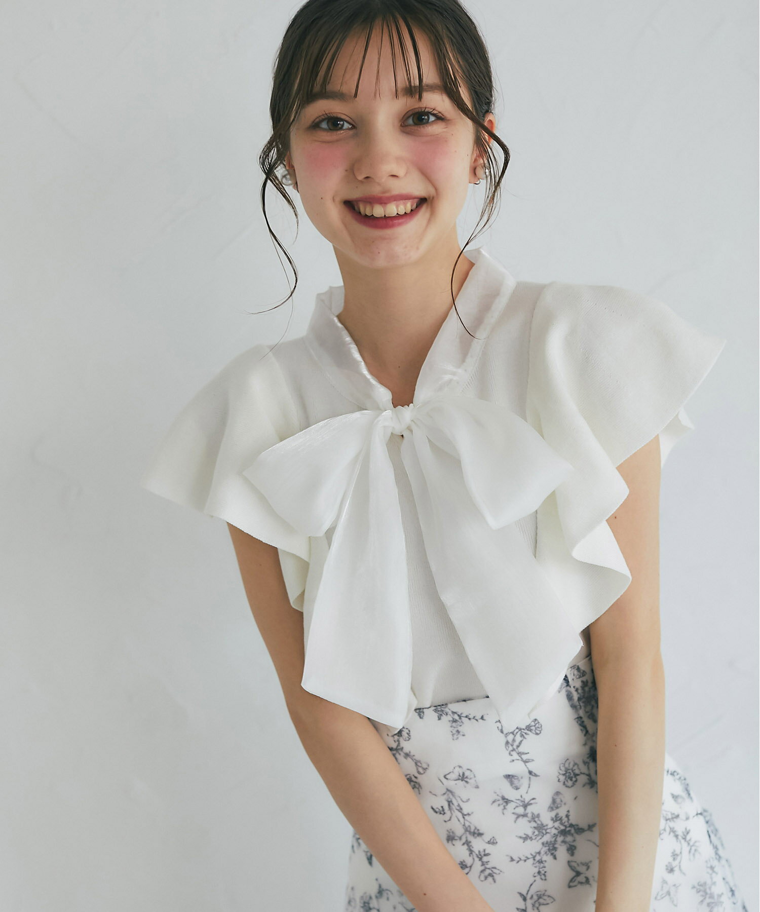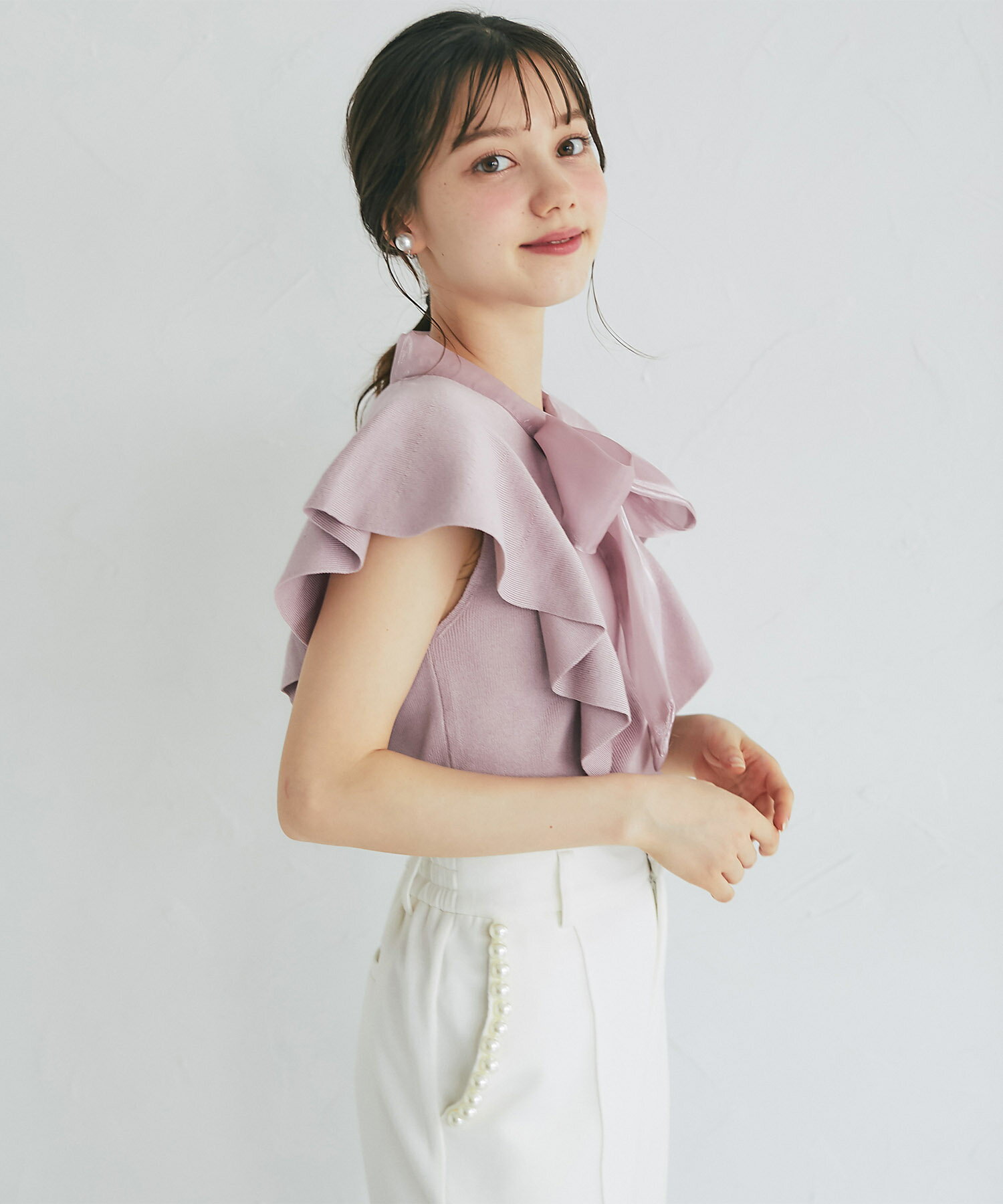 シアーボウタイリボン付き切り替えニットプルオーバー【awberry アウベリー】tocco closet(トッコクローゼット) ※松川星さんはブラック着用 ブラック オフホワイト ピンク 商品番号:186-185307