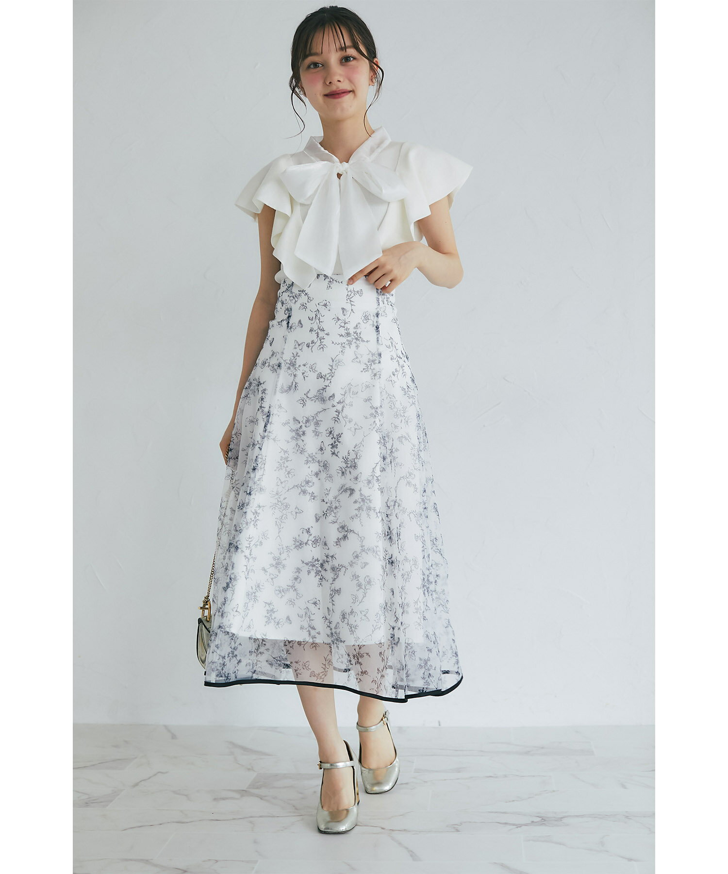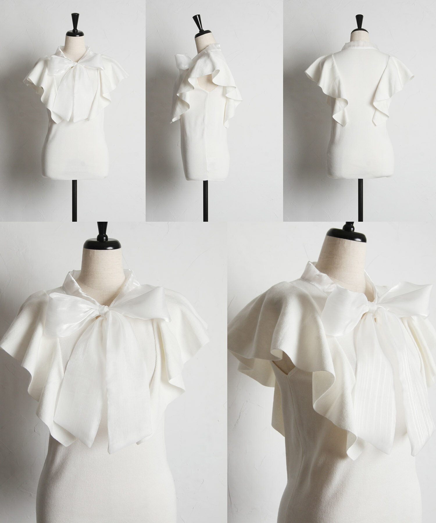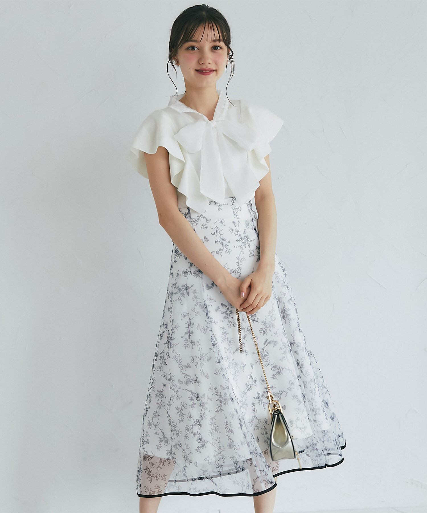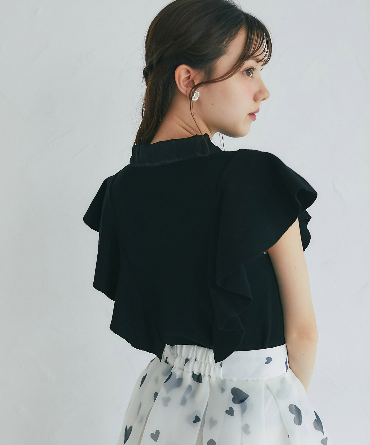 シアーボウタイリボン付き切り替えニットプルオーバー【awberry アウベリー】tocco closet(トッコクローゼット) ※松川星さんはブラック着用 ブラック オフホワイト ピンク 商品番号:186-185307