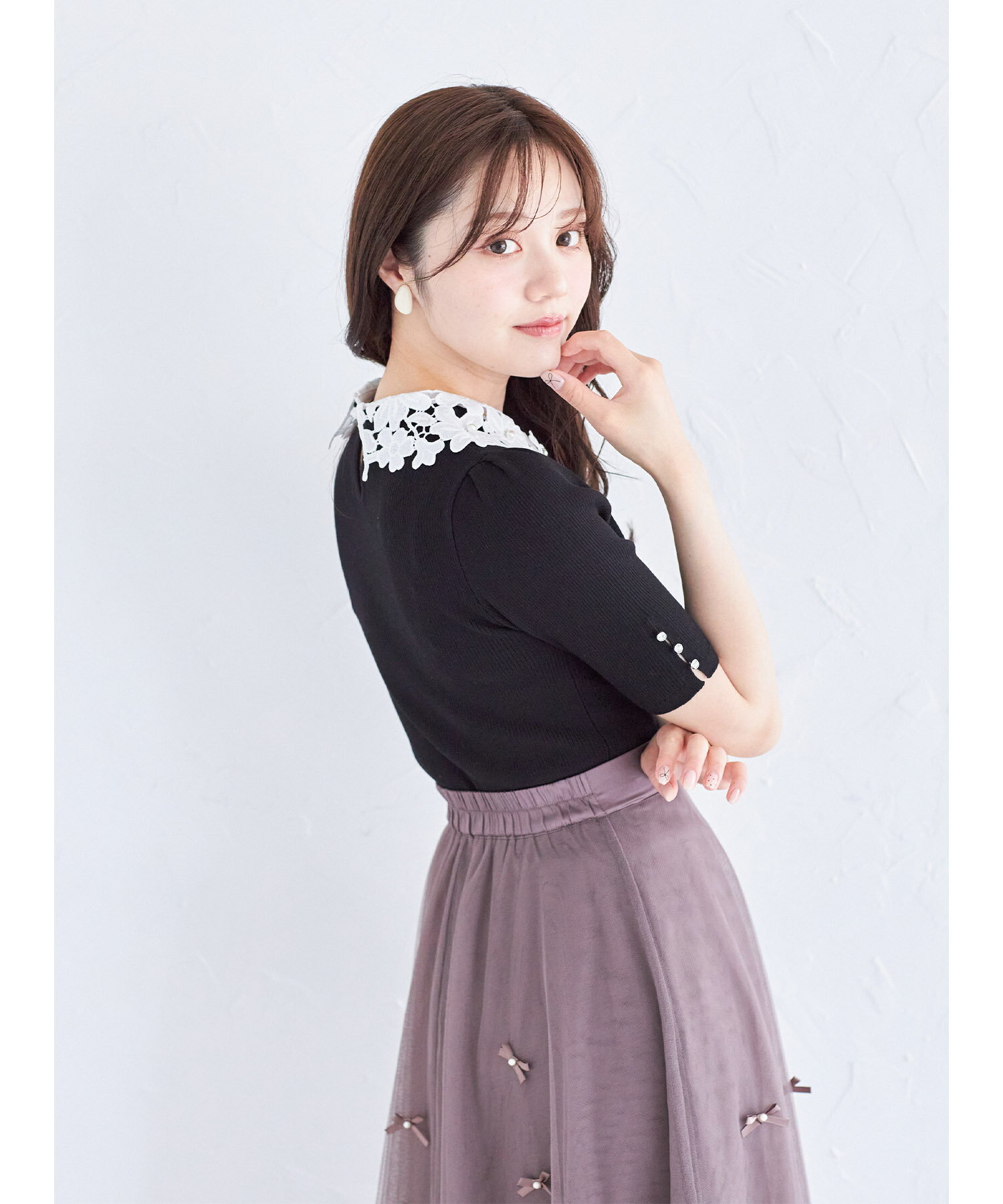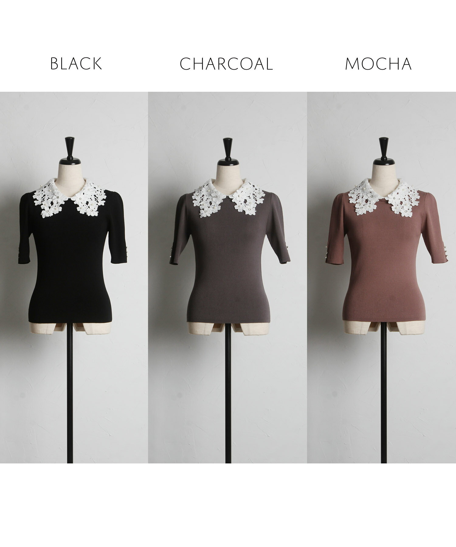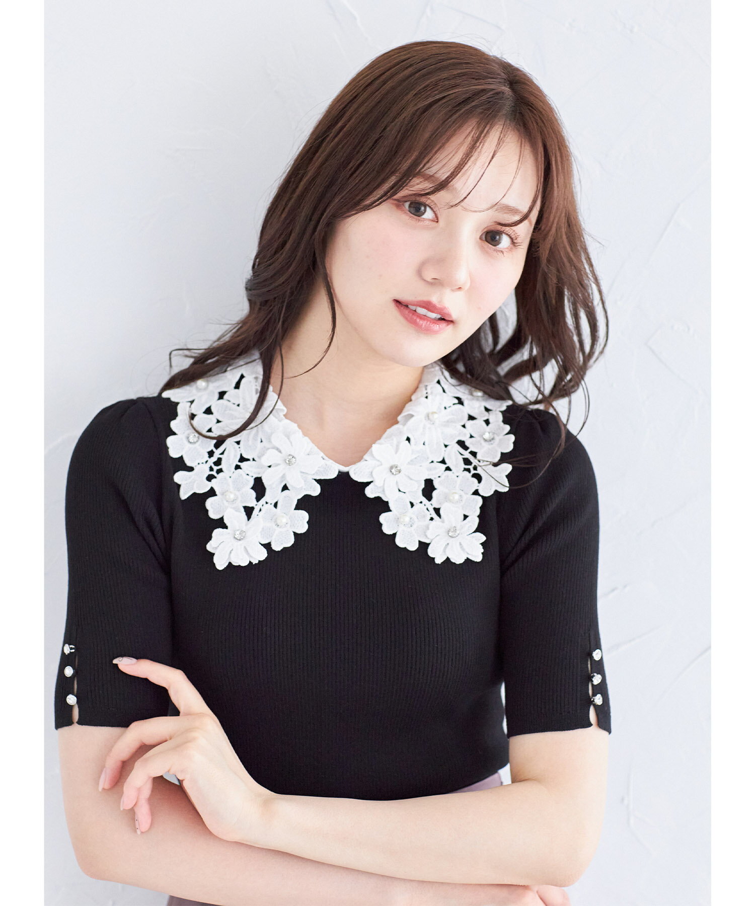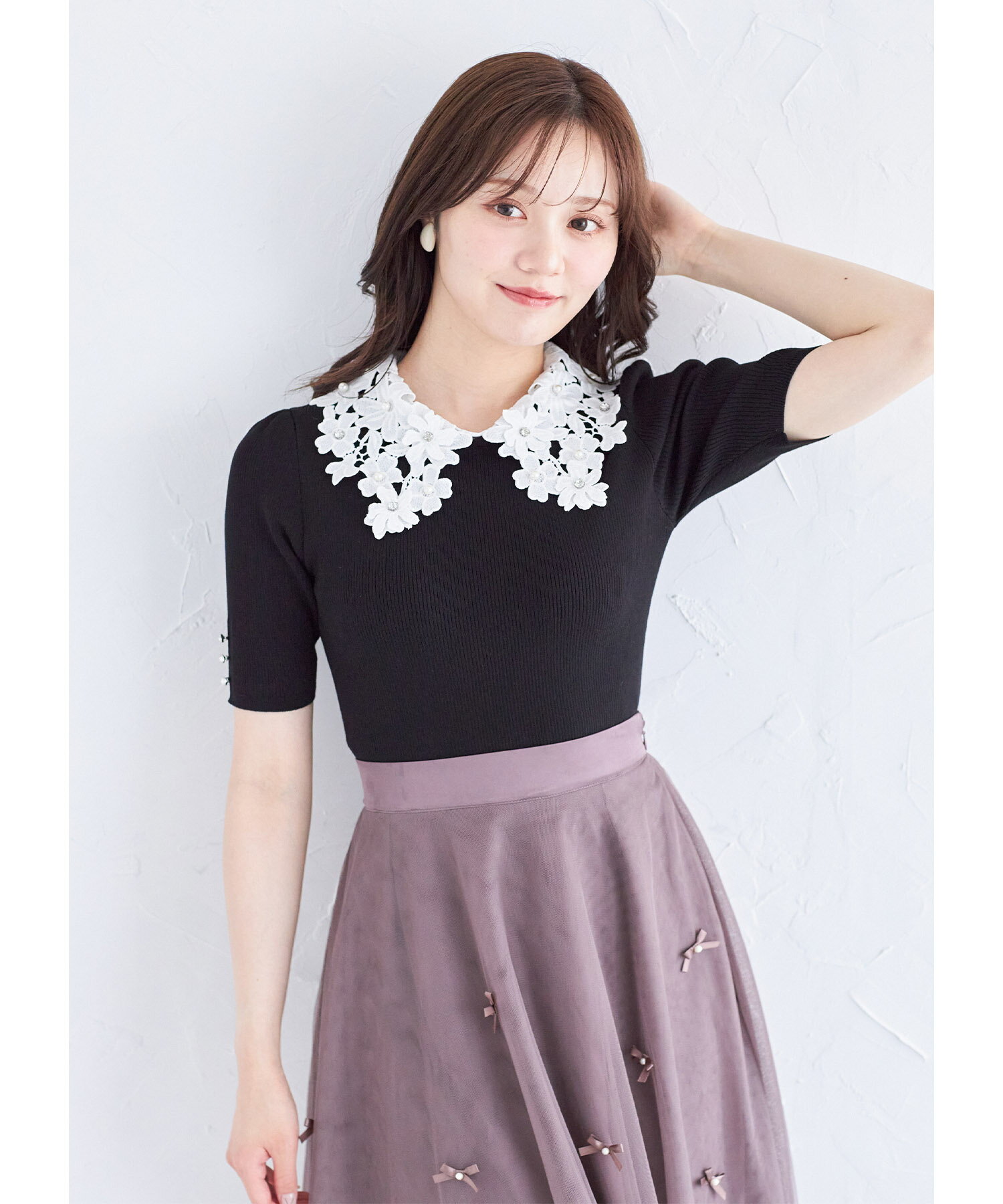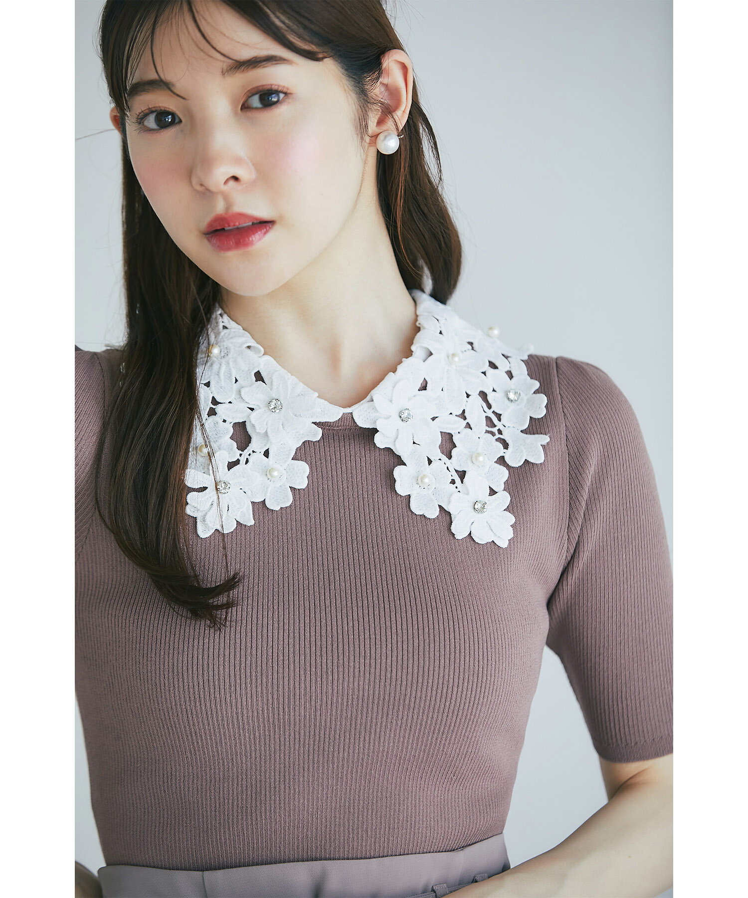 2WAYフラワーレース襟付きリブニットプルオーバー【romony ロモニー】tocco closet(トッコクローゼット) ※石川梨華さんはブラック着用 ブラック チャコール モカ 商品番号:6-187586