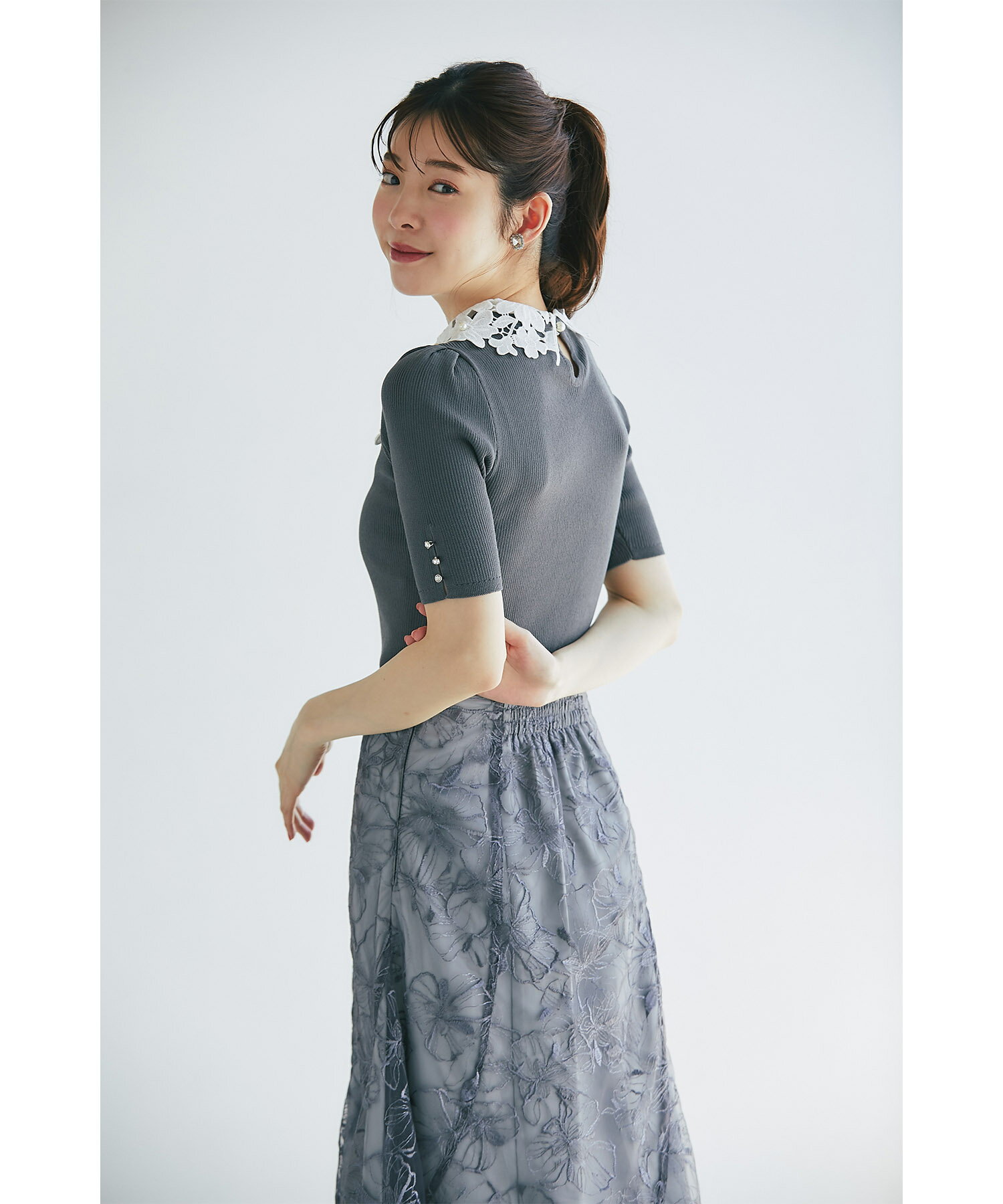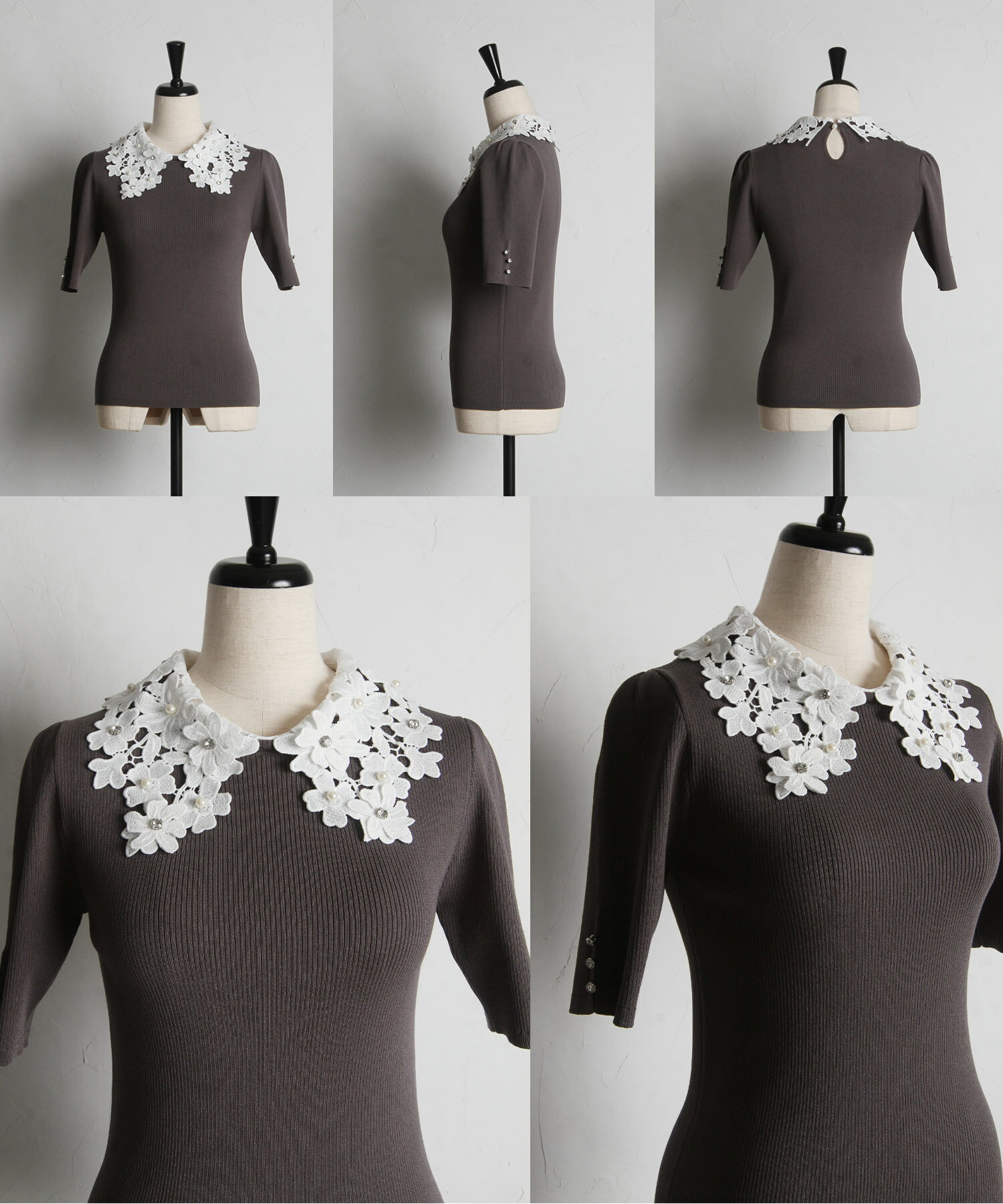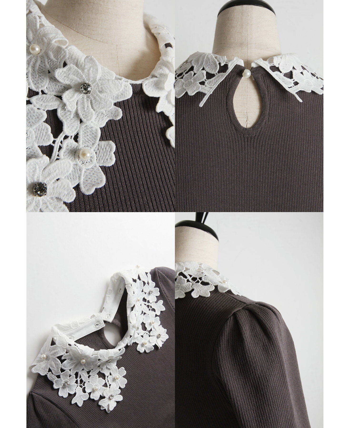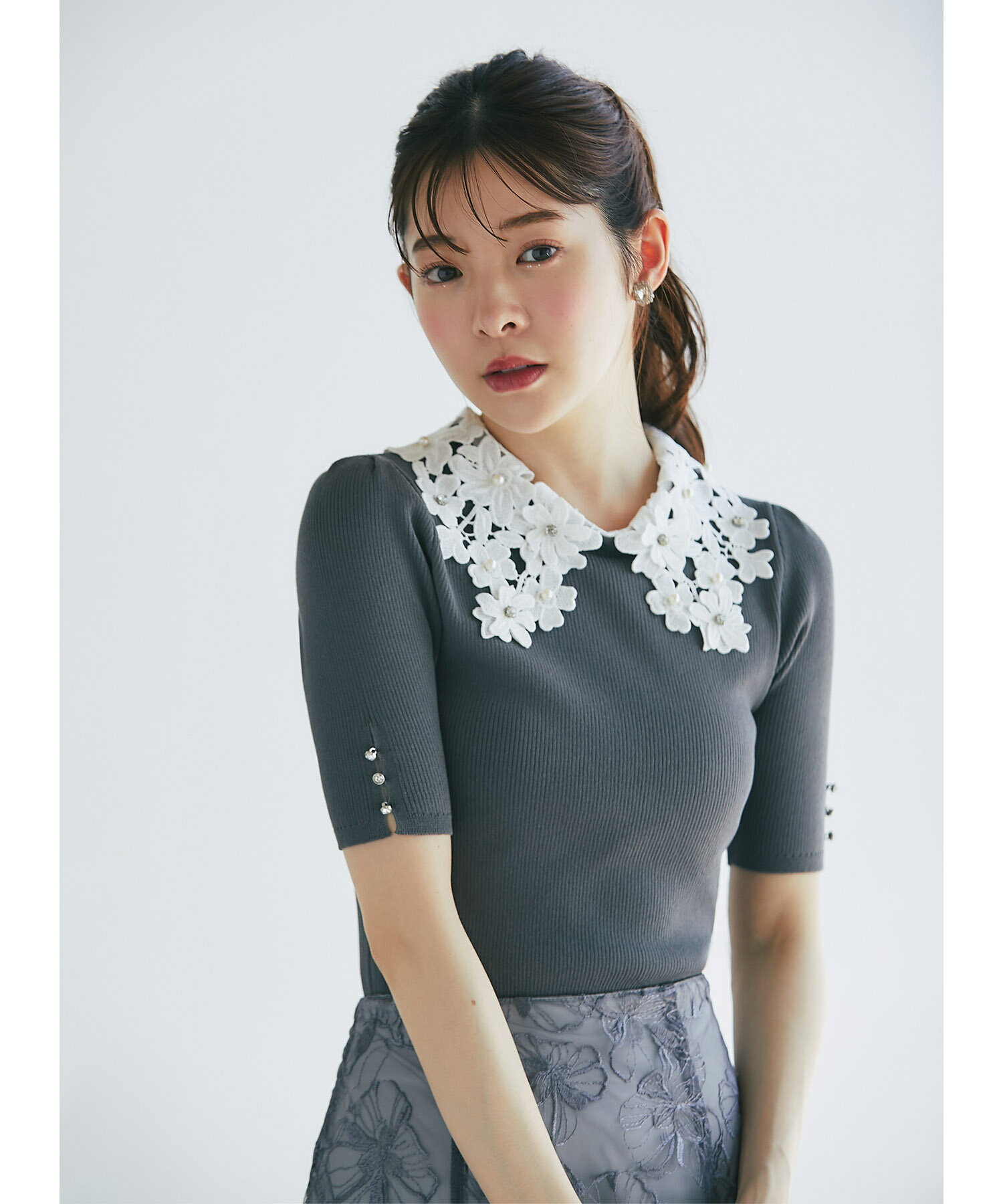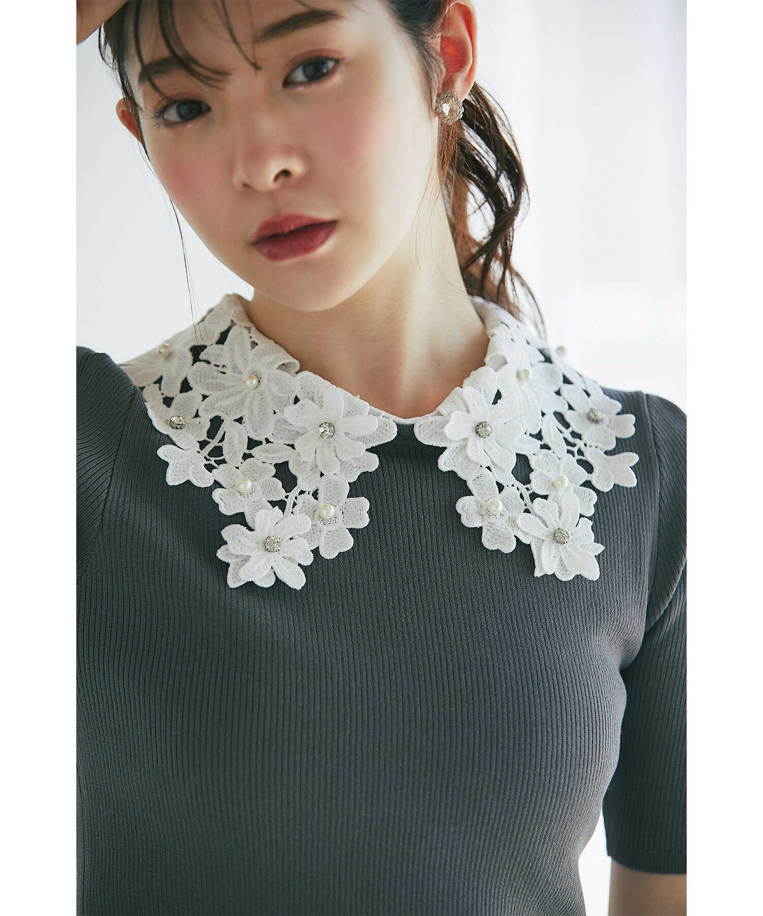 2WAYフラワーレース襟付きリブニットプルオーバー【romony ロモニー】tocco closet(トッコクローゼット) ※石川梨華さんはブラック着用 ブラック チャコール モカ 商品番号:6-187586