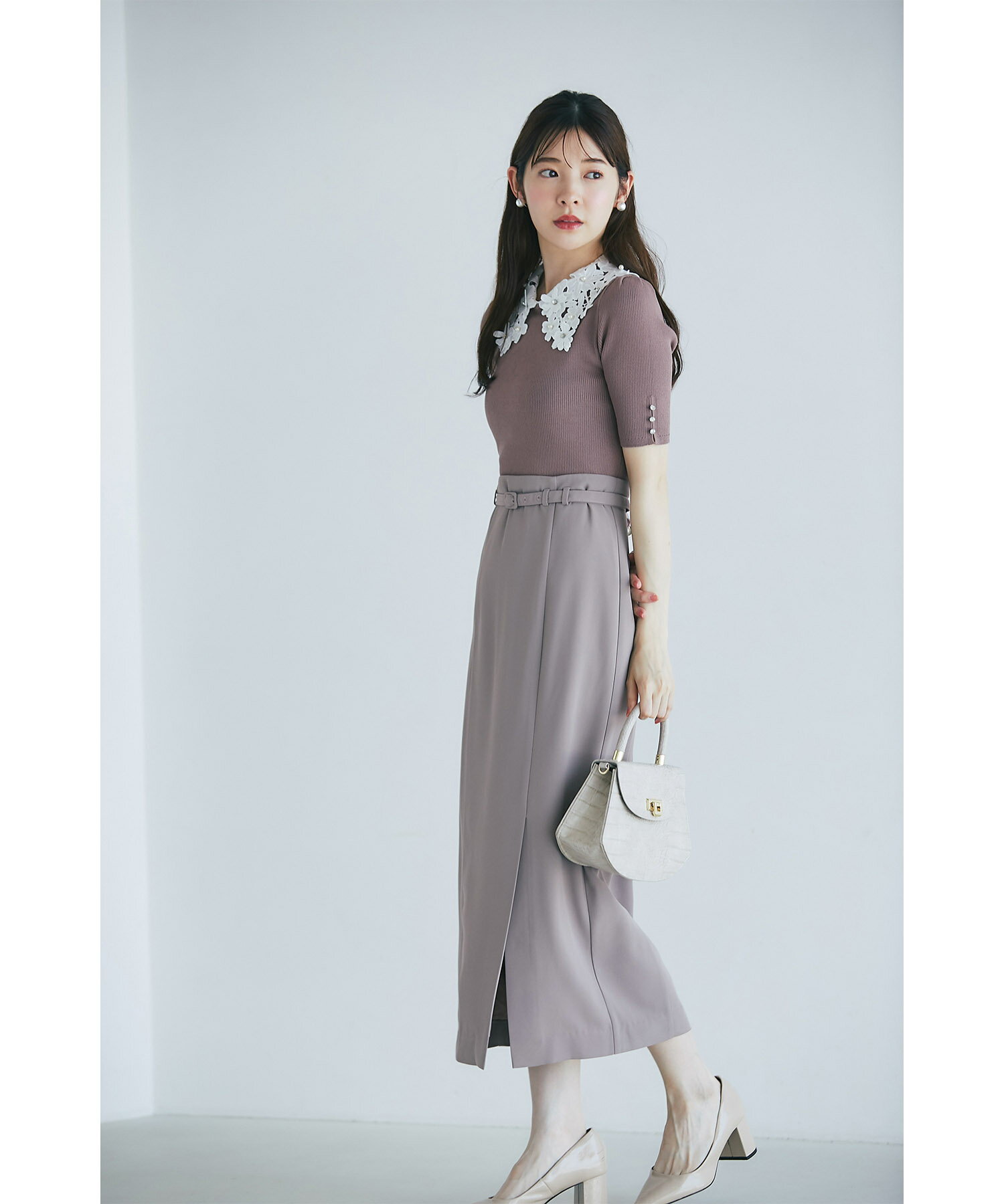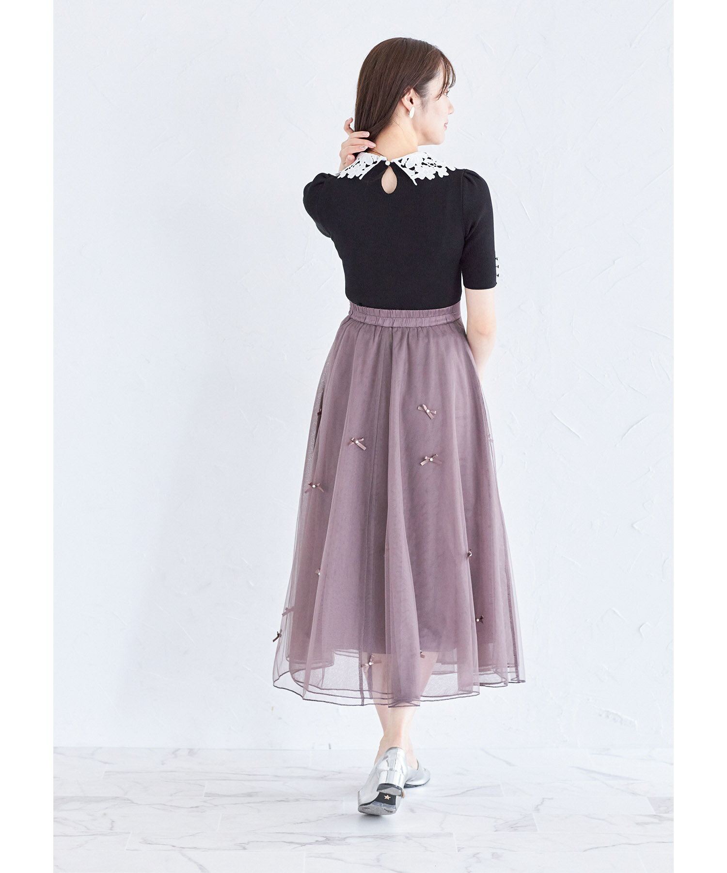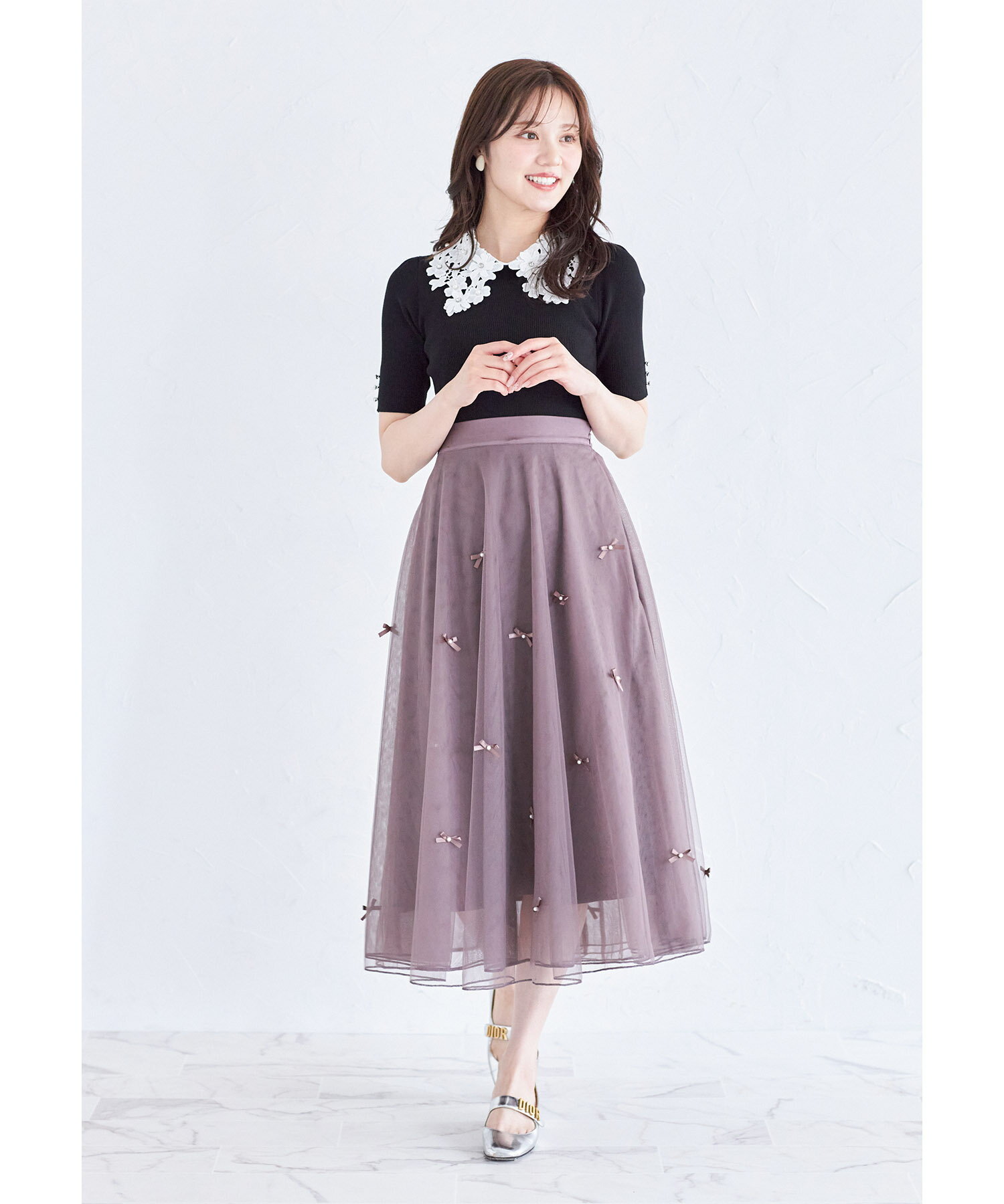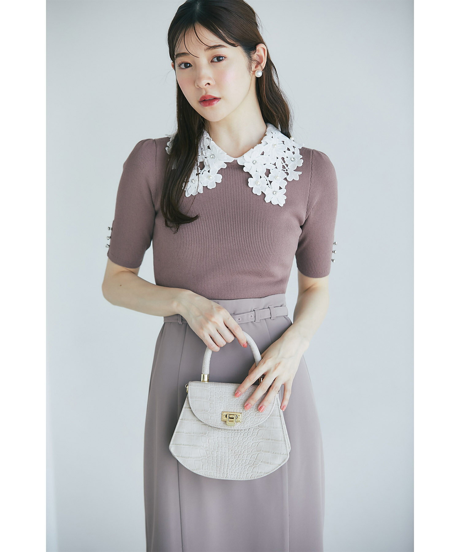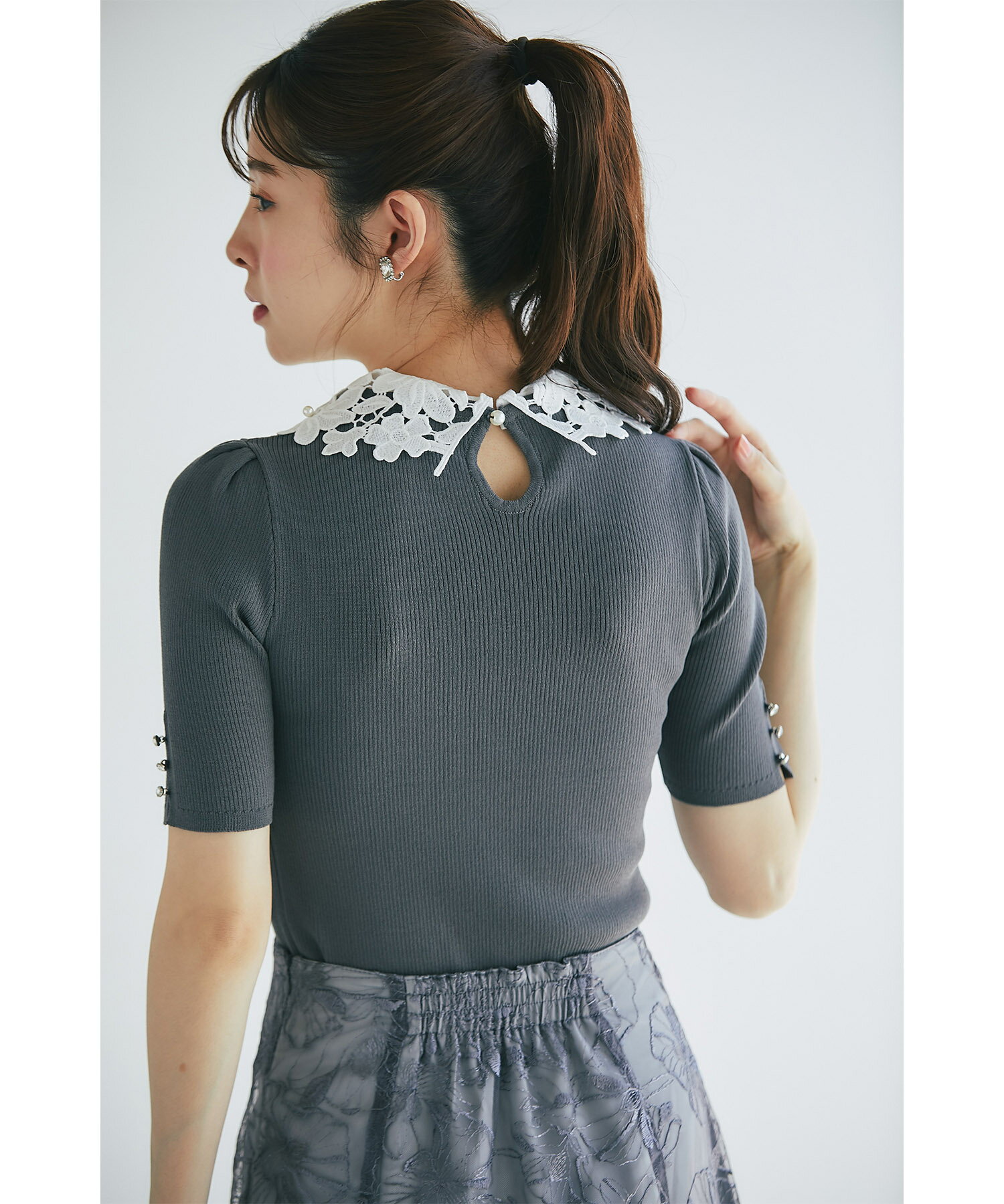 2WAYフラワーレース襟付きリブニットプルオーバー【romony ロモニー】tocco closet(トッコクローゼット) ※石川梨華さんはブラック着用 ブラック チャコール モカ 商品番号:6-187586