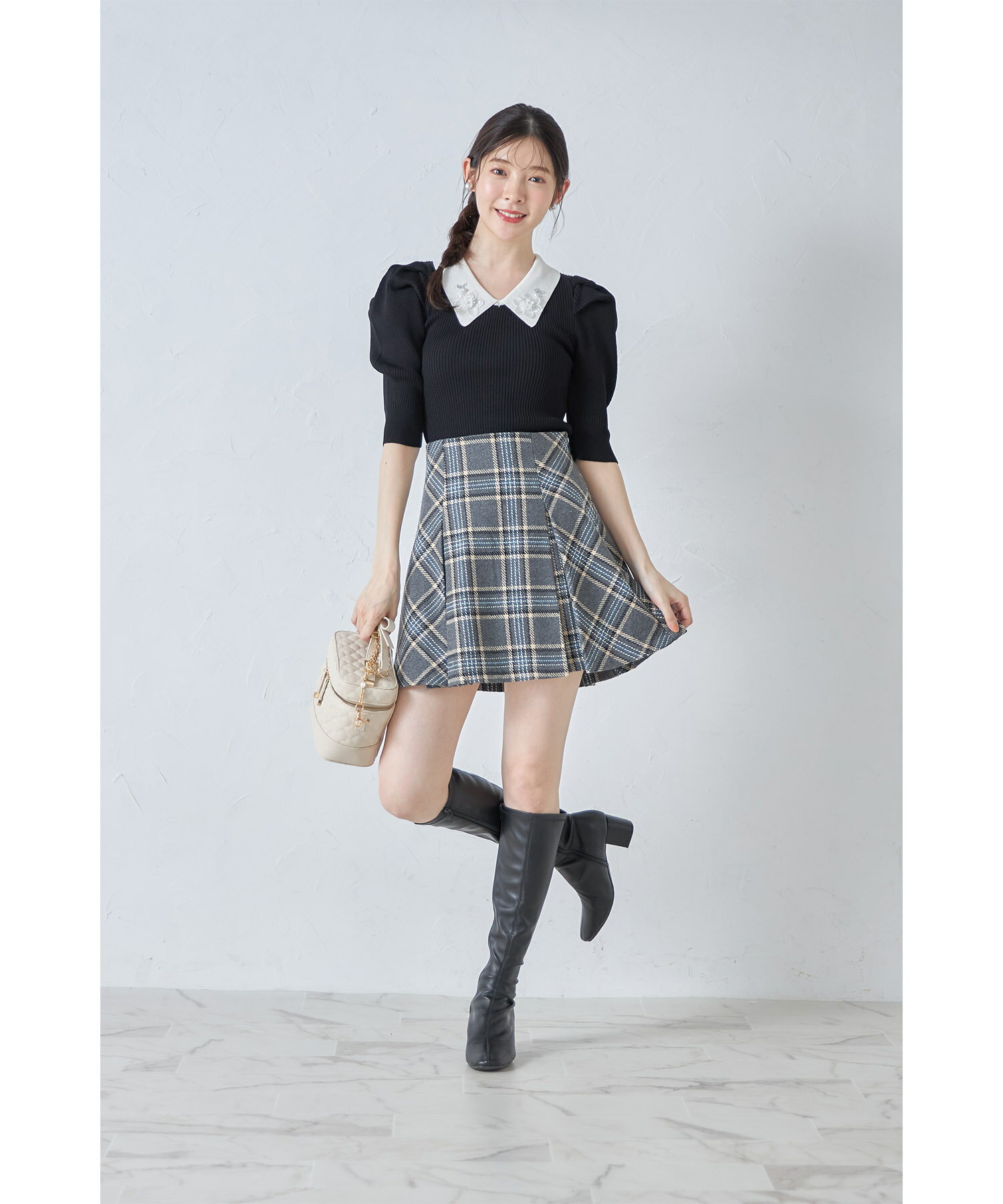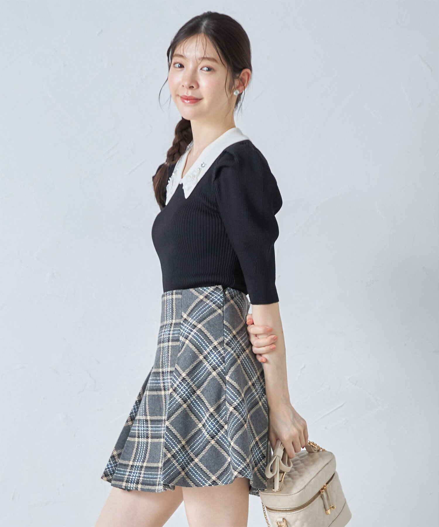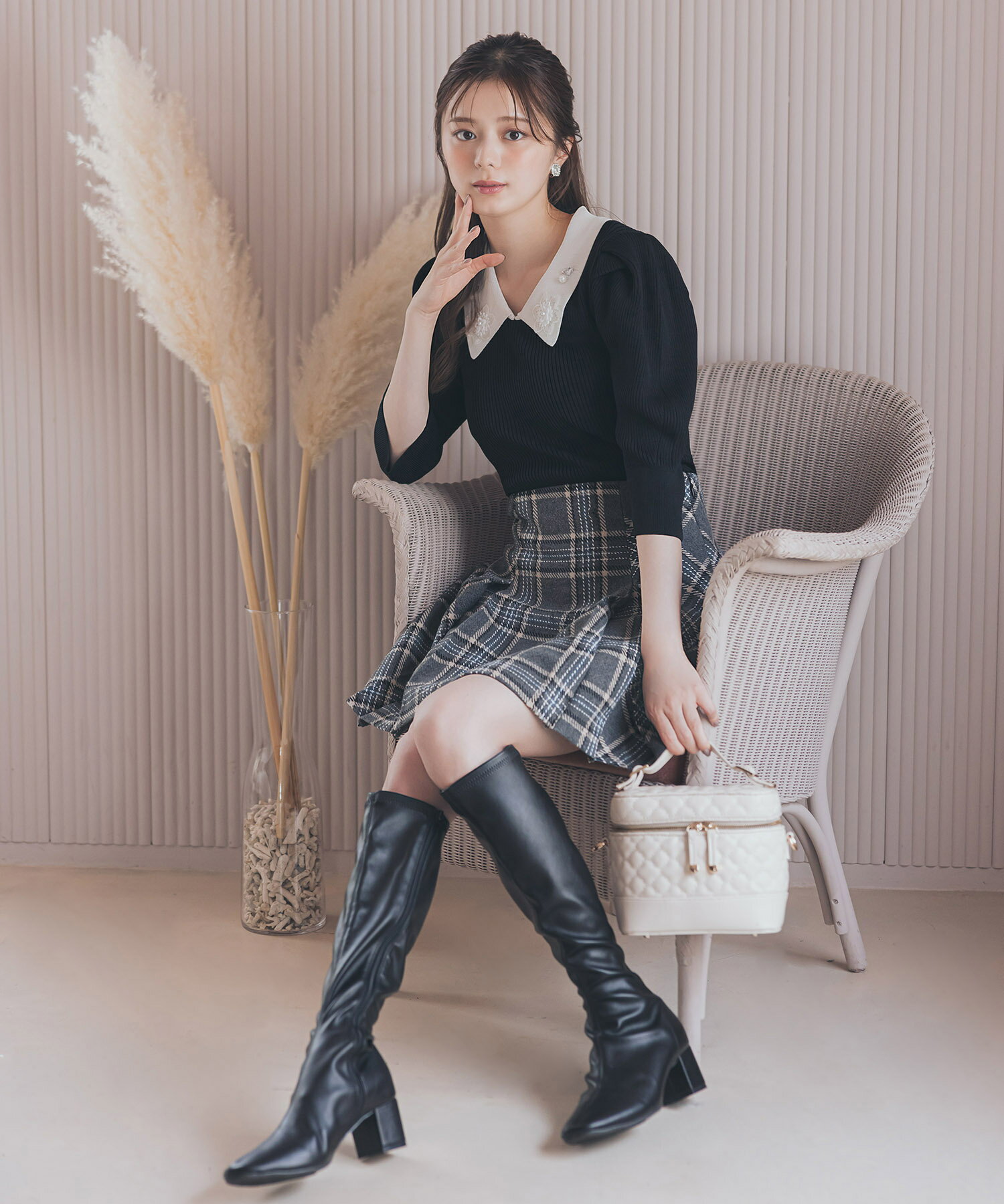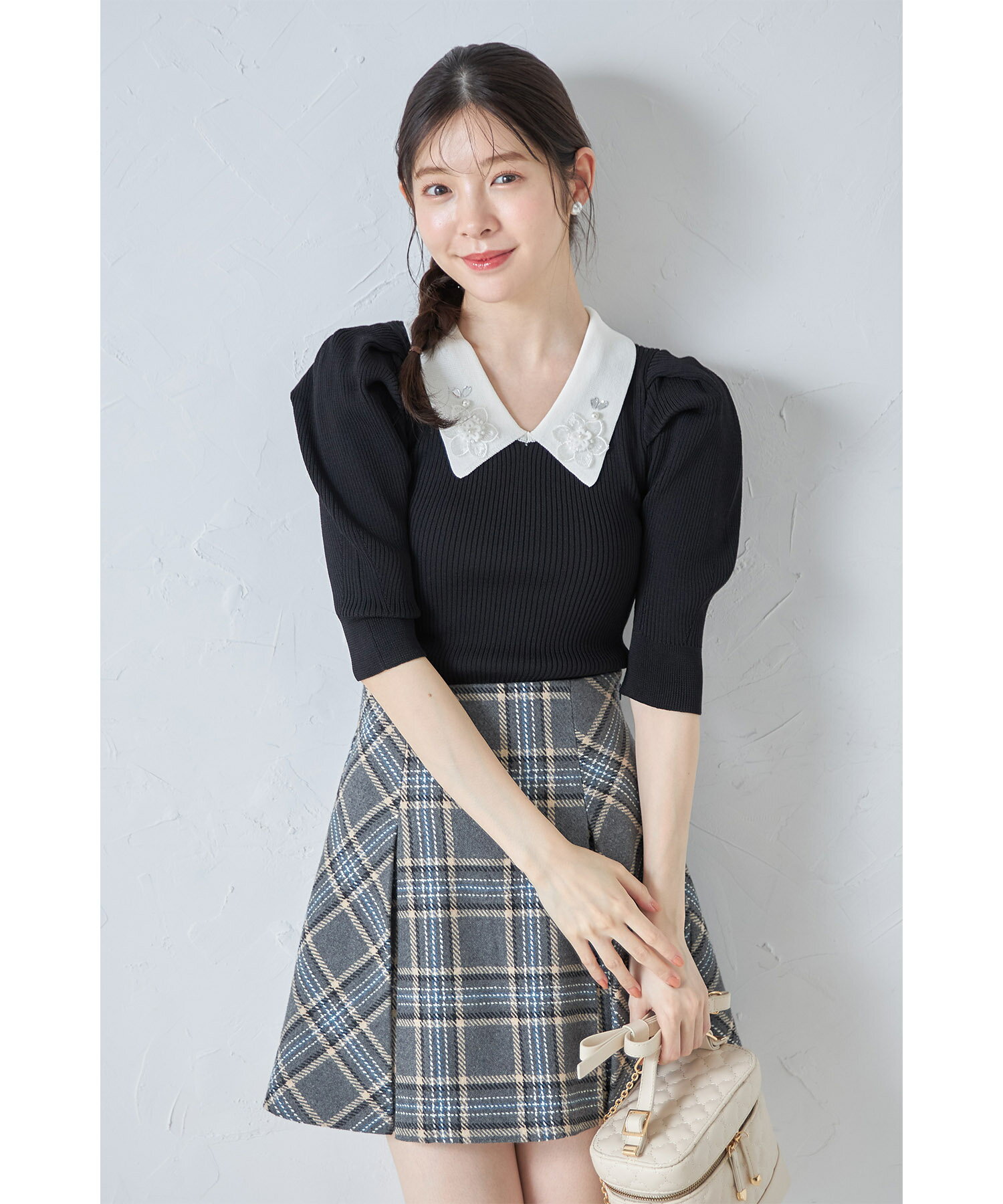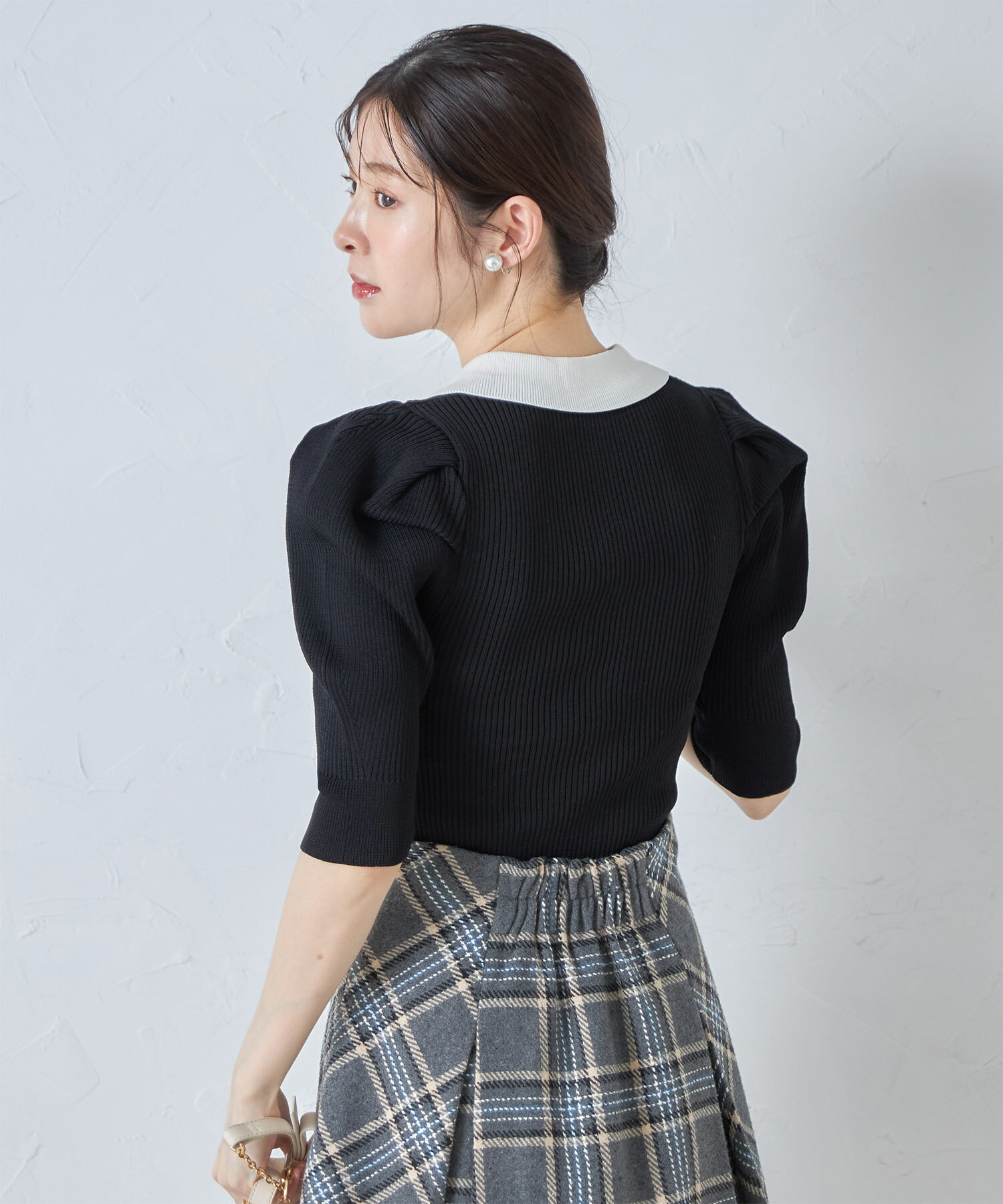 立体フラワーモチーフ襟付きリブニットプルオーバー【erbury エバリー】tocco closet(トッコクローゼット) ※紺野彩夏さんはブラック着用 ブラック ワインレッド 商品番号:186-188717