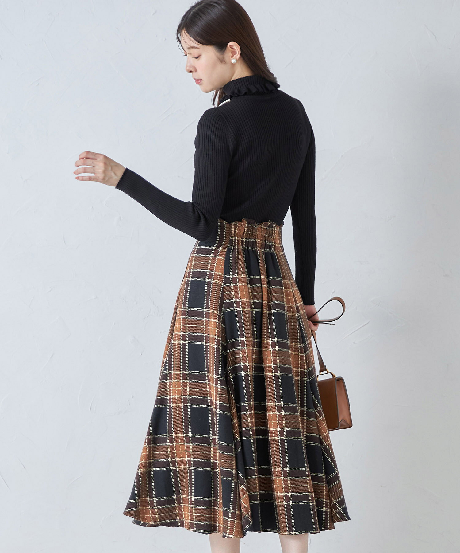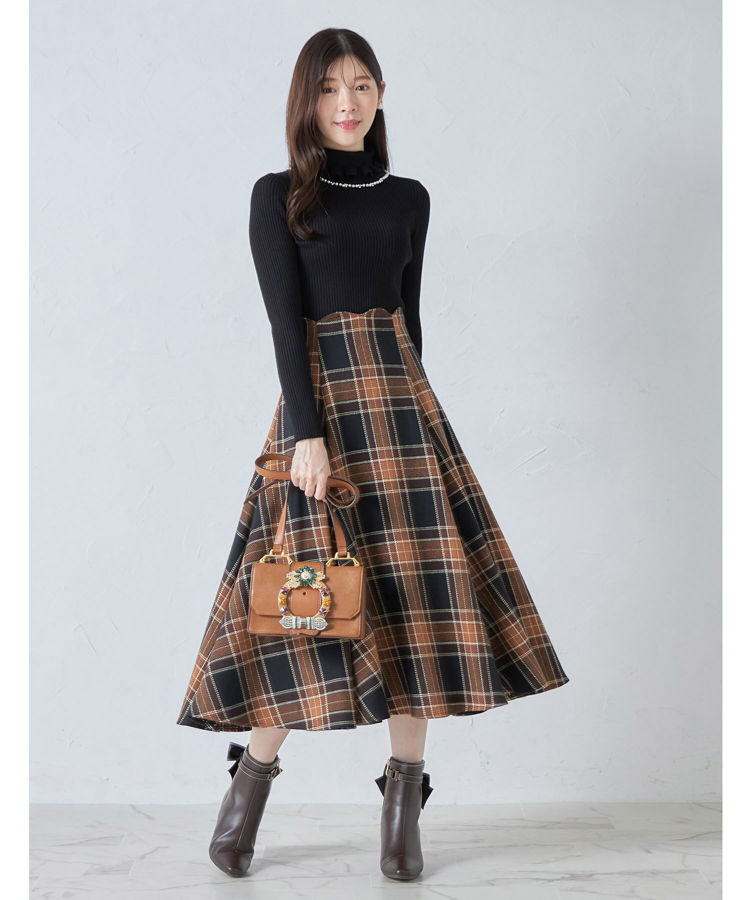 ウエストスカラップチェック柄フレアスカート【fomile フォミール】tocco closet(トッコクローゼット)※久間田琳加さんはブラウン着用 ブラウン ネイビー 商品番号:186-189891