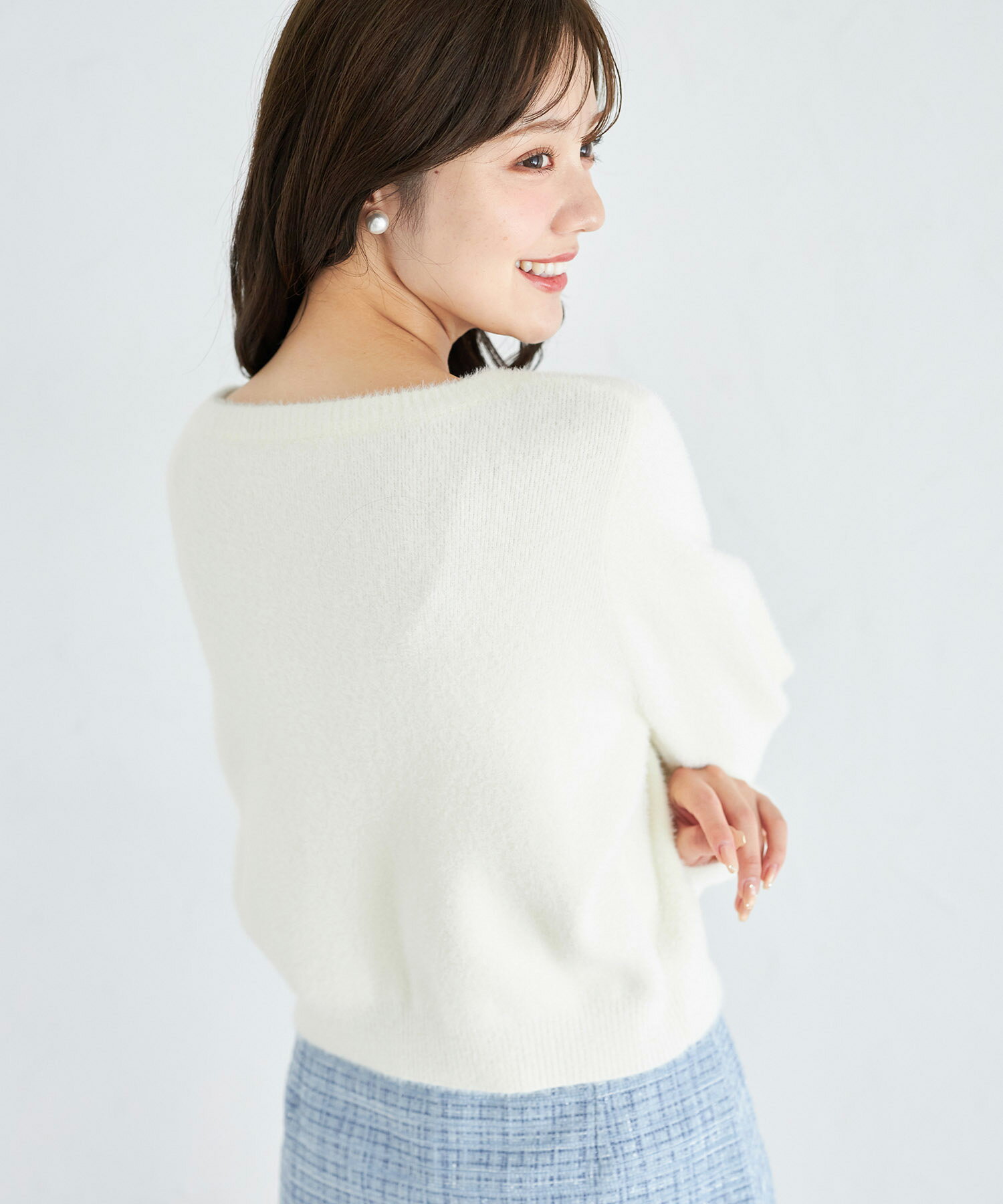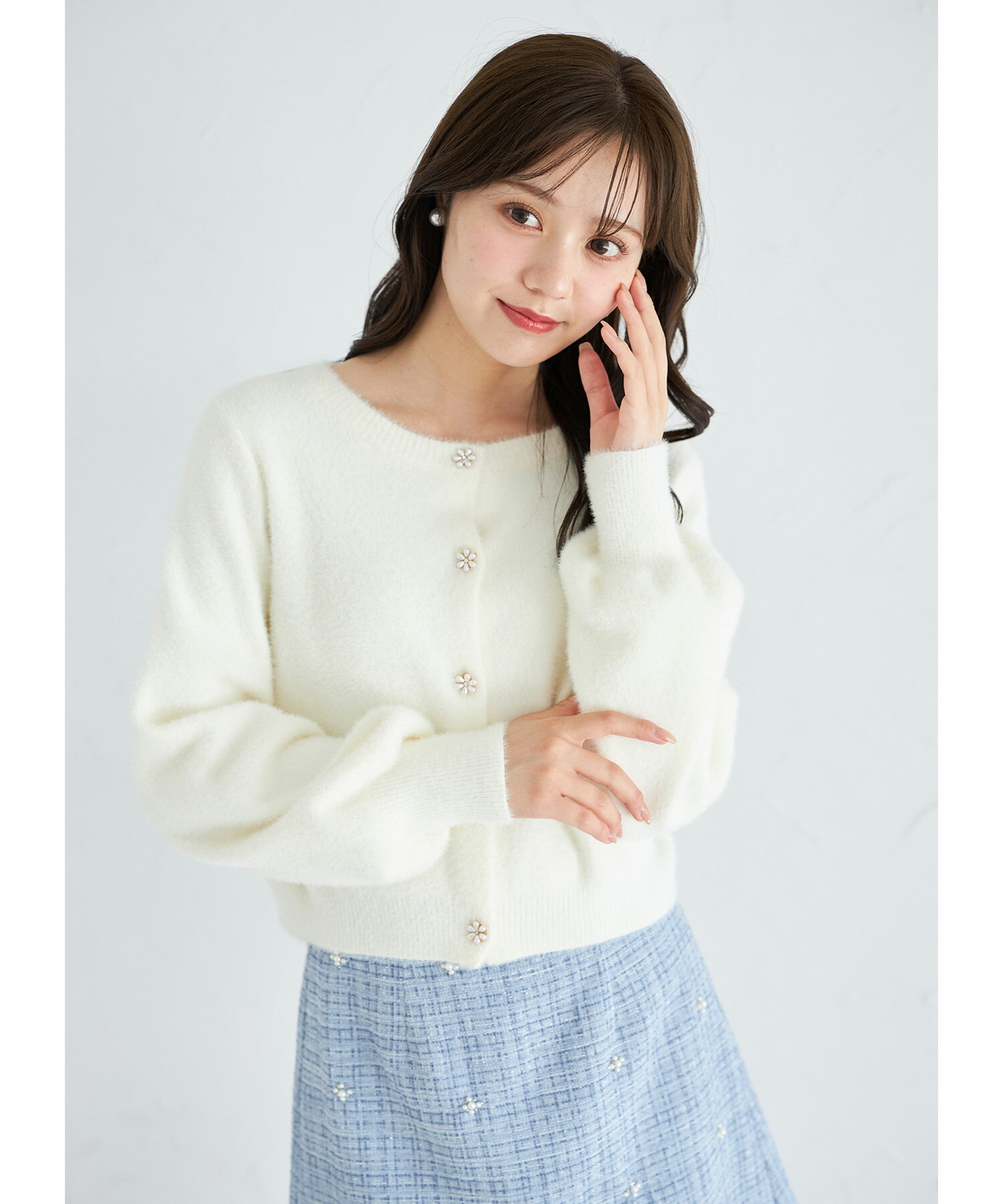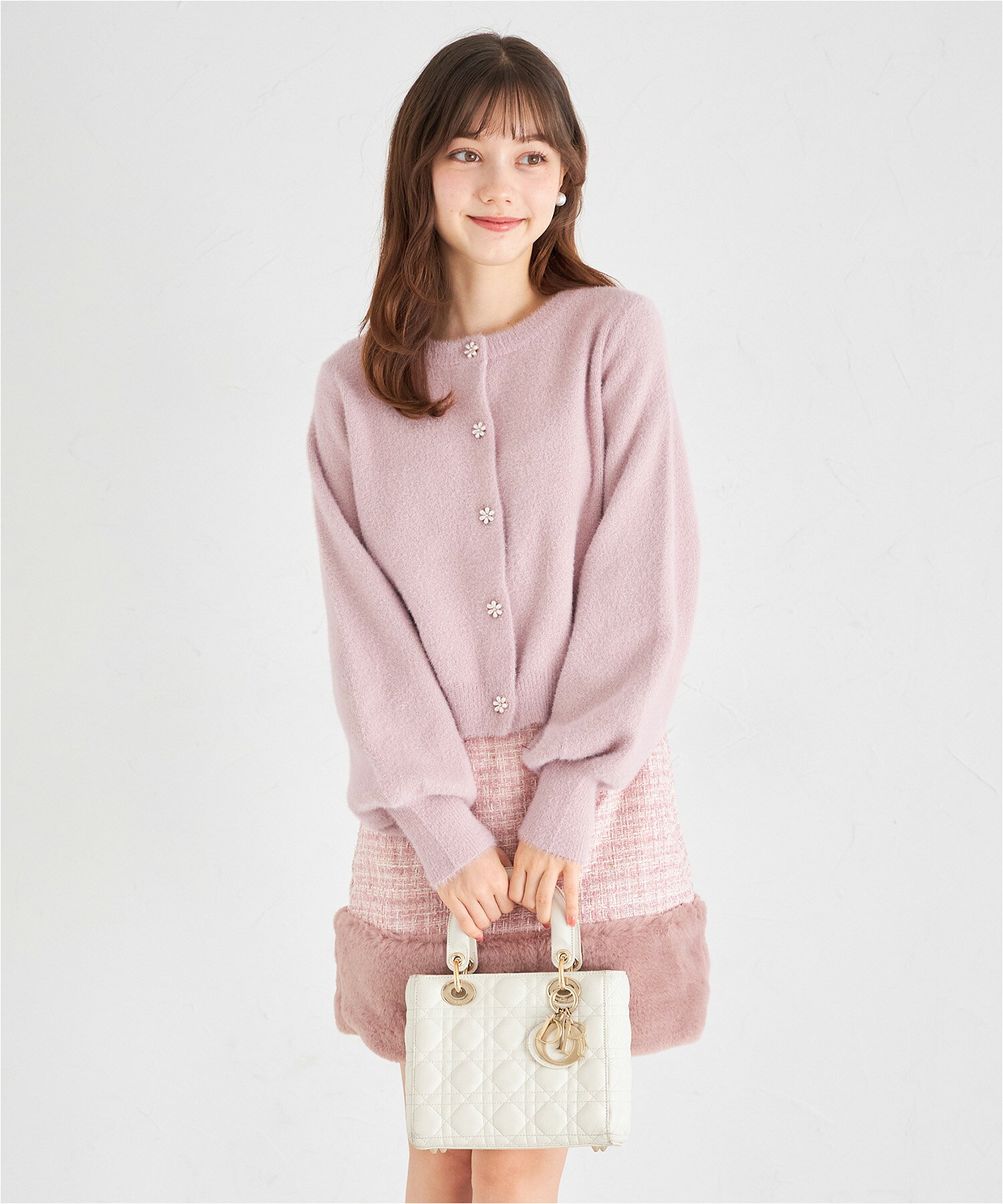 フラワービジュー釦付きラメ入りシャギーニットカーディガン【lepria レプリア】tocco closet(トッコクローゼット)※久間田琳加さんはアイボリー着用 アイボリー ピンク ラベンダー サックス 商品番号:186-190213