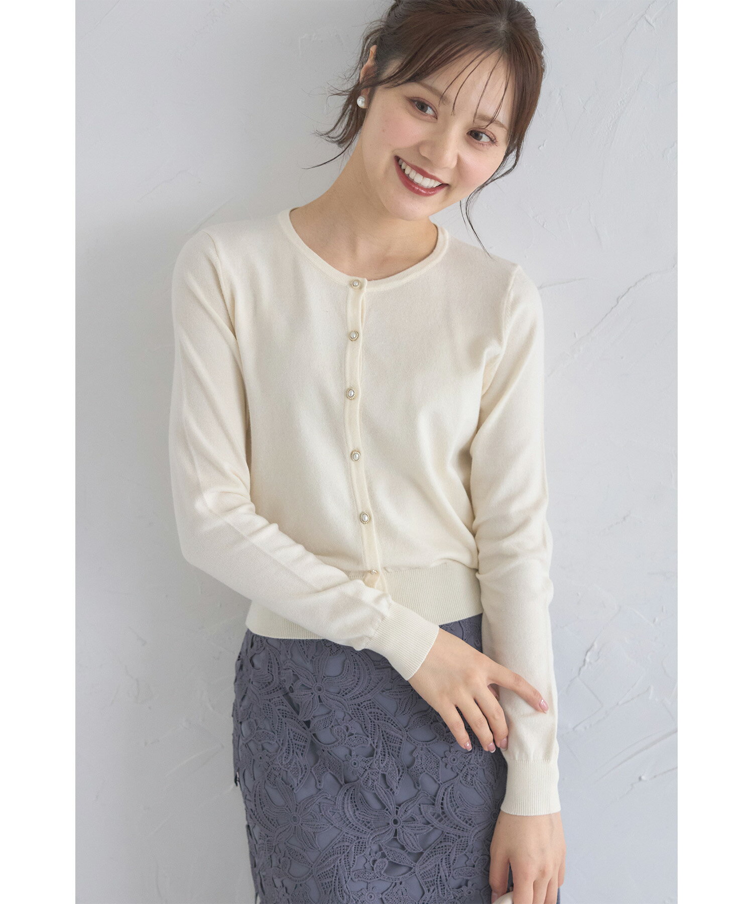吸湿発熱&しっとり保湿シアバター加工♪パール釦ニットカーディガン【rinaso リナソー】tocco closet(トッコクローゼット) #49 オフホワイト #10 ブラウン #200 チャコール #168 グレイッシュブルー 186-188173