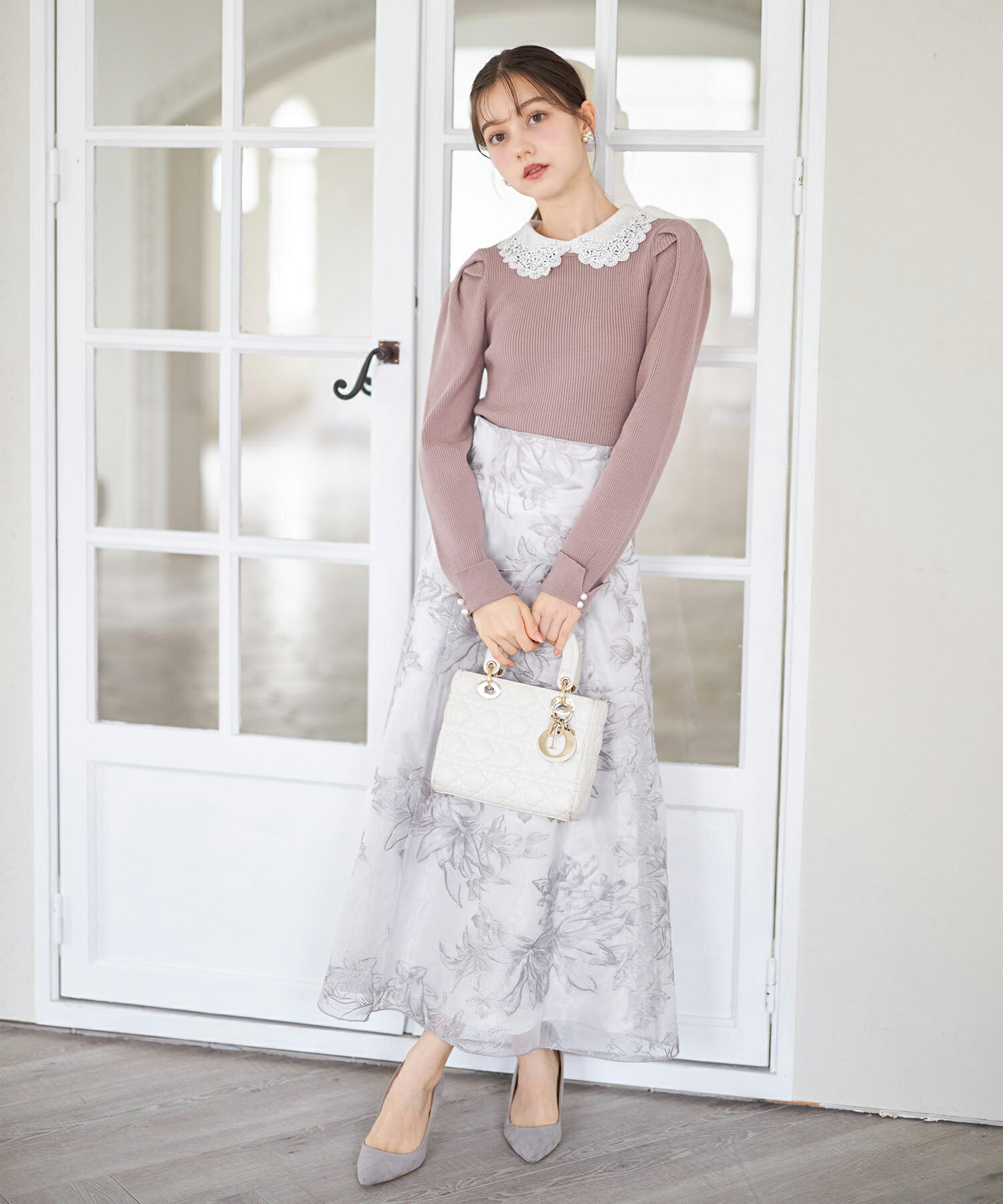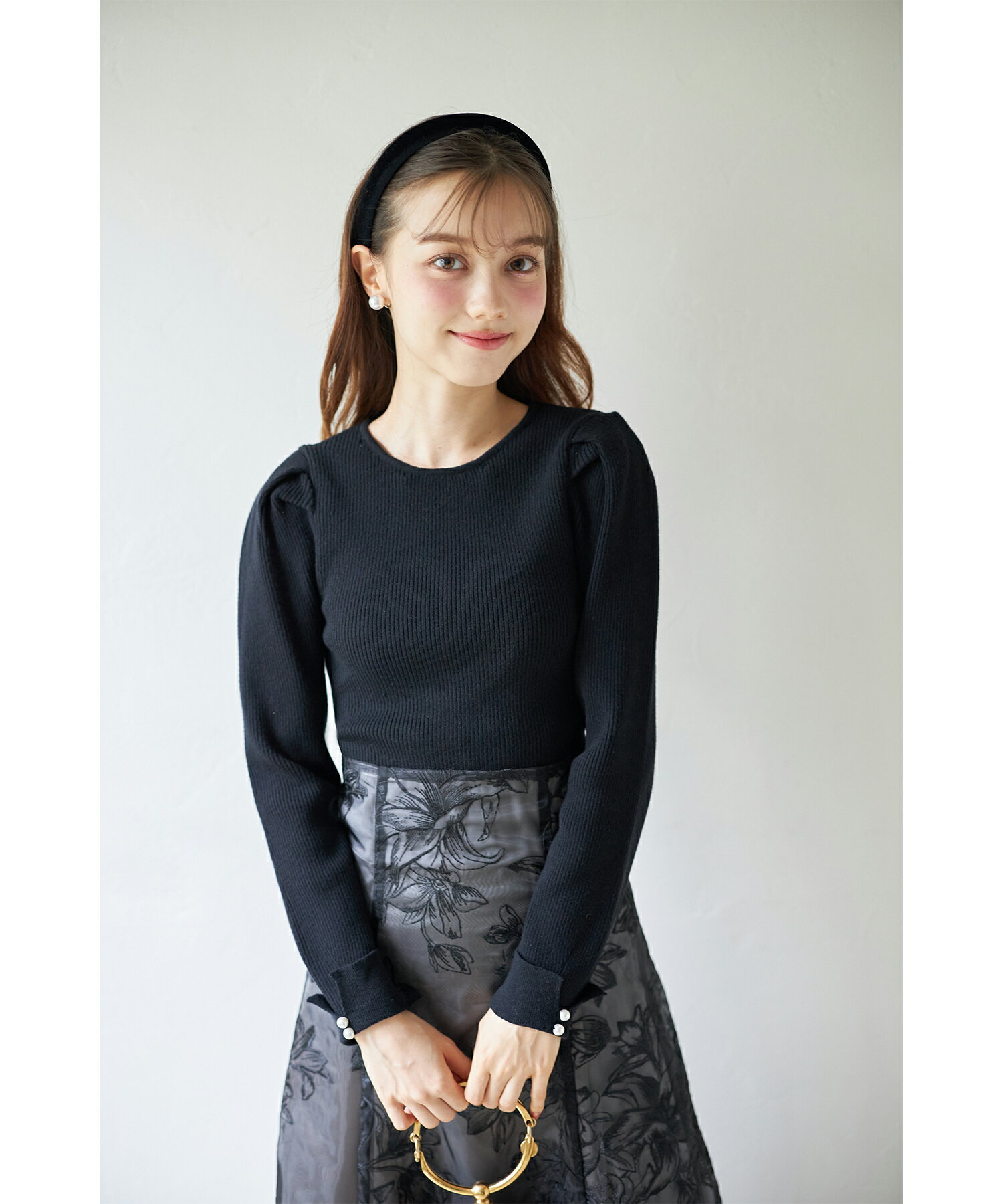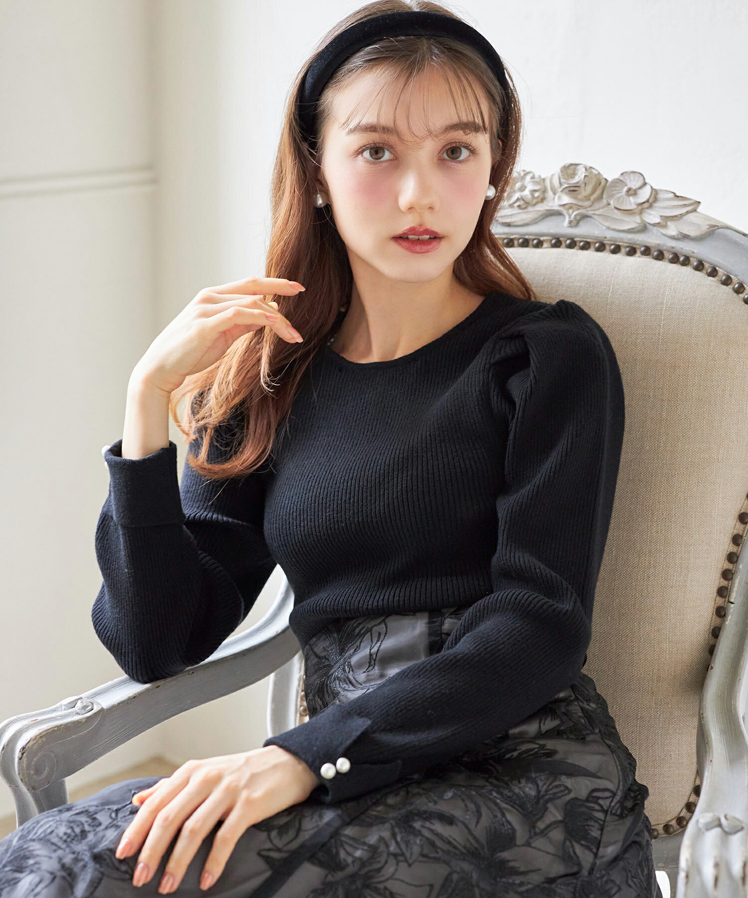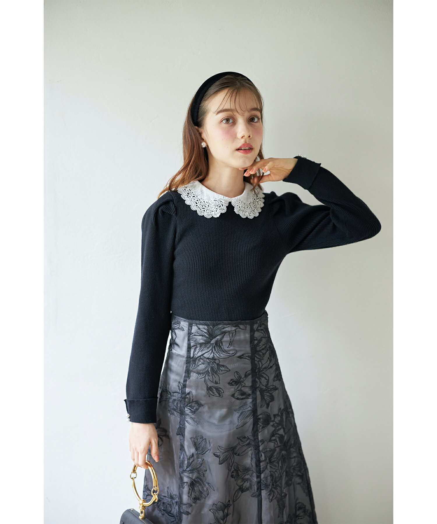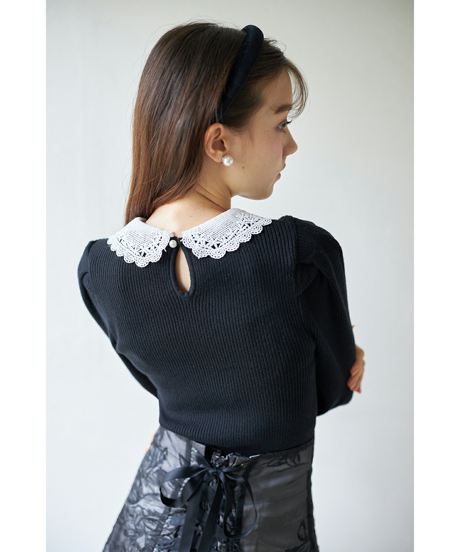 2WAYビジューレース襟付きリブニットプルオーバー【lorelei ロレリィ】tocco closet(トッコクローゼット) ブラック モカピンク 商品番号:186-191561