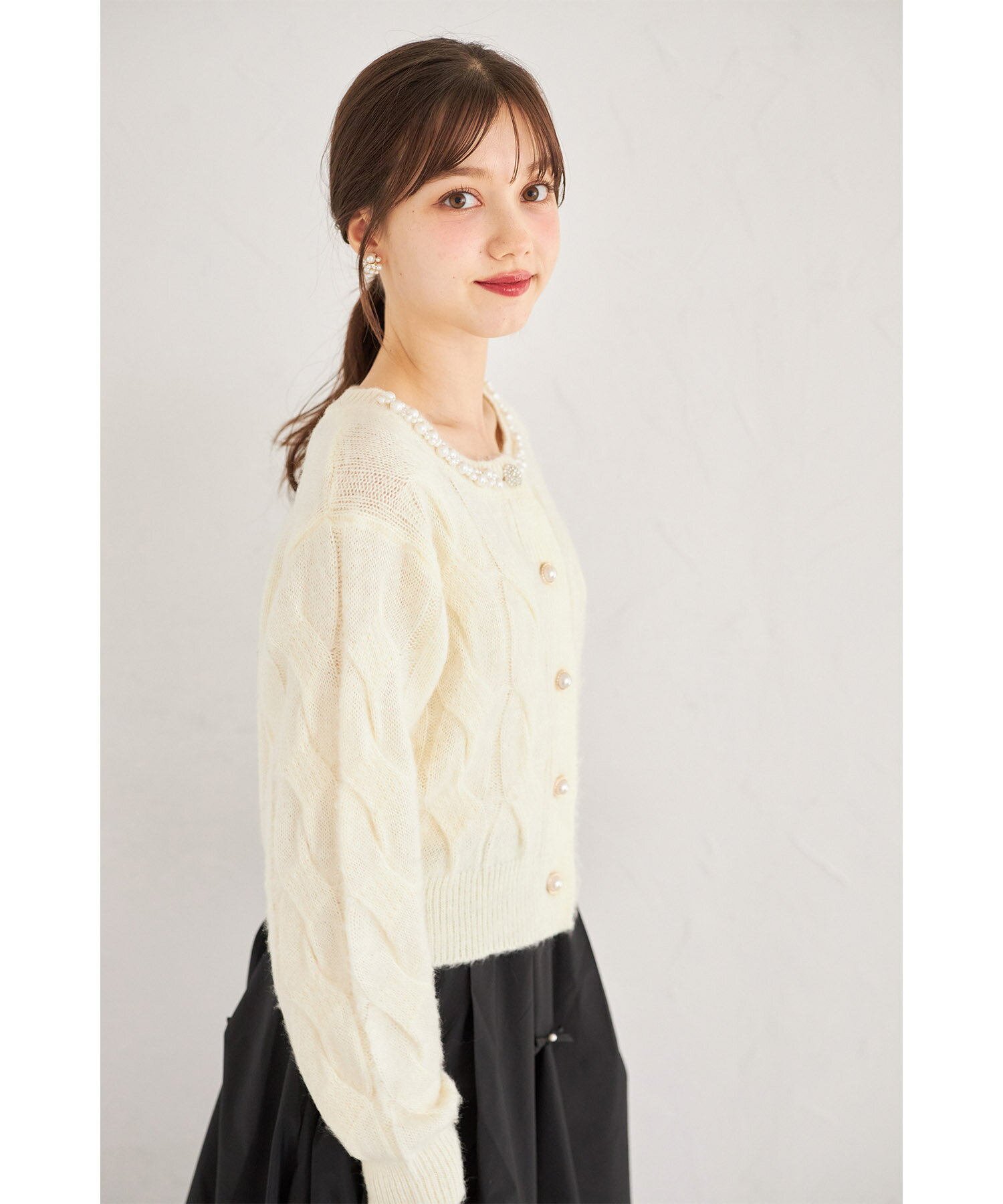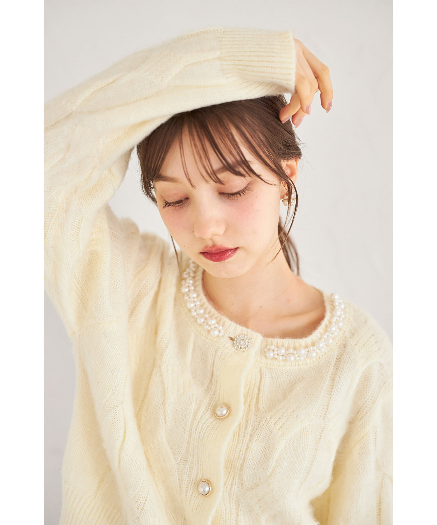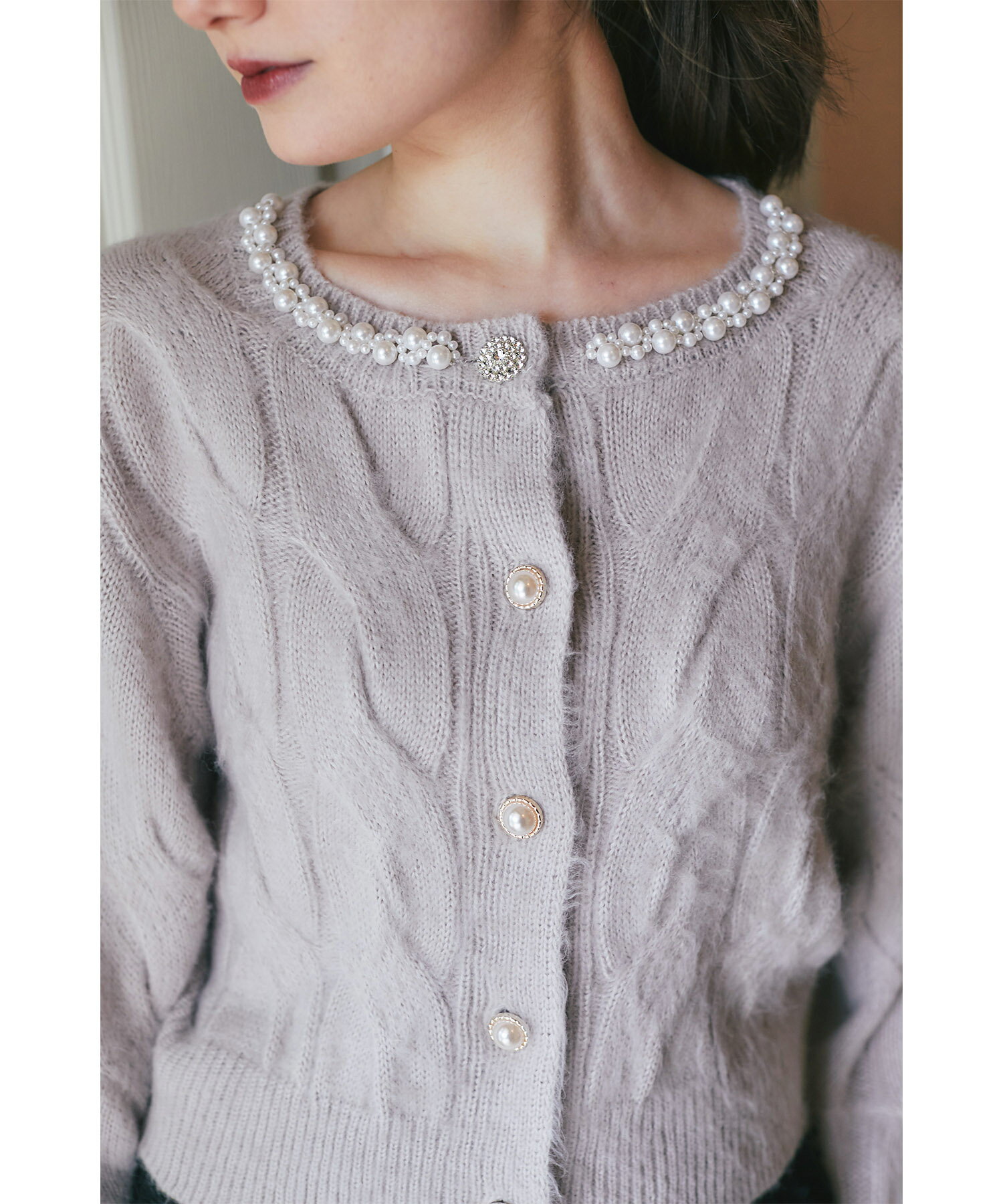 パール付きビジュー釦ケーブルニットカーディガン【asterlyn アステリン】tocco closet(トッコクローゼット) グレージュ アイボリー グレイッシュピンク 商品番号:186-192418