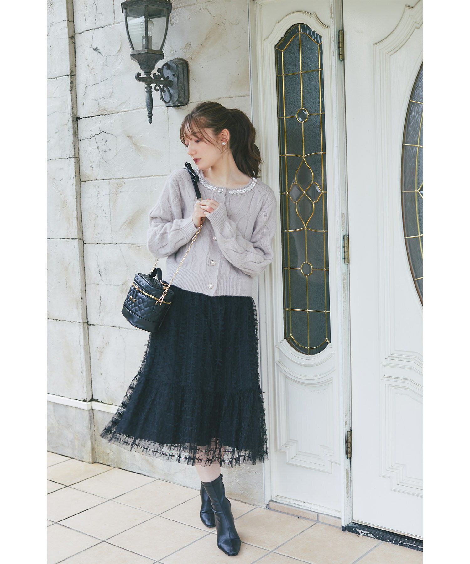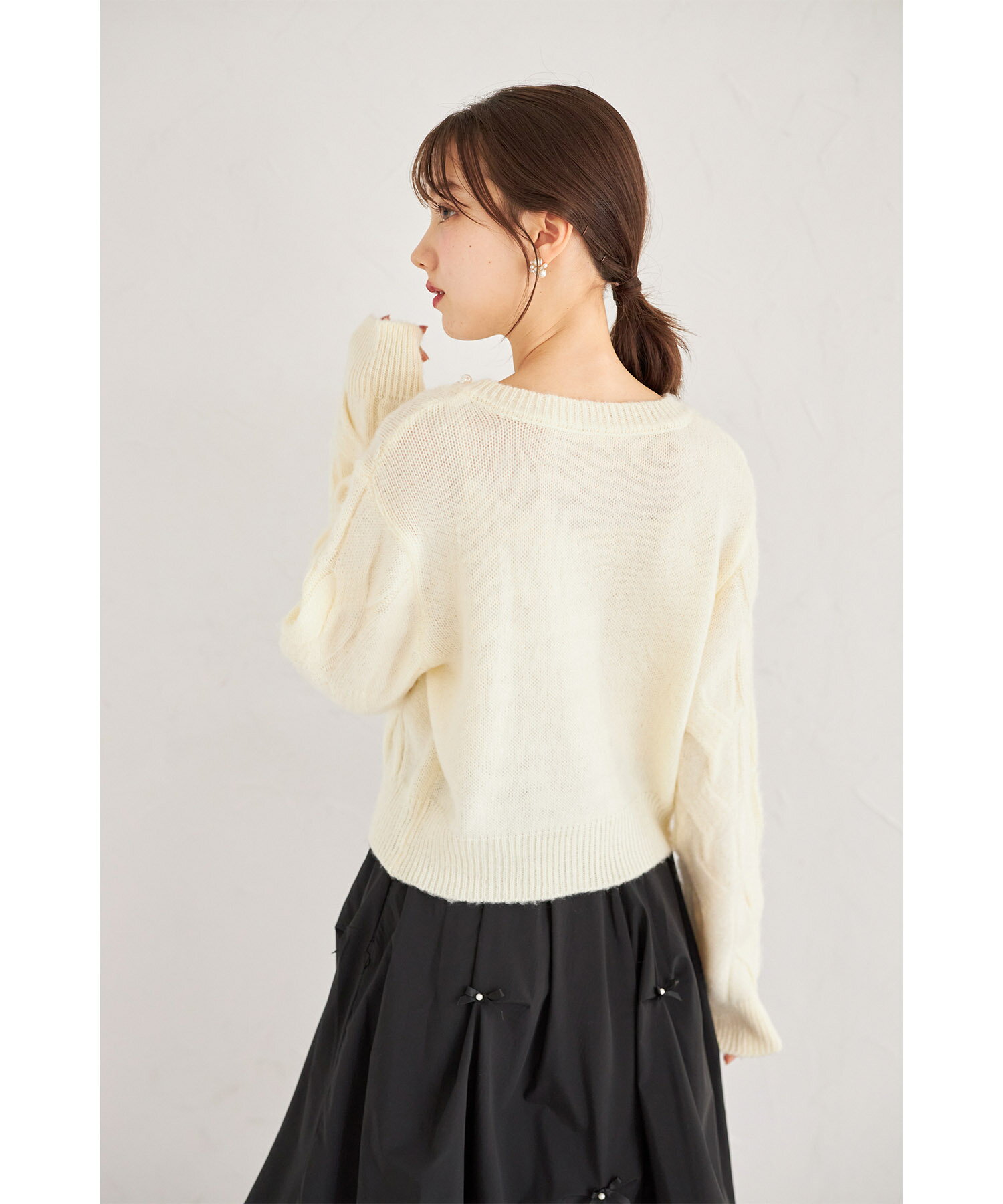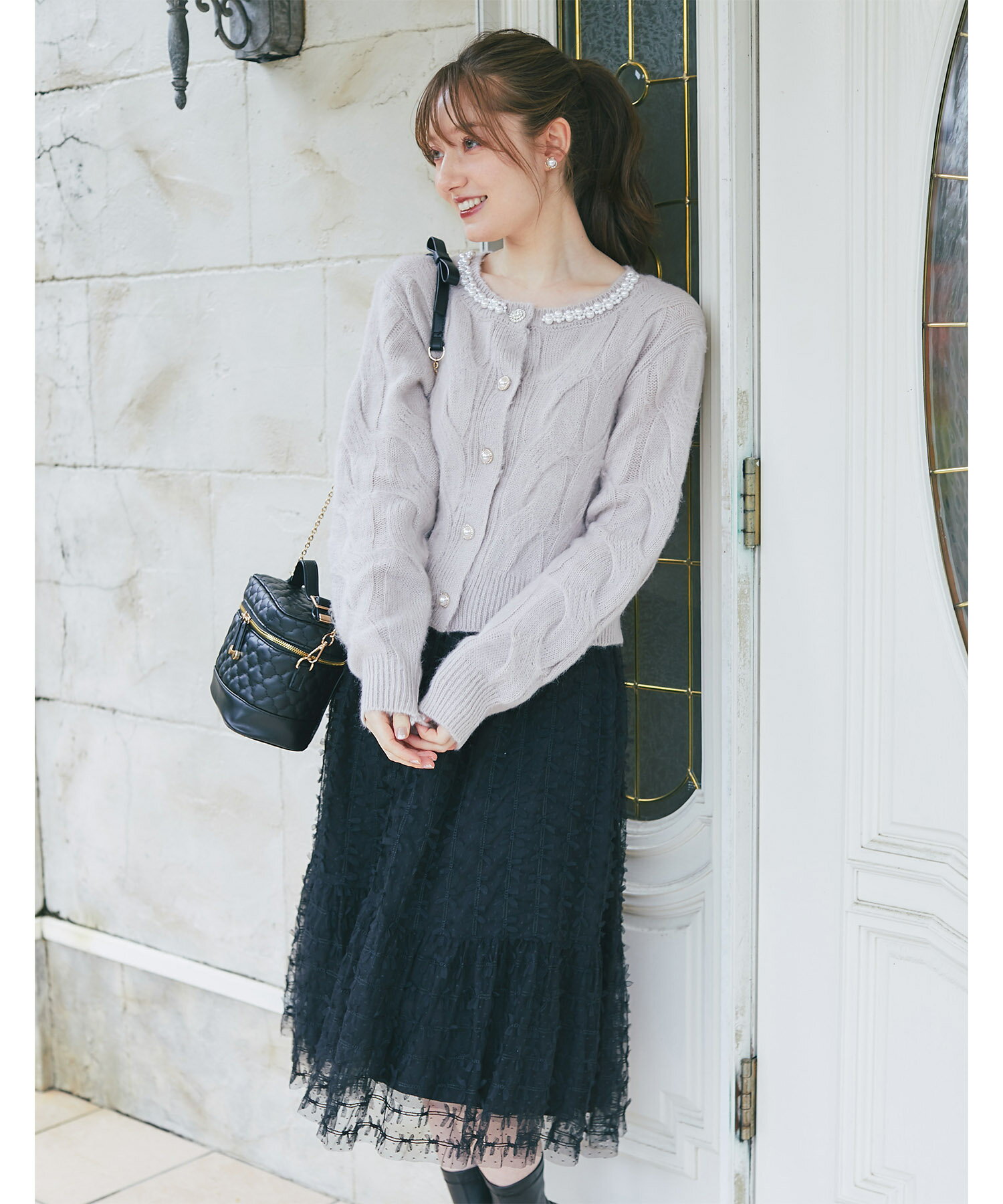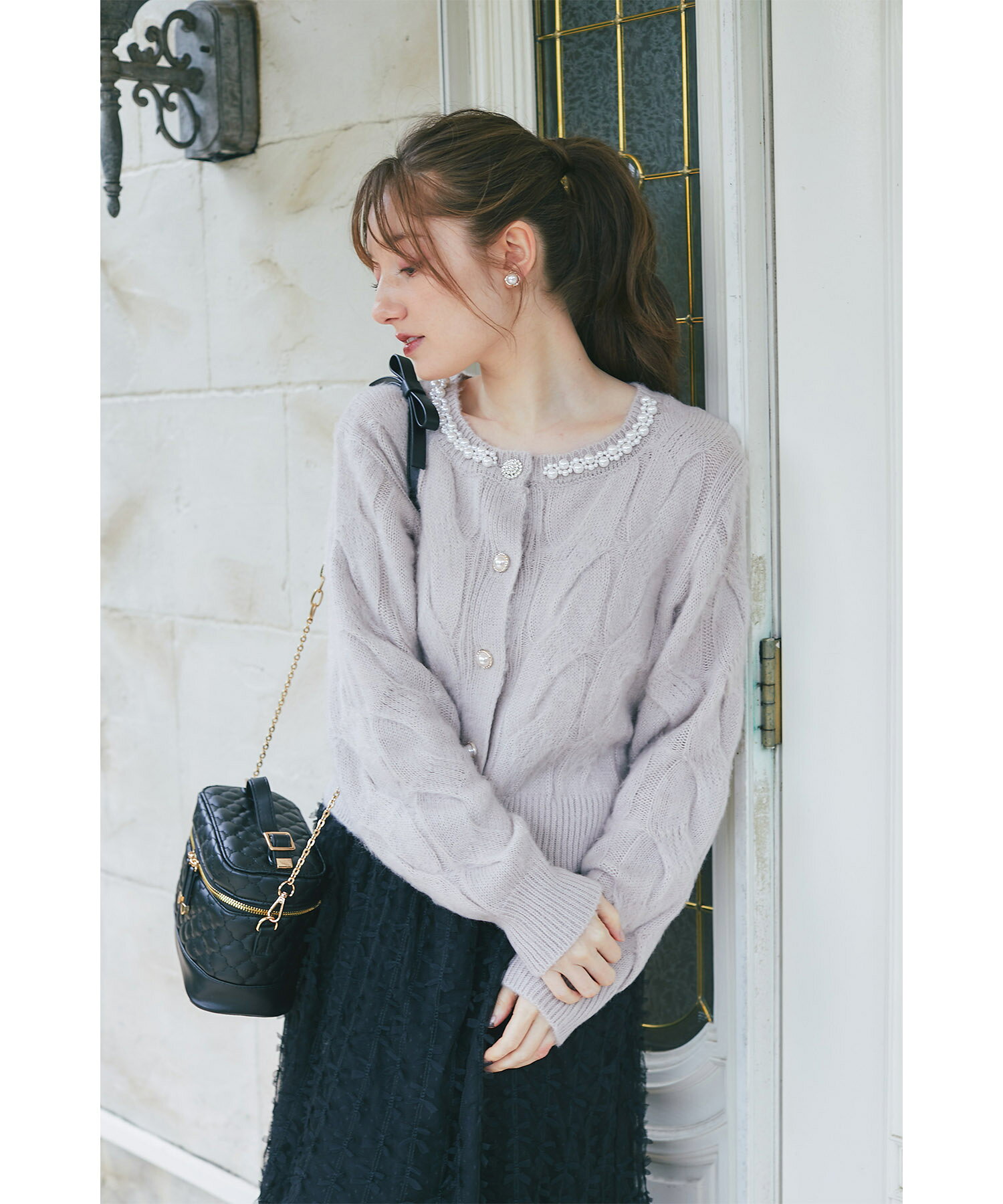 パール付きビジュー釦ケーブルニットカーディガン【asterlyn アステリン】tocco closet(トッコクローゼット) グレージュ アイボリー グレイッシュピンク 商品番号:186-192418