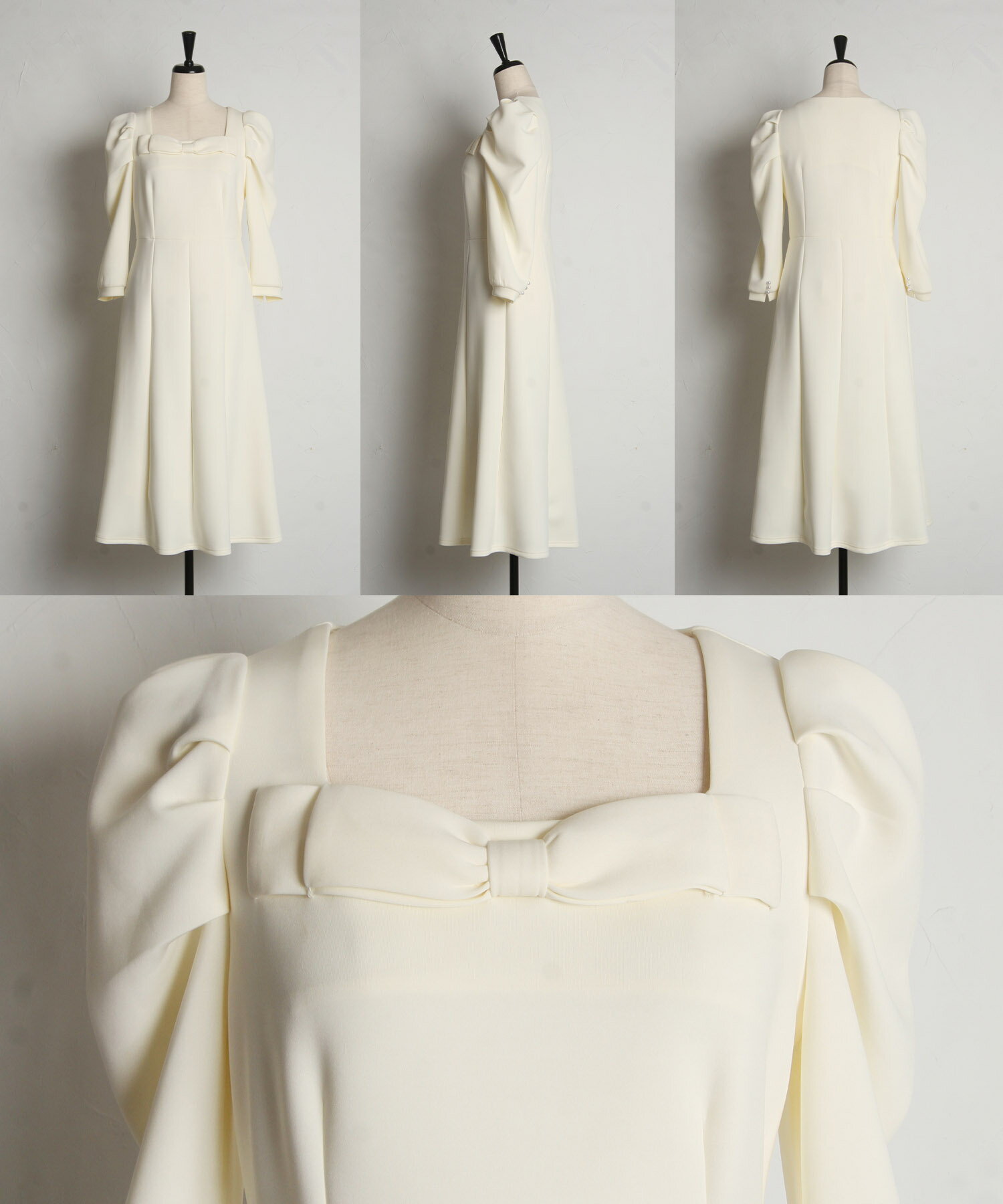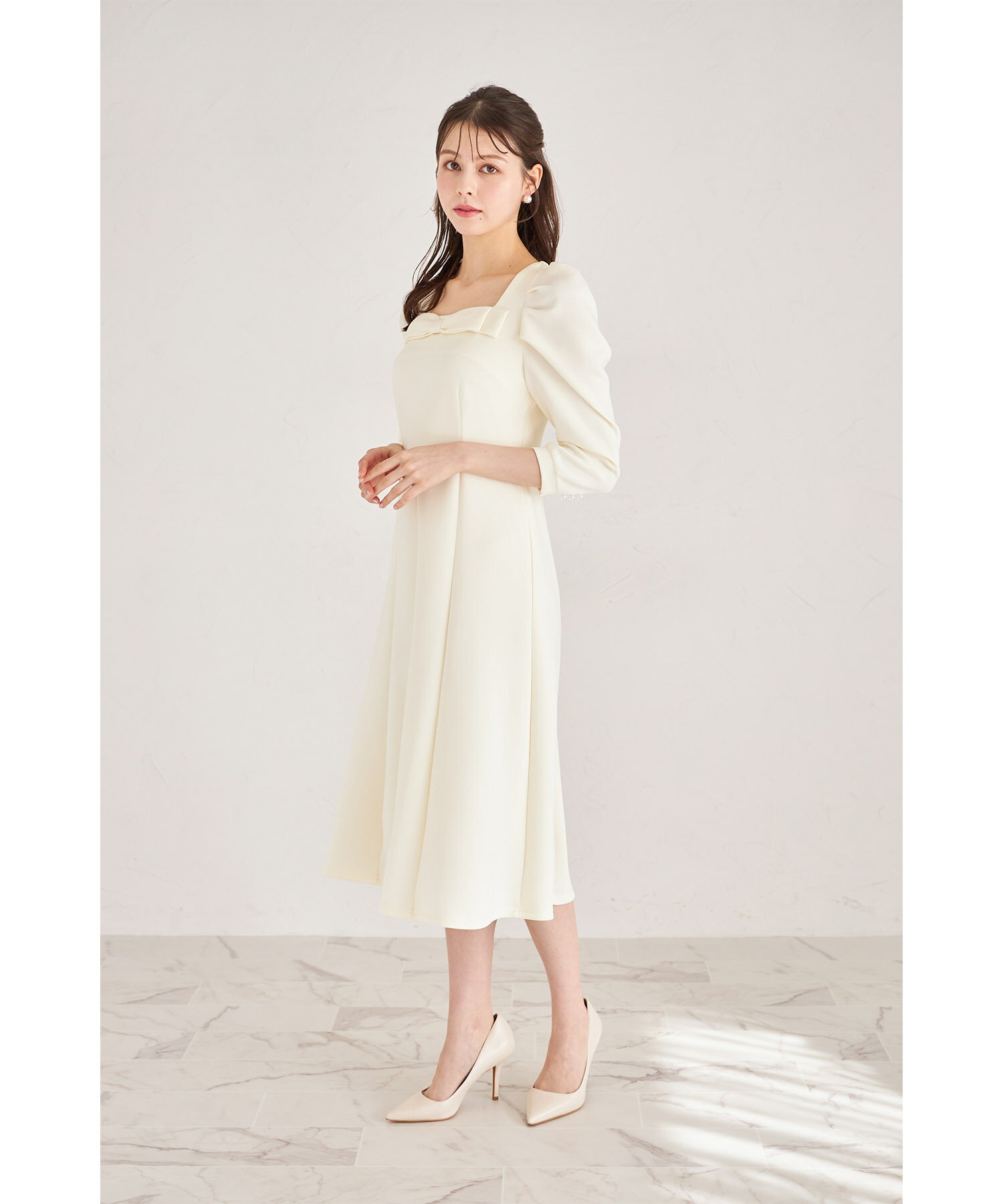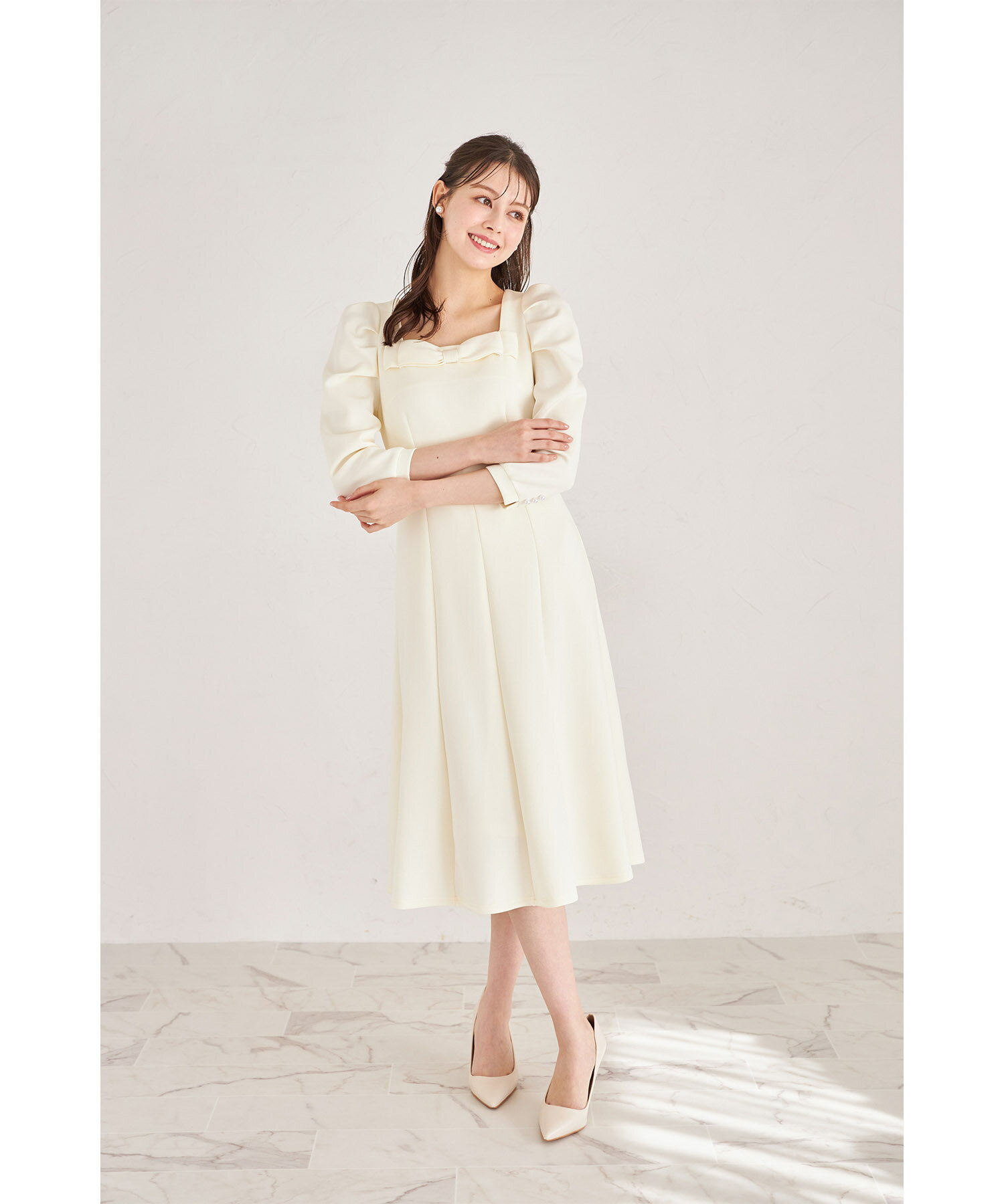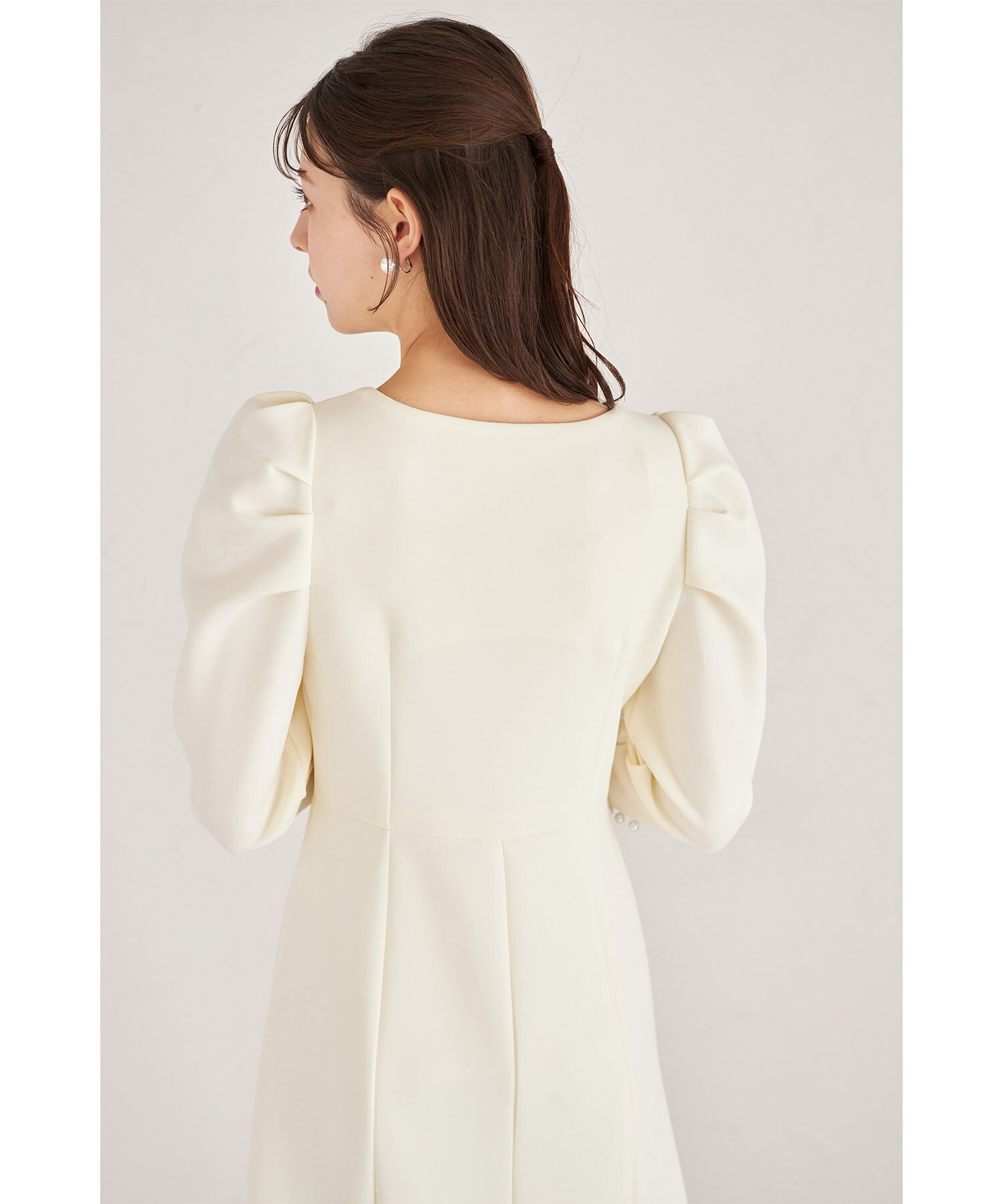 胸元リボン&袖口パール付きパワーショルダーフレアワンピース【cassiara カシアラ】tocco closet(トッコクローゼット) ネイビー アイボリー 商品番号:186-192463