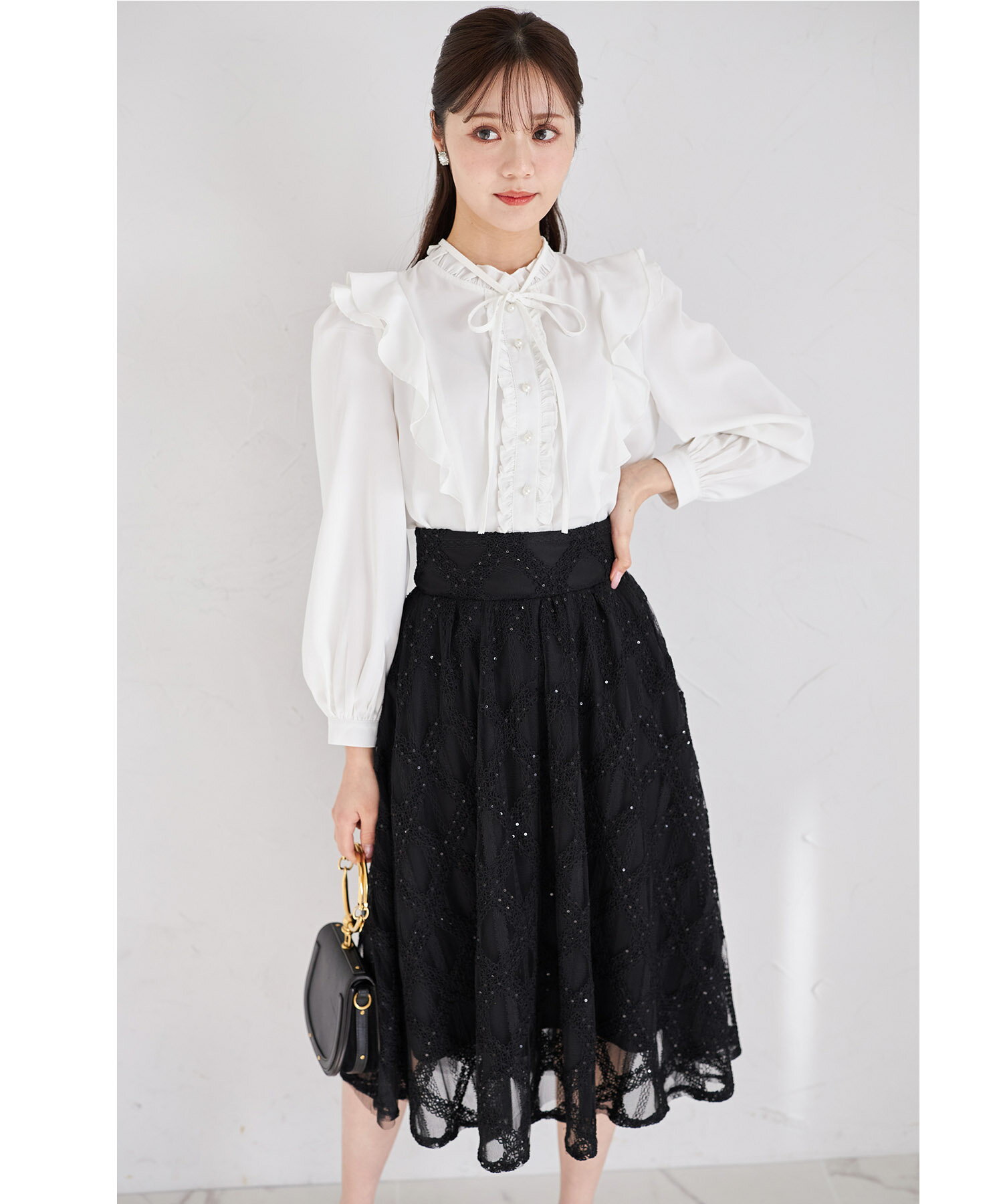 バックレースアップフラワーレースチュールフレアスカート【laverine ラヴェリン】tocco closet(トッコクローゼット) ブラック オフホワイト 商品番号:186-192489
