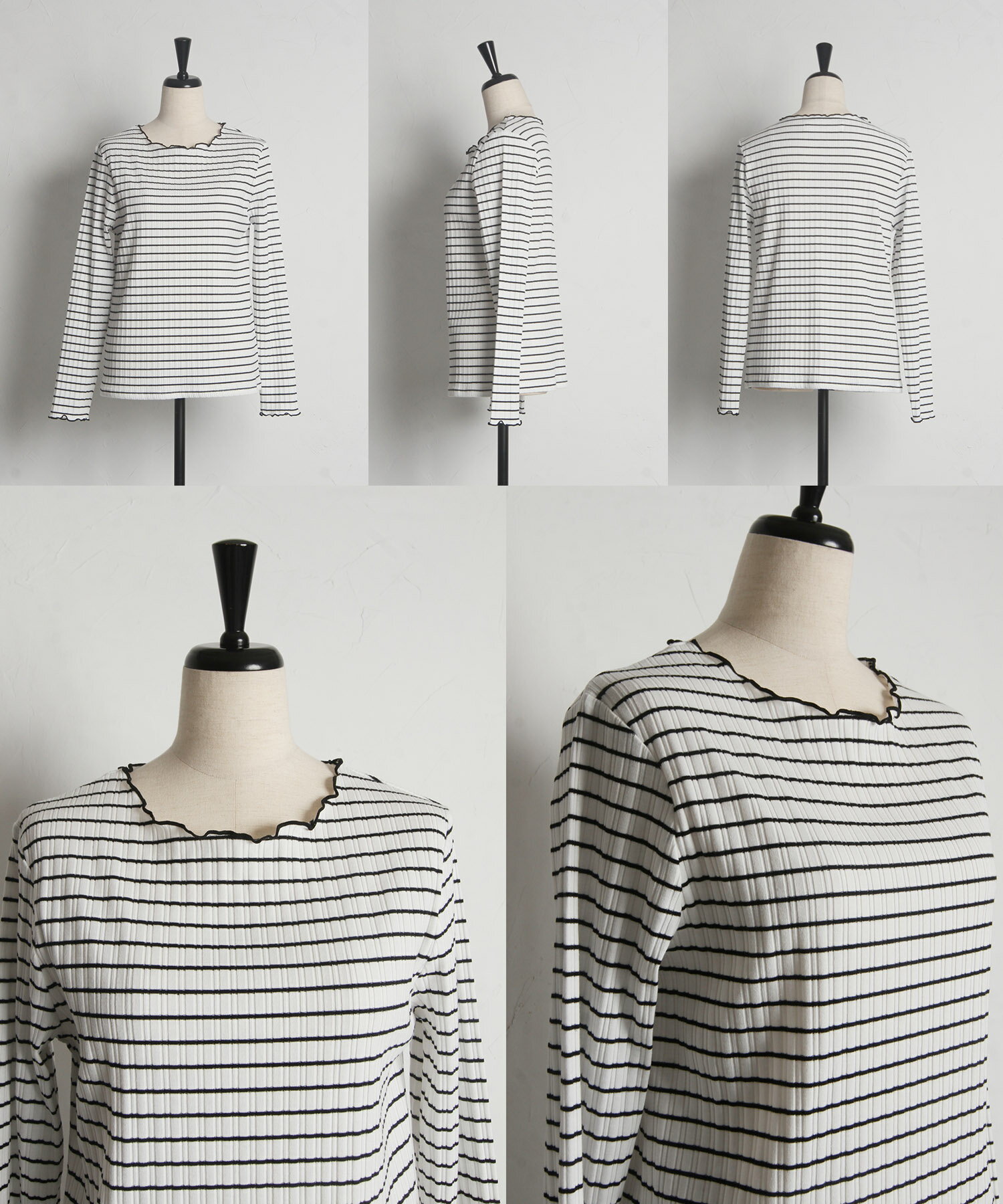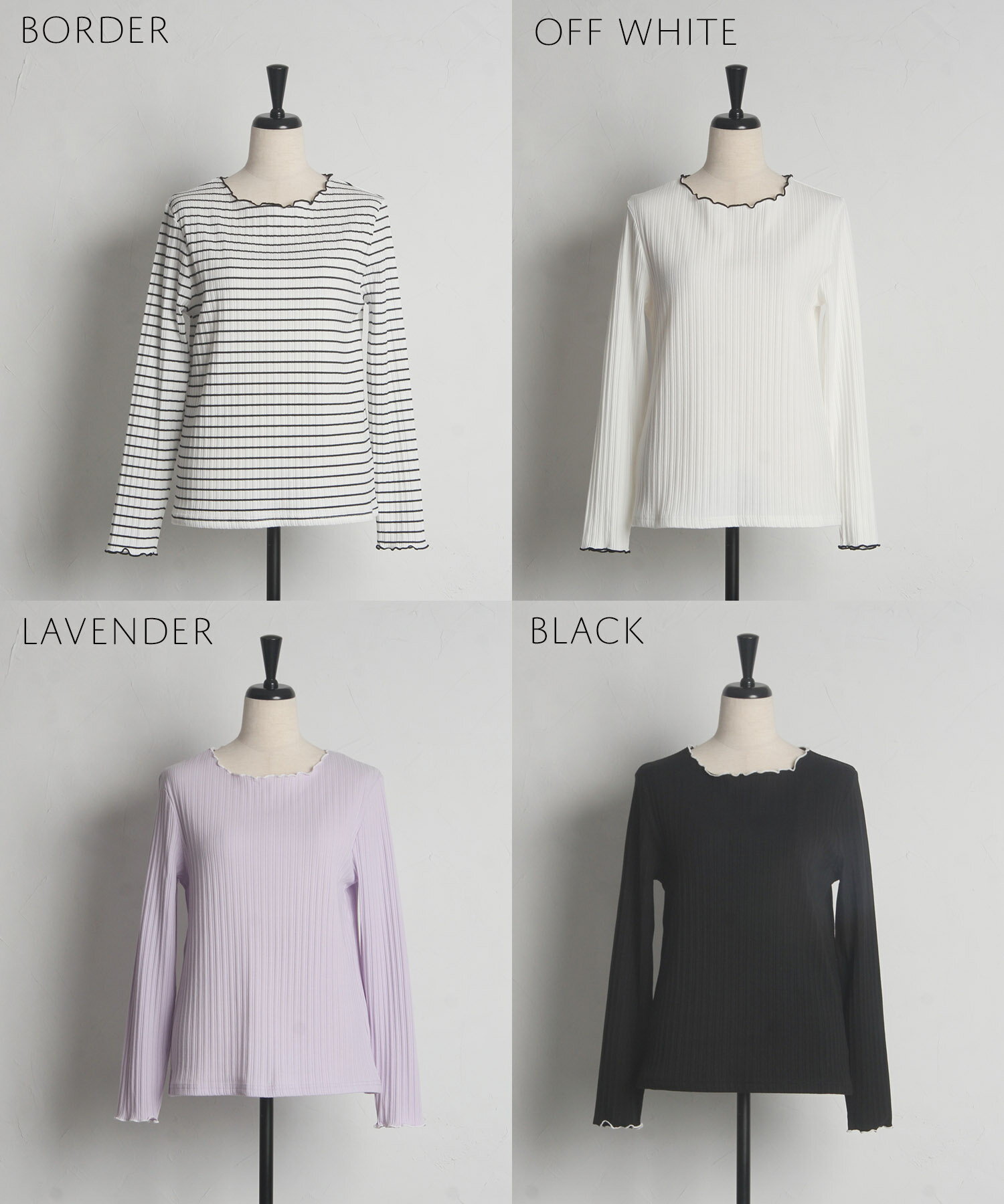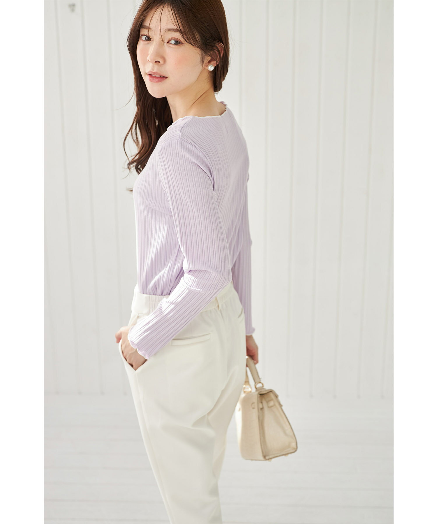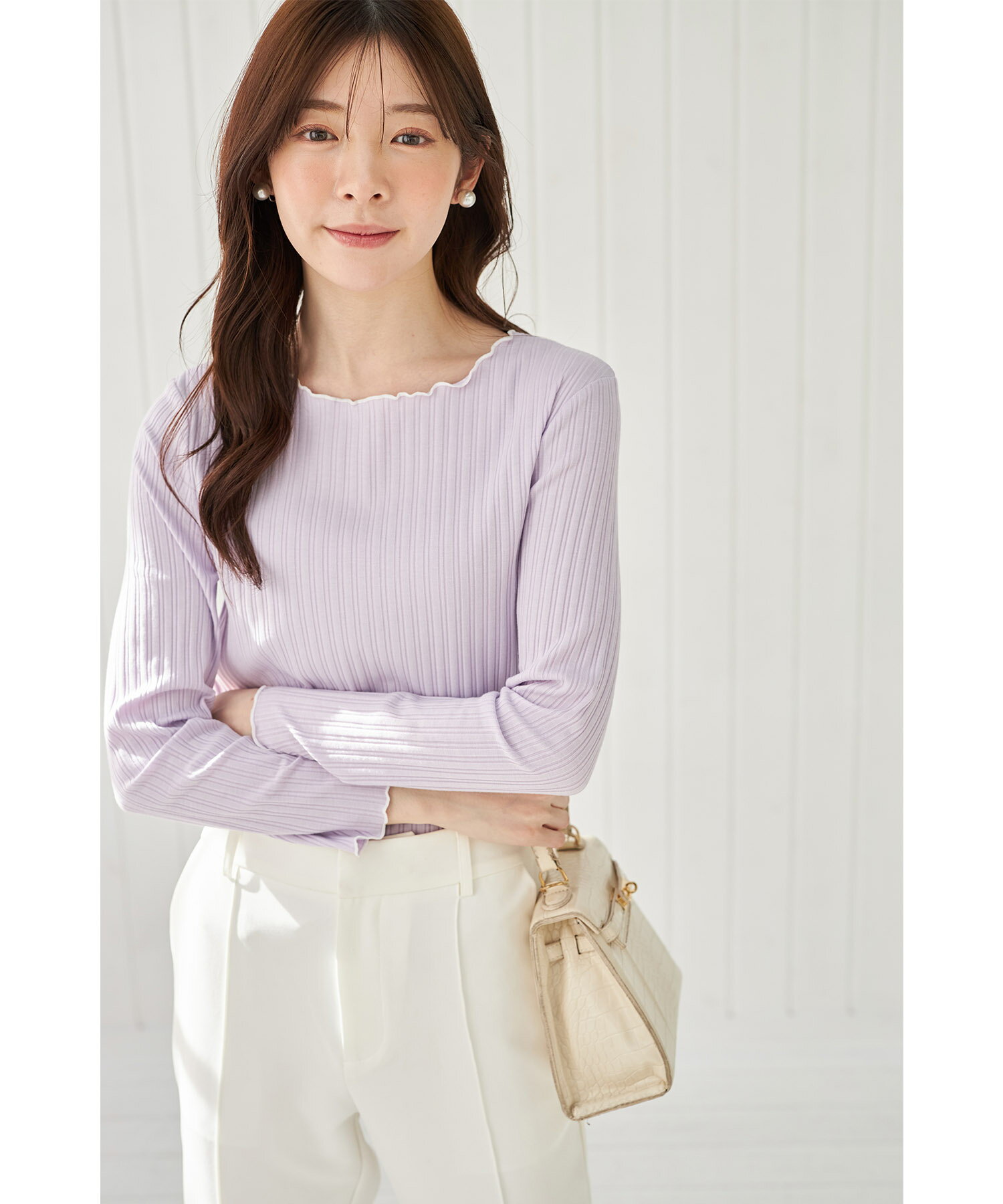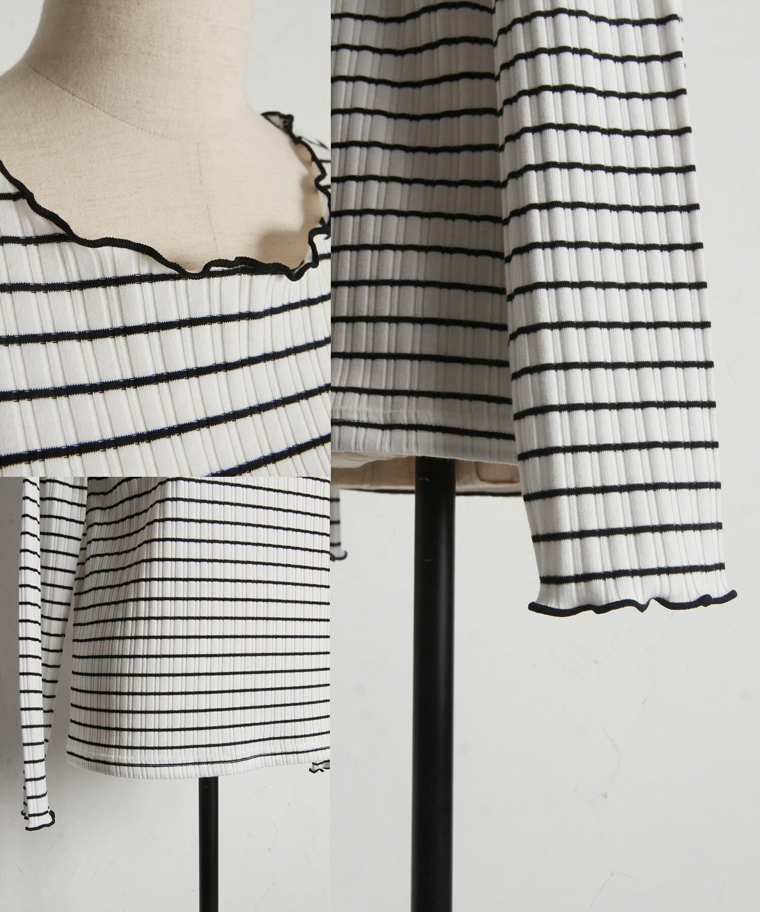 配色メローフリルリブカットソープルオーバー【jaslene ジャスリン】tocco closet(トッコクローゼット) ボーダー オフホワイト ラベンダー ブラック 商品番号:186-192840