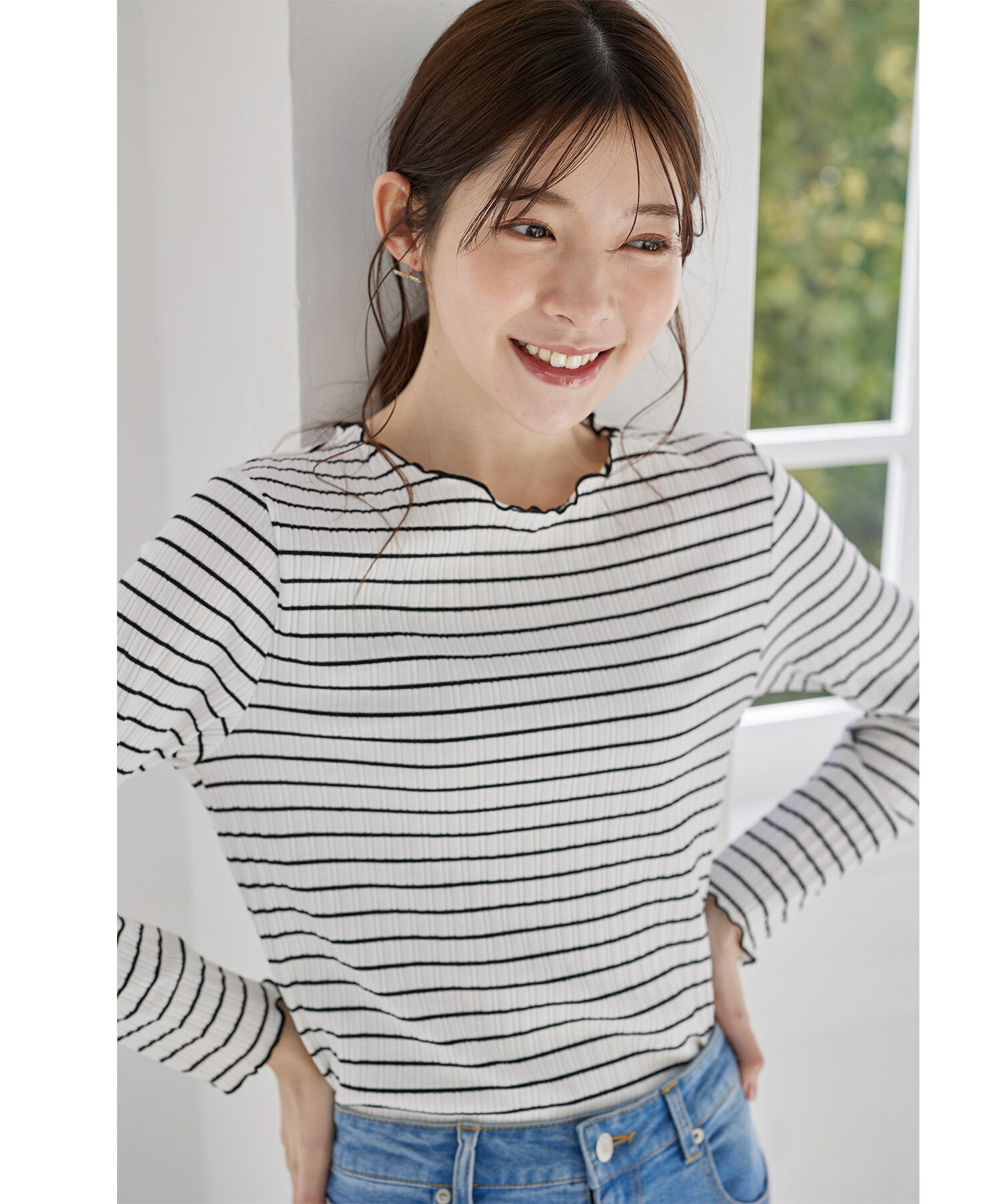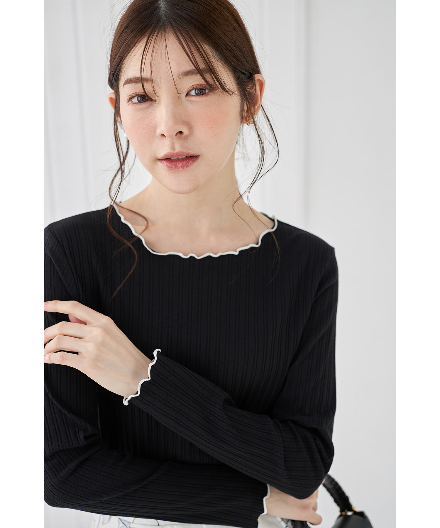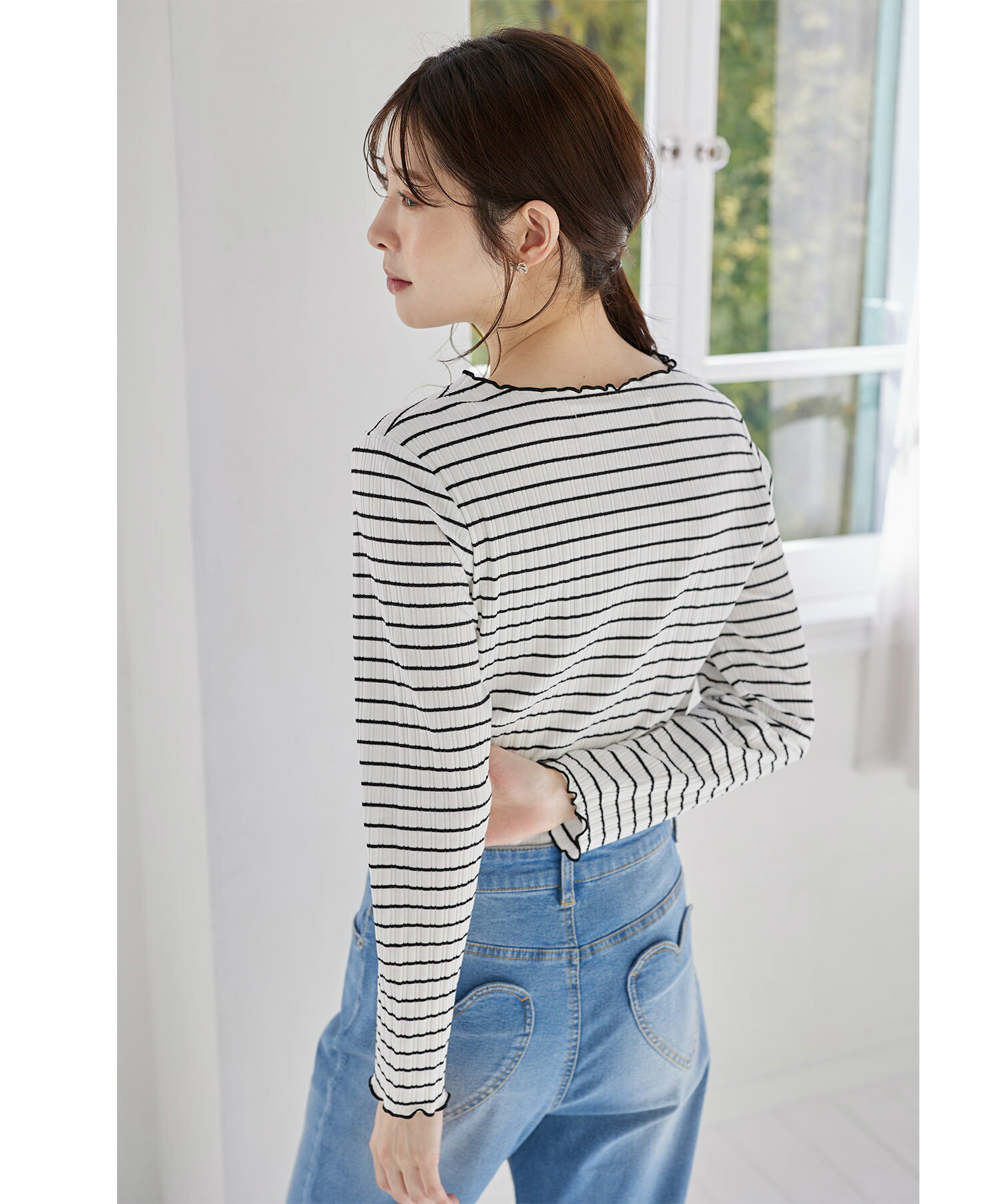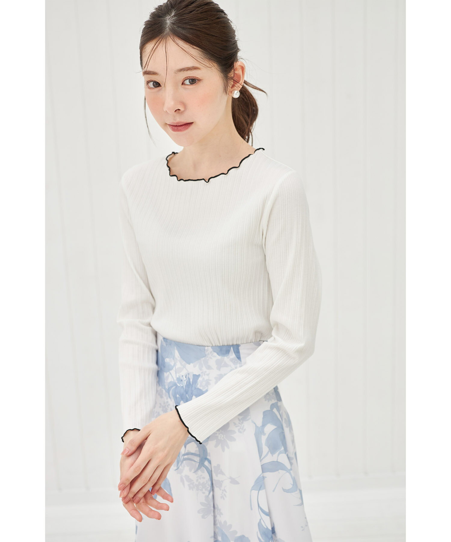 配色メローフリルリブカットソープルオーバー【jaslene ジャスリン】tocco closet(トッコクローゼット) ボーダー オフホワイト ラベンダー ブラック 商品番号:186-192840