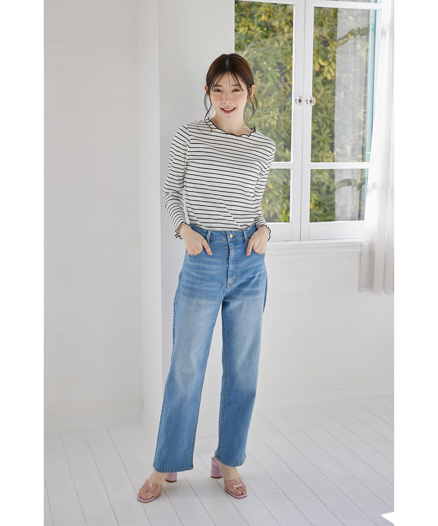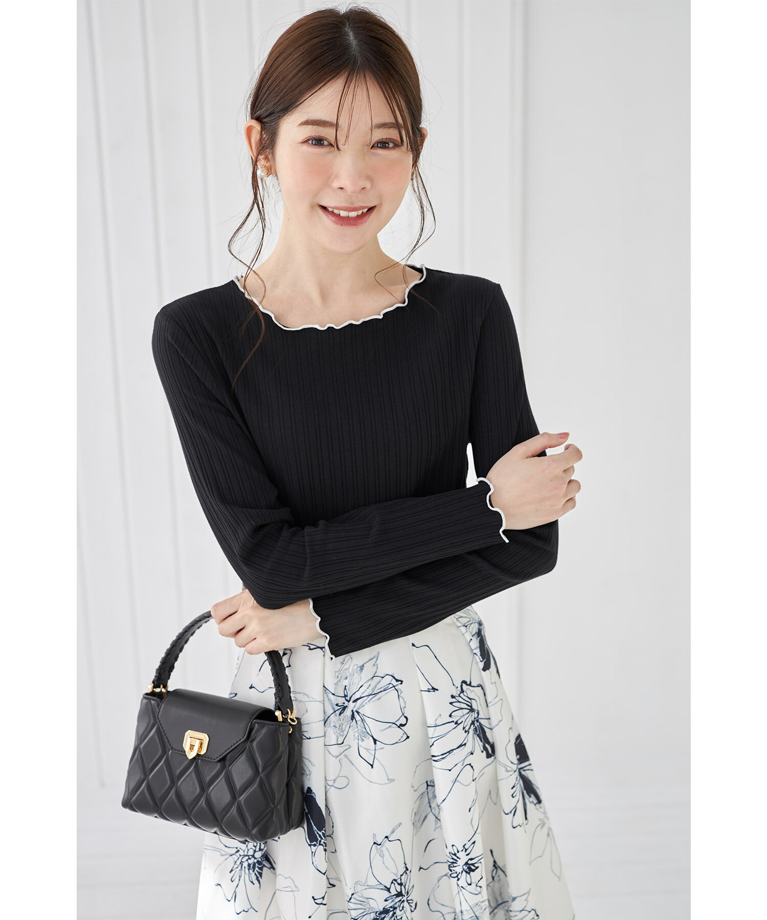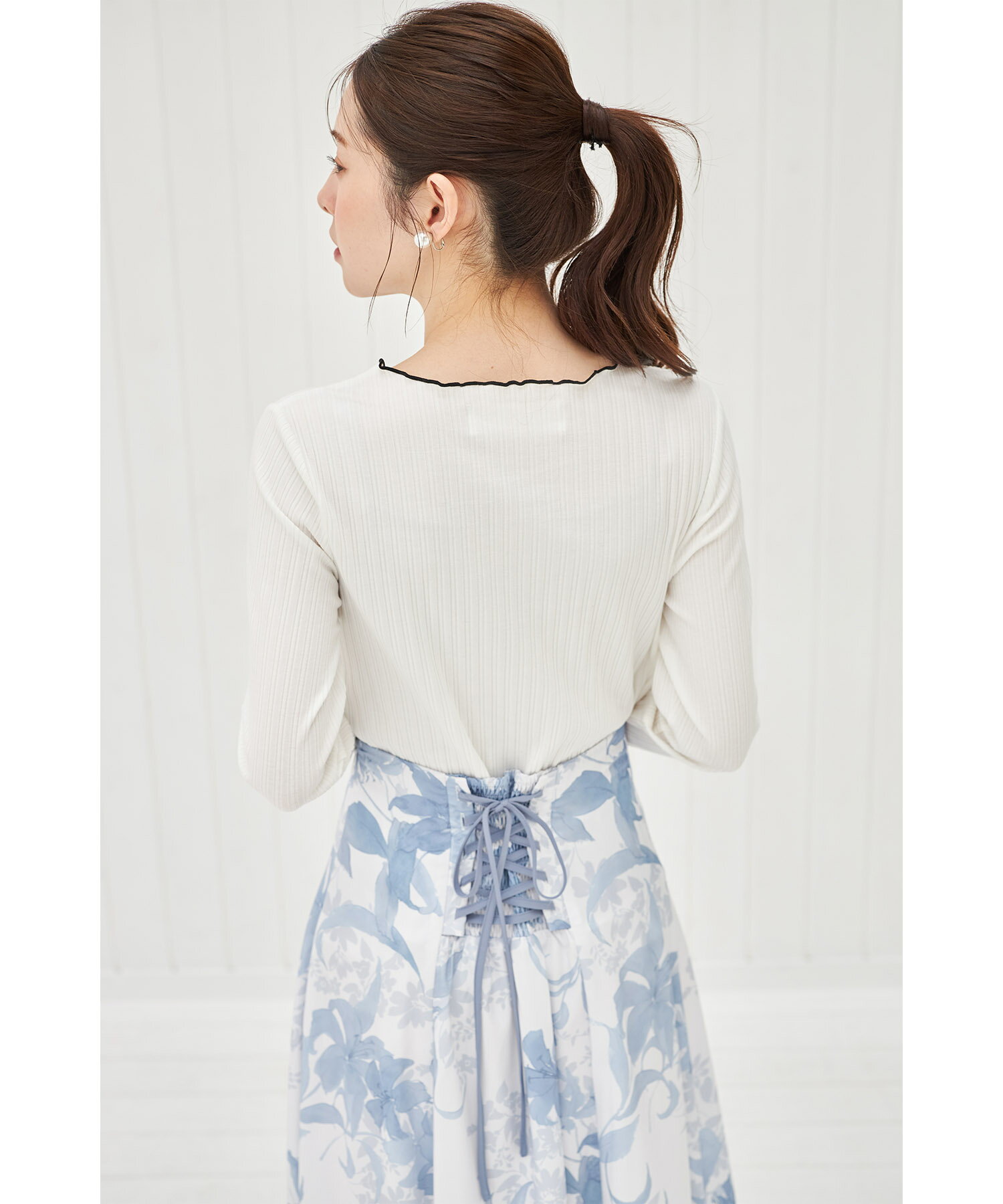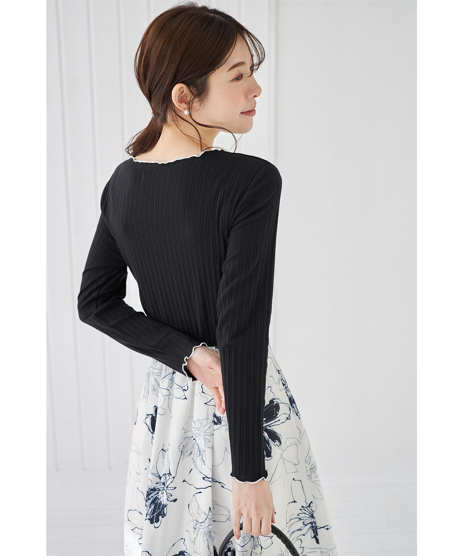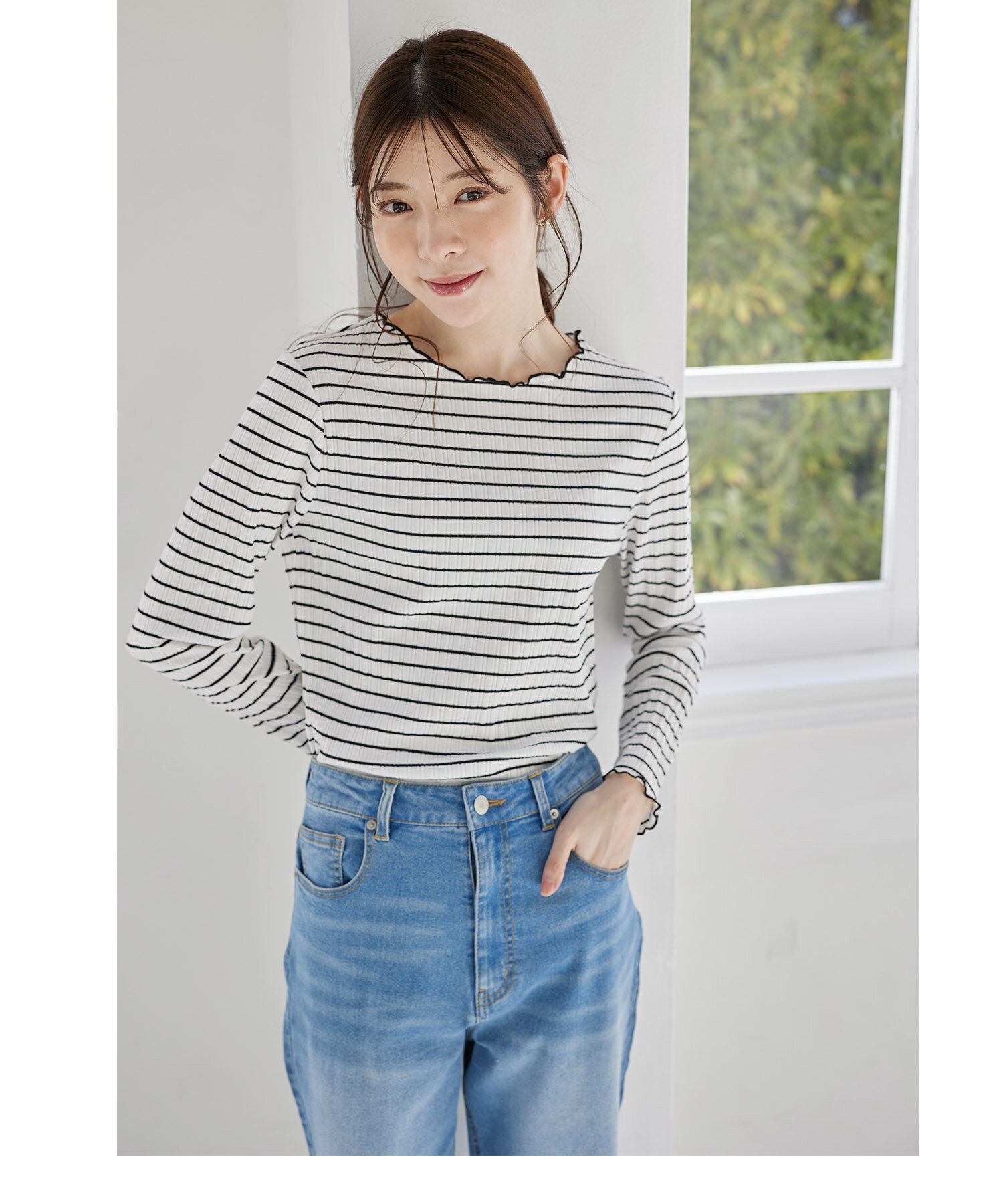 配色メローフリルリブカットソープルオーバー【jaslene ジャスリン】tocco closet(トッコクローゼット) ボーダー オフホワイト ラベンダー ブラック 商品番号:186-192840