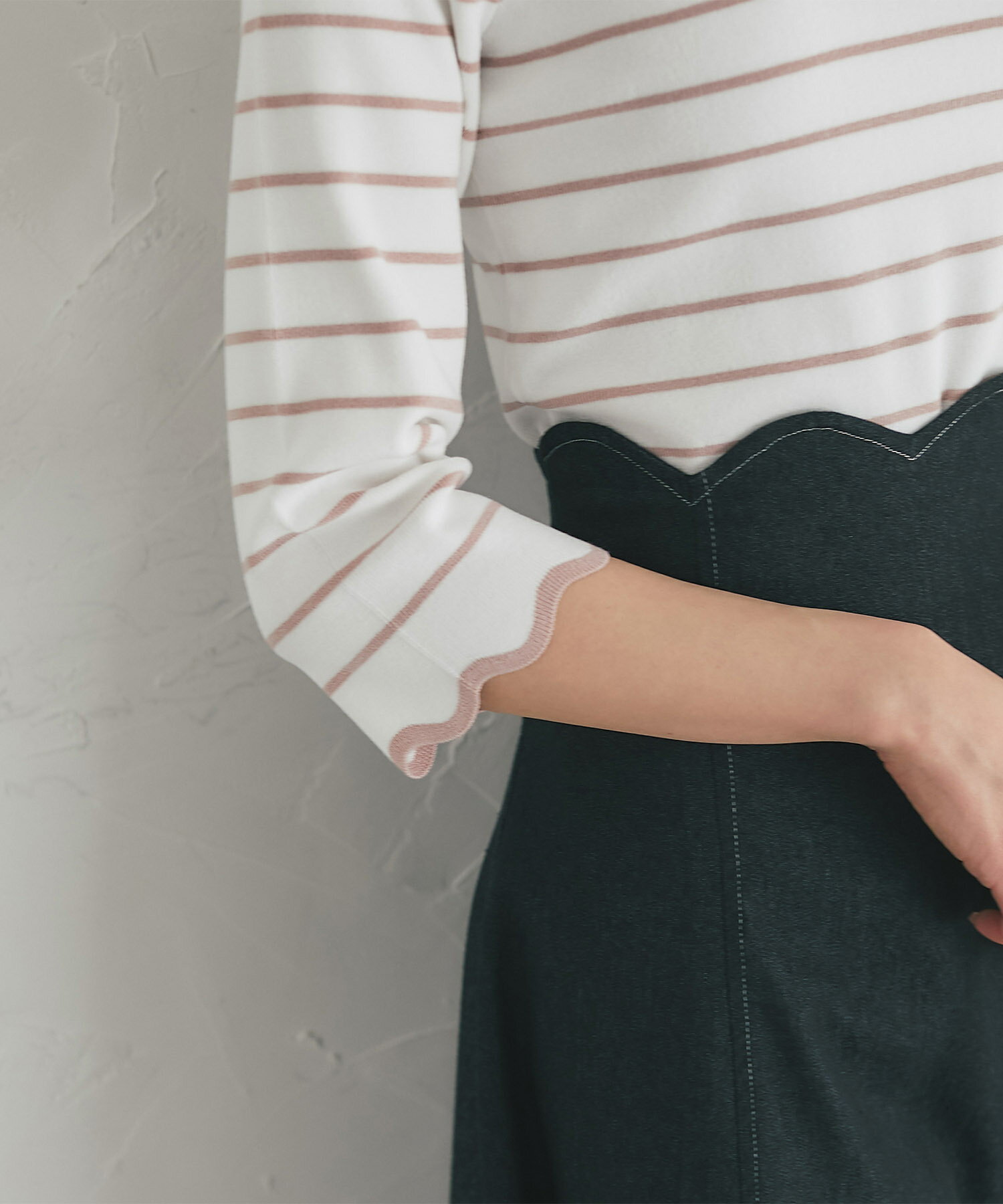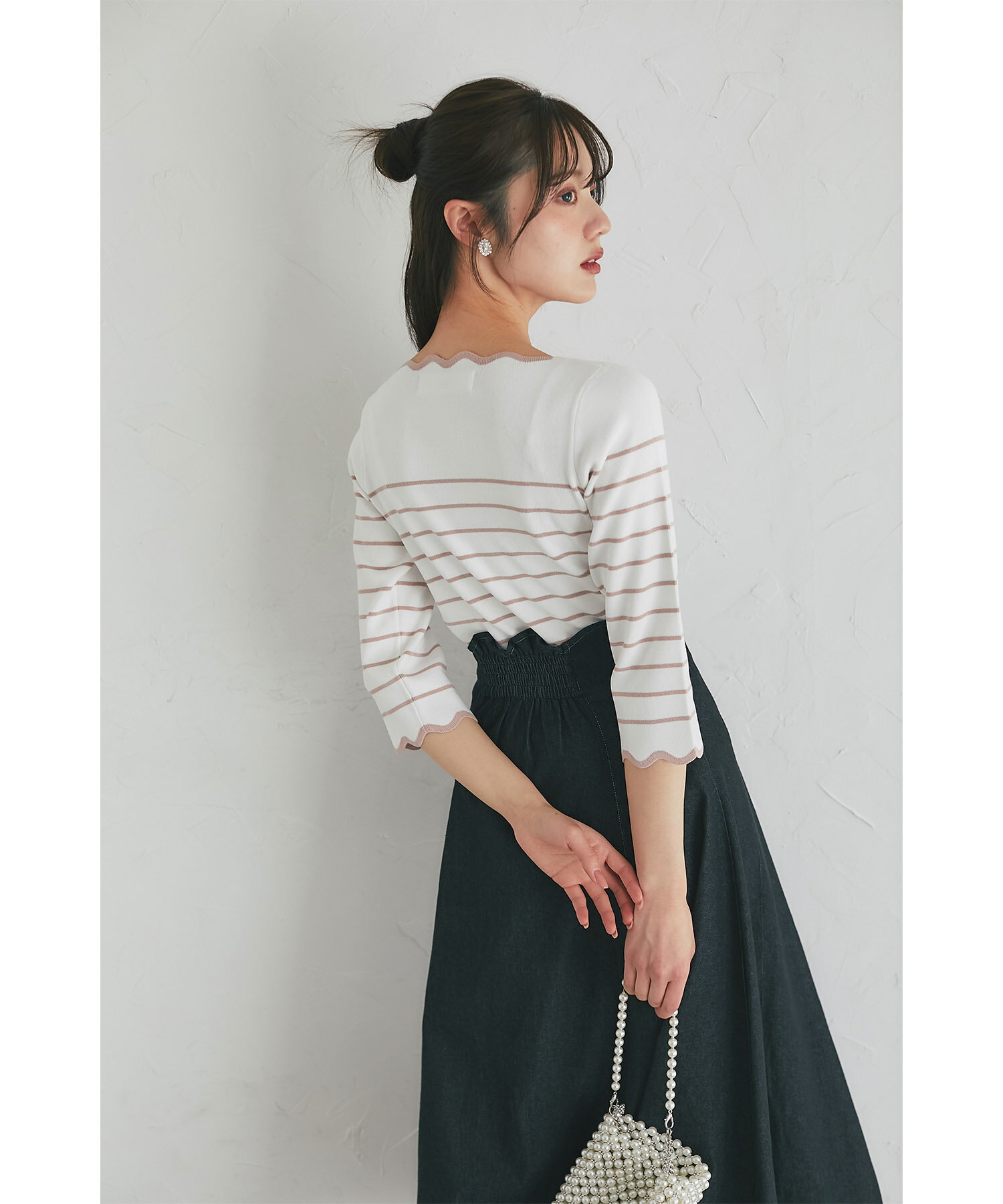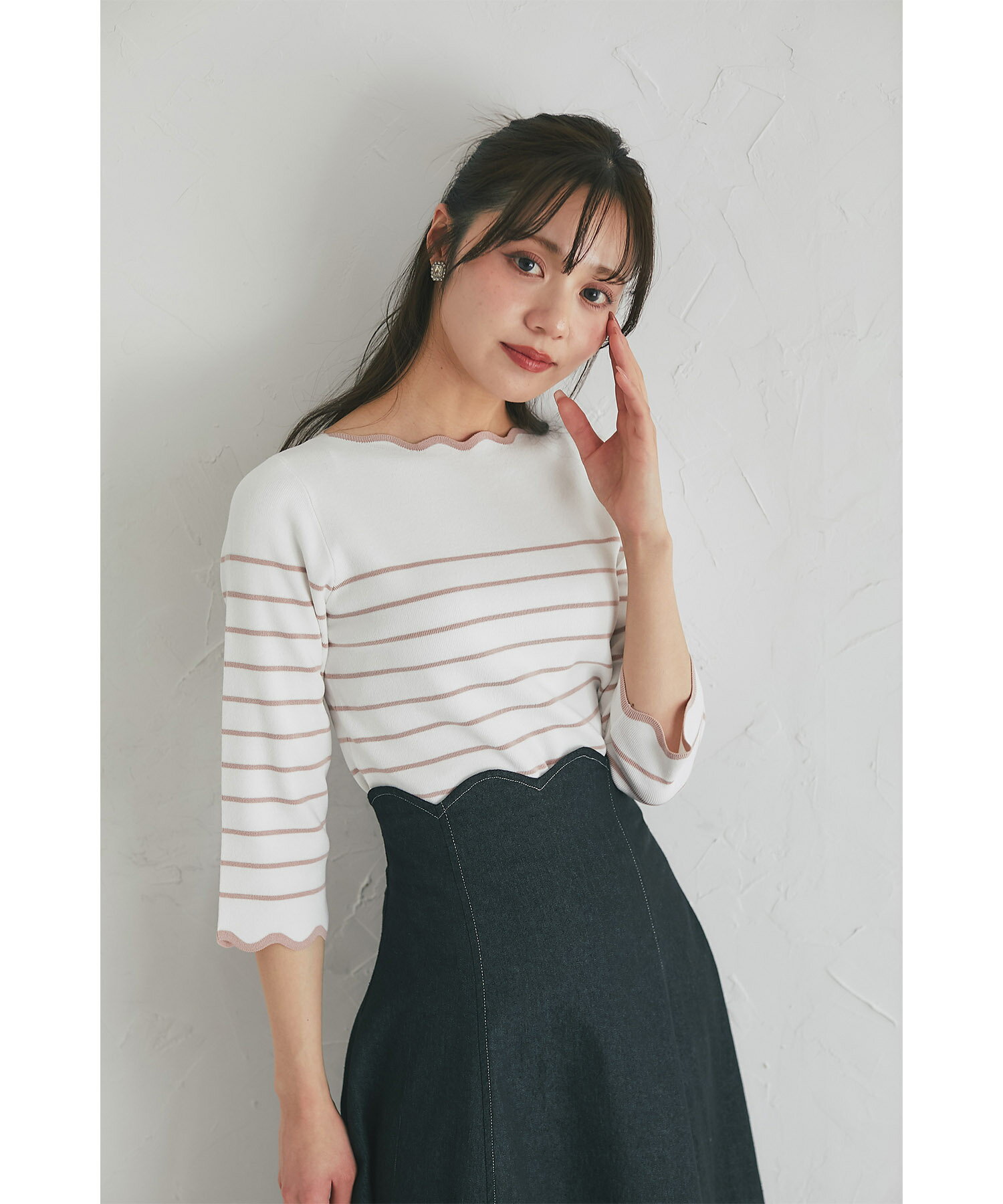 スカラップカットボーダーニットプルオーバー【sorenia ソレニア】tocco closet(トッコクローゼット) ピンク ラベンダー ブラック 商品番号:186-193677