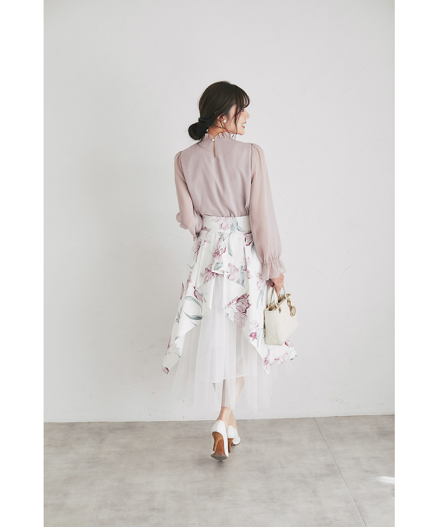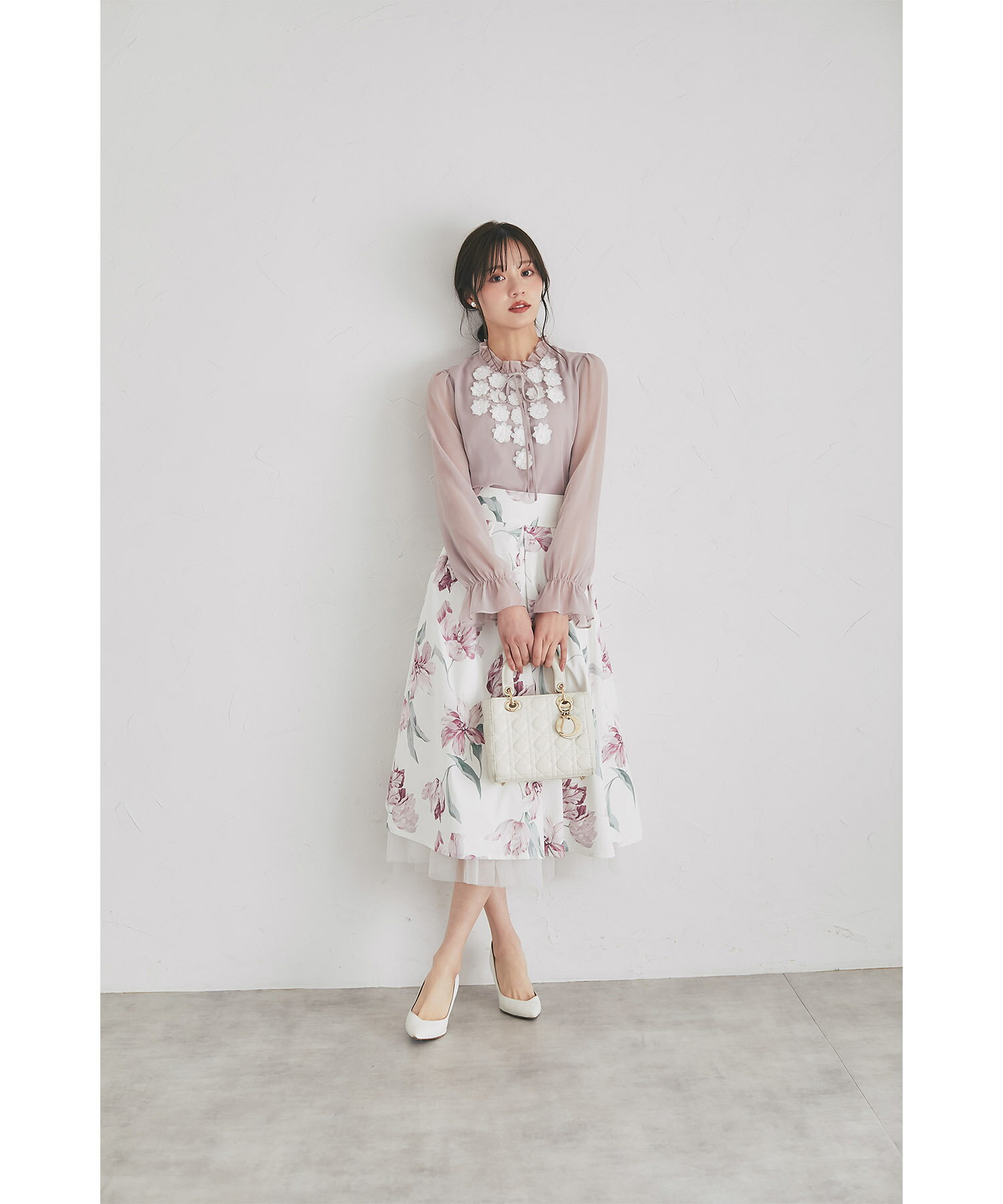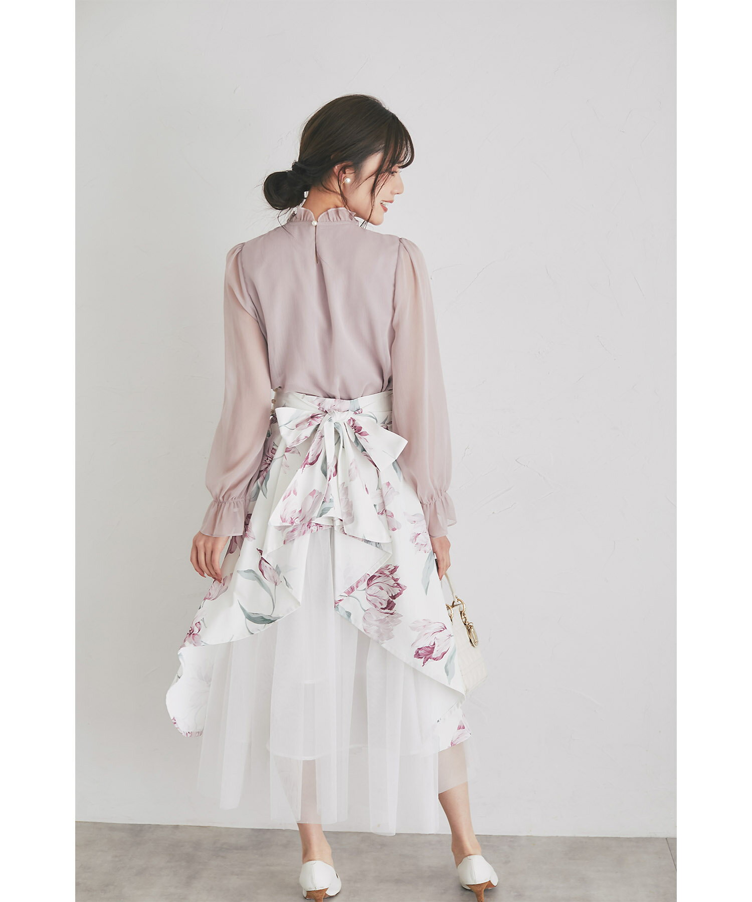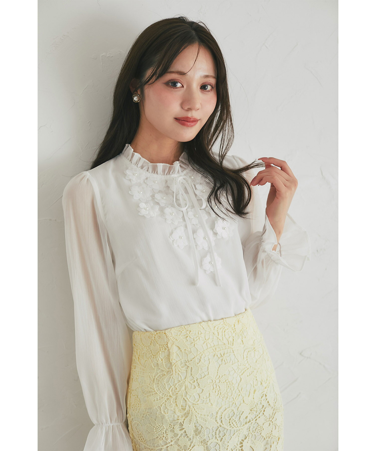 立体フラワーモチーフ&リボン付き楊柳ブラウス【faylith フェイリス】tocco closet(トッコクローゼット) グレイッシュピンク オフホワイト 商品番号:186-193935