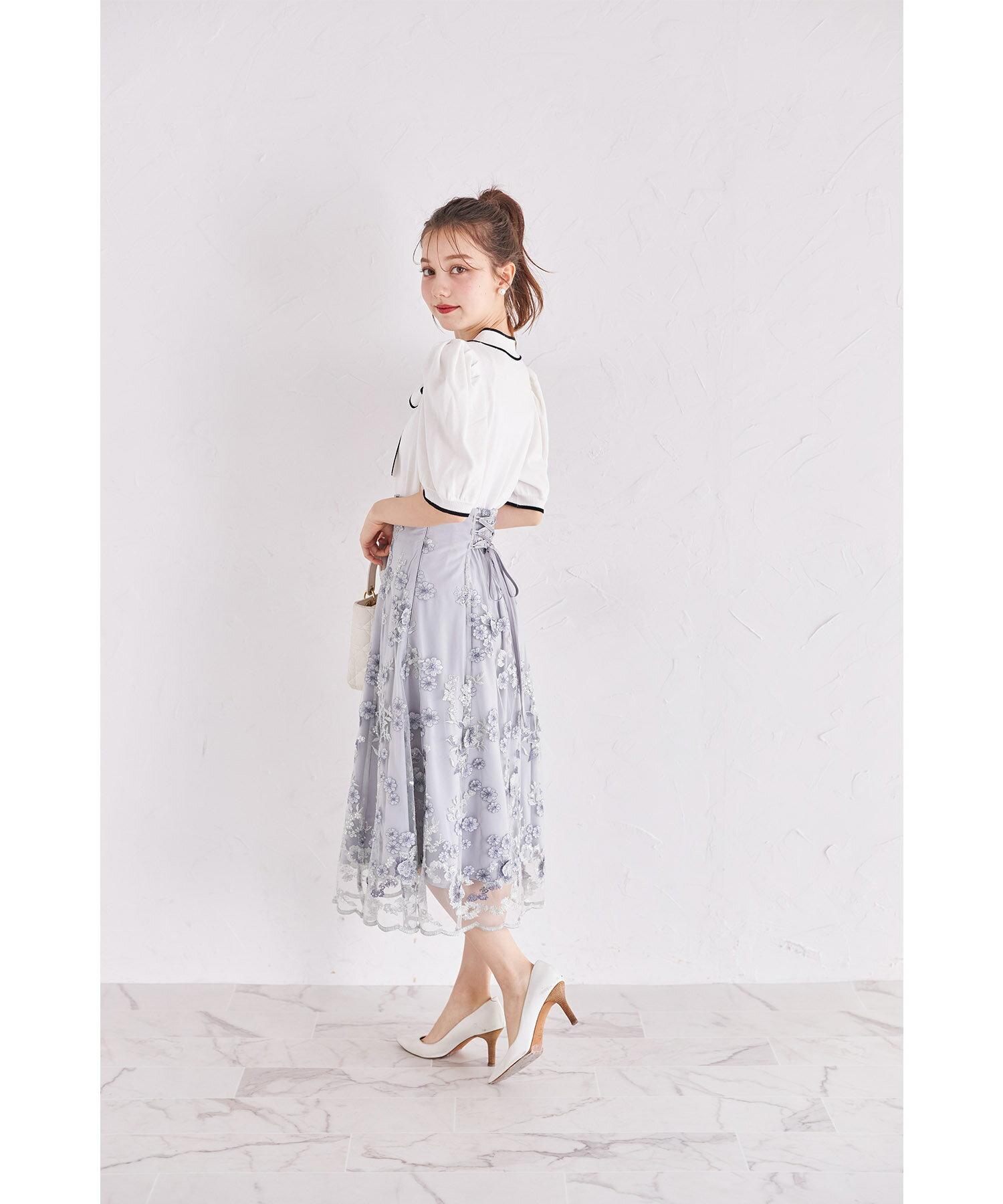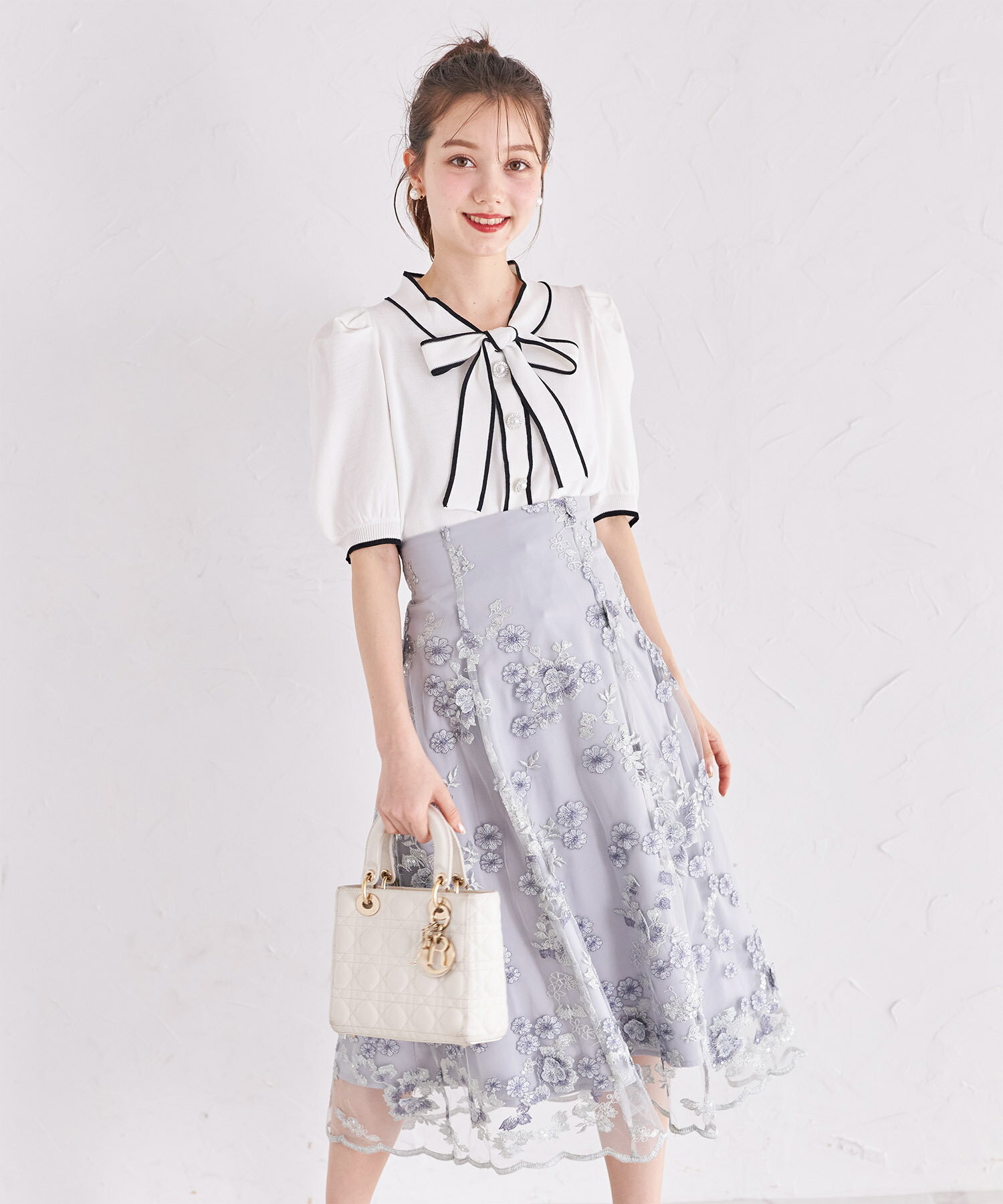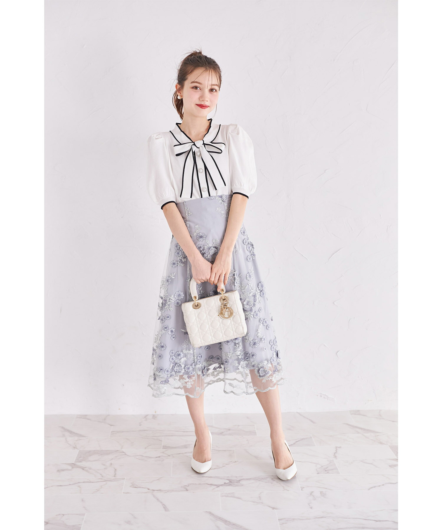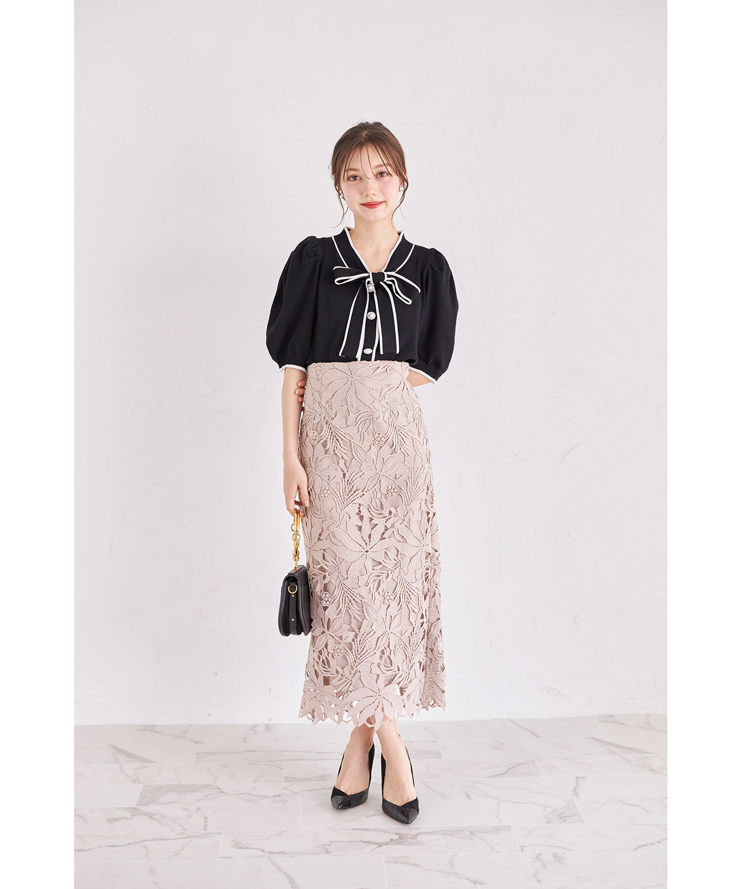 パール飾り釦付き配色ボウタイリボンニットプルオーバー【flarille フラリル】tocco closet(トッコクローゼット) オフホワイト ブラック 商品番号:186-194115