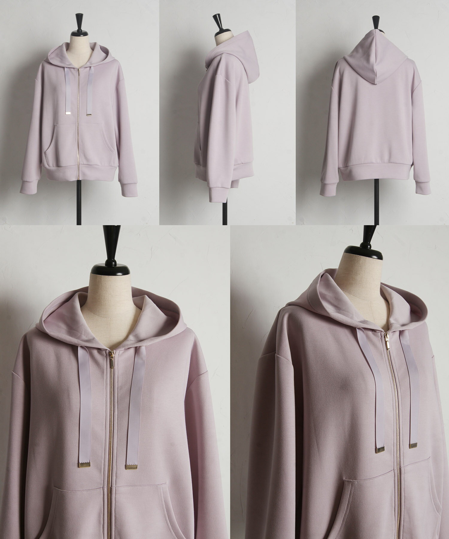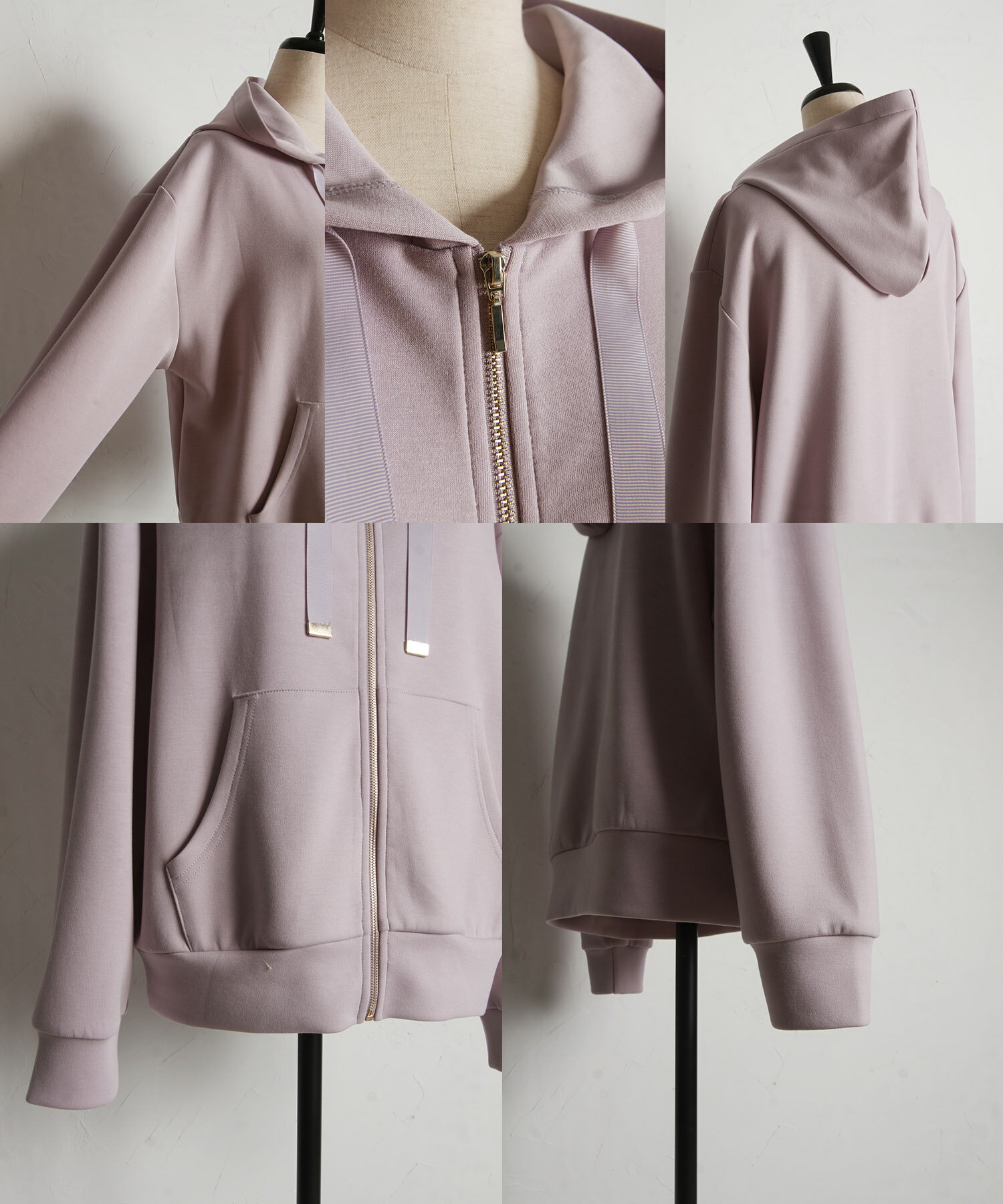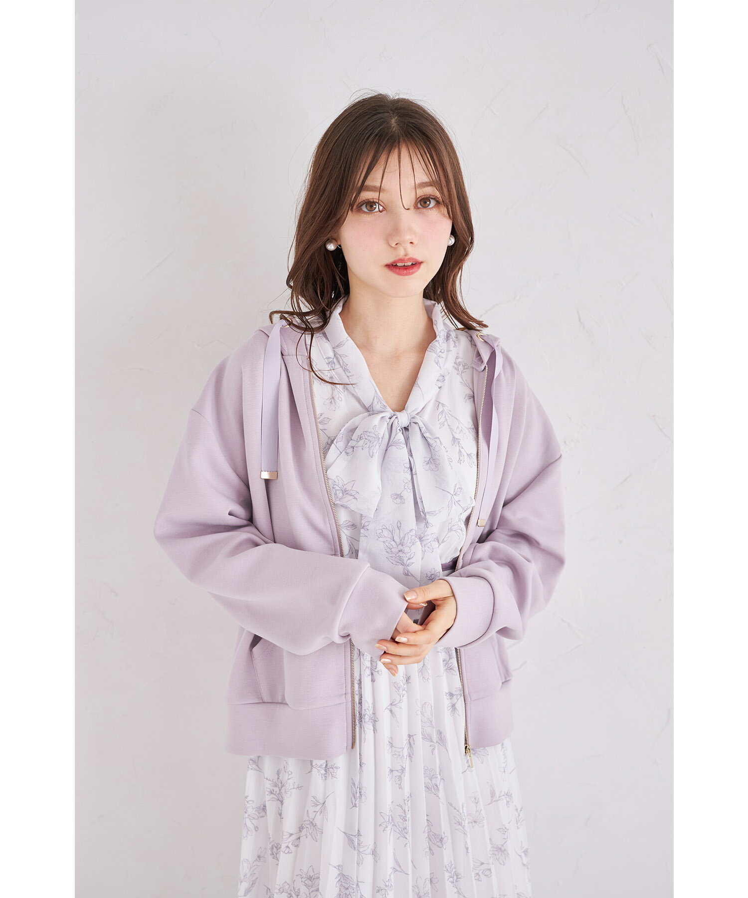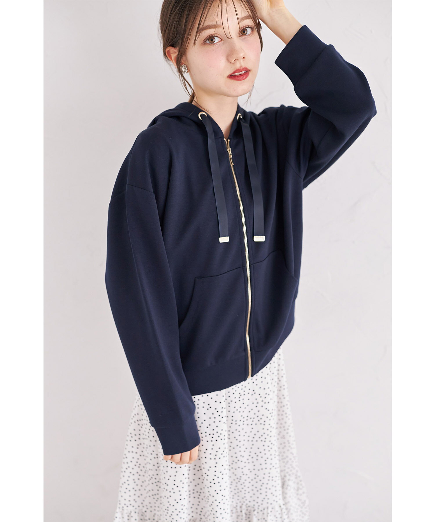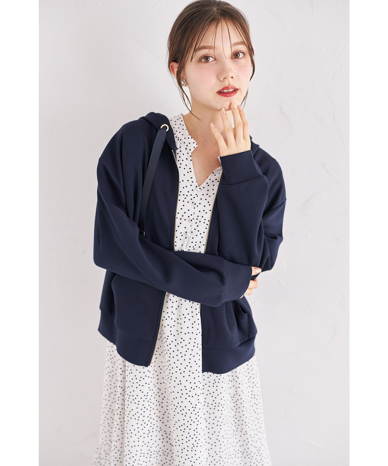 軽くて優しい着心地♪ふんわりスフレタッチジップパーカー【jolivra ジョリヴラ】tocco closet(トッコクローゼット) ネイビー オフホワイト ラベンダー 商品番号:186-192924