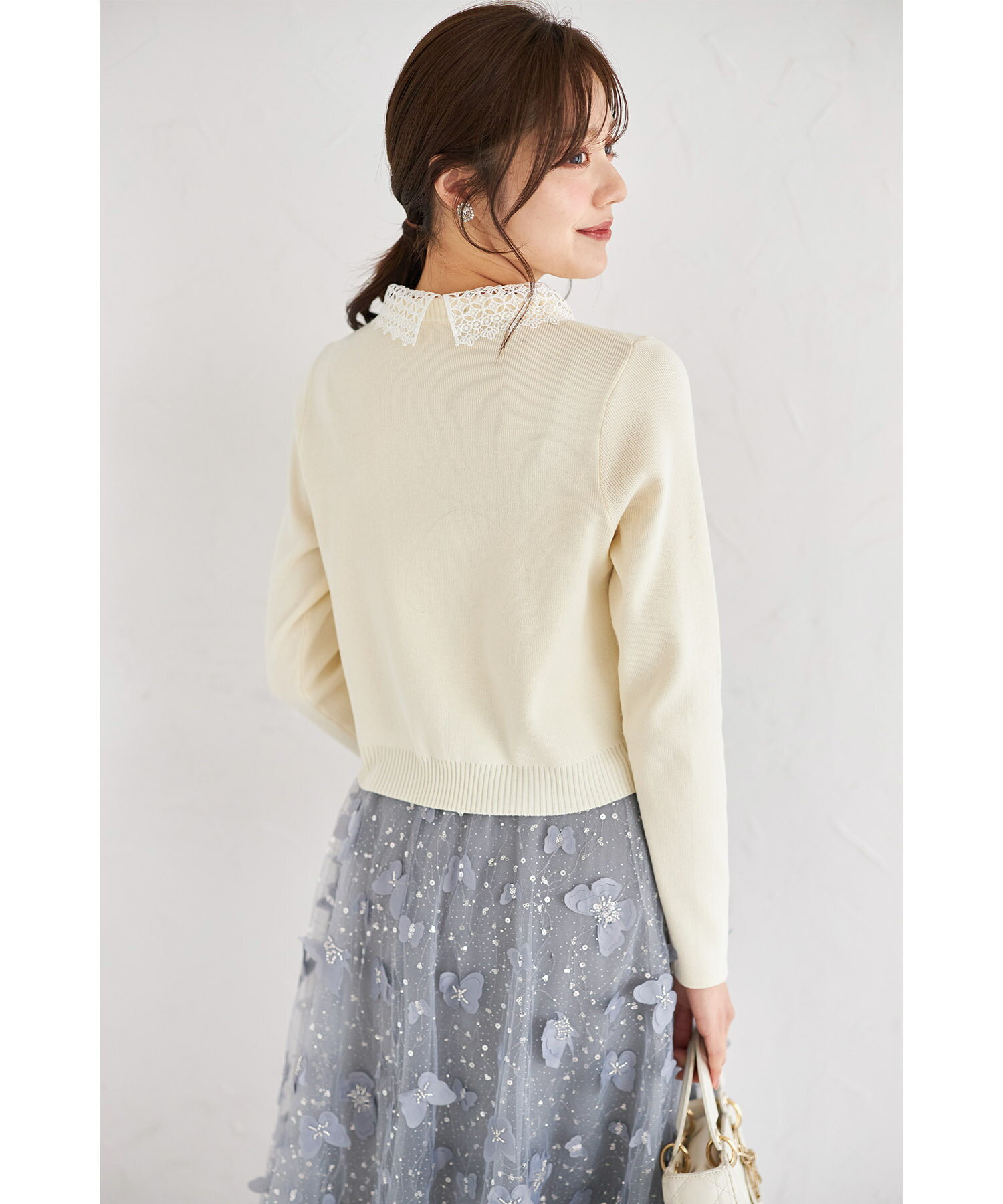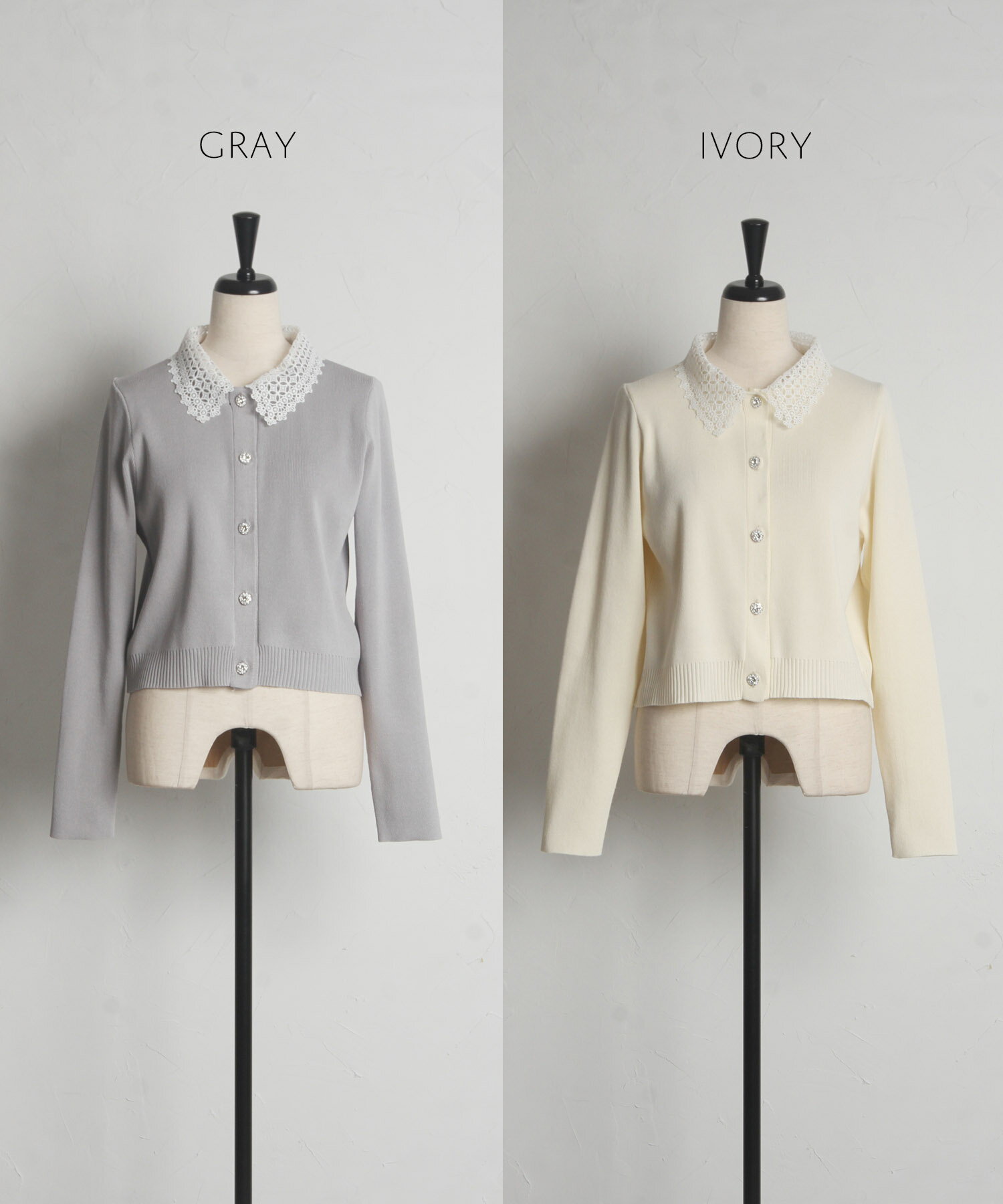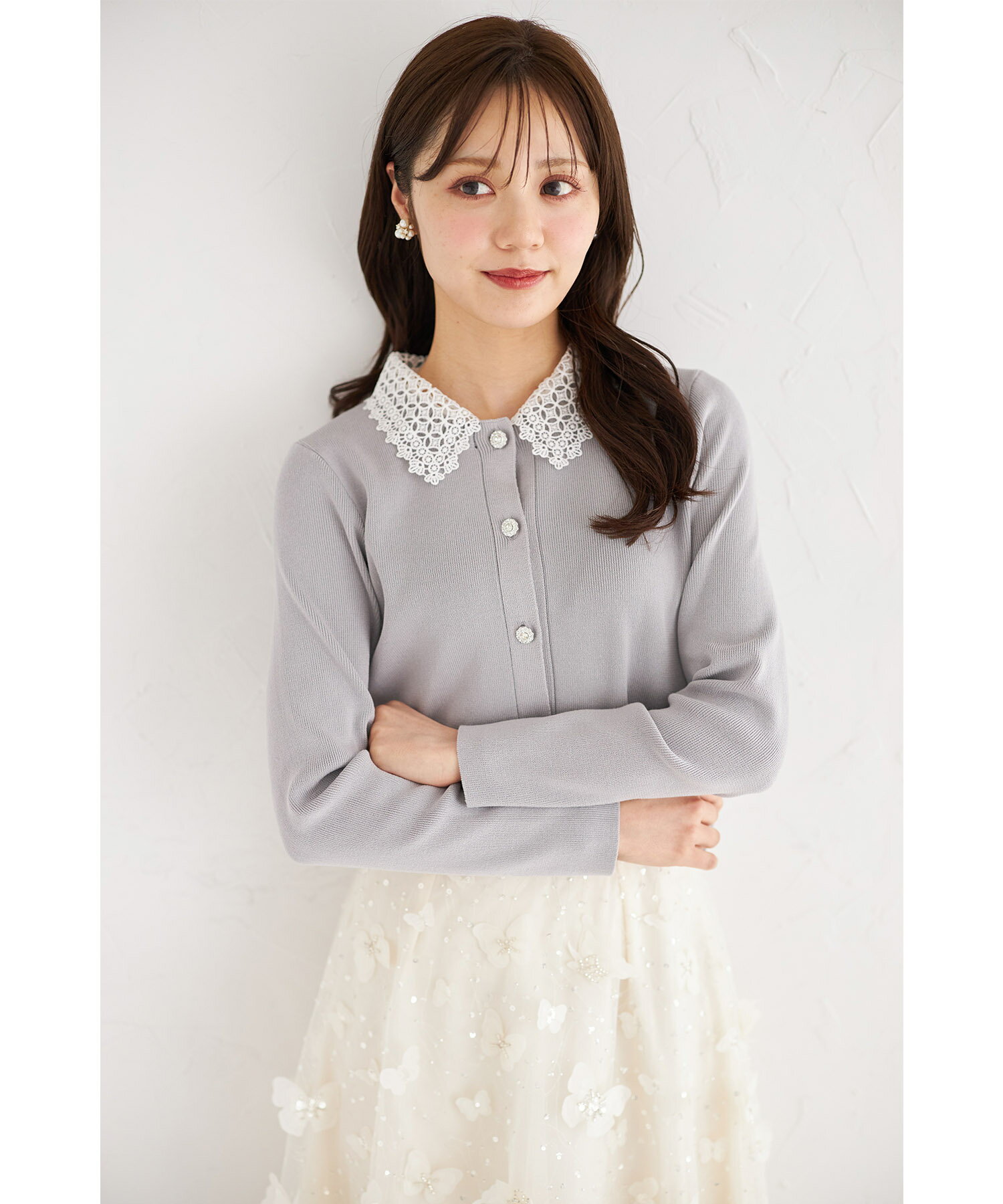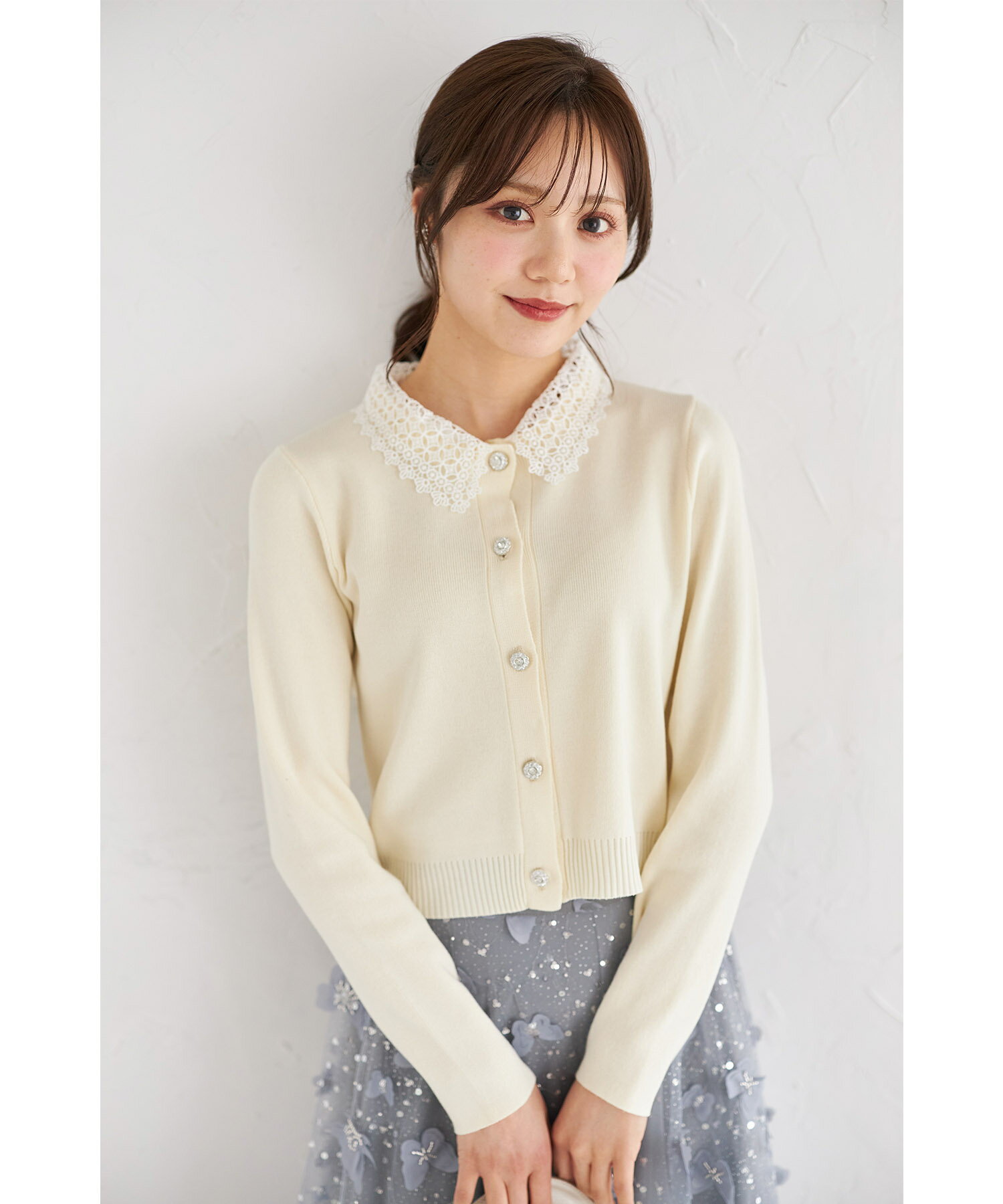 2WAYレース襟付きビジュー釦ニットカーディガン【isolara イソレラ】tocco closet(トッコクローゼット) グレー アイボリー 商品番号:186-194103