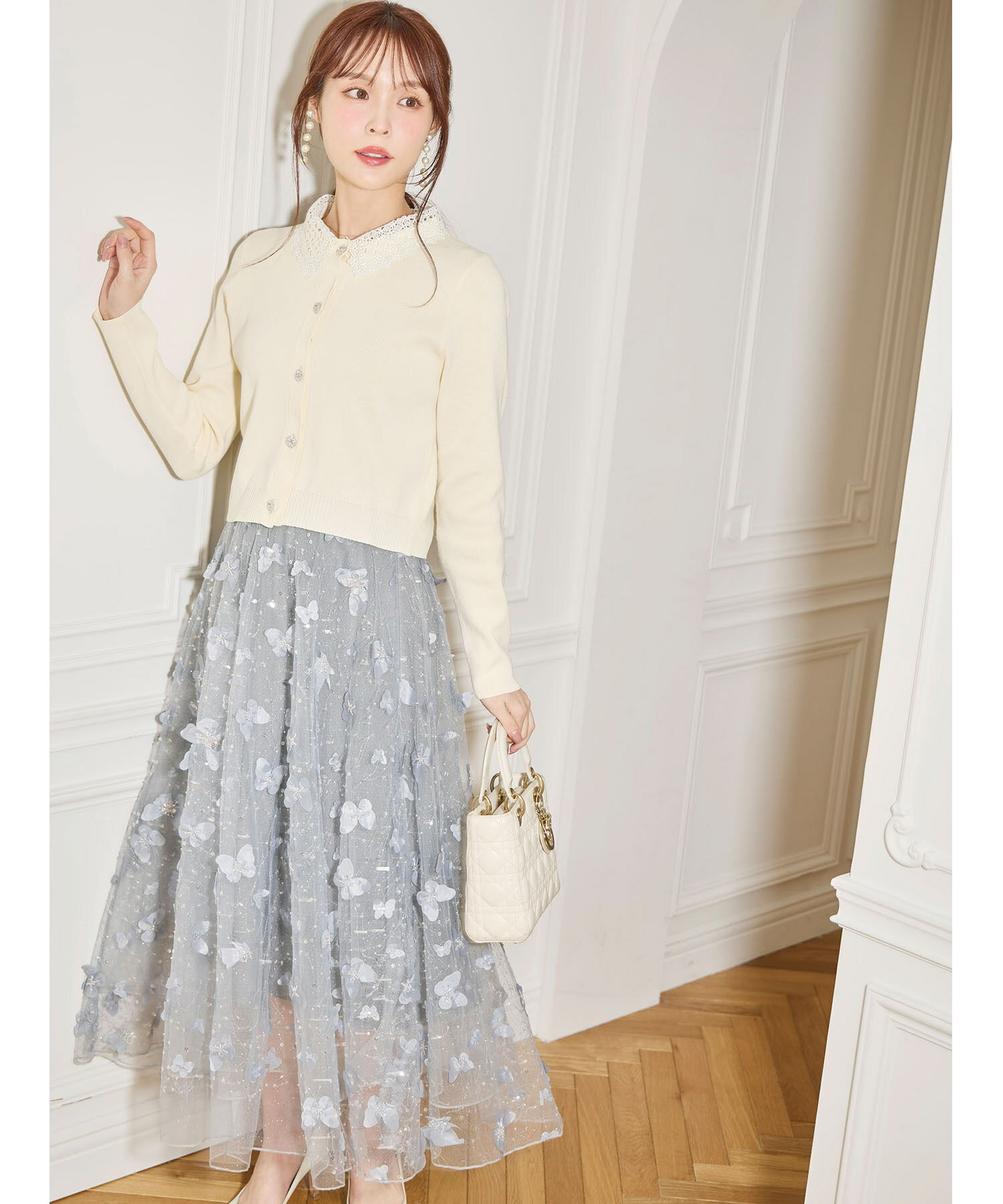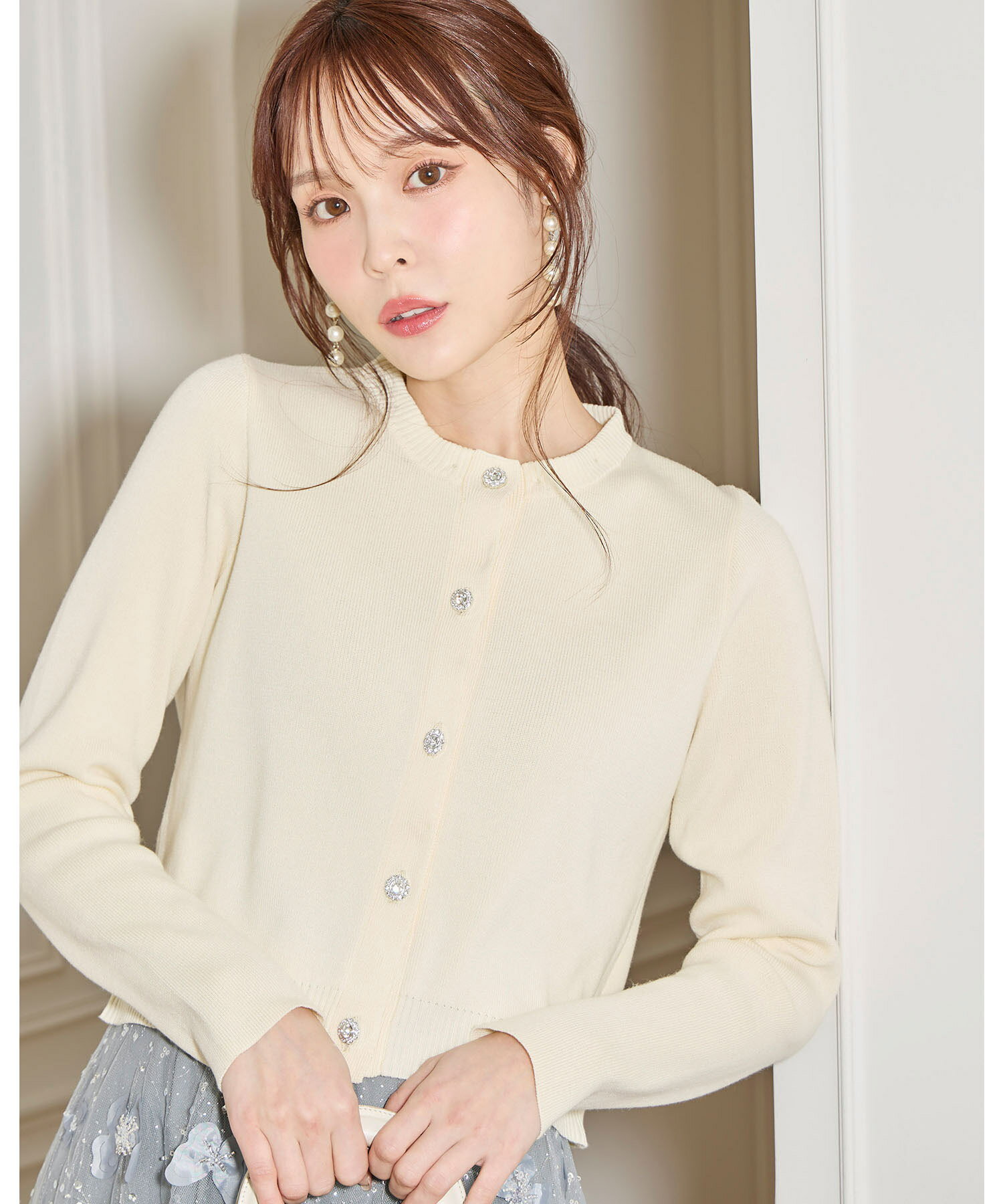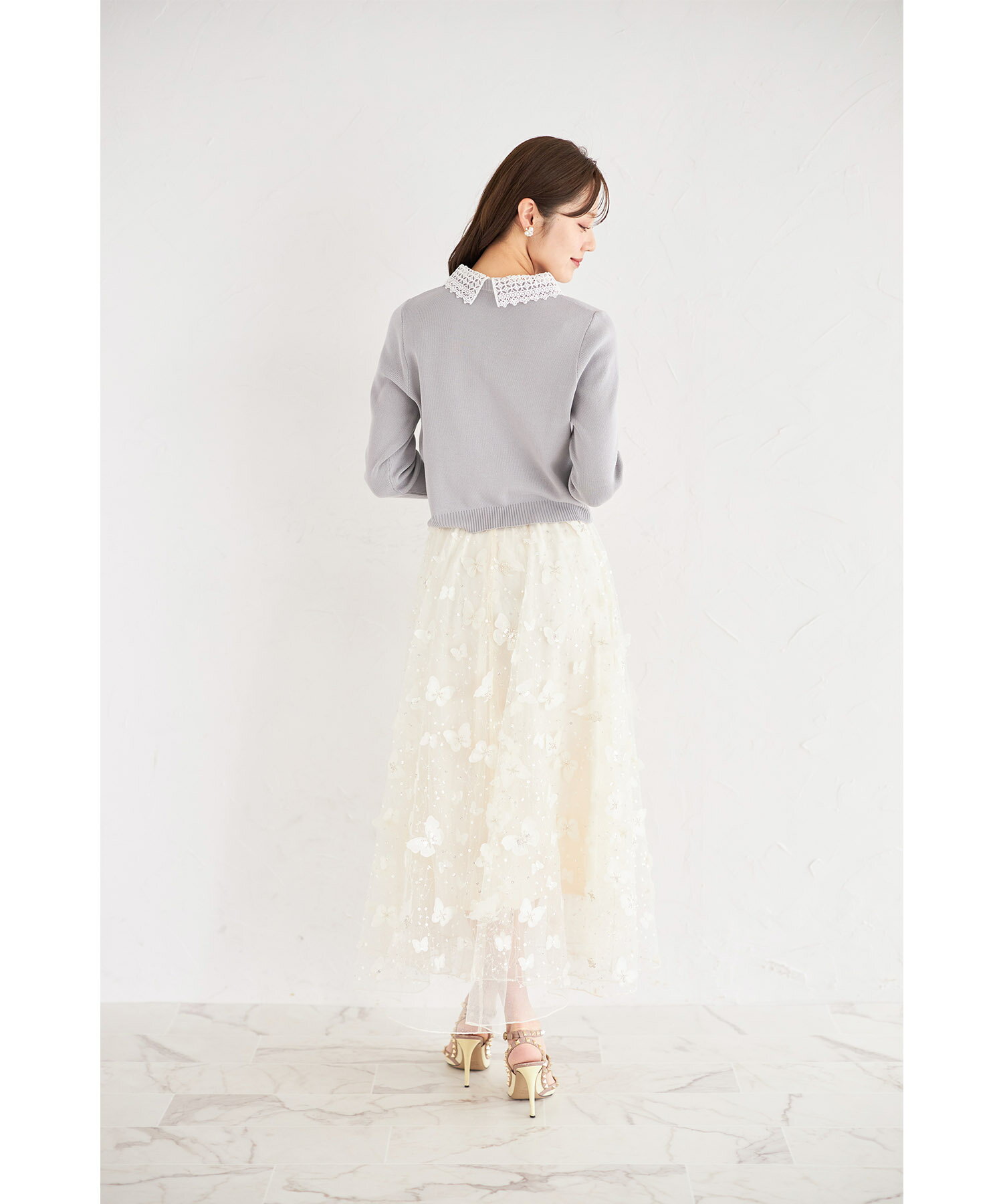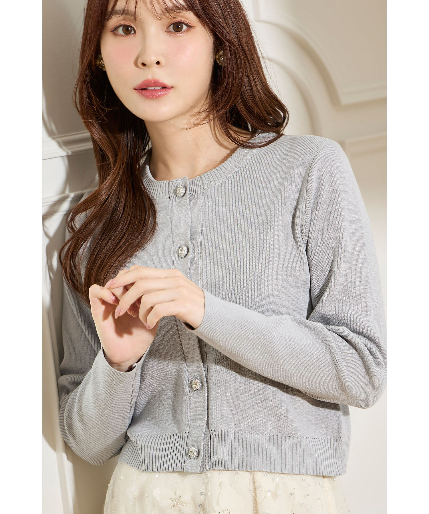 2WAYレース襟付きビジュー釦ニットカーディガン【isolara イソレラ】tocco closet(トッコクローゼット) グレー アイボリー 商品番号:186-194103