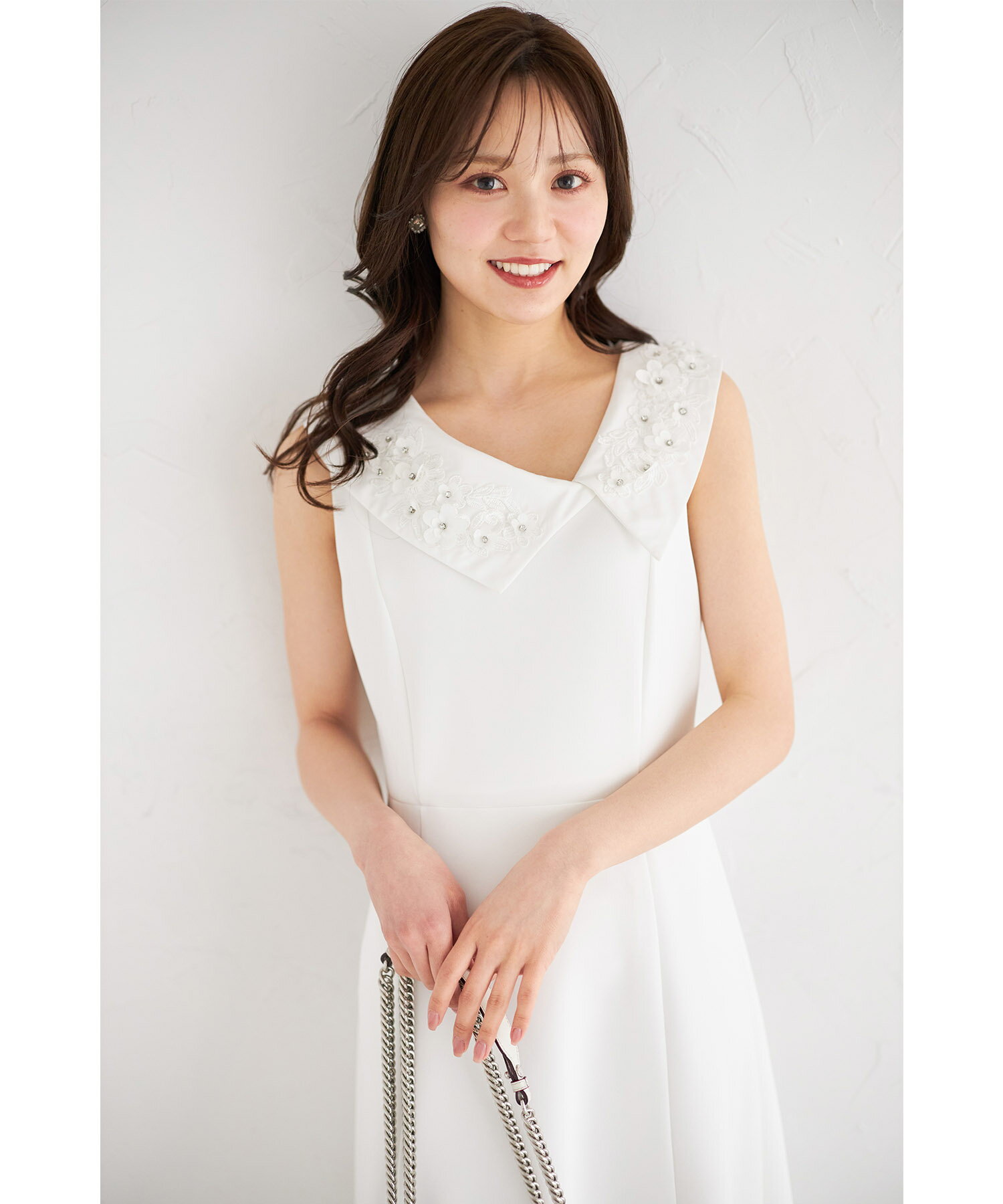 立体フラワー刺繍モチーフ付きアシメカラーワンピース【affira アフィーラ】tocco closet(トッコクローゼット) ※紺野彩夏さんはオフホワイト着用 オフホワイト ネイビー 商品番号:6-193607