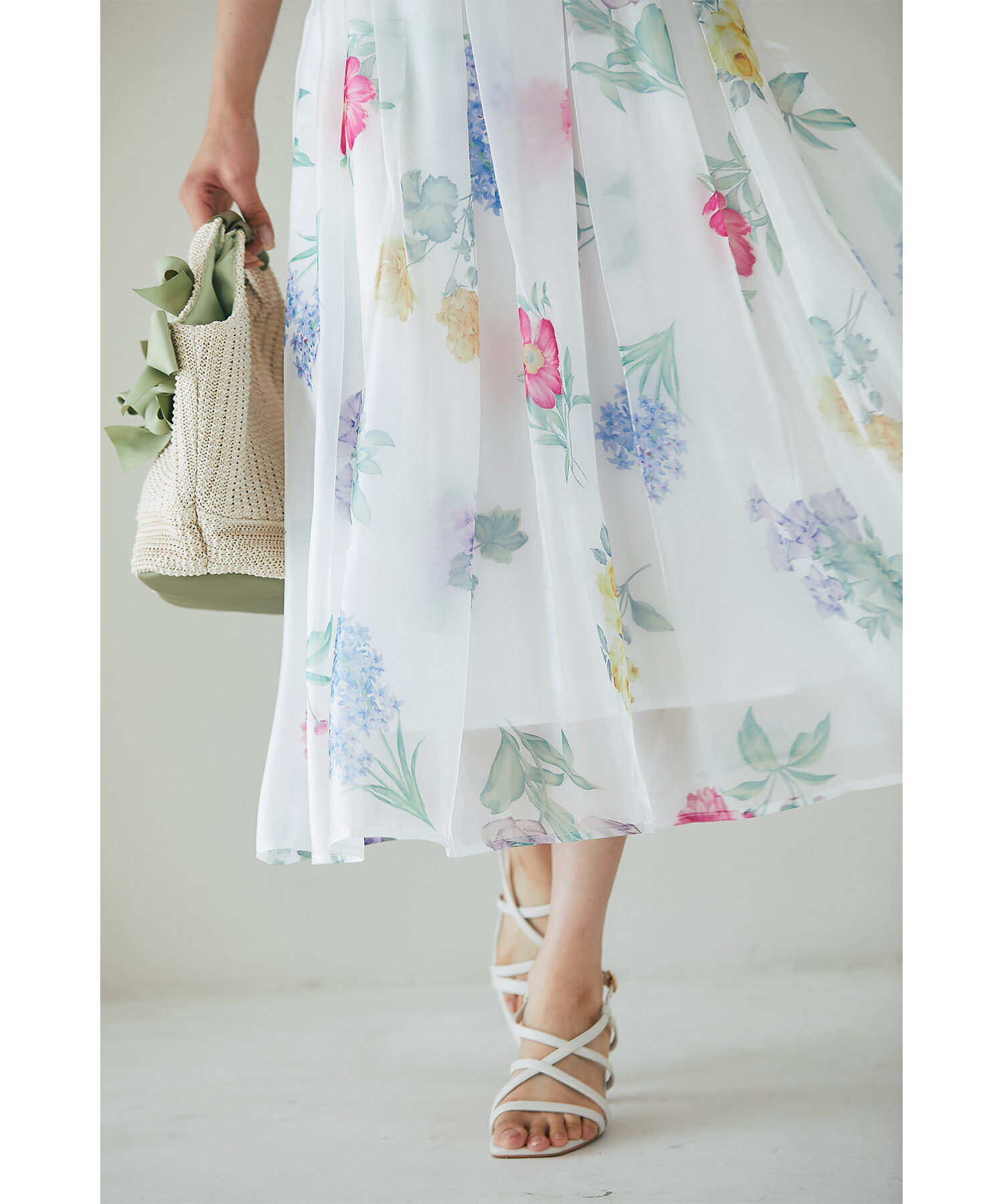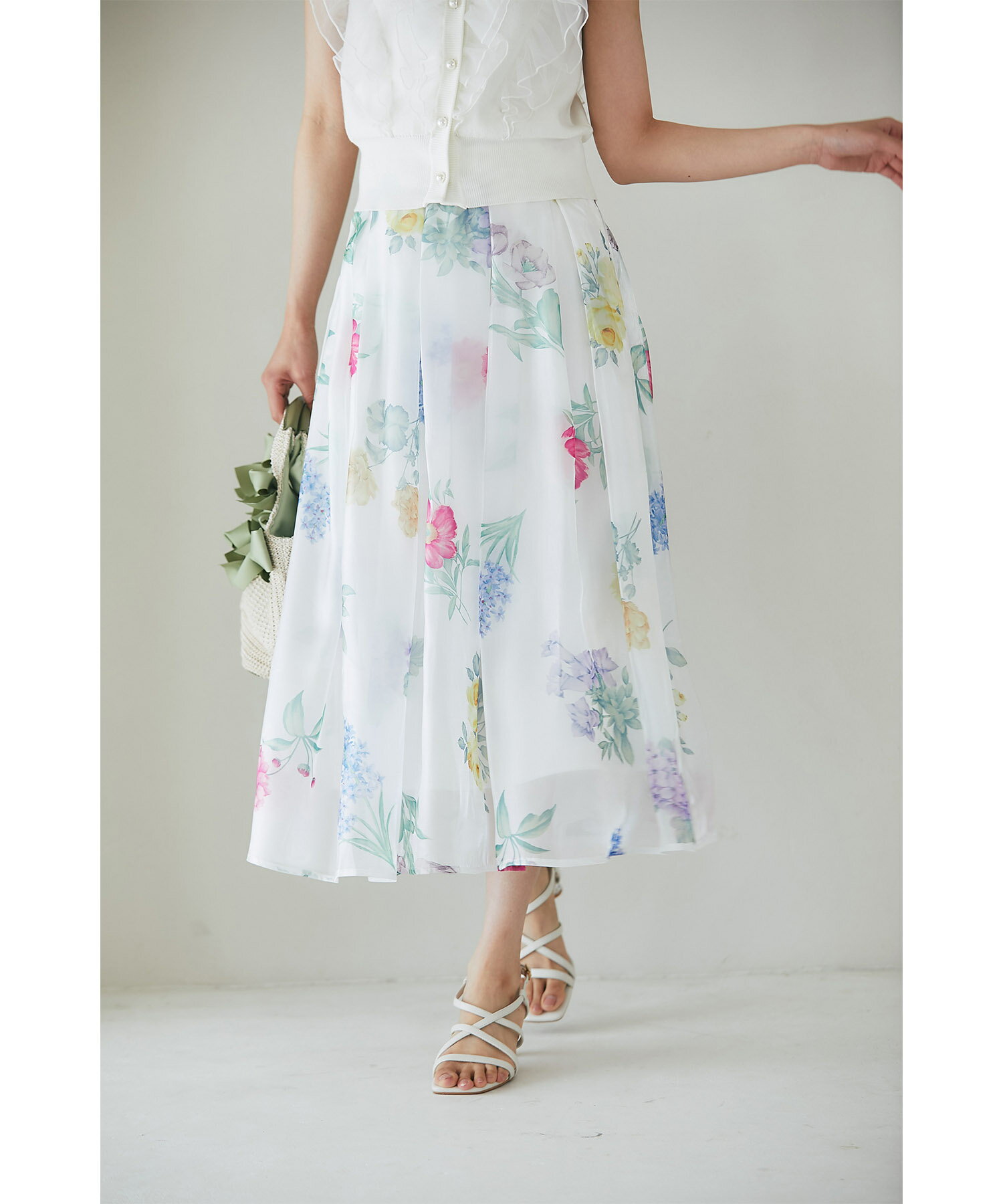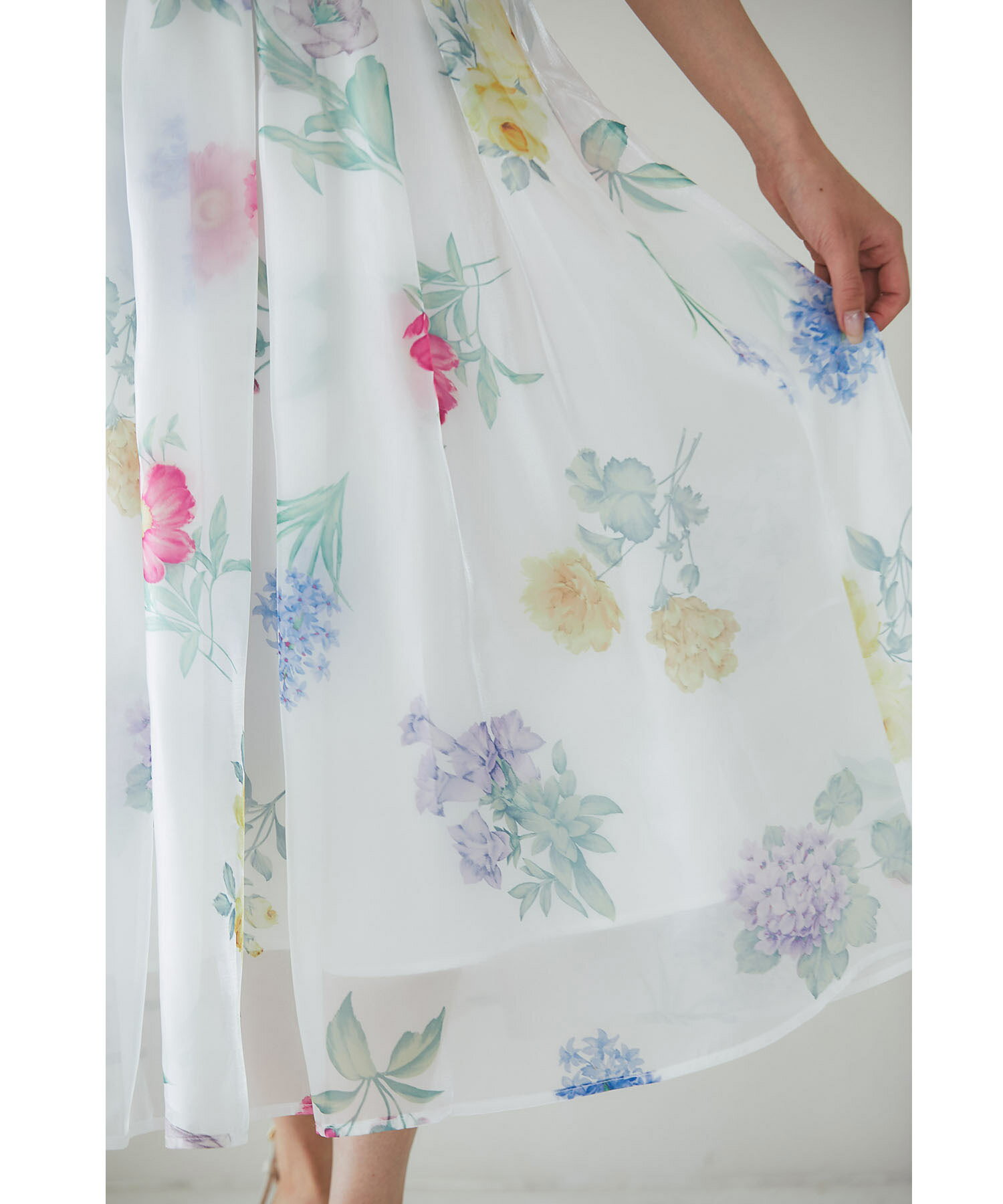 ボタニカルフラワープリントシアーフレアスカート【isolina イソリナ】tocco closet(トッコクローゼット) ※道重さゆみさんはピンク着用 ピンク ブルー 商品番号:186-196707