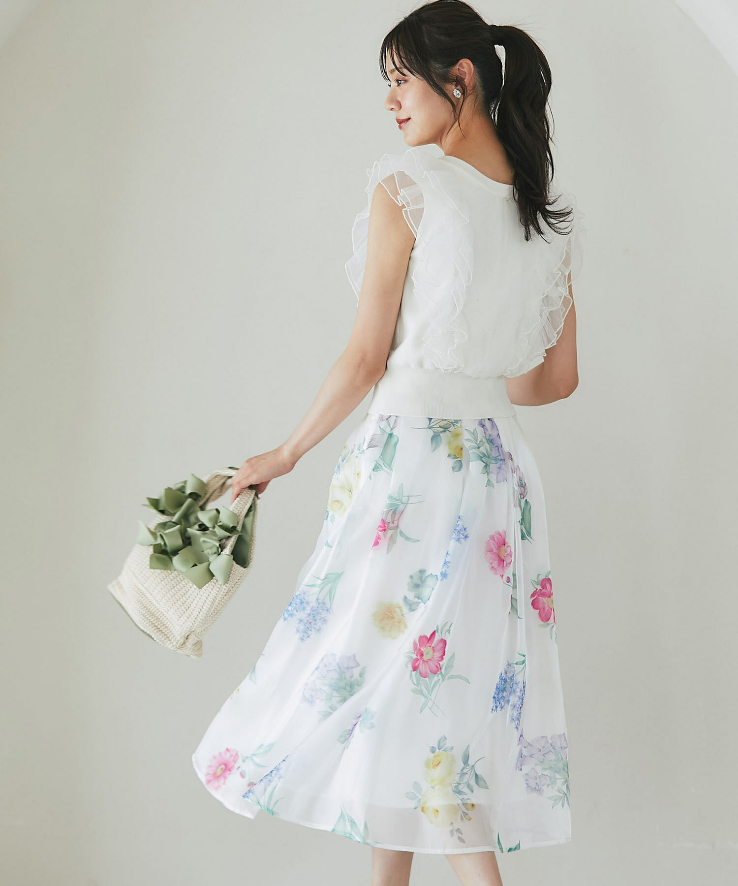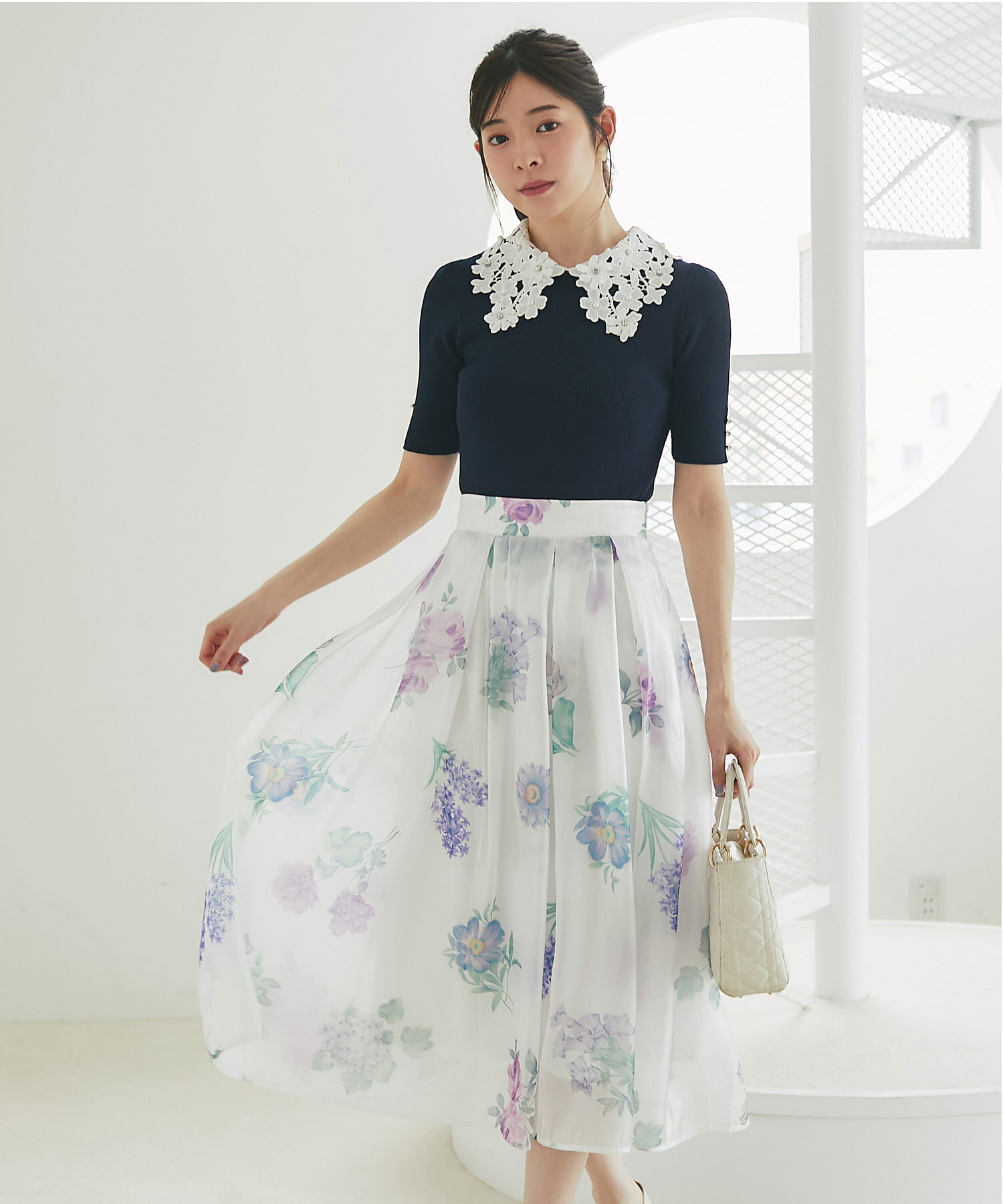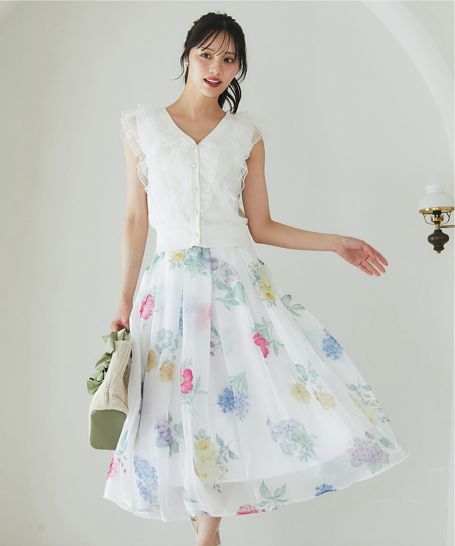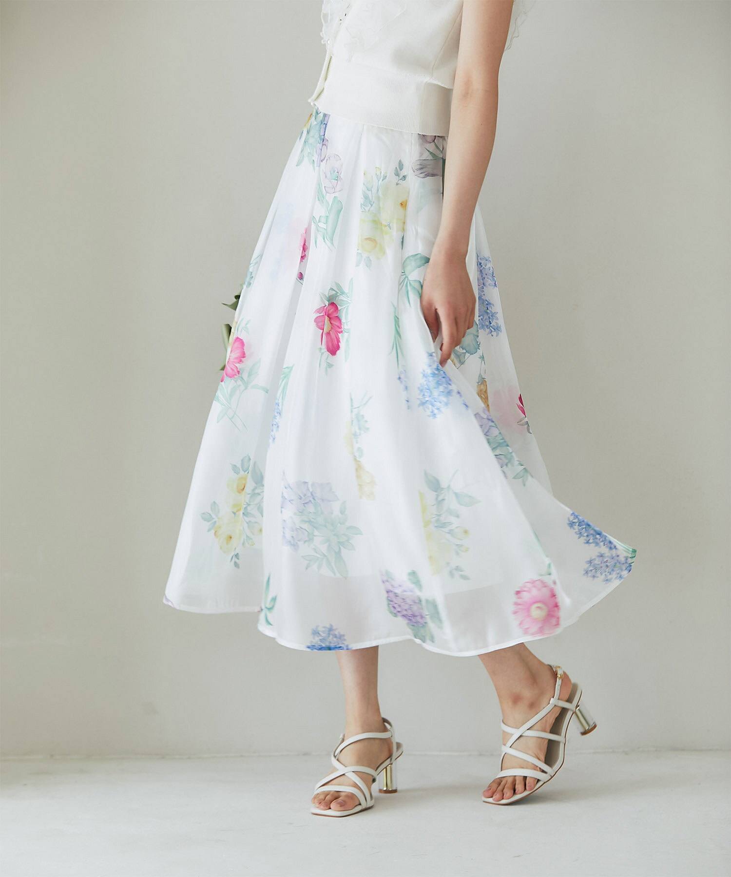 ボタニカルフラワープリントシアーフレアスカート【isolina イソリナ】tocco closet(トッコクローゼット) ※道重さゆみさんはピンク着用 ピンク ブルー 商品番号:186-196707