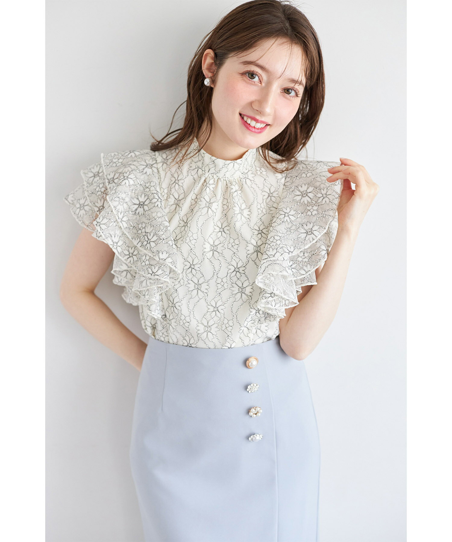 多種パールビジュー飾り釦付きタイトスカート【clarisa クラリサ】tocco closet(トッコクローゼット) ※えみ姉さんはライトブルー着用 ライトブルー ブラック 商品番号:186-195122