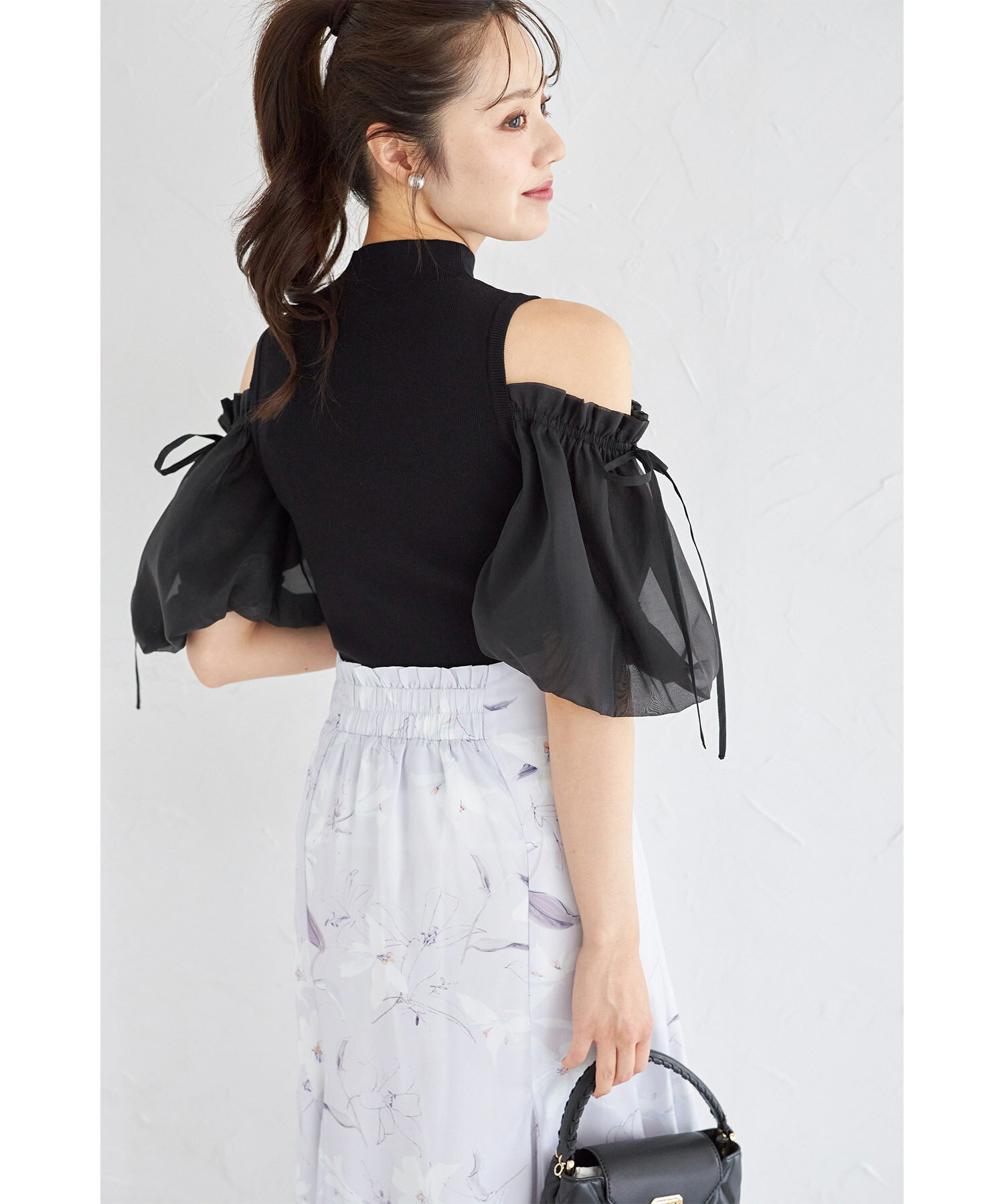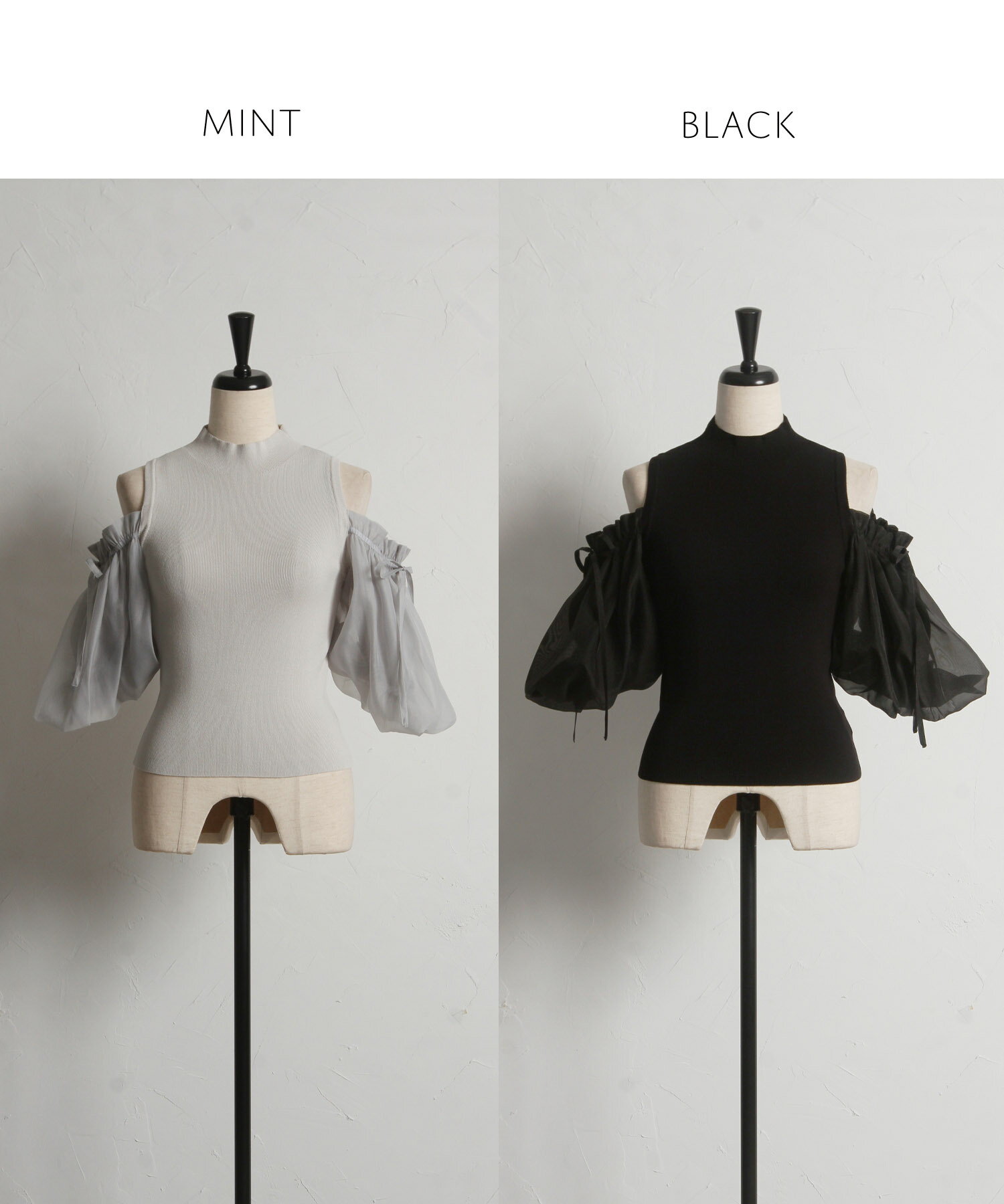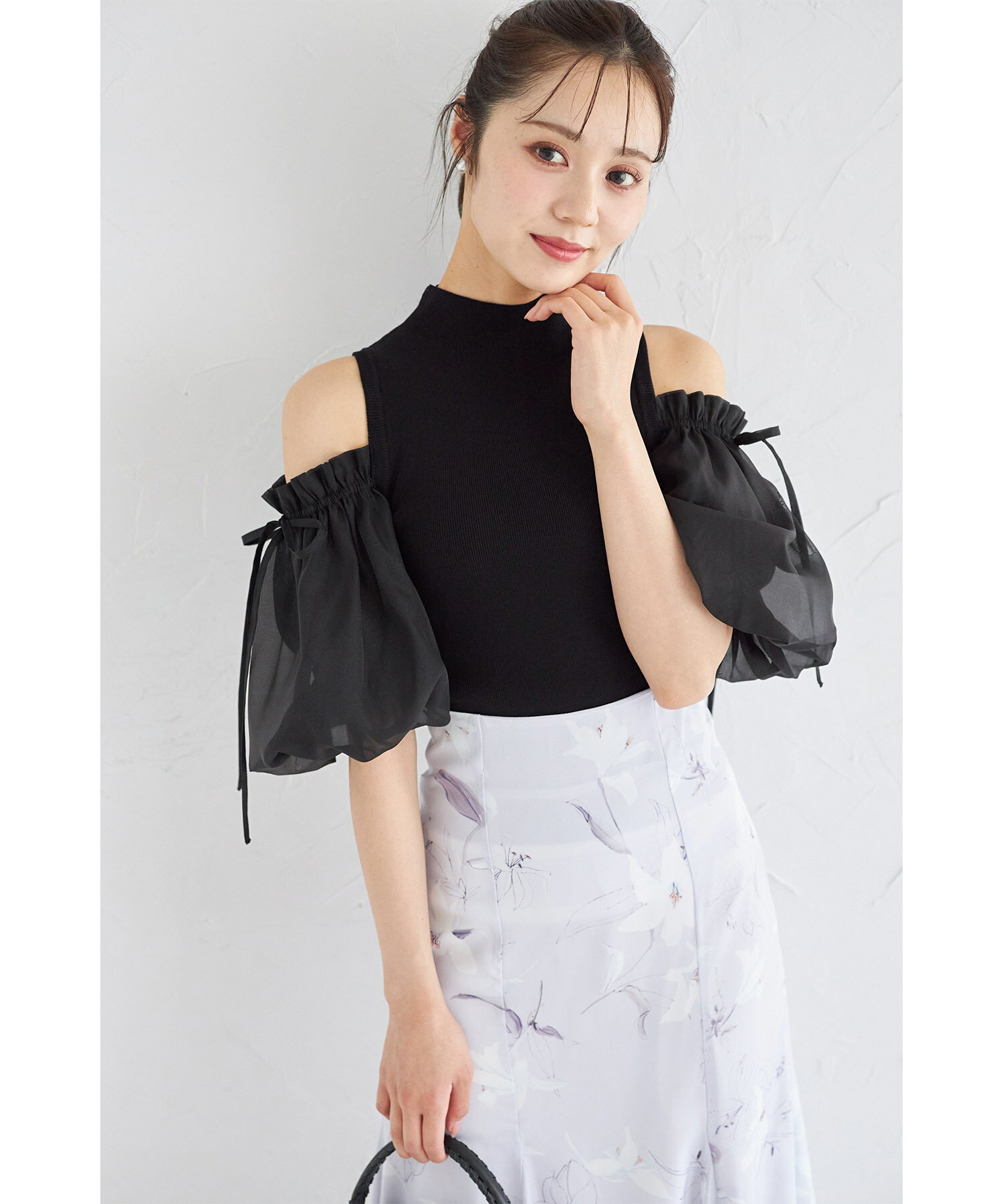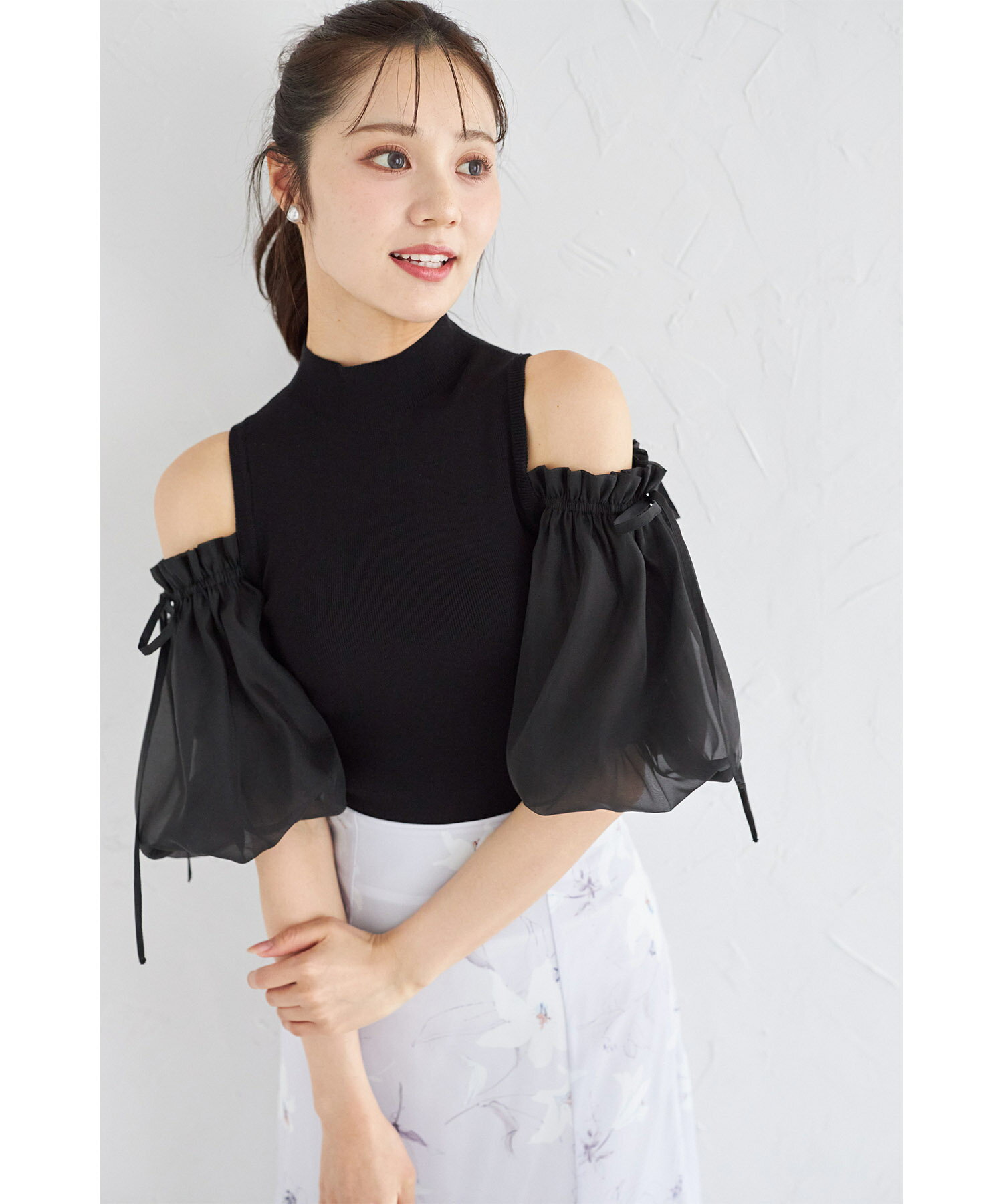 リボン付きシアーバルーンスリーブ切り替えリブニットプルオーバー【falca ファルカ】tocco closet(トッコクローゼット) ※麻亜里さんはミント着用 ミント ブラック 商品番号:186-196715