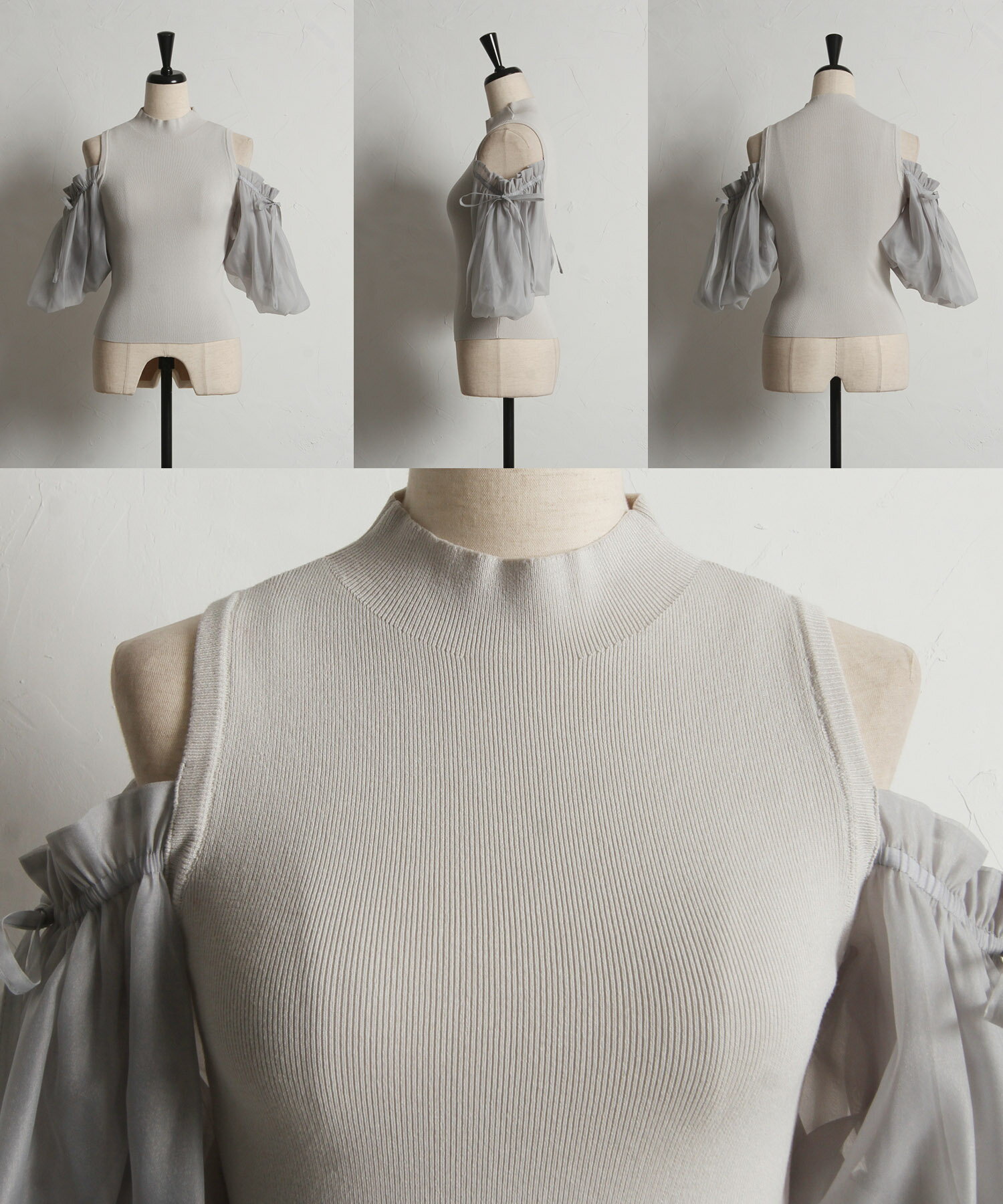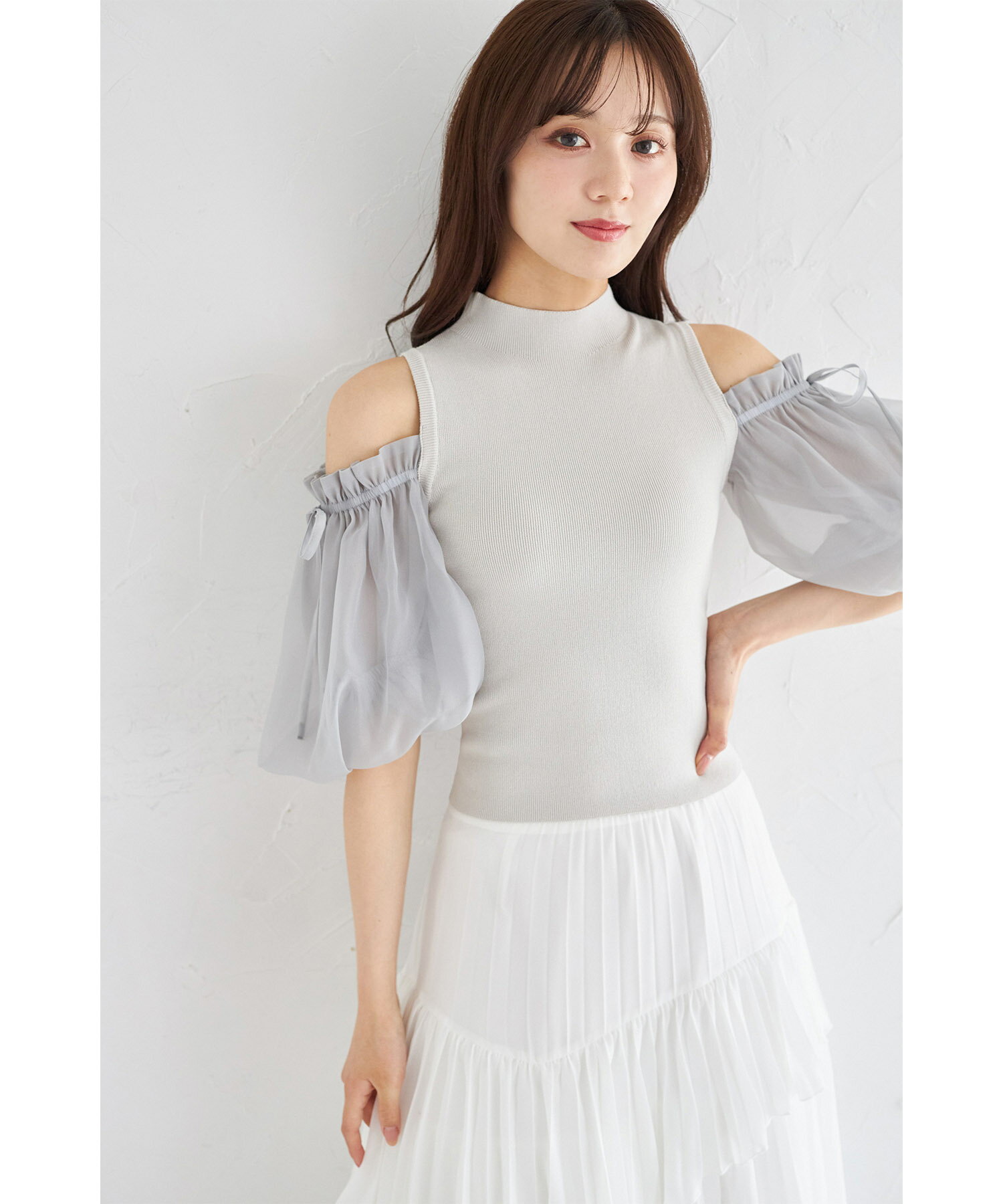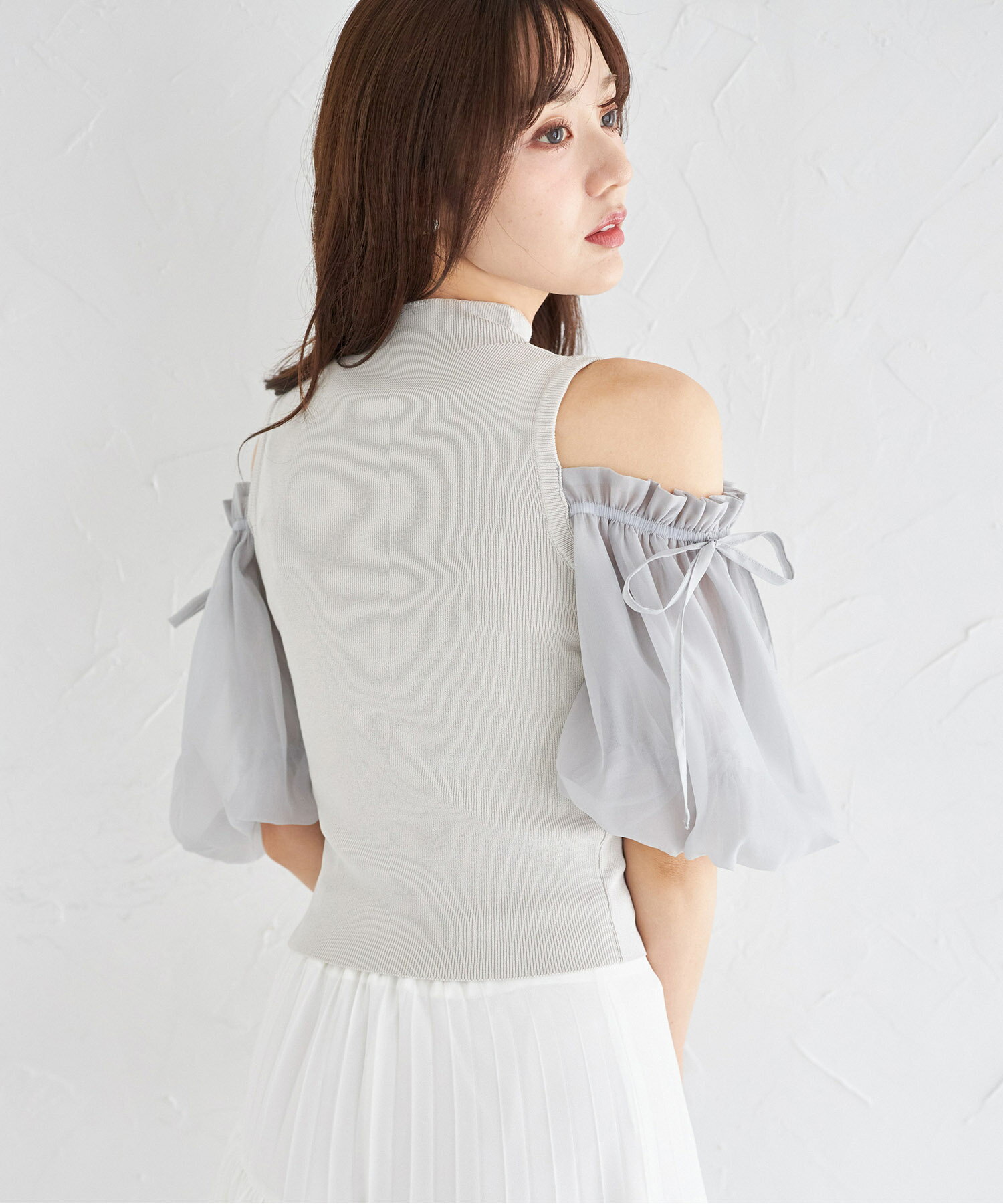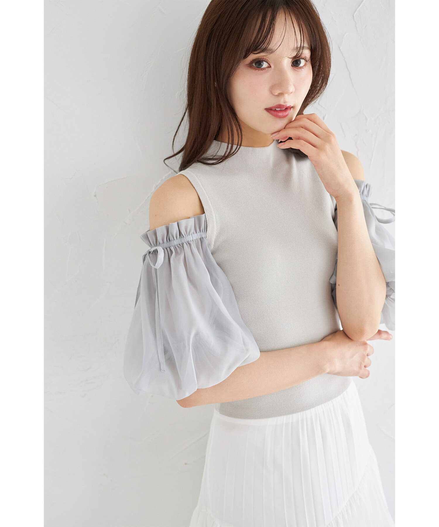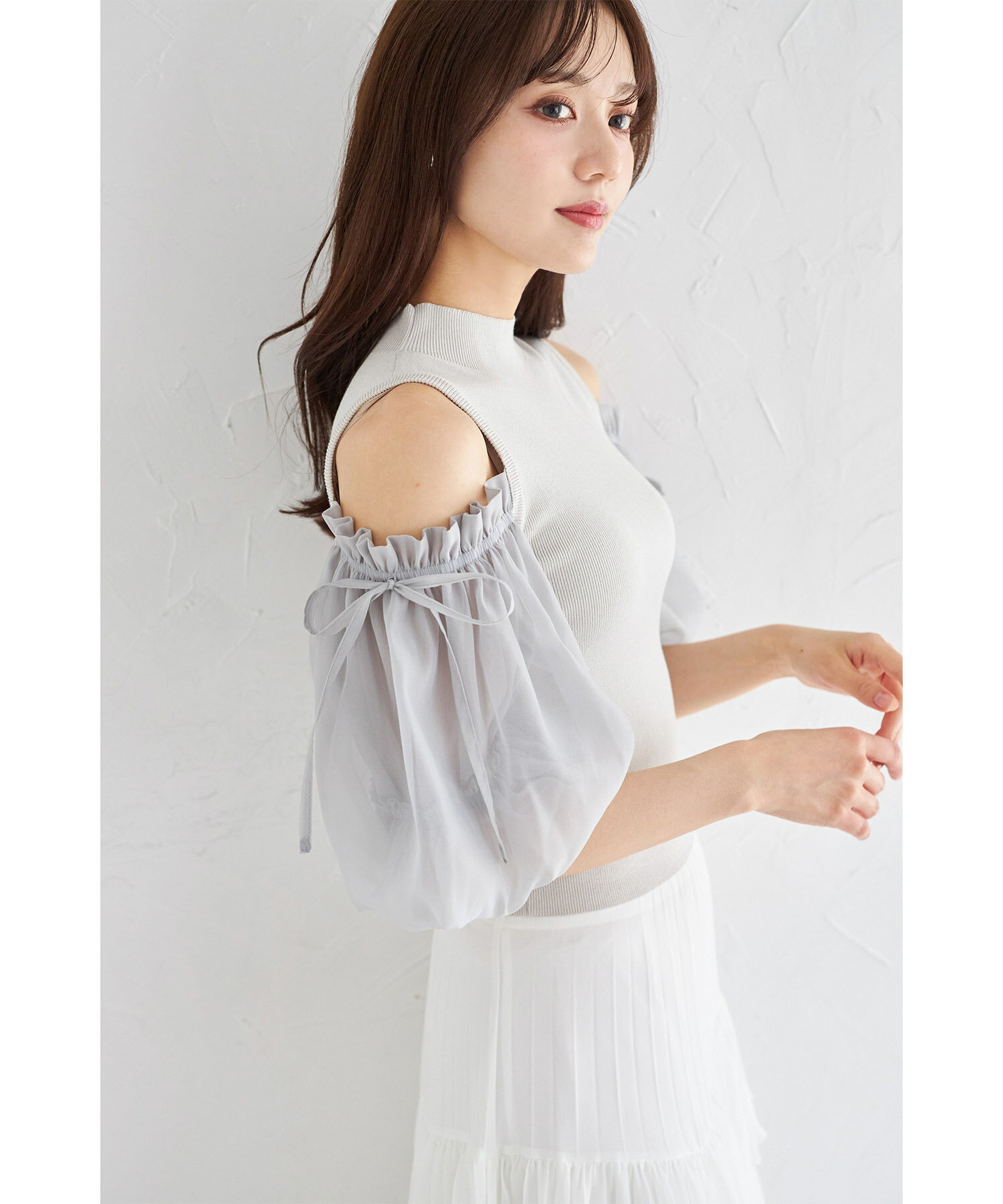 リボン付きシアーバルーンスリーブ切り替えリブニットプルオーバー【falca ファルカ】tocco closet(トッコクローゼット) ※麻亜里さんはミント着用 ミント ブラック 商品番号:186-196715