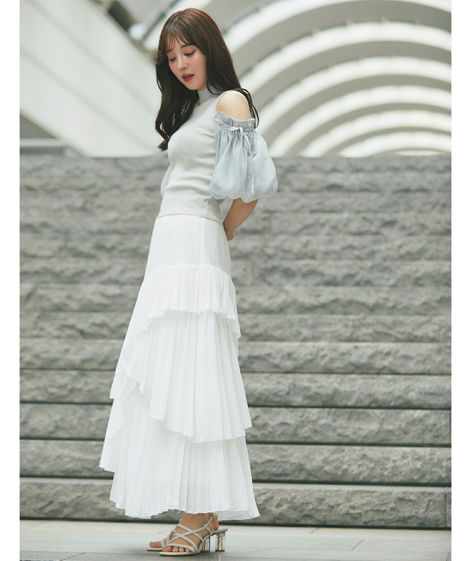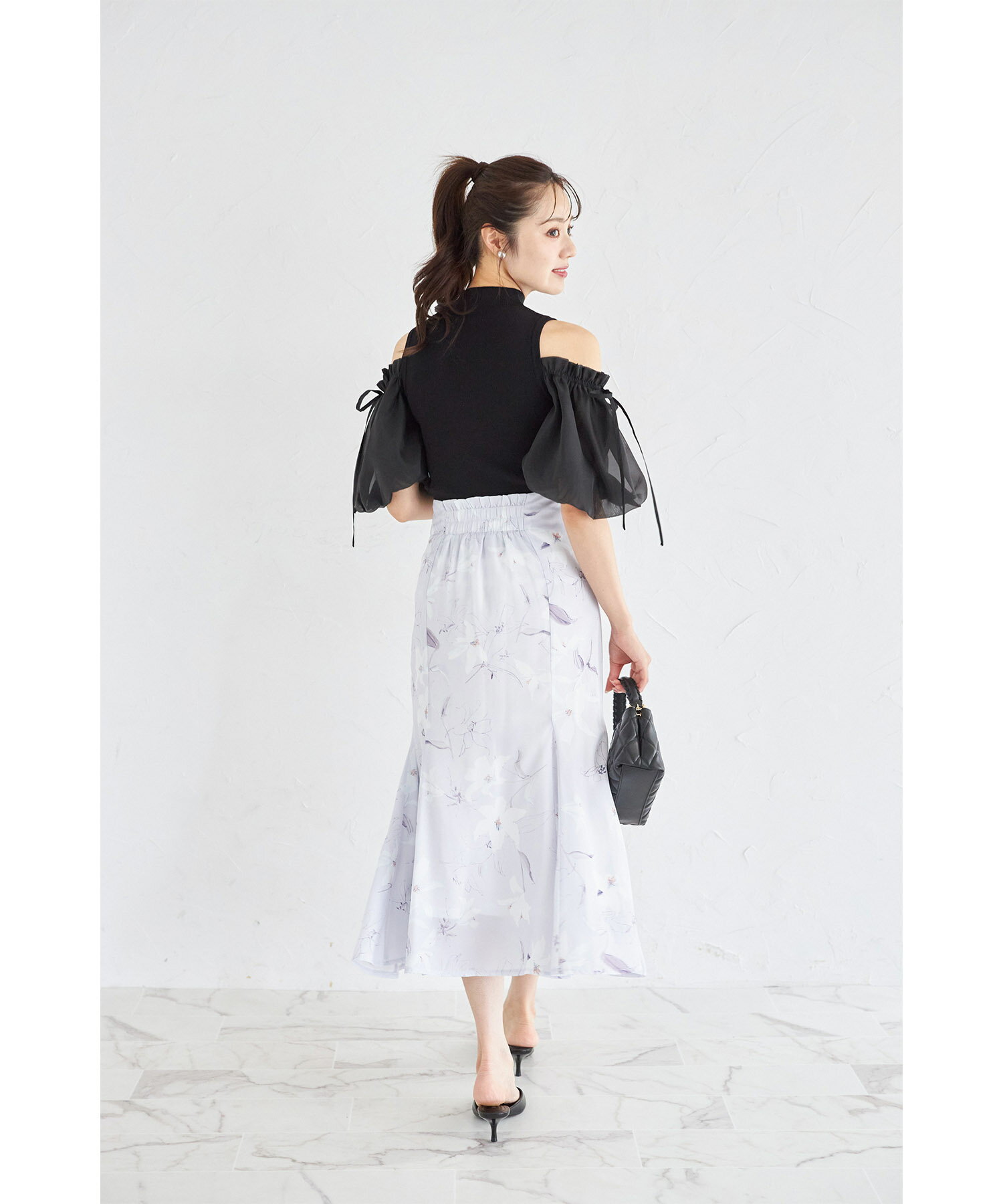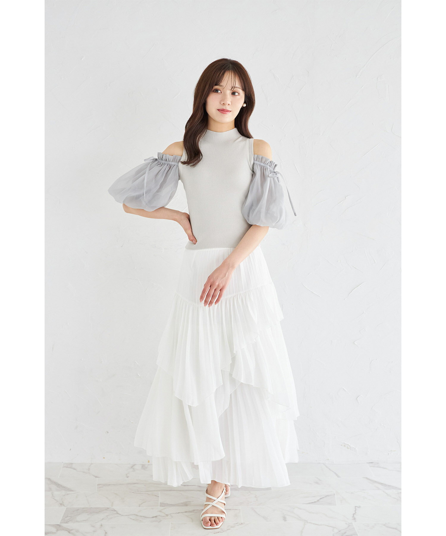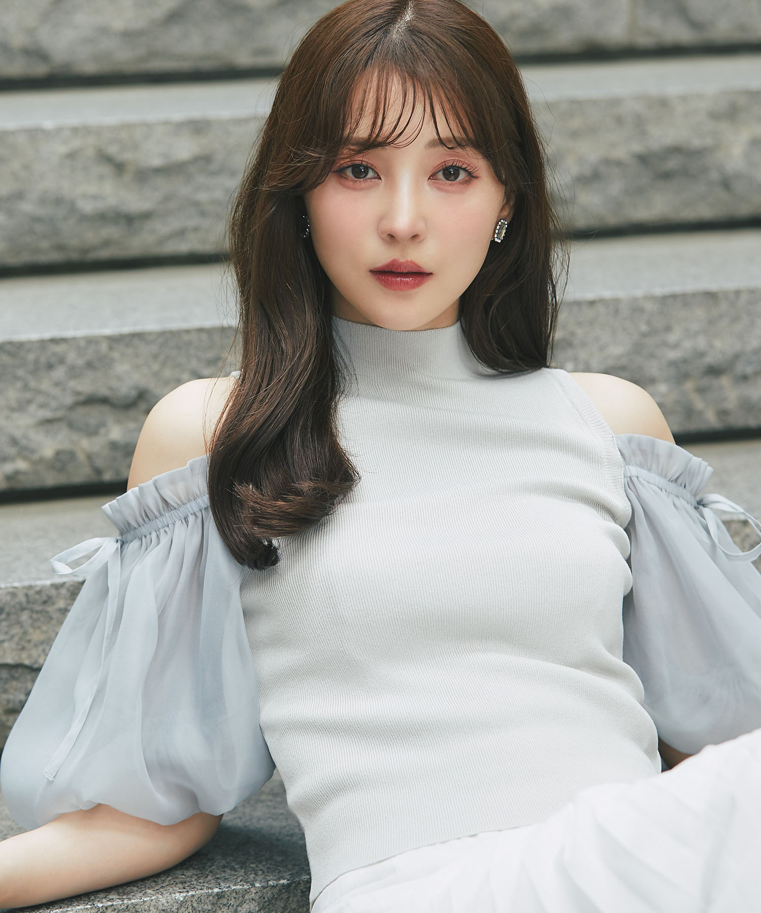 リボン付きシアーバルーンスリーブ切り替えリブニットプルオーバー【falca ファルカ】tocco closet(トッコクローゼット) ※麻亜里さんはミント着用 ミント ブラック 商品番号:186-196715