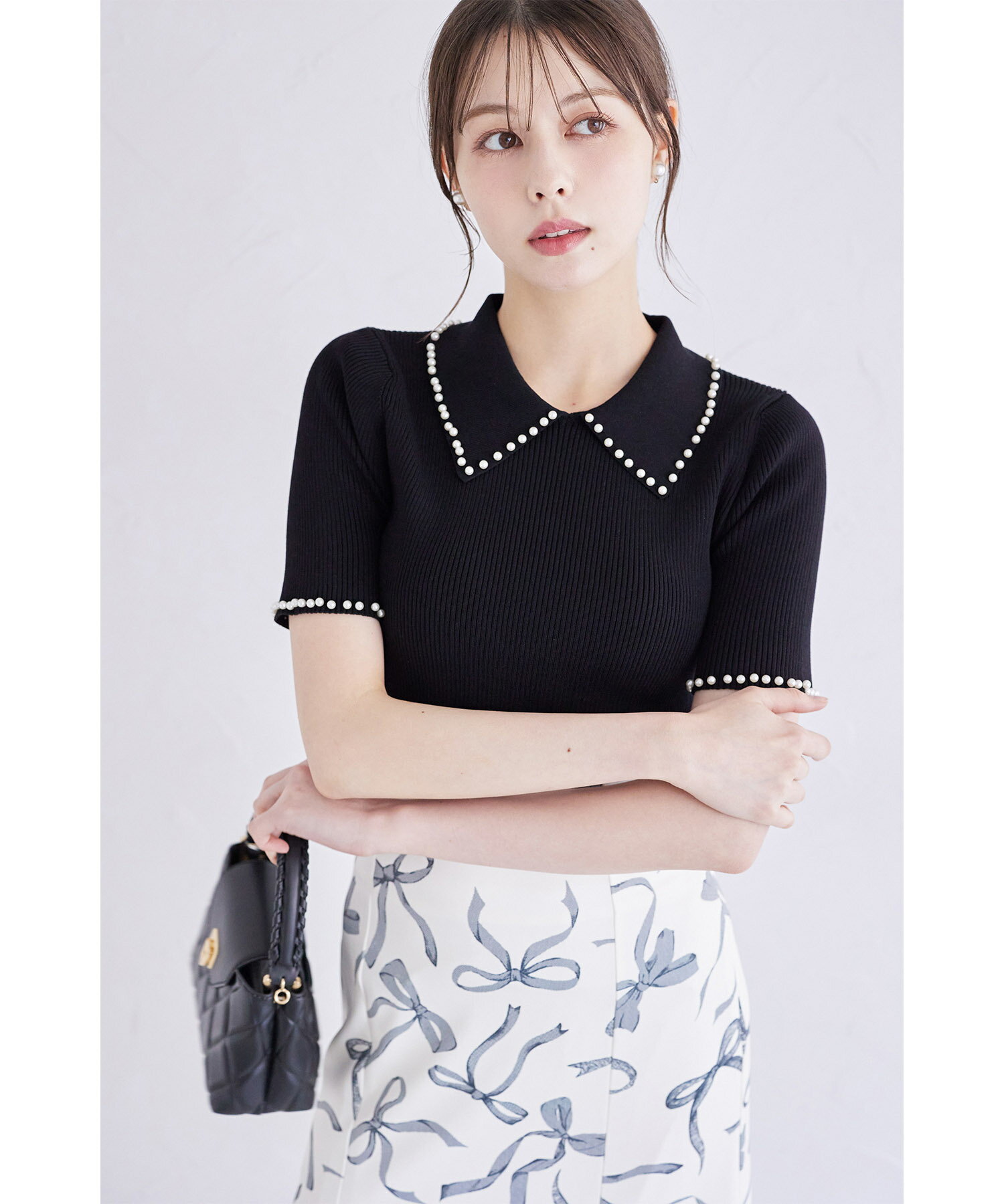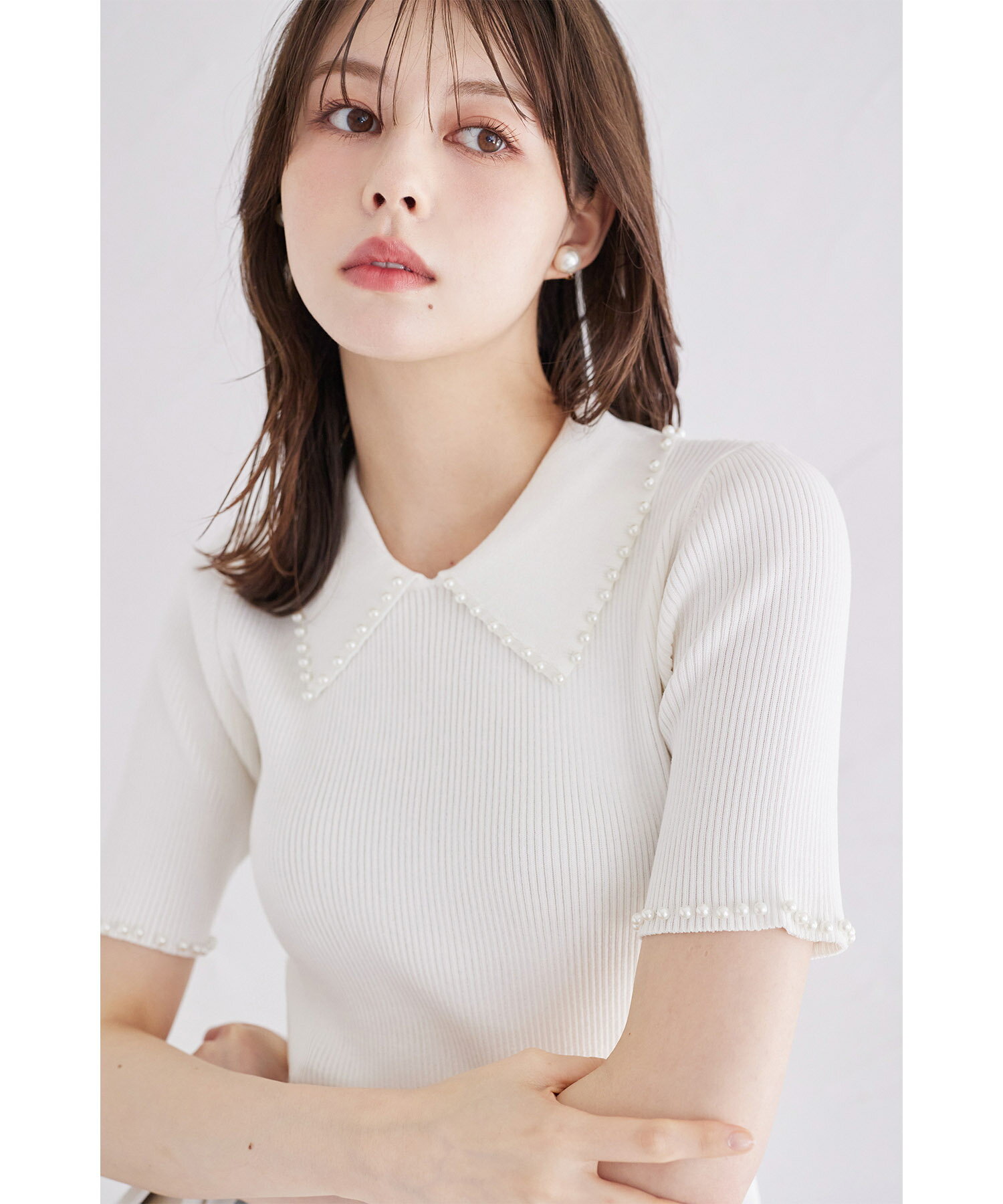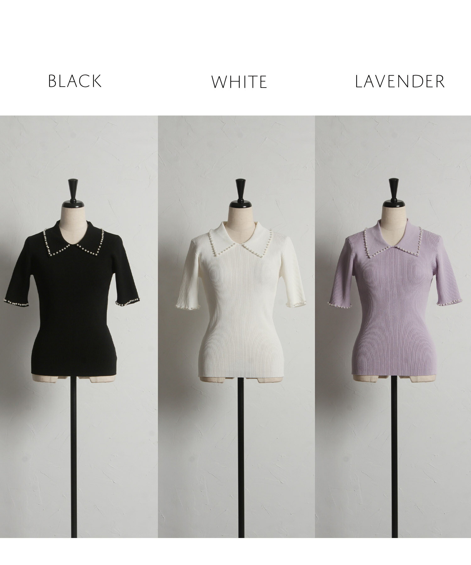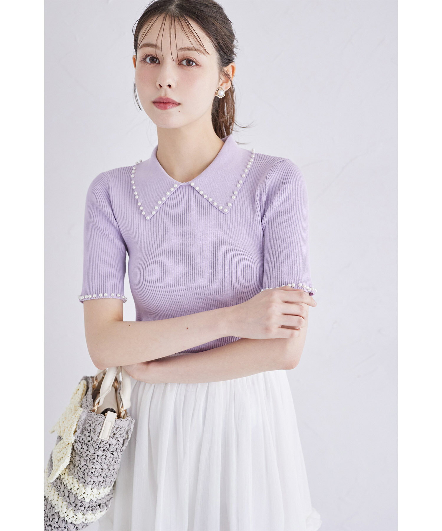 襟付きパール装飾リブニットプルオーバー【vanelin ヴァネリン】tocco closet(トッコクローゼット) ブラック ホワイト ラベンダー 商品番号:186-196862