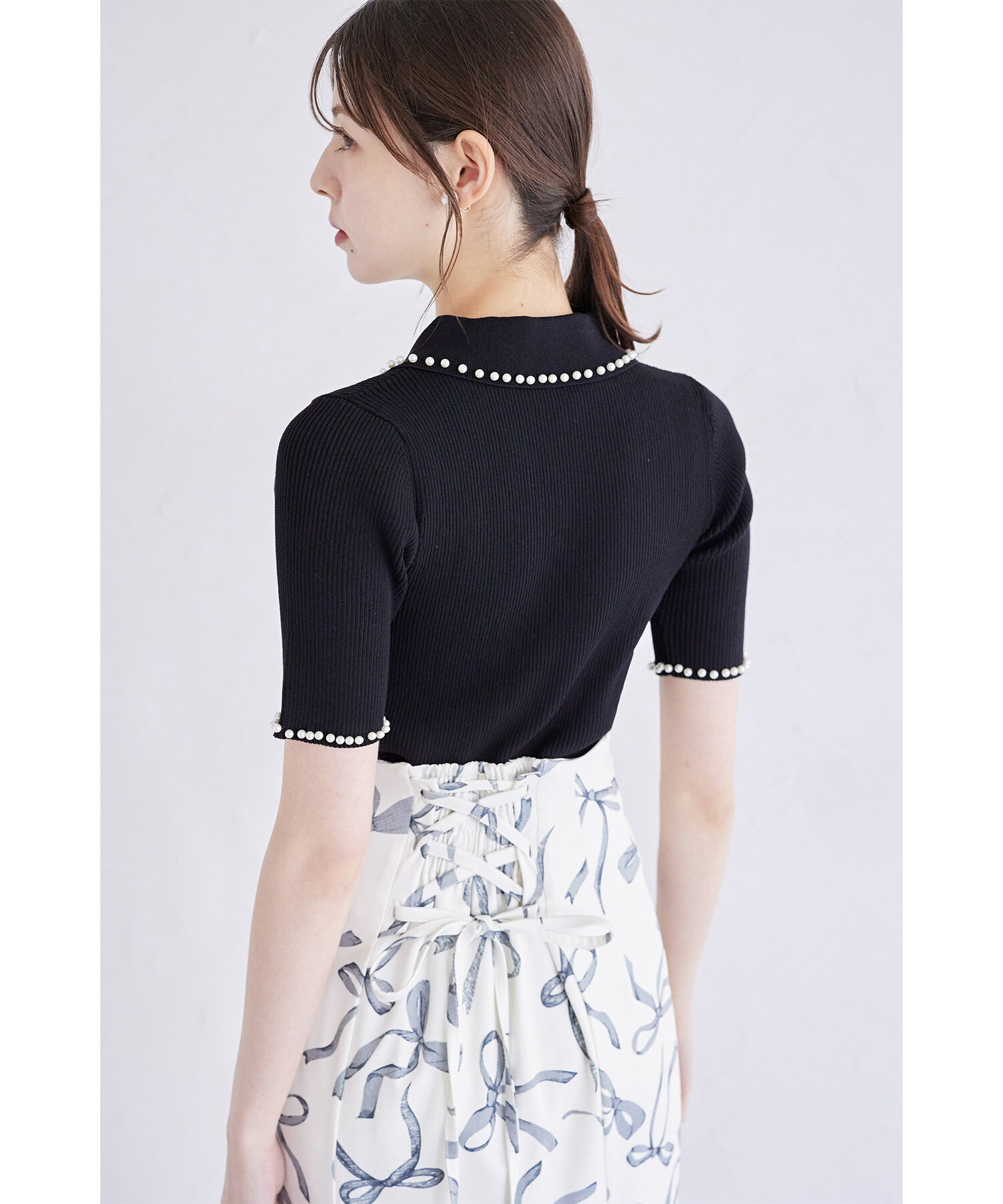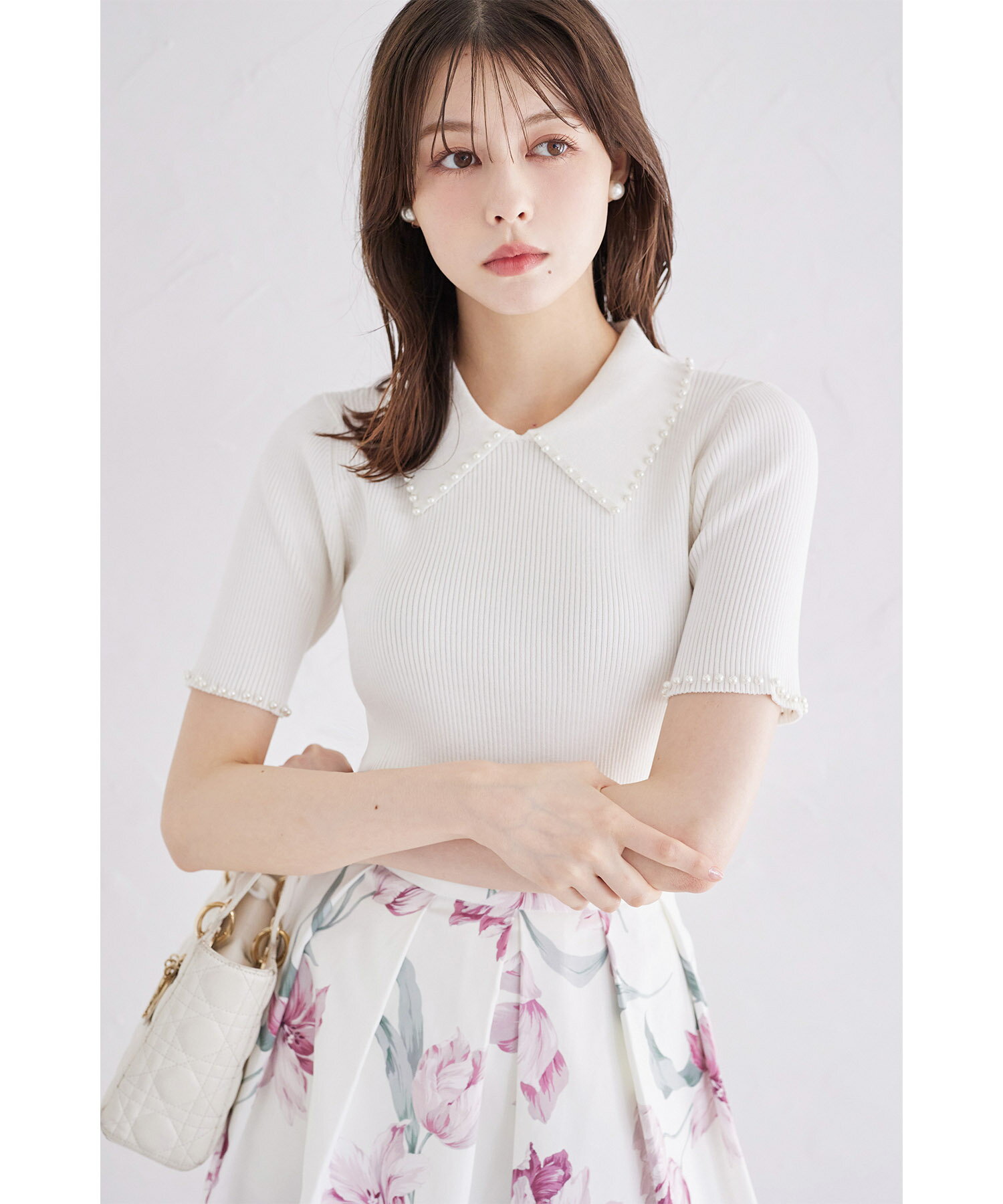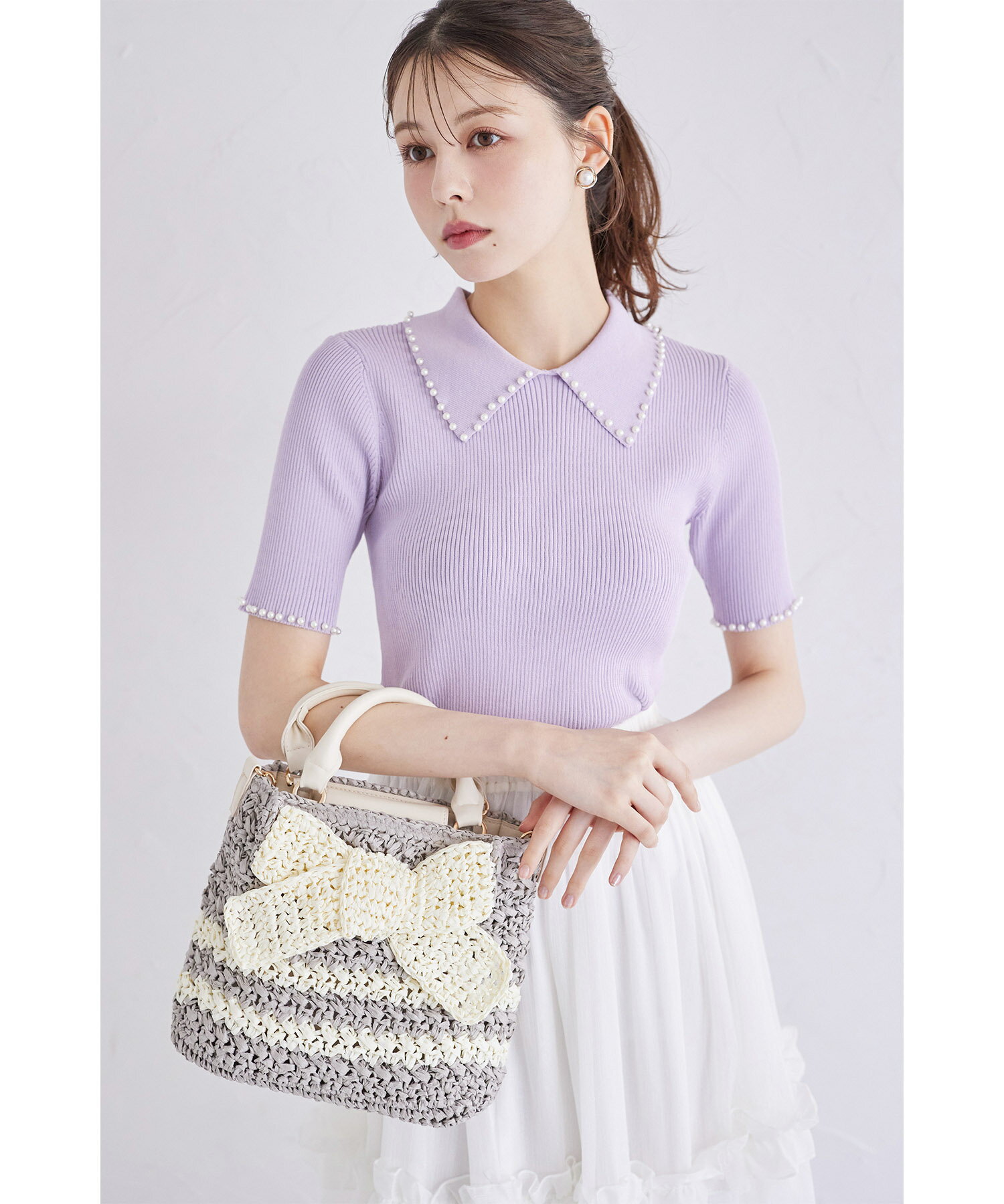 襟付きパール装飾リブニットプルオーバー【vanelin ヴァネリン】tocco closet(トッコクローゼット) ブラック ホワイト ラベンダー 商品番号:186-196862